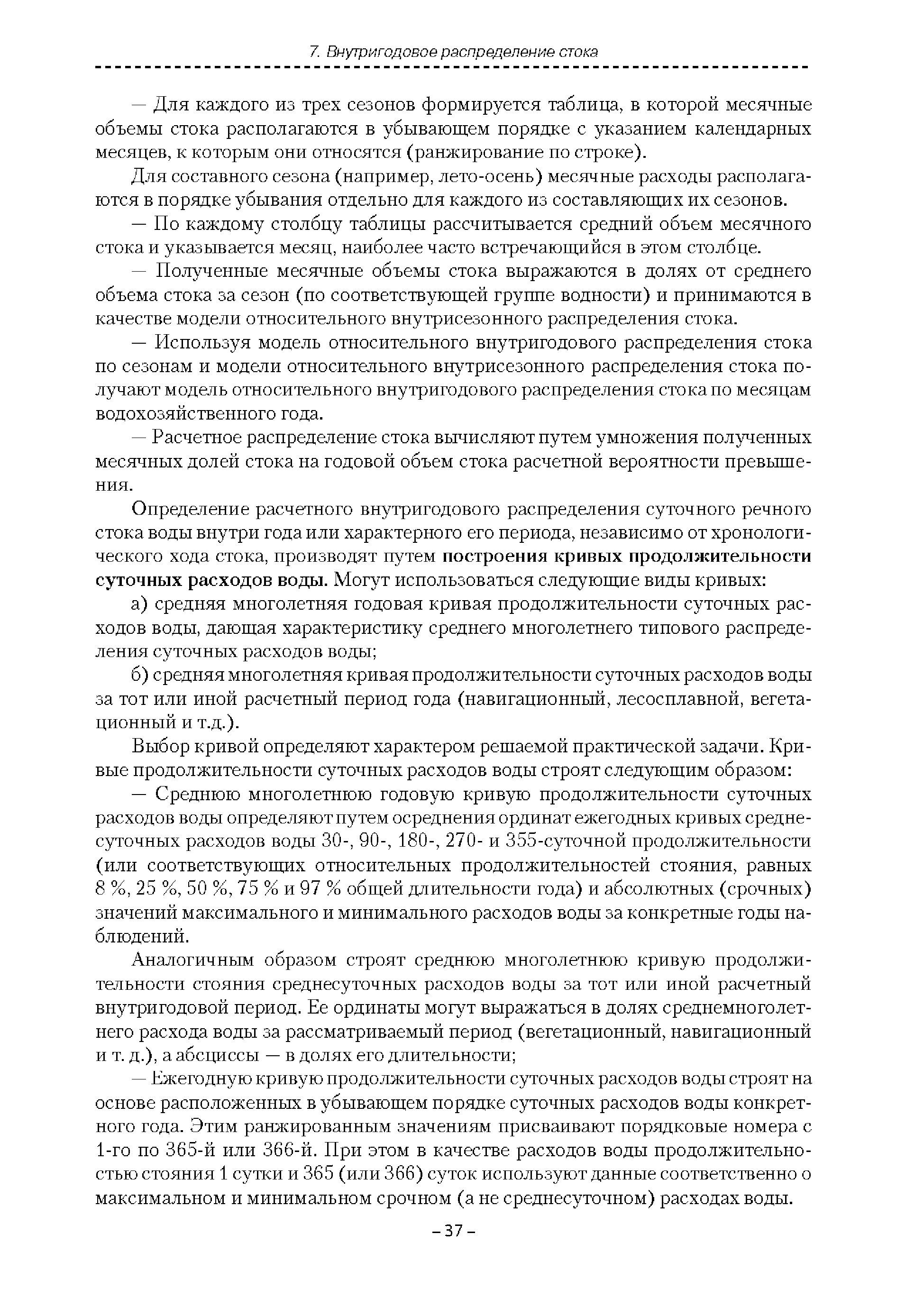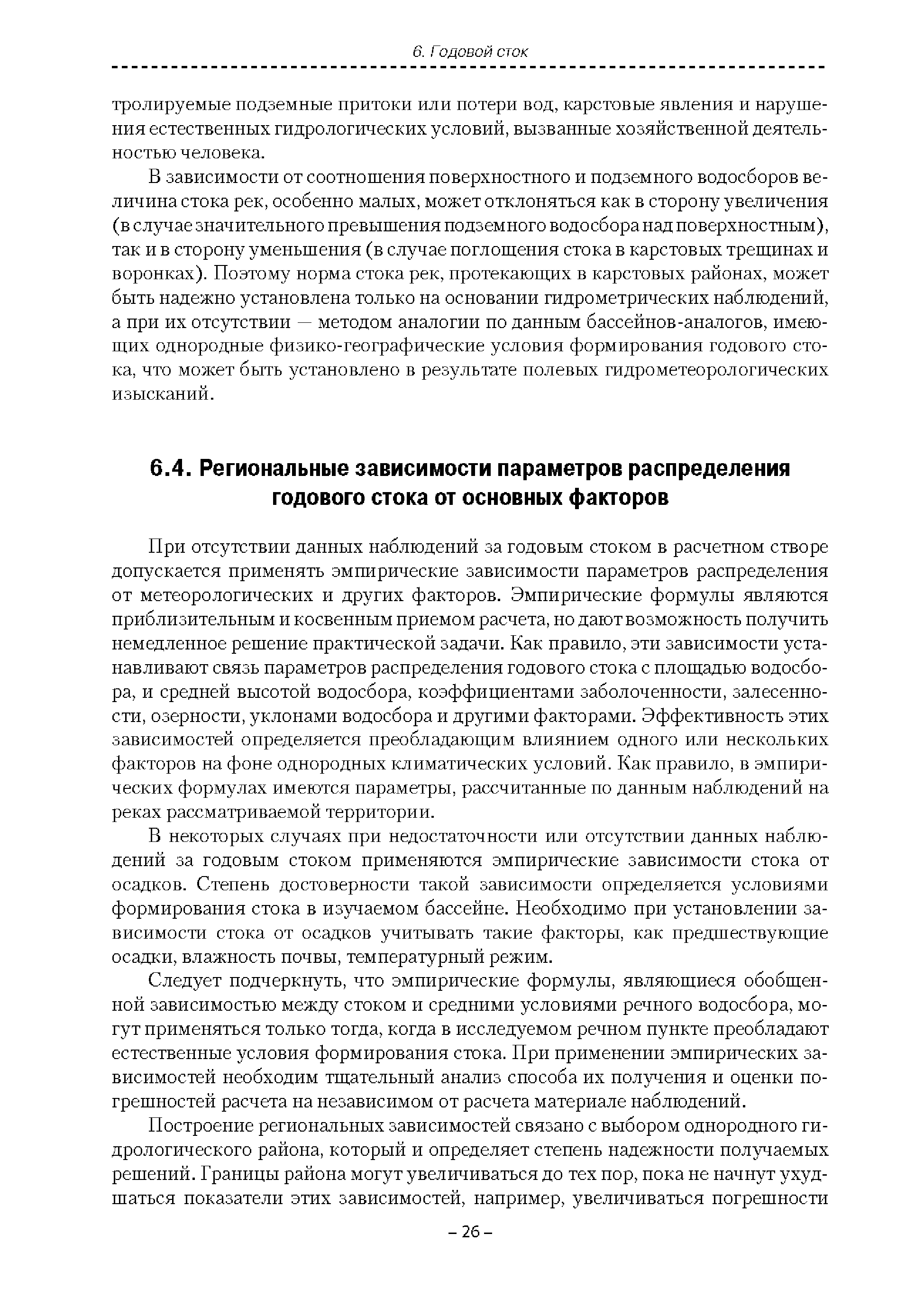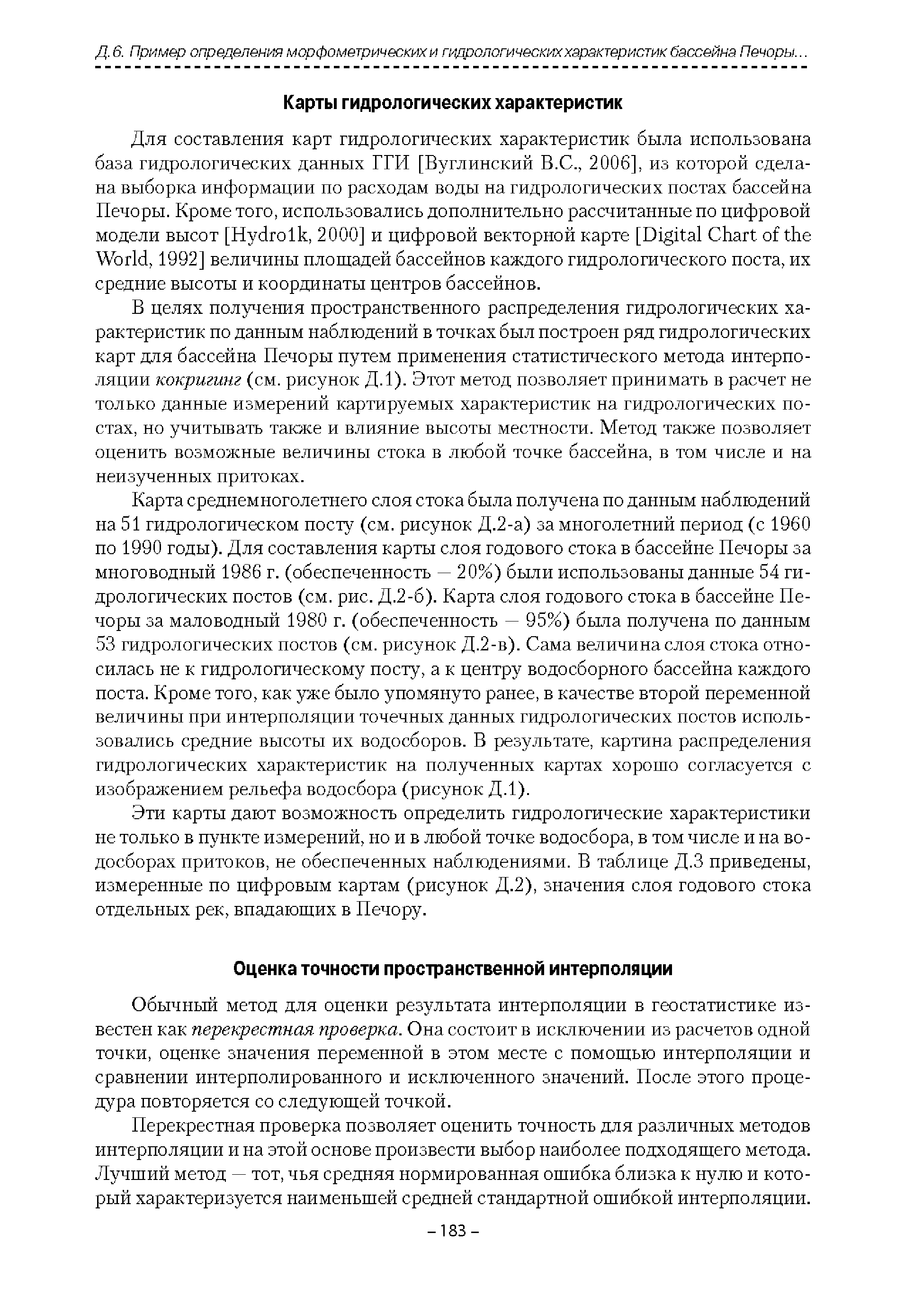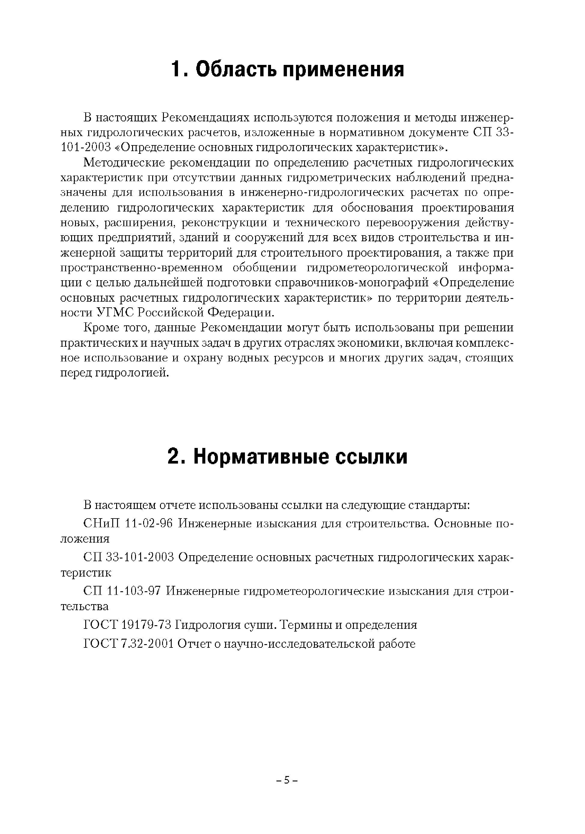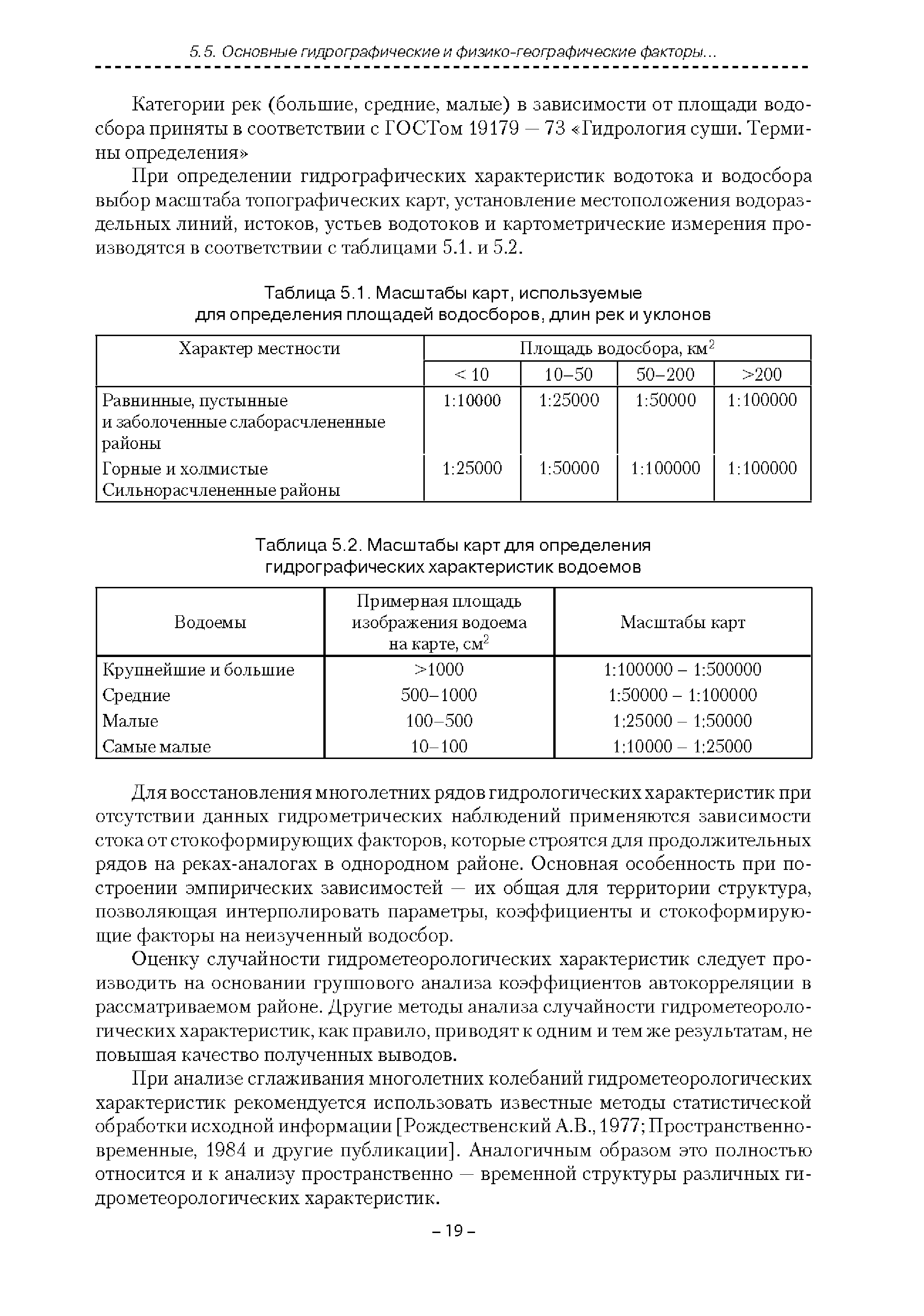 | Оглавление: | Введение 1. Область применения 2. Нормативные ссылки 3. Термины и определения 4. Обозначения и сокращения 5. Общие положения 5.1. Исходная гидрометеорологическая информация 5.2. Оценка качества исходной гидрометеорологической информации 5.3. Оценка качества определения расчетных гидрологических характеристик 5.4. Основные методы определения расчетных гидрогеологических характеристик 6. Годовой сток 6.1. Карты параметров распределения годового стока 6.2. Карты изолиний годового стока за конкретные годы 6.3. Поправочные коэффициенты к картам параметров распределения для малых рек 6.4. Региональные зависимости параметров распределения годового стока от основных факторов 6.5. Определение коэффициентов вариации, асимметрии и автокорреляции 6.6. Определение параметров стока на основе метода оптимальной линейной интерполяции 6.7. Определение значений стока по интерполяции по длине реки 6.8. Расчеты годового стока на основе суммы сезонных компонент 6.9. Учет влияния хозяйственной деятельности 7. Внутригодовое распределение стока 8. Максимальный сток рек 8.1. Весеннее половодье 8.2. Дождевые паводки 8.3. Гидрографы стока воды рек весеннего половодья и дождевых паводков 9. Минимальный сток воды рек 10. Расчет наивысших уровней воды рек 10.1. Полевые изыскания 10.2. Определение расчетных наивысших уровней воды, обусловленных весенним половодьем и дождевыми паводками на реках 10.3. Расчет наивысших зажорных и заторных уровней воды 11. Определение расчетных уровней воды за безледоставный период для установления границ водоохранных зон и прибрежных защитных полос 11.1. Основные положения, регламентирующие порядок определения водоохранных зон и прибрежных защитных полос 11.2. Методика определения береговой линии водных объектов при отсутствии данных наблюдений 12. Определение зон затопления для уровней воды различной обеспеченности Приложение А. Примеры Приложение Б. Таблицы Приложение В. Рекомендации по оценке параметров формул 1-го типа Приложение Г. Порядок уточнения ординат кривых редукции осадков и параметров формулы предельной интенсивности Приложение Д. Пространственная интерполяция гидрогеологических характеристик с использованием ГИС-технологии Список используемых источников |