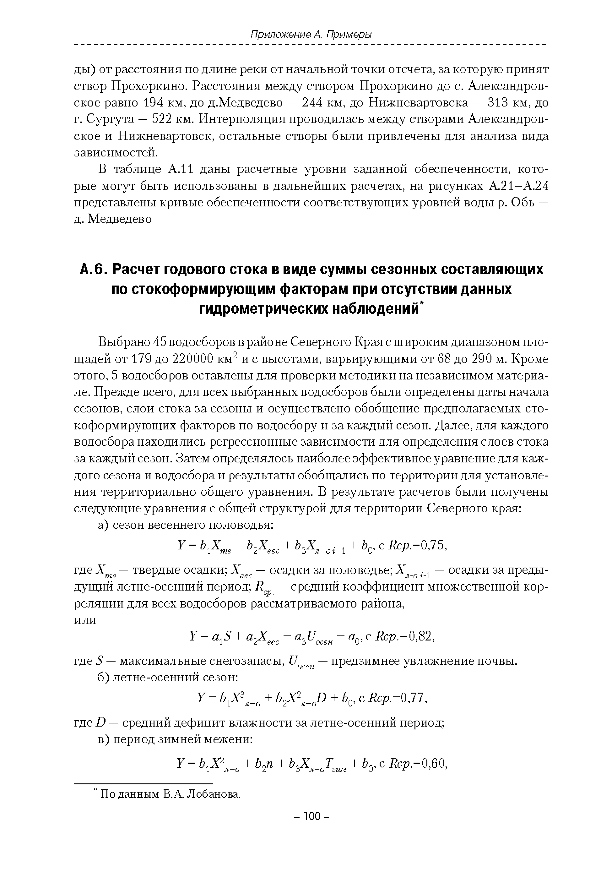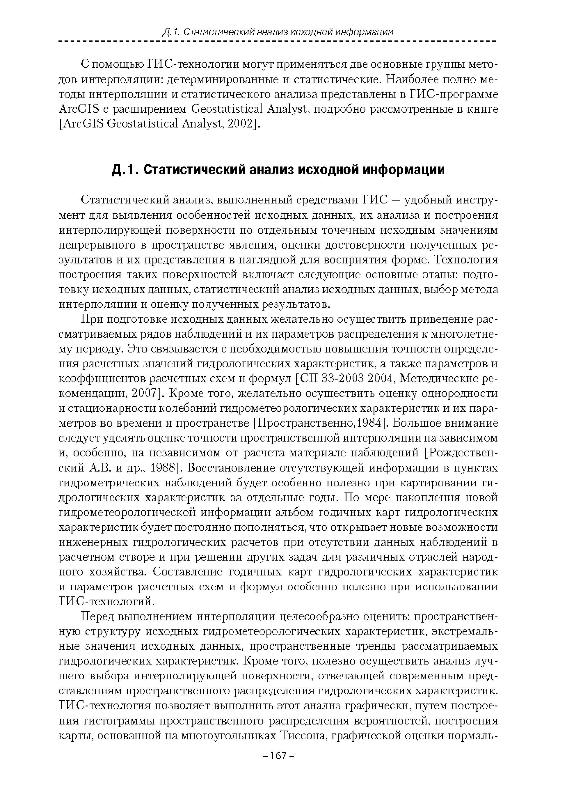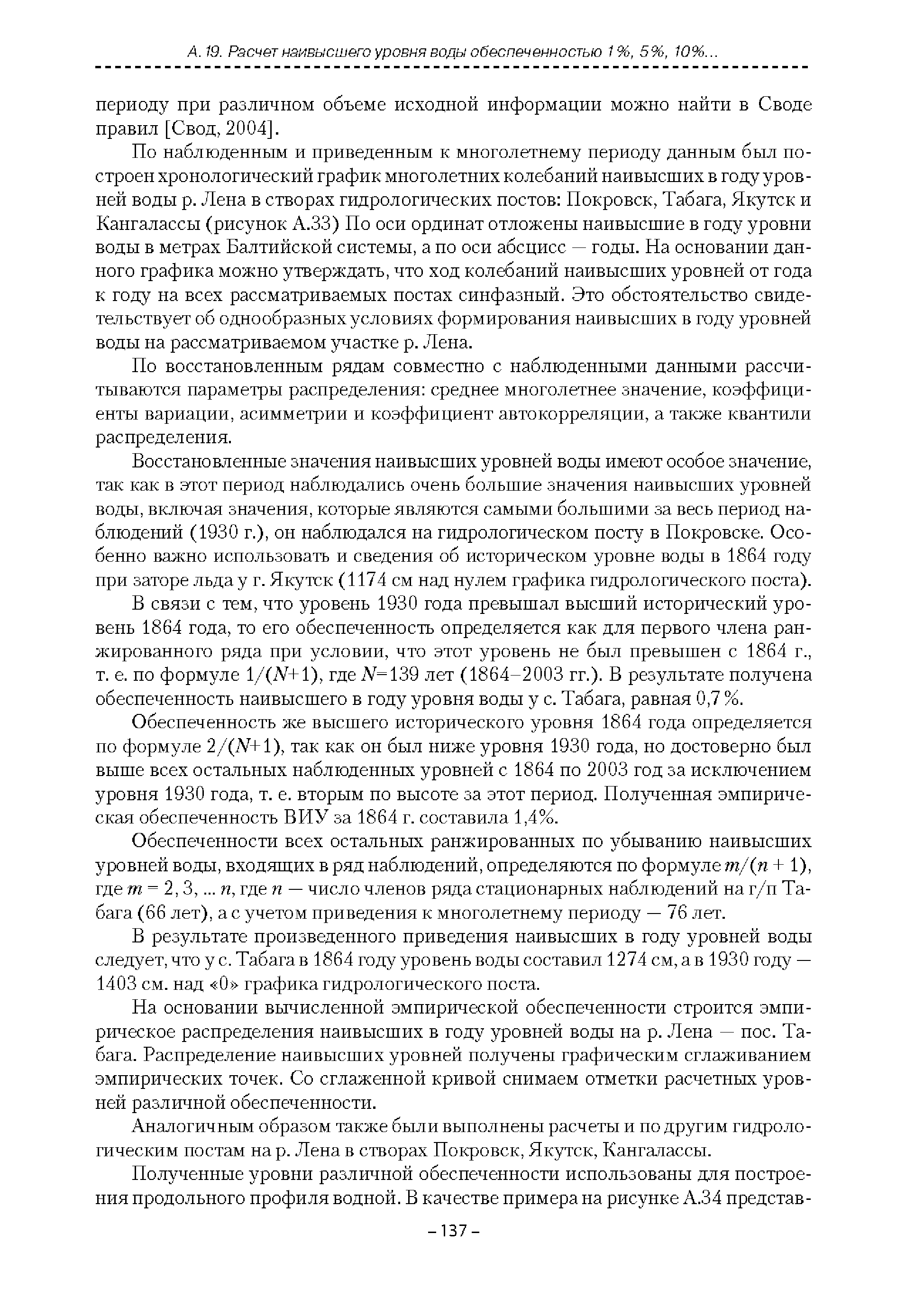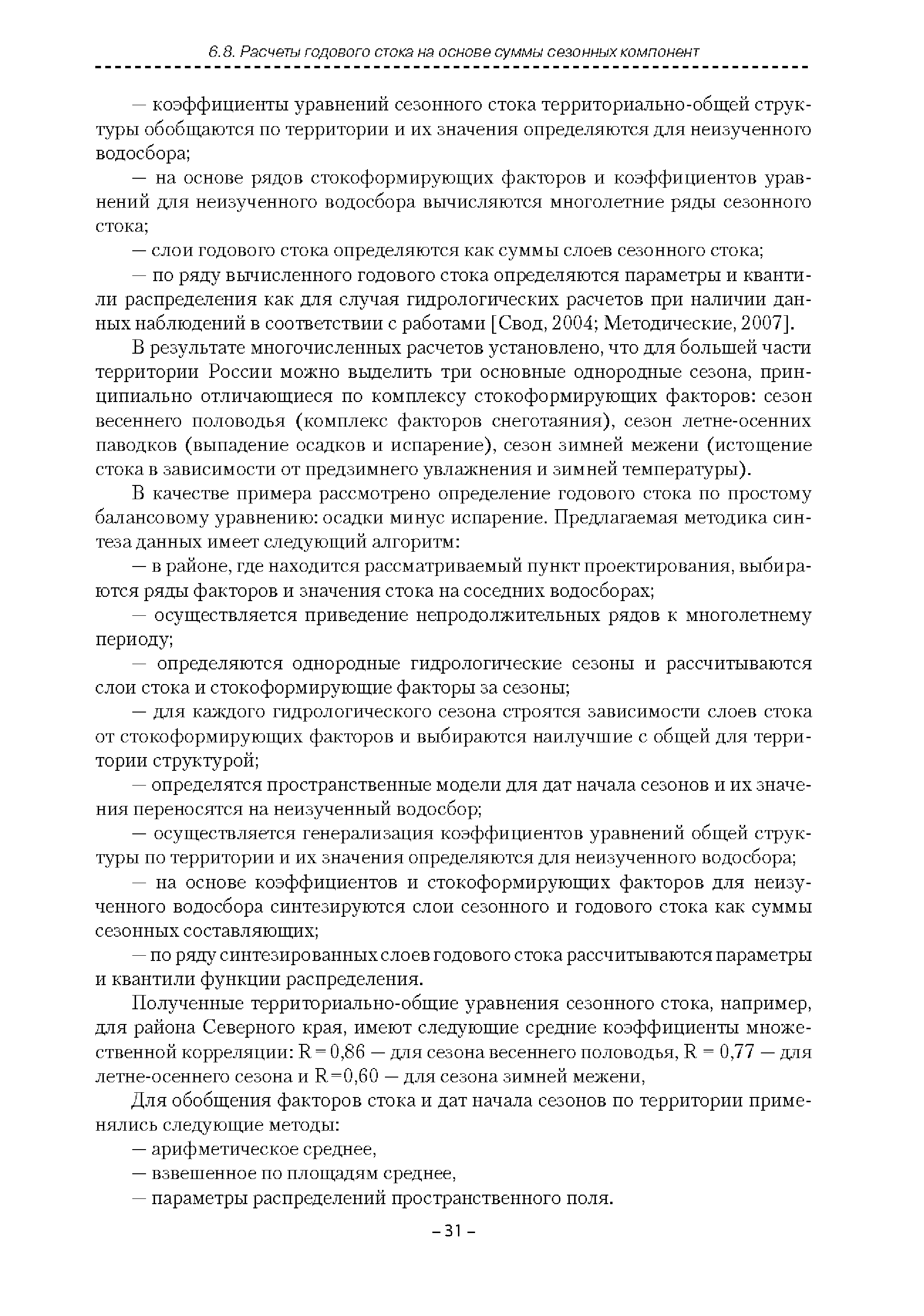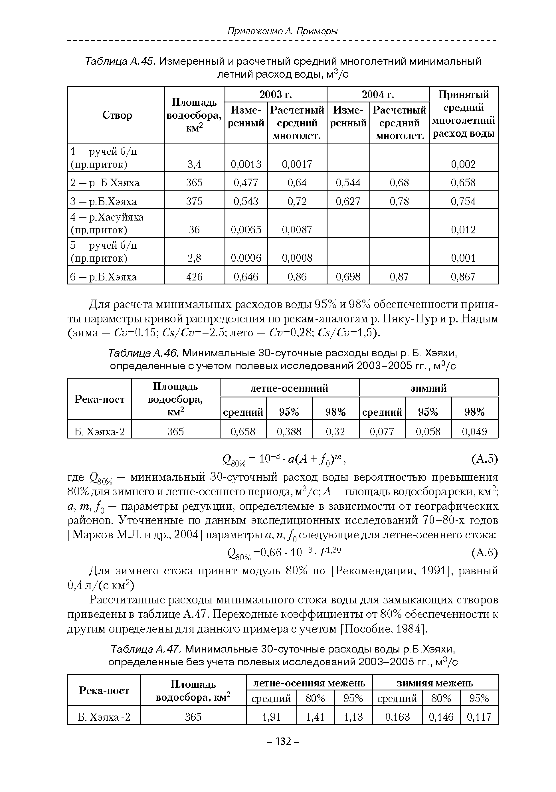 | Оглавление: | Введение 1. Область применения 2. Нормативные ссылки 3. Термины и определения 4. Обозначения и сокращения 5. Общие положения 5.1. Исходная гидрометеорологическая информация 5.2. Оценка качества исходной гидрометеорологической информации 5.3. Оценка качества определения расчетных гидрологических характеристик 5.4. Основные методы определения расчетных гидрогеологических характеристик 6. Годовой сток 6.1. Карты параметров распределения годового стока 6.2. Карты изолиний годового стока за конкретные годы 6.3. Поправочные коэффициенты к картам параметров распределения для малых рек 6.4. Региональные зависимости параметров распределения годового стока от основных факторов 6.5. Определение коэффициентов вариации, асимметрии и автокорреляции 6.6. Определение параметров стока на основе метода оптимальной линейной интерполяции 6.7. Определение значений стока по интерполяции по длине реки 6.8. Расчеты годового стока на основе суммы сезонных компонент 6.9. Учет влияния хозяйственной деятельности 7. Внутригодовое распределение стока 8. Максимальный сток рек 8.1. Весеннее половодье 8.2. Дождевые паводки 8.3. Гидрографы стока воды рек весеннего половодья и дождевых паводков 9. Минимальный сток воды рек 10. Расчет наивысших уровней воды рек 10.1. Полевые изыскания 10.2. Определение расчетных наивысших уровней воды, обусловленных весенним половодьем и дождевыми паводками на реках 10.3. Расчет наивысших зажорных и заторных уровней воды 11. Определение расчетных уровней воды за безледоставный период для установления границ водоохранных зон и прибрежных защитных полос 11.1. Основные положения, регламентирующие порядок определения водоохранных зон и прибрежных защитных полос 11.2. Методика определения береговой линии водных объектов при отсутствии данных наблюдений 12. Определение зон затопления для уровней воды различной обеспеченности Приложение А. Примеры Приложение Б. Таблицы Приложение В. Рекомендации по оценке параметров формул 1-го типа Приложение Г. Порядок уточнения ординат кривых редукции осадков и параметров формулы предельной интенсивности Приложение Д. Пространственная интерполяция гидрогеологических характеристик с использованием ГИС-технологии Список используемых источников |