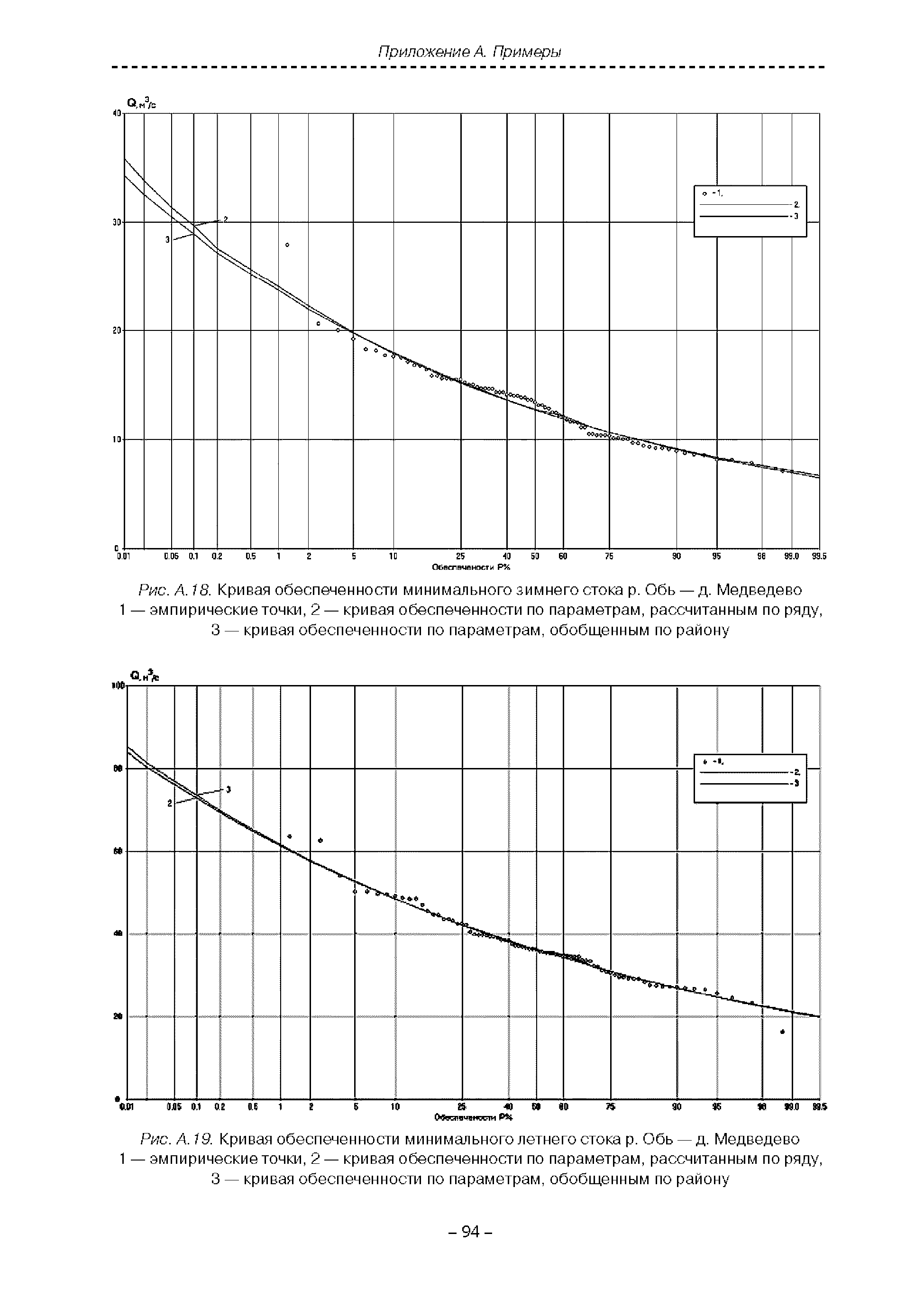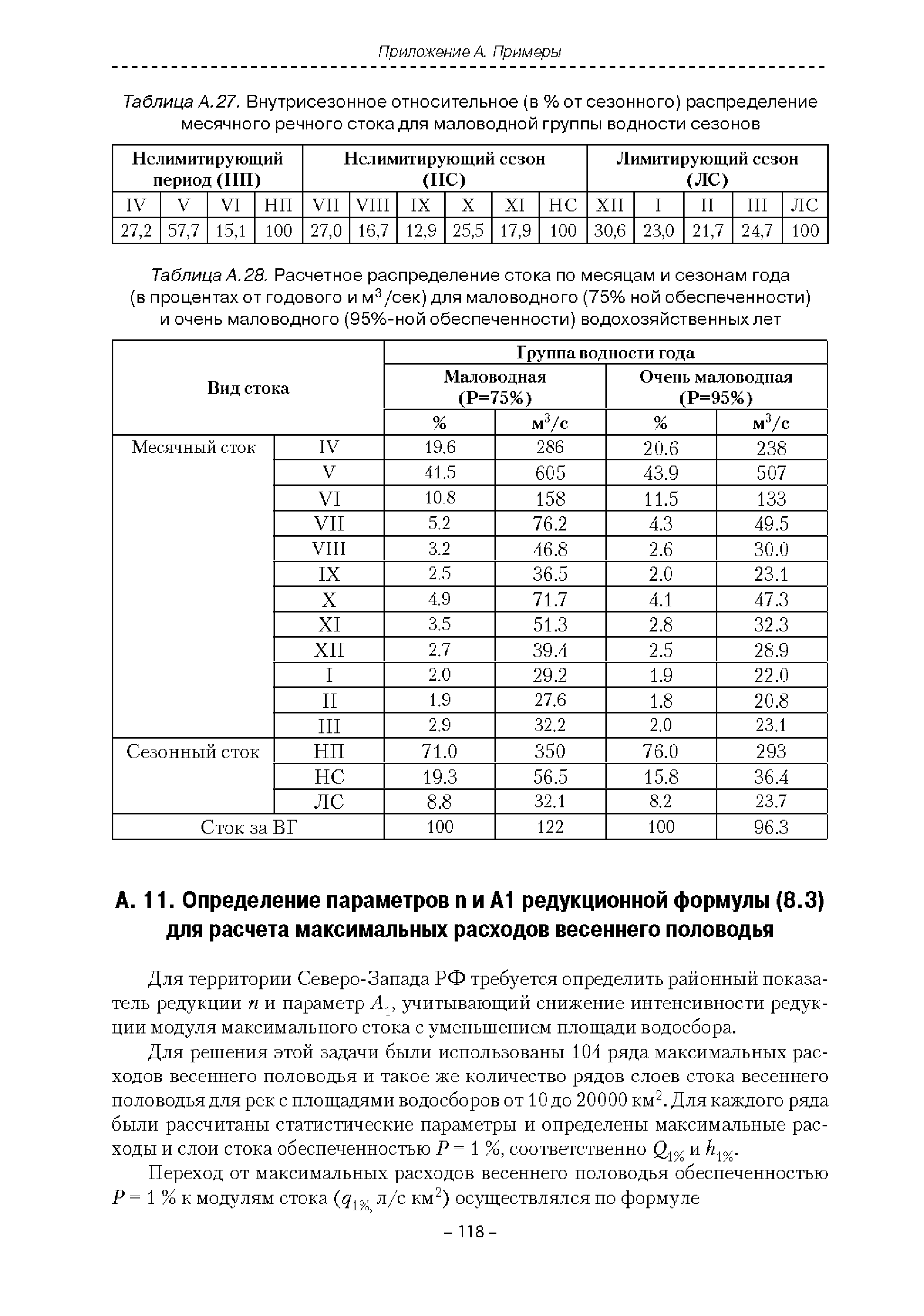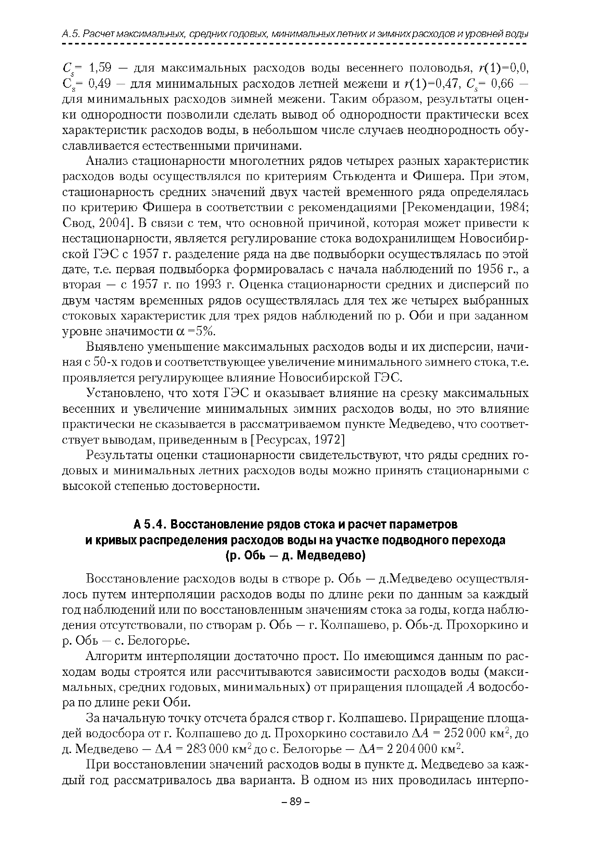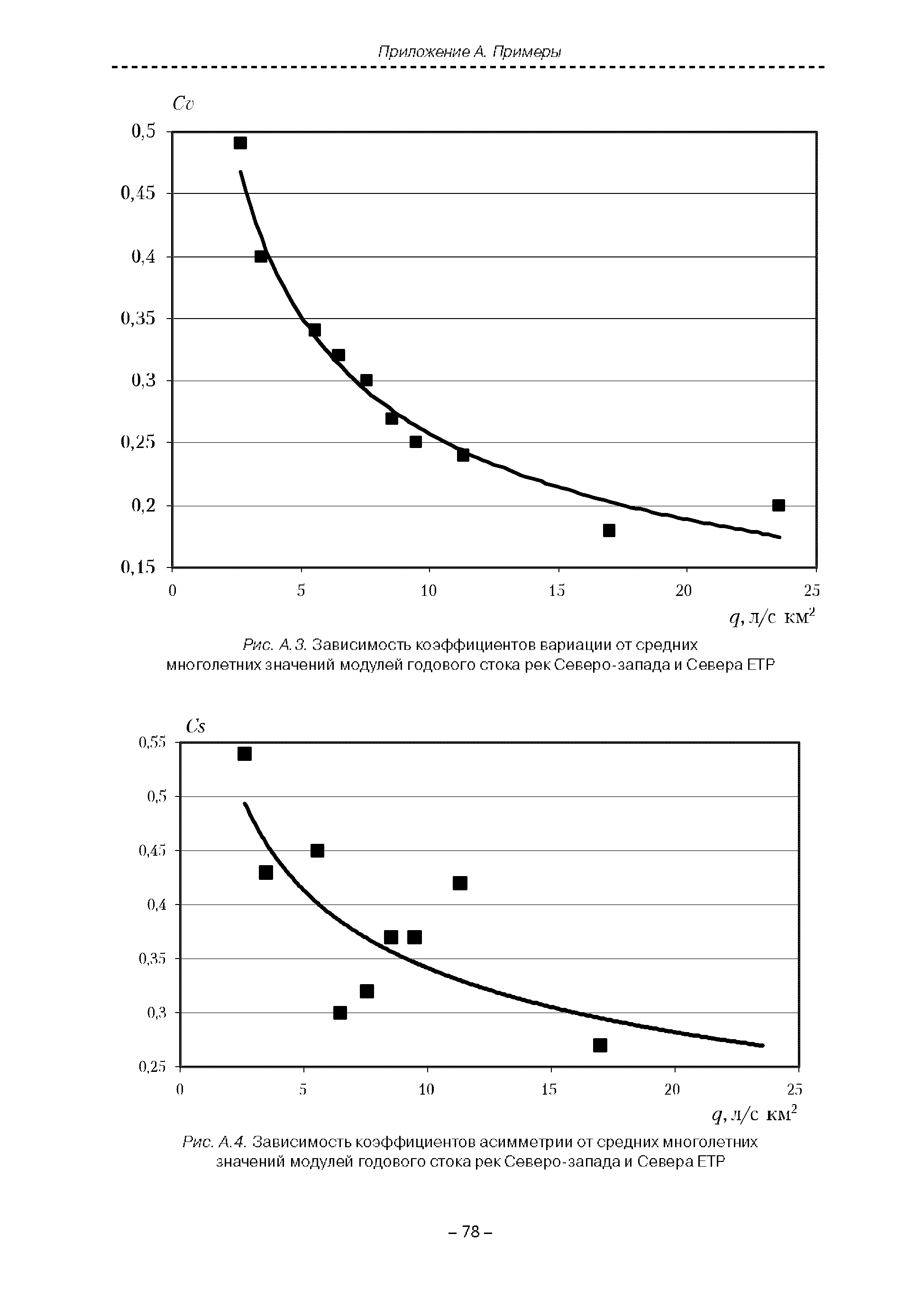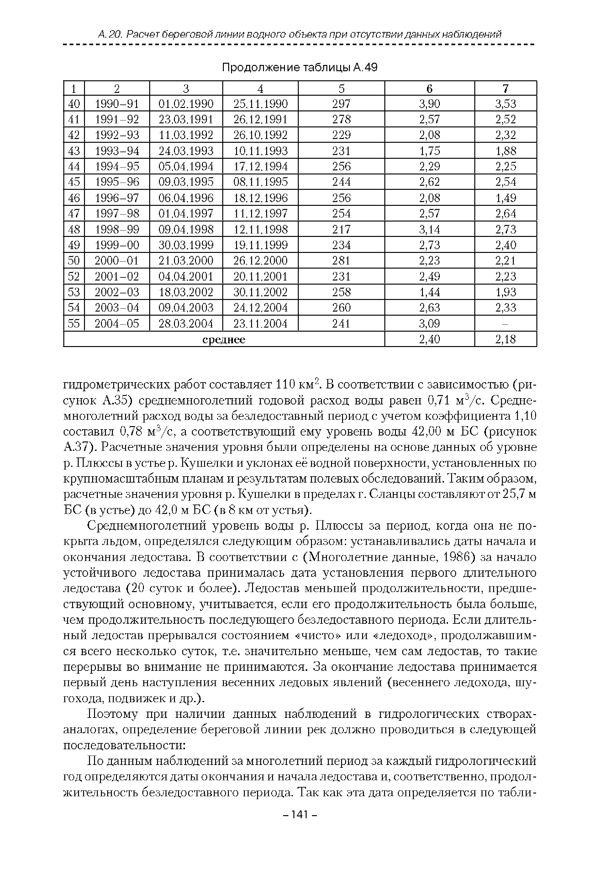 | Оглавление: | Введение 1. Область применения 2. Нормативные ссылки 3. Термины и определения 4. Обозначения и сокращения 5. Общие положения 5.1. Исходная гидрометеорологическая информация 5.2. Оценка качества исходной гидрометеорологической информации 5.3. Оценка качества определения расчетных гидрологических характеристик 5.4. Основные методы определения расчетных гидрогеологических характеристик 6. Годовой сток 6.1. Карты параметров распределения годового стока 6.2. Карты изолиний годового стока за конкретные годы 6.3. Поправочные коэффициенты к картам параметров распределения для малых рек 6.4. Региональные зависимости параметров распределения годового стока от основных факторов 6.5. Определение коэффициентов вариации, асимметрии и автокорреляции 6.6. Определение параметров стока на основе метода оптимальной линейной интерполяции 6.7. Определение значений стока по интерполяции по длине реки 6.8. Расчеты годового стока на основе суммы сезонных компонент 6.9. Учет влияния хозяйственной деятельности 7. Внутригодовое распределение стока 8. Максимальный сток рек 8.1. Весеннее половодье 8.2. Дождевые паводки 8.3. Гидрографы стока воды рек весеннего половодья и дождевых паводков 9. Минимальный сток воды рек 10. Расчет наивысших уровней воды рек 10.1. Полевые изыскания 10.2. Определение расчетных наивысших уровней воды, обусловленных весенним половодьем и дождевыми паводками на реках 10.3. Расчет наивысших зажорных и заторных уровней воды 11. Определение расчетных уровней воды за безледоставный период для установления границ водоохранных зон и прибрежных защитных полос 11.1. Основные положения, регламентирующие порядок определения водоохранных зон и прибрежных защитных полос 11.2. Методика определения береговой линии водных объектов при отсутствии данных наблюдений 12. Определение зон затопления для уровней воды различной обеспеченности Приложение А. Примеры Приложение Б. Таблицы Приложение В. Рекомендации по оценке параметров формул 1-го типа Приложение Г. Порядок уточнения ординат кривых редукции осадков и параметров формулы предельной интенсивности Приложение Д. Пространственная интерполяция гидрогеологических характеристик с использованием ГИС-технологии Список используемых источников |