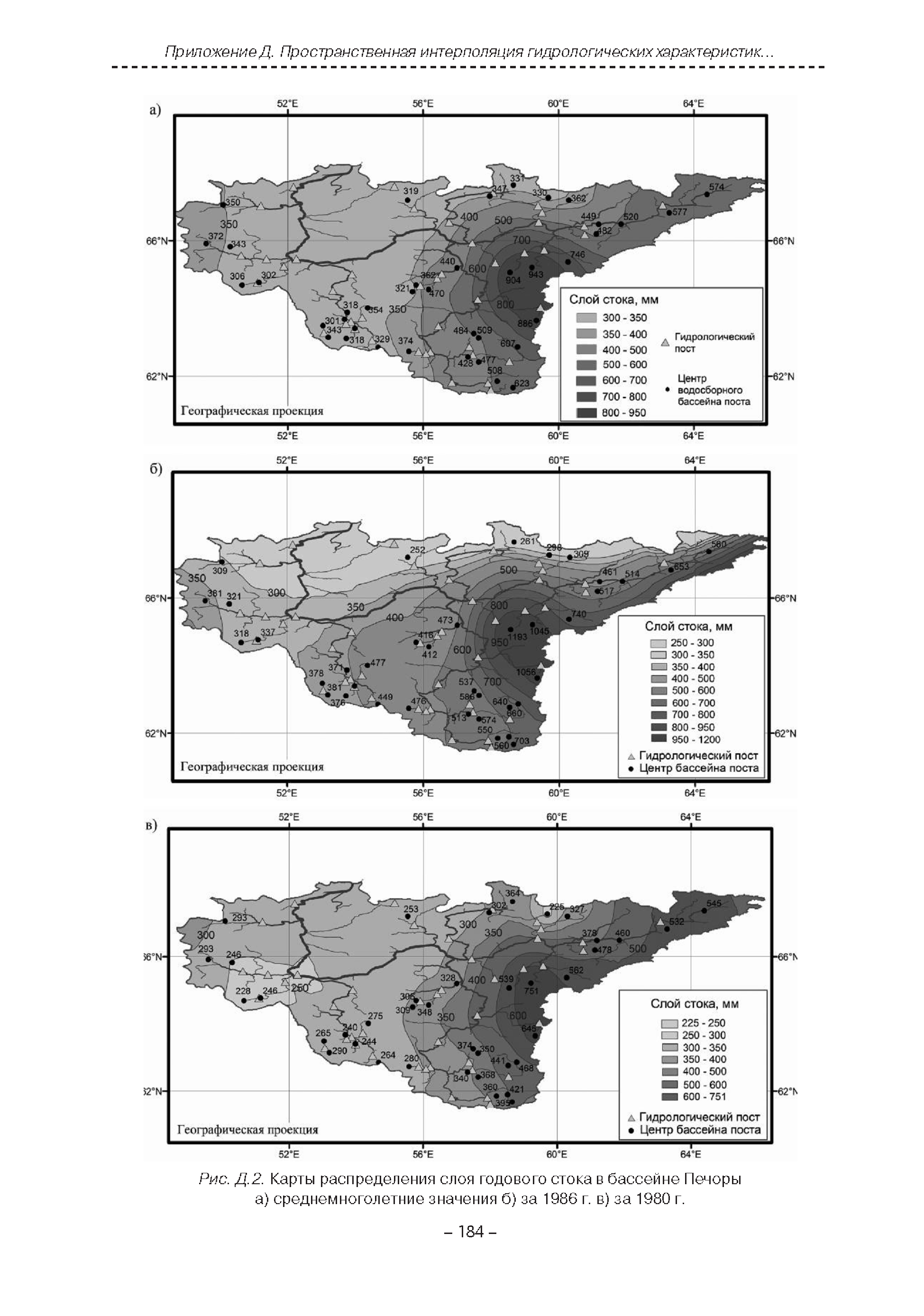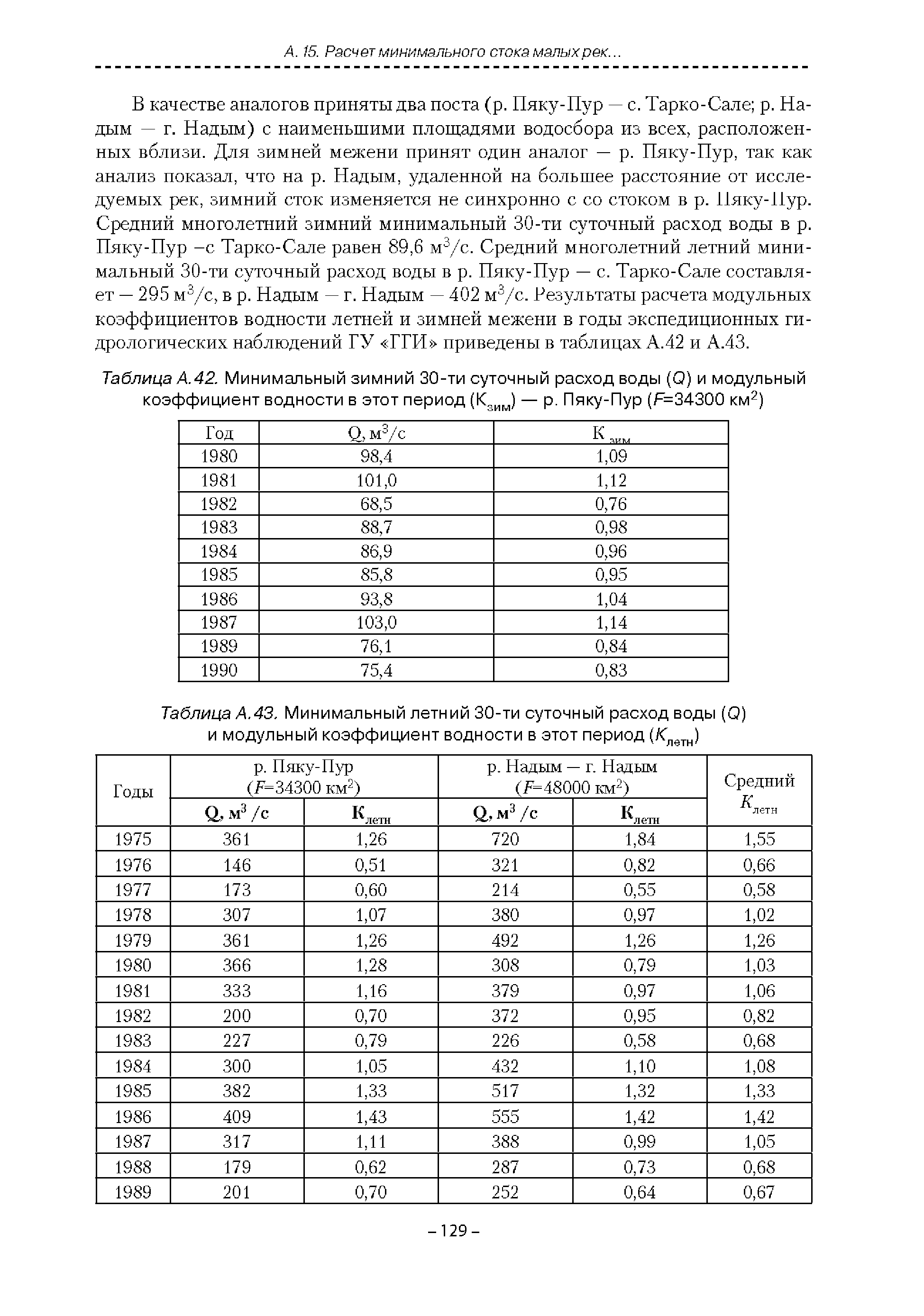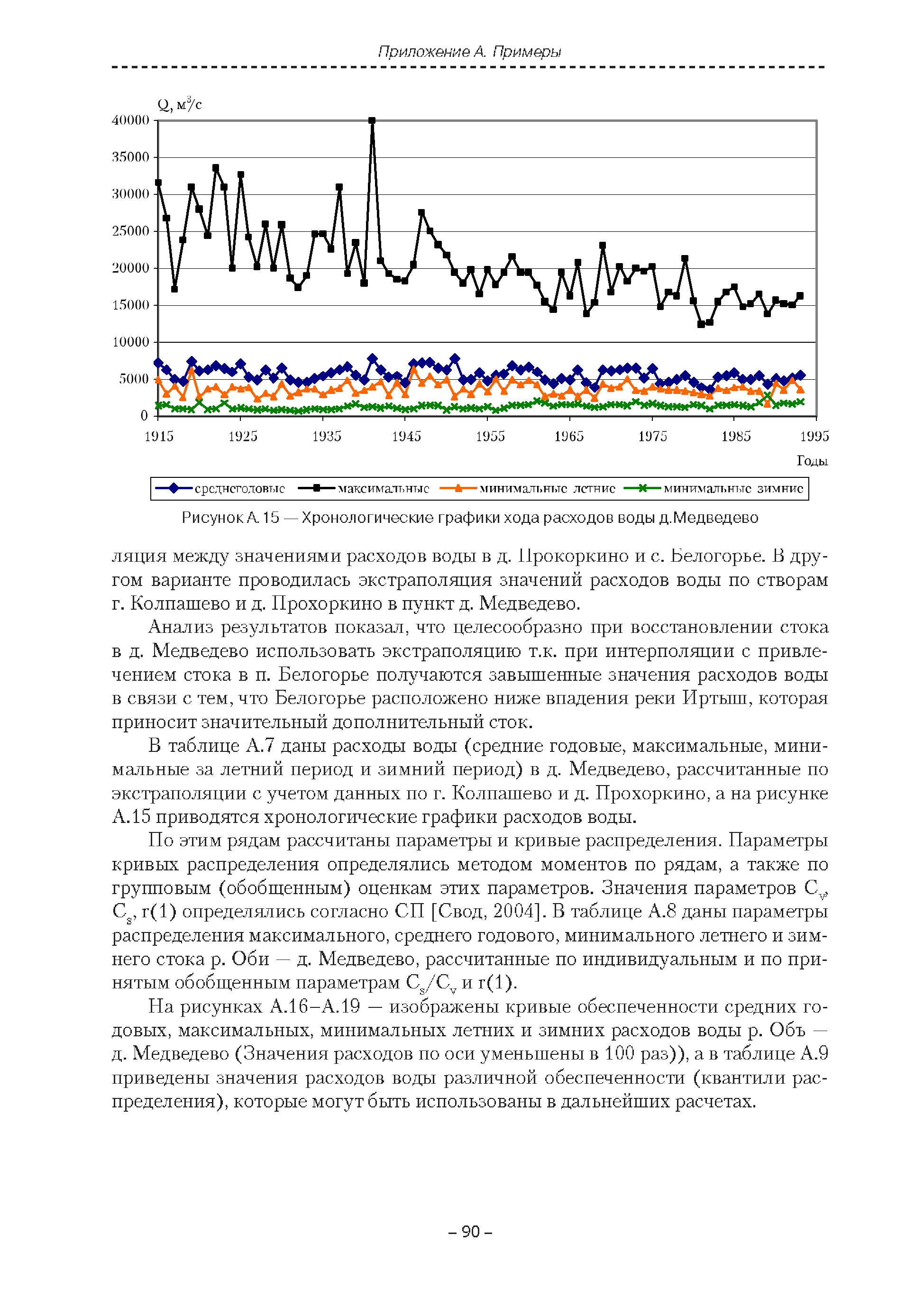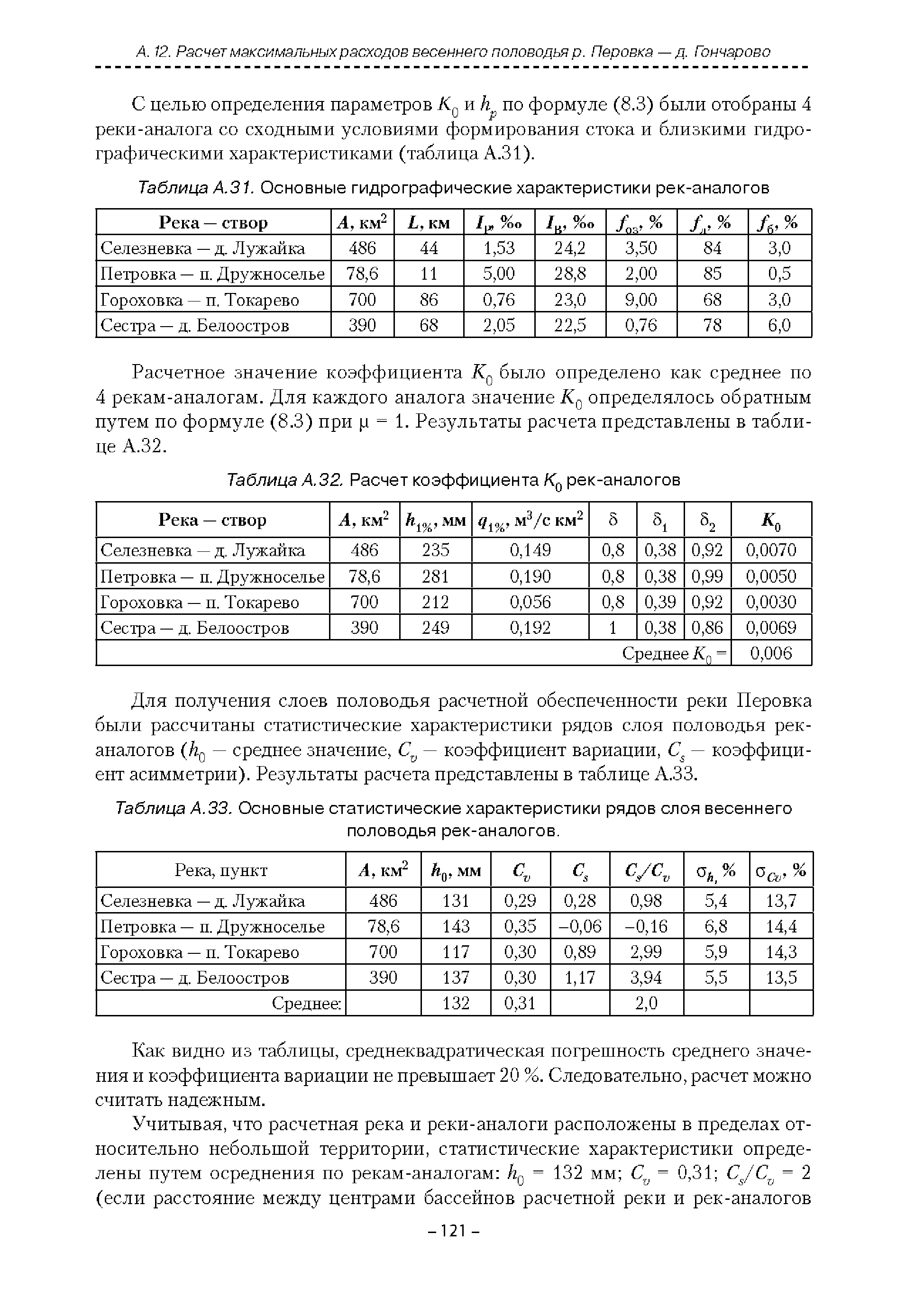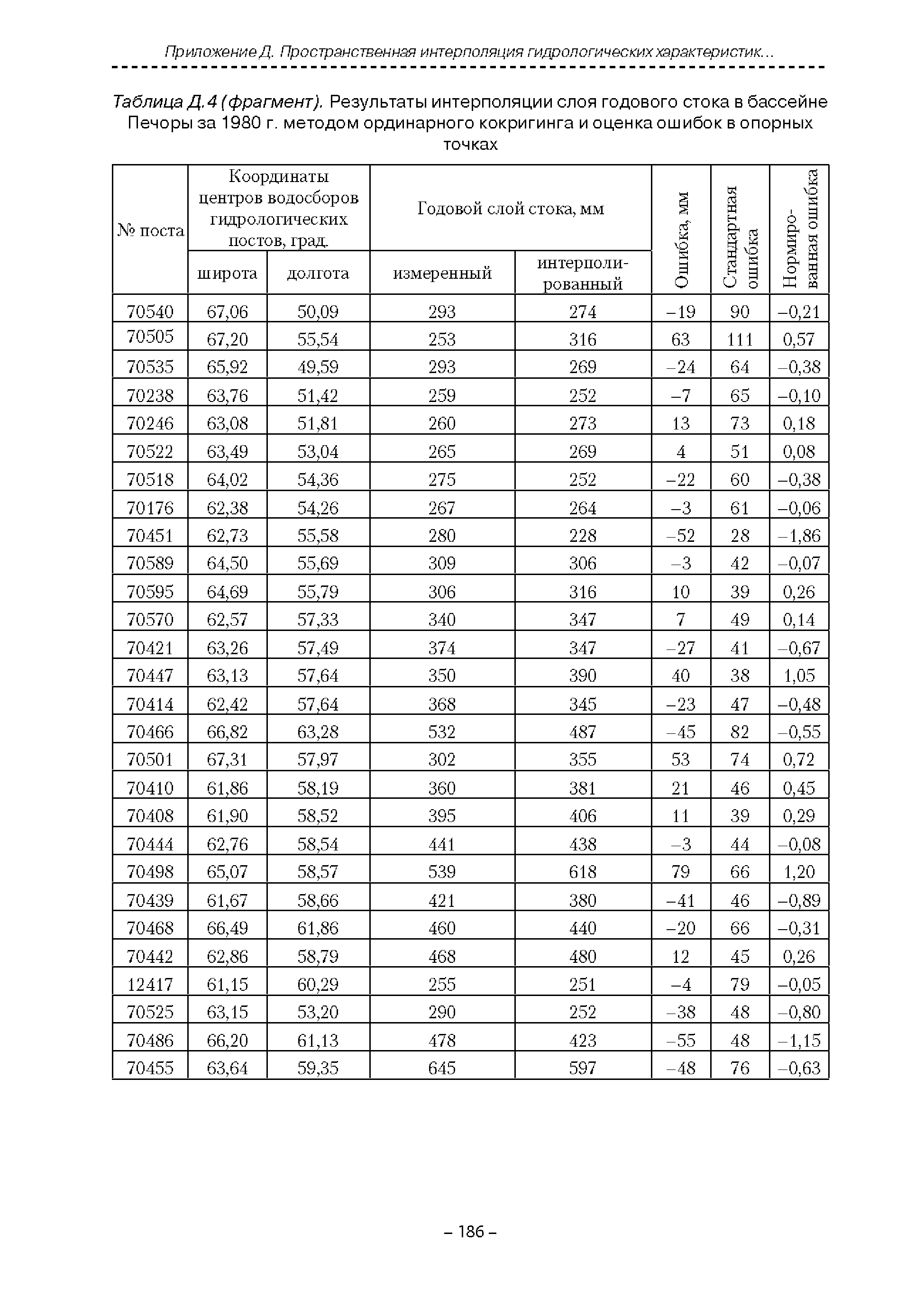 | Оглавление: | Введение 1. Область применения 2. Нормативные ссылки 3. Термины и определения 4. Обозначения и сокращения 5. Общие положения 5.1. Исходная гидрометеорологическая информация 5.2. Оценка качества исходной гидрометеорологической информации 5.3. Оценка качества определения расчетных гидрологических характеристик 5.4. Основные методы определения расчетных гидрогеологических характеристик 6. Годовой сток 6.1. Карты параметров распределения годового стока 6.2. Карты изолиний годового стока за конкретные годы 6.3. Поправочные коэффициенты к картам параметров распределения для малых рек 6.4. Региональные зависимости параметров распределения годового стока от основных факторов 6.5. Определение коэффициентов вариации, асимметрии и автокорреляции 6.6. Определение параметров стока на основе метода оптимальной линейной интерполяции 6.7. Определение значений стока по интерполяции по длине реки 6.8. Расчеты годового стока на основе суммы сезонных компонент 6.9. Учет влияния хозяйственной деятельности 7. Внутригодовое распределение стока 8. Максимальный сток рек 8.1. Весеннее половодье 8.2. Дождевые паводки 8.3. Гидрографы стока воды рек весеннего половодья и дождевых паводков 9. Минимальный сток воды рек 10. Расчет наивысших уровней воды рек 10.1. Полевые изыскания 10.2. Определение расчетных наивысших уровней воды, обусловленных весенним половодьем и дождевыми паводками на реках 10.3. Расчет наивысших зажорных и заторных уровней воды 11. Определение расчетных уровней воды за безледоставный период для установления границ водоохранных зон и прибрежных защитных полос 11.1. Основные положения, регламентирующие порядок определения водоохранных зон и прибрежных защитных полос 11.2. Методика определения береговой линии водных объектов при отсутствии данных наблюдений 12. Определение зон затопления для уровней воды различной обеспеченности Приложение А. Примеры Приложение Б. Таблицы Приложение В. Рекомендации по оценке параметров формул 1-го типа Приложение Г. Порядок уточнения ординат кривых редукции осадков и параметров формулы предельной интенсивности Приложение Д. Пространственная интерполяция гидрогеологических характеристик с использованием ГИС-технологии Список используемых источников |