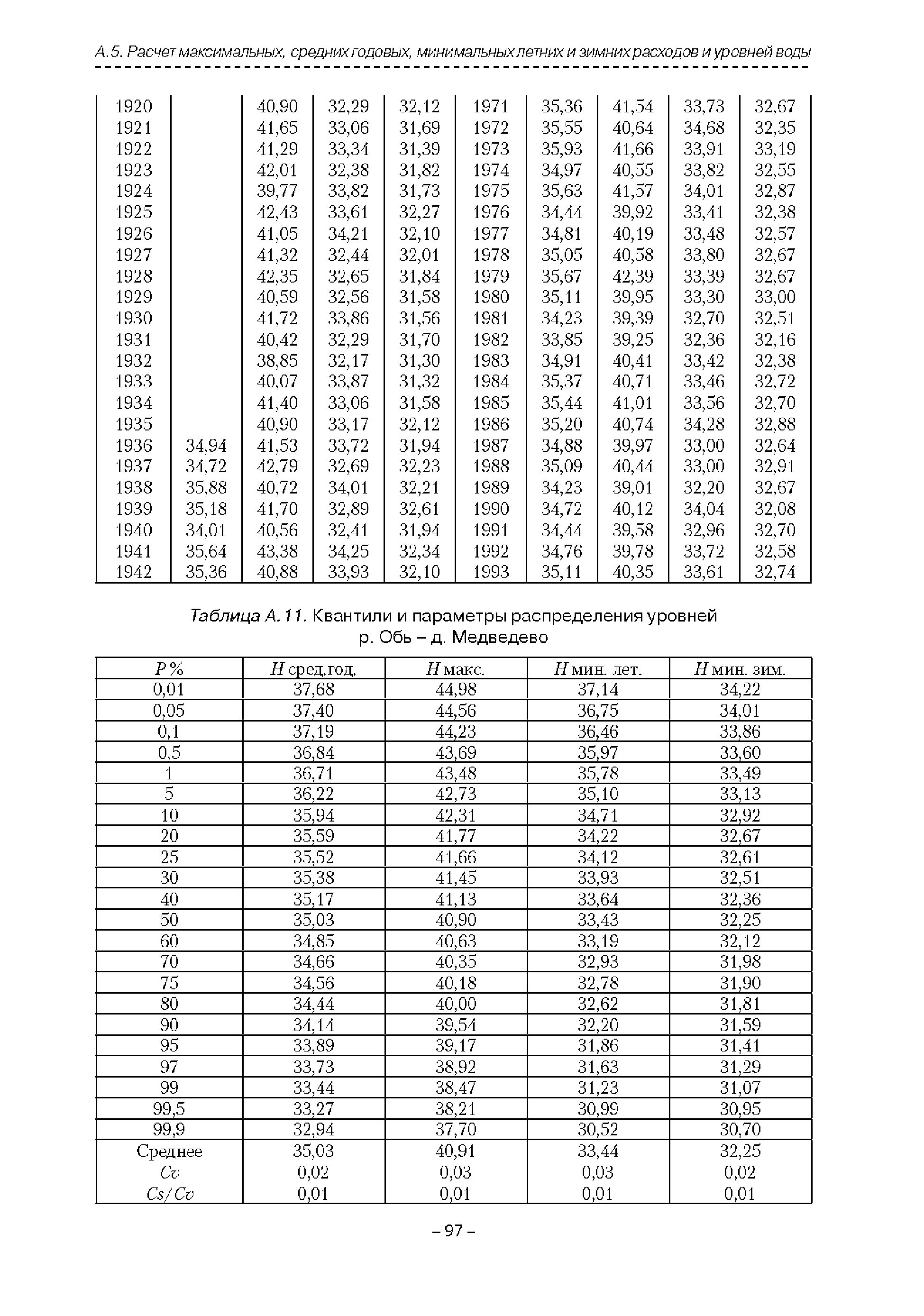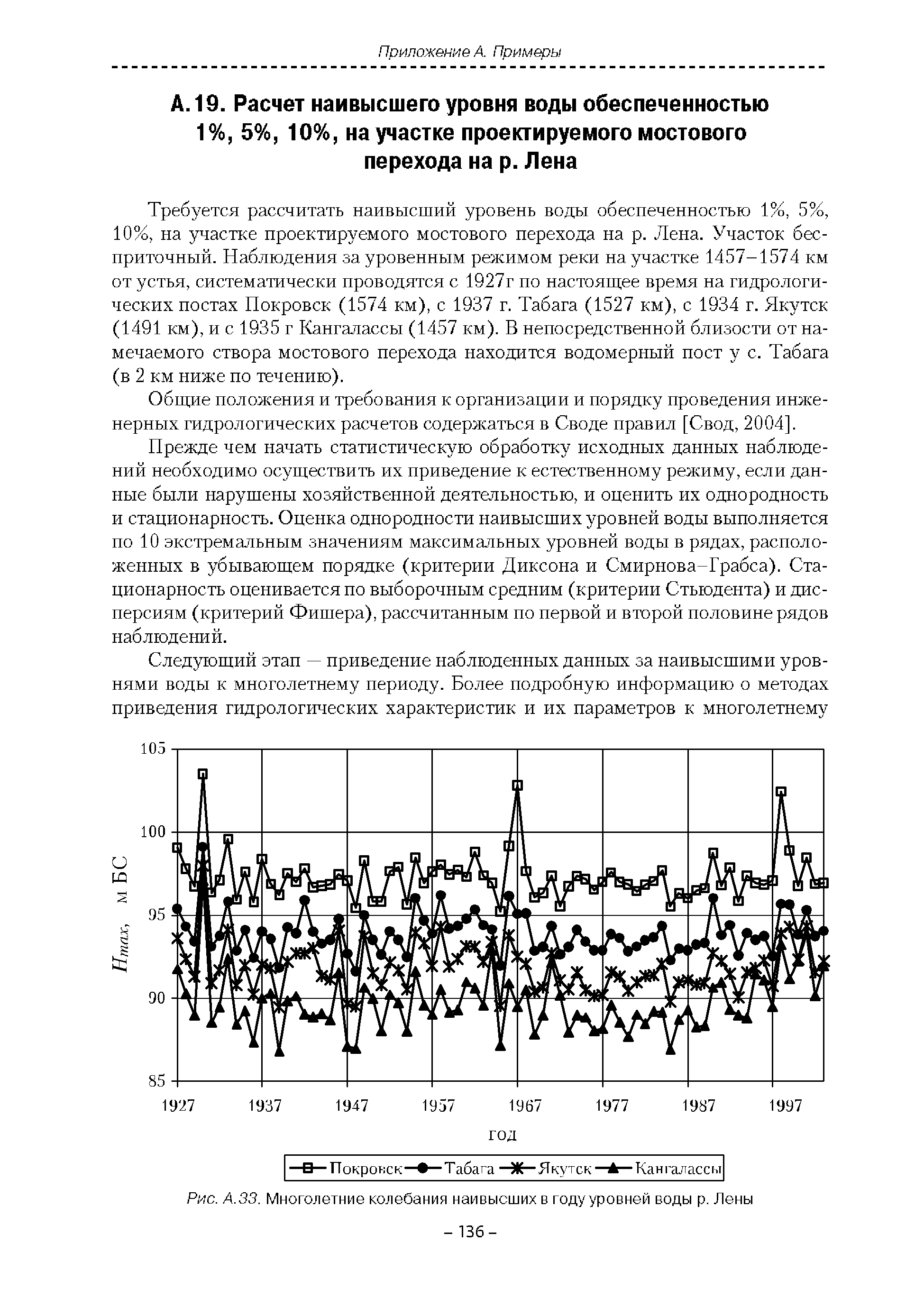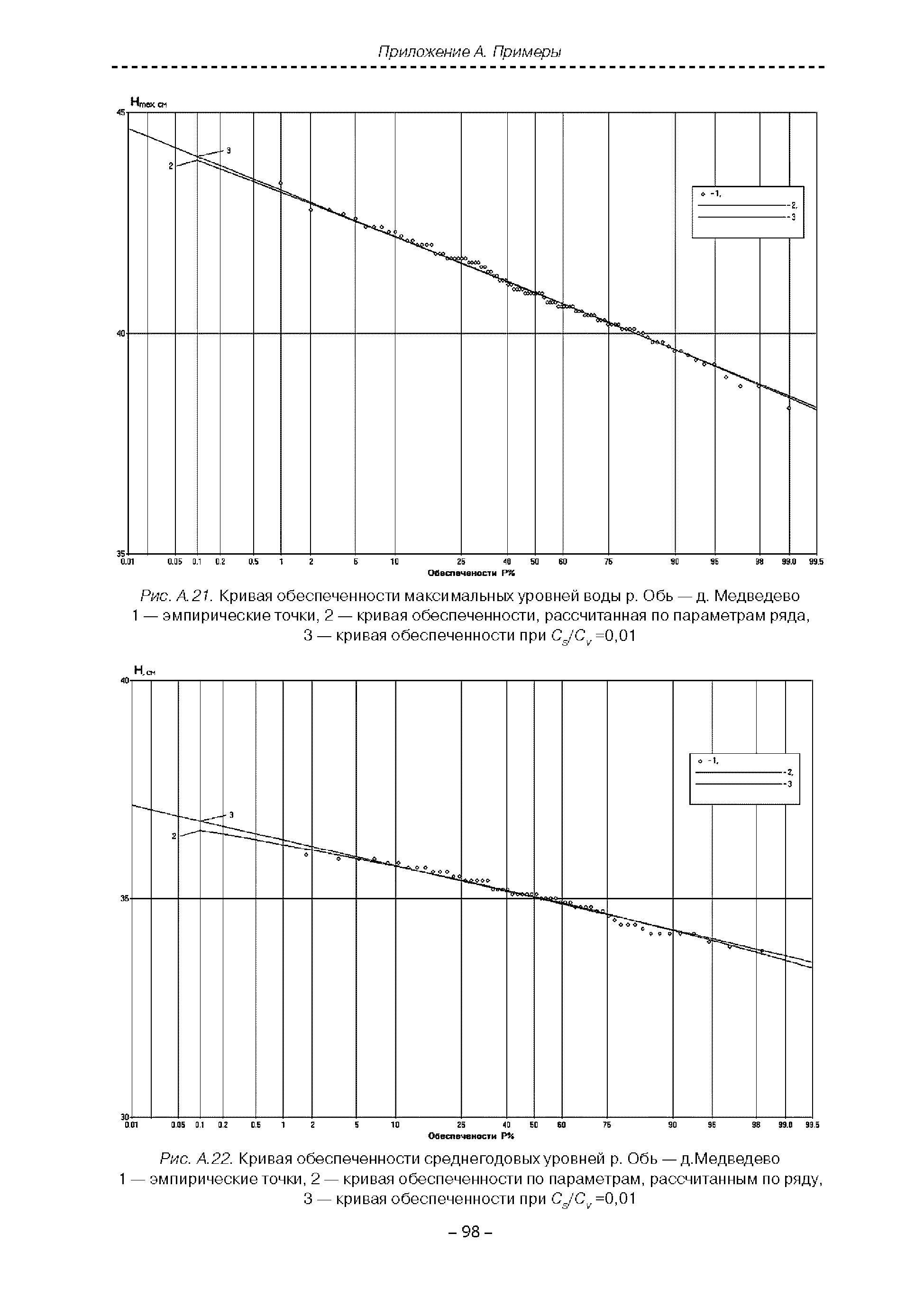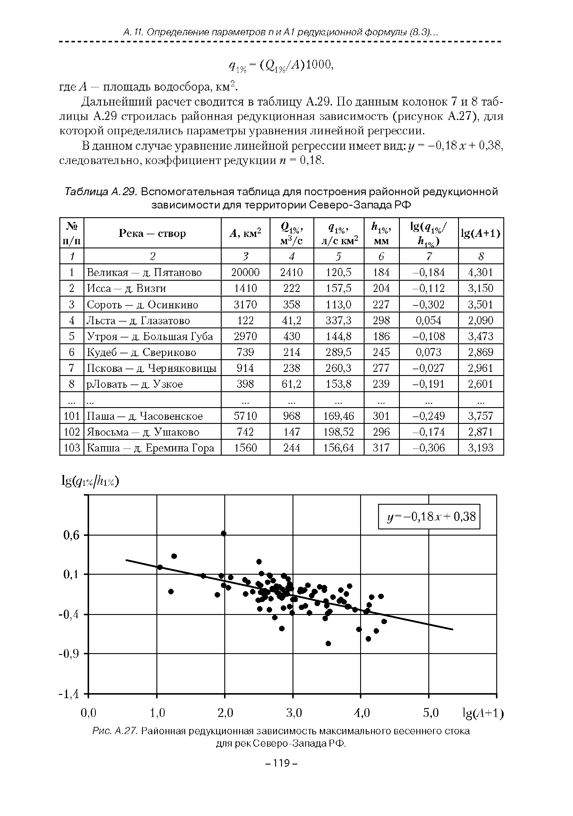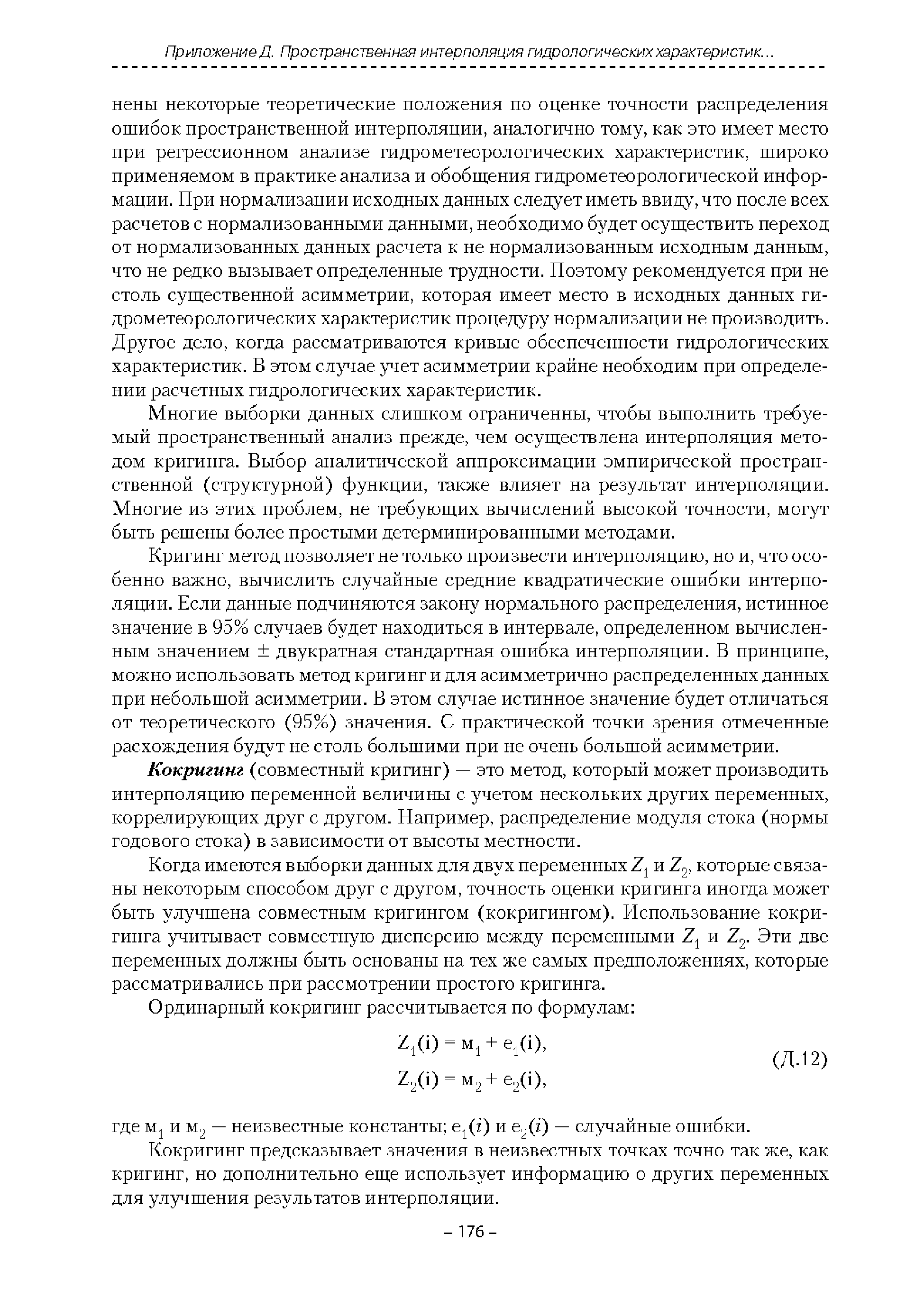 | Оглавление: | Введение 1. Область применения 2. Нормативные ссылки 3. Термины и определения 4. Обозначения и сокращения 5. Общие положения 5.1. Исходная гидрометеорологическая информация 5.2. Оценка качества исходной гидрометеорологической информации 5.3. Оценка качества определения расчетных гидрологических характеристик 5.4. Основные методы определения расчетных гидрогеологических характеристик 6. Годовой сток 6.1. Карты параметров распределения годового стока 6.2. Карты изолиний годового стока за конкретные годы 6.3. Поправочные коэффициенты к картам параметров распределения для малых рек 6.4. Региональные зависимости параметров распределения годового стока от основных факторов 6.5. Определение коэффициентов вариации, асимметрии и автокорреляции 6.6. Определение параметров стока на основе метода оптимальной линейной интерполяции 6.7. Определение значений стока по интерполяции по длине реки 6.8. Расчеты годового стока на основе суммы сезонных компонент 6.9. Учет влияния хозяйственной деятельности 7. Внутригодовое распределение стока 8. Максимальный сток рек 8.1. Весеннее половодье 8.2. Дождевые паводки 8.3. Гидрографы стока воды рек весеннего половодья и дождевых паводков 9. Минимальный сток воды рек 10. Расчет наивысших уровней воды рек 10.1. Полевые изыскания 10.2. Определение расчетных наивысших уровней воды, обусловленных весенним половодьем и дождевыми паводками на реках 10.3. Расчет наивысших зажорных и заторных уровней воды 11. Определение расчетных уровней воды за безледоставный период для установления границ водоохранных зон и прибрежных защитных полос 11.1. Основные положения, регламентирующие порядок определения водоохранных зон и прибрежных защитных полос 11.2. Методика определения береговой линии водных объектов при отсутствии данных наблюдений 12. Определение зон затопления для уровней воды различной обеспеченности Приложение А. Примеры Приложение Б. Таблицы Приложение В. Рекомендации по оценке параметров формул 1-го типа Приложение Г. Порядок уточнения ординат кривых редукции осадков и параметров формулы предельной интенсивности Приложение Д. Пространственная интерполяция гидрогеологических характеристик с использованием ГИС-технологии Список используемых источников |