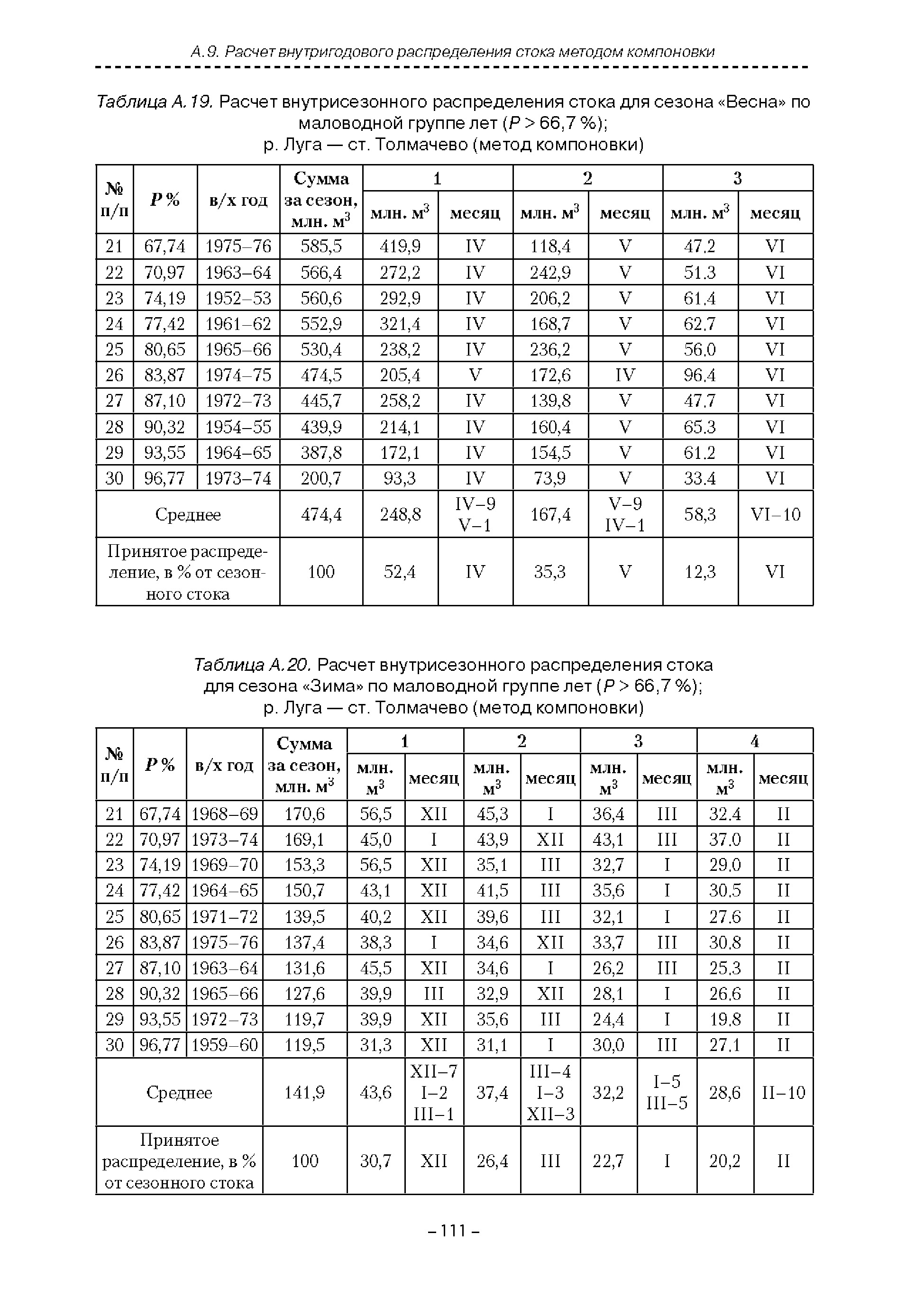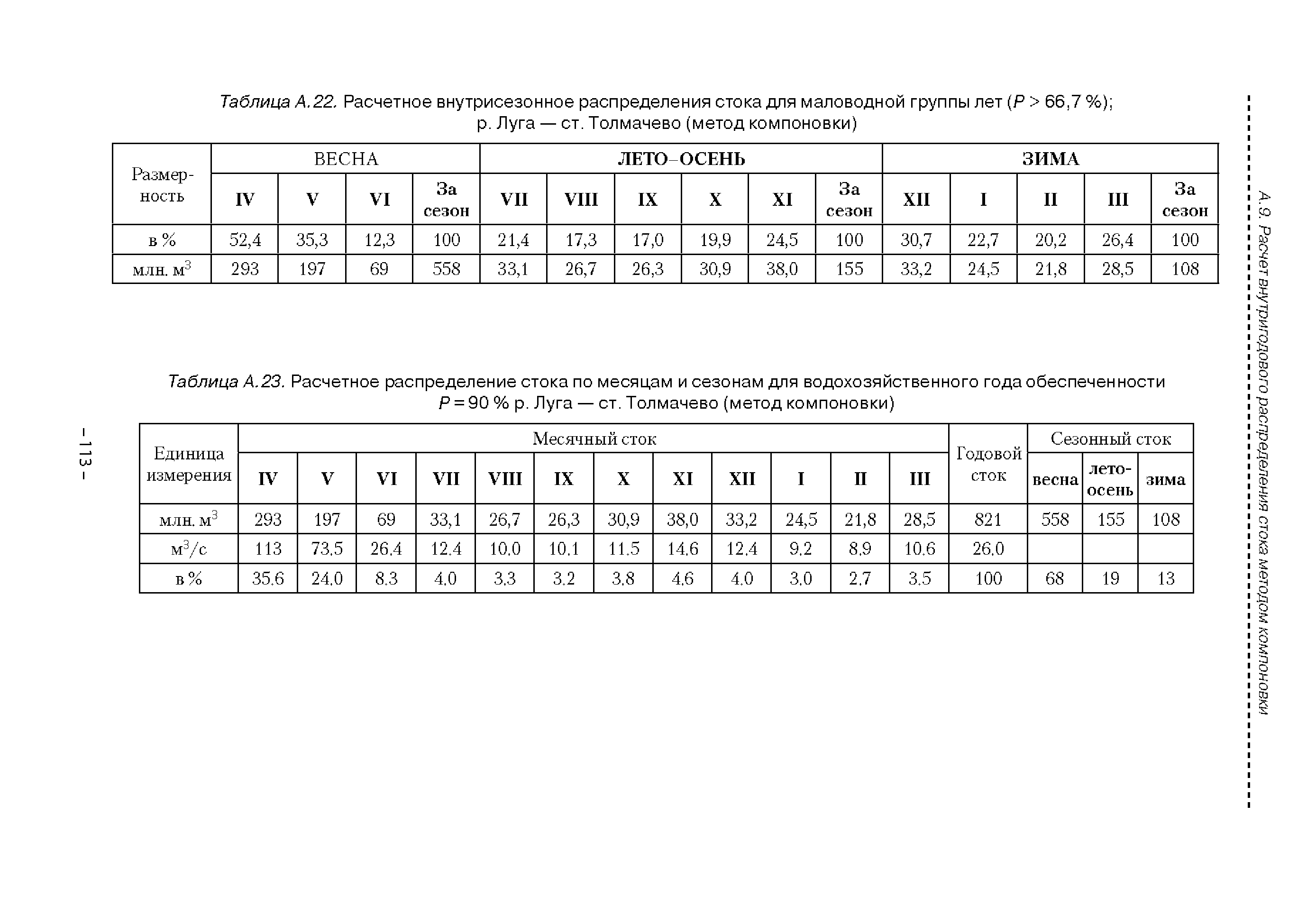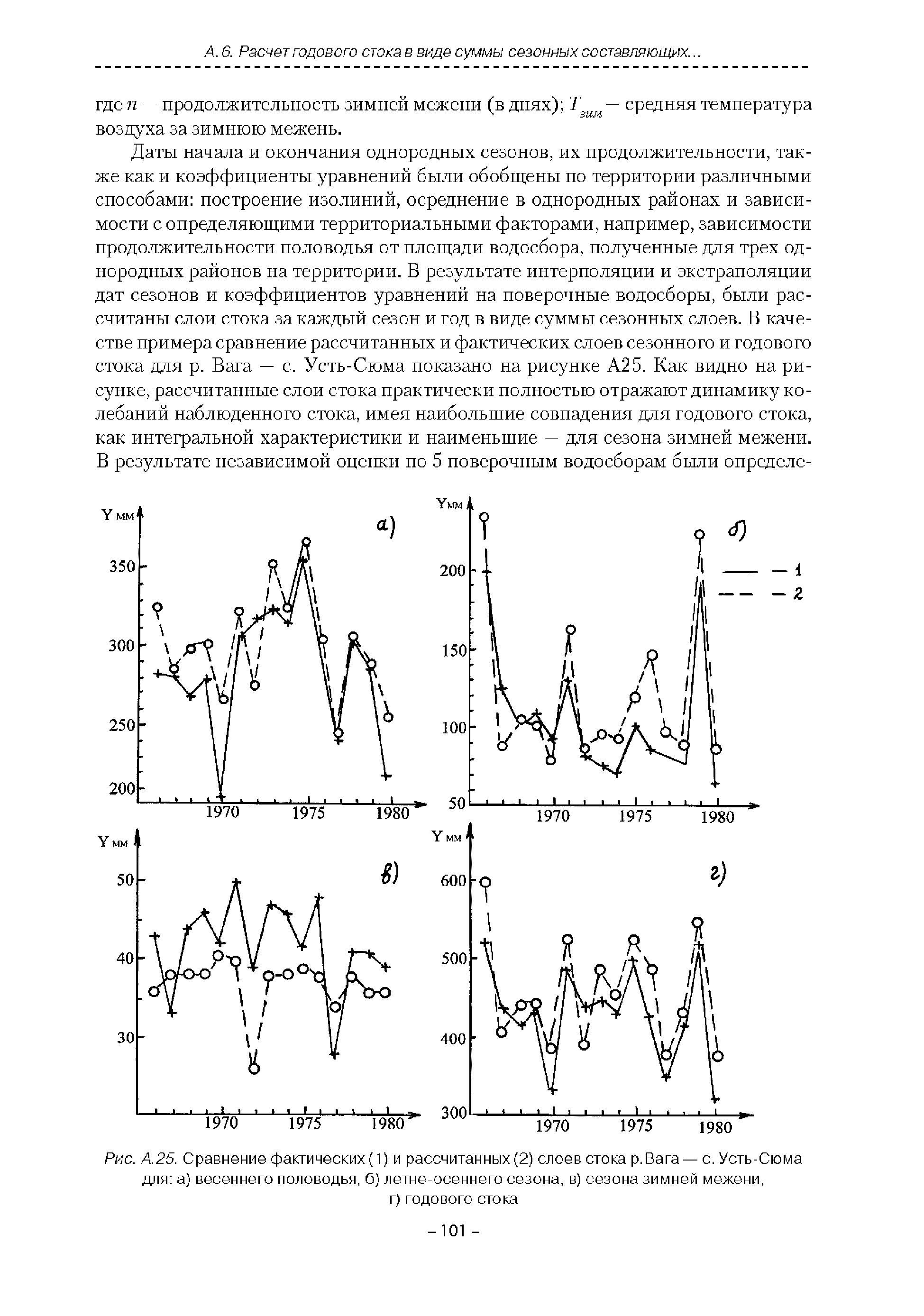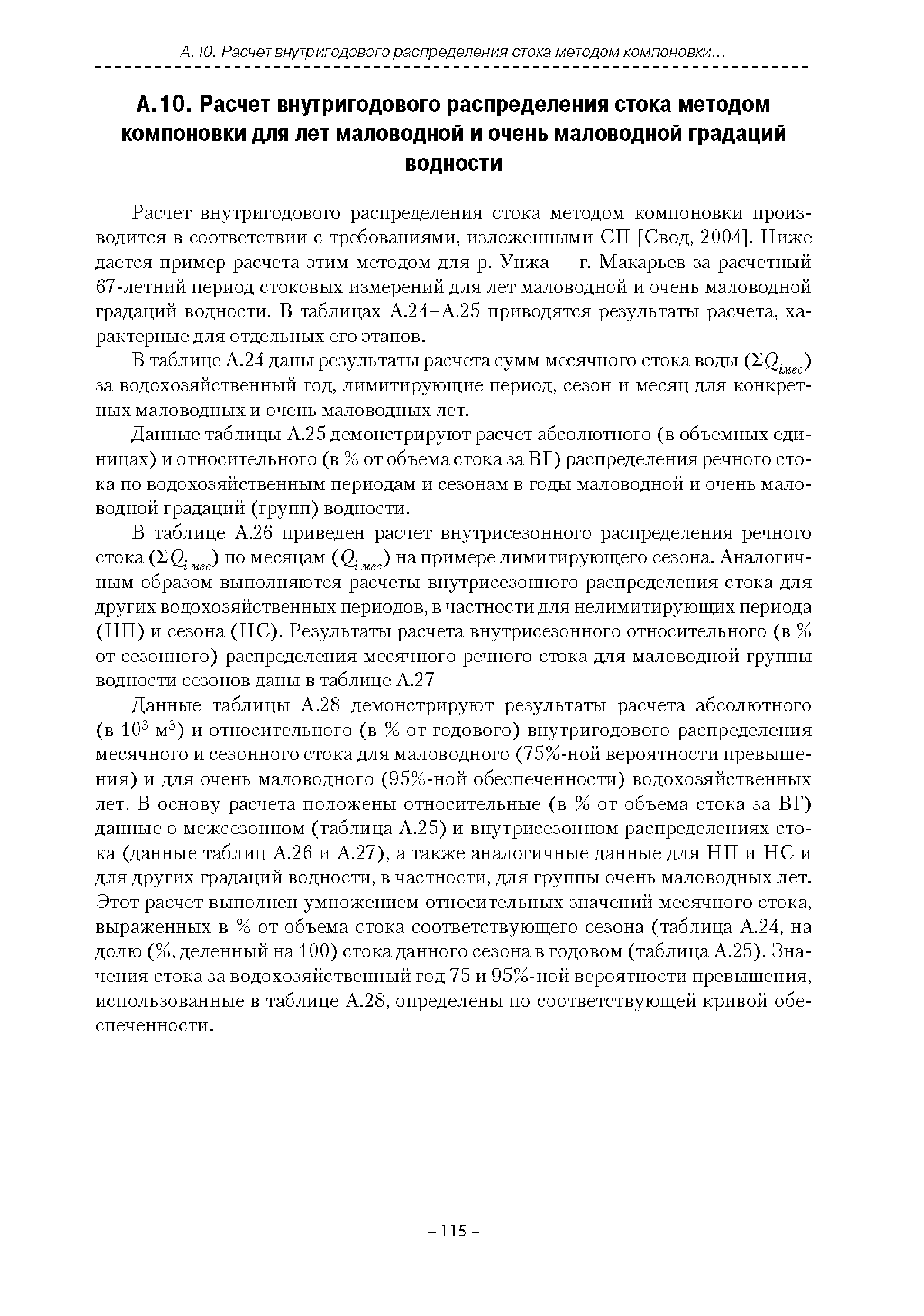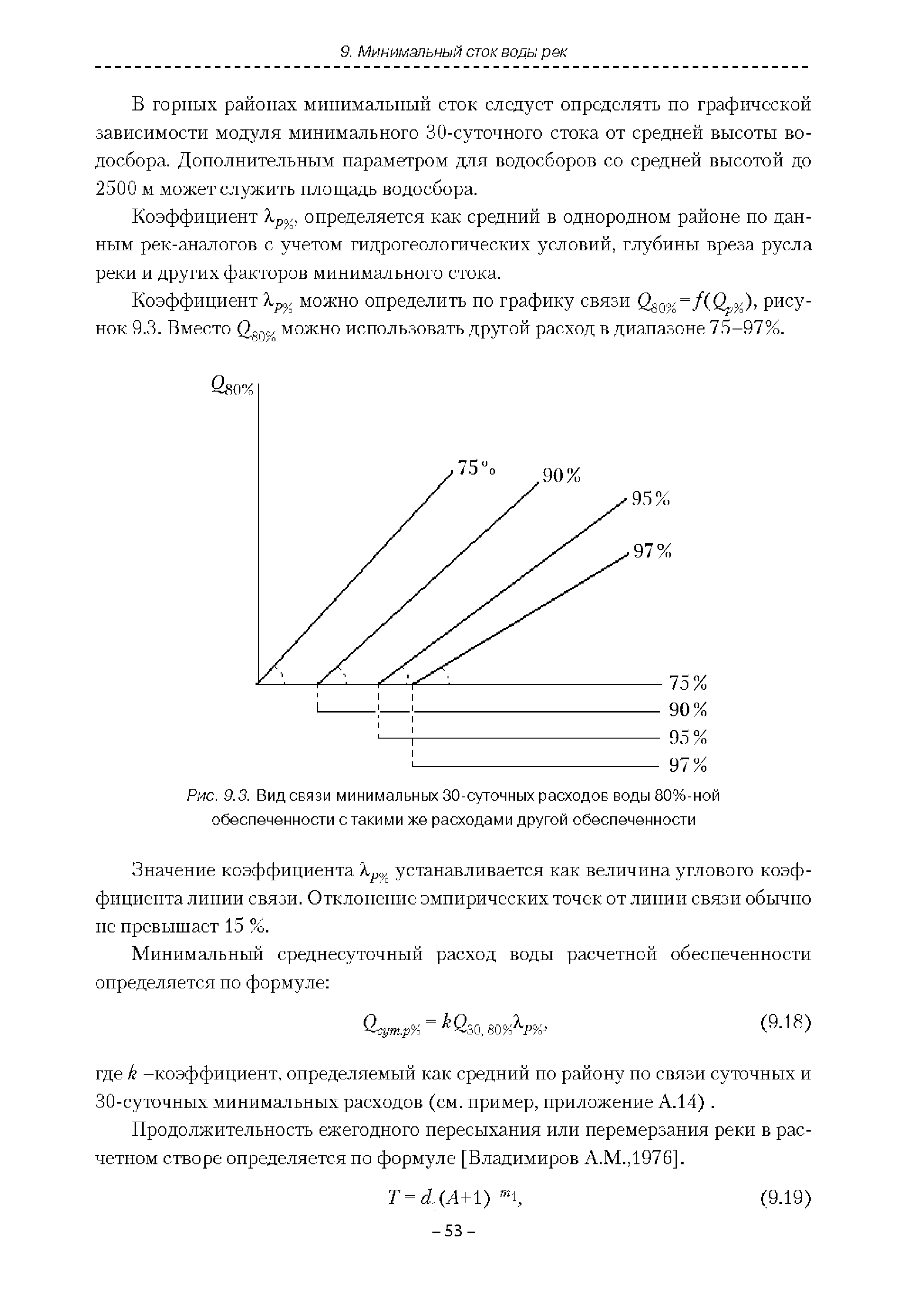 | Оглавление: | Введение 1. Область применения 2. Нормативные ссылки 3. Термины и определения 4. Обозначения и сокращения 5. Общие положения 5.1. Исходная гидрометеорологическая информация 5.2. Оценка качества исходной гидрометеорологической информации 5.3. Оценка качества определения расчетных гидрологических характеристик 5.4. Основные методы определения расчетных гидрогеологических характеристик 6. Годовой сток 6.1. Карты параметров распределения годового стока 6.2. Карты изолиний годового стока за конкретные годы 6.3. Поправочные коэффициенты к картам параметров распределения для малых рек 6.4. Региональные зависимости параметров распределения годового стока от основных факторов 6.5. Определение коэффициентов вариации, асимметрии и автокорреляции 6.6. Определение параметров стока на основе метода оптимальной линейной интерполяции 6.7. Определение значений стока по интерполяции по длине реки 6.8. Расчеты годового стока на основе суммы сезонных компонент 6.9. Учет влияния хозяйственной деятельности 7. Внутригодовое распределение стока 8. Максимальный сток рек 8.1. Весеннее половодье 8.2. Дождевые паводки 8.3. Гидрографы стока воды рек весеннего половодья и дождевых паводков 9. Минимальный сток воды рек 10. Расчет наивысших уровней воды рек 10.1. Полевые изыскания 10.2. Определение расчетных наивысших уровней воды, обусловленных весенним половодьем и дождевыми паводками на реках 10.3. Расчет наивысших зажорных и заторных уровней воды 11. Определение расчетных уровней воды за безледоставный период для установления границ водоохранных зон и прибрежных защитных полос 11.1. Основные положения, регламентирующие порядок определения водоохранных зон и прибрежных защитных полос 11.2. Методика определения береговой линии водных объектов при отсутствии данных наблюдений 12. Определение зон затопления для уровней воды различной обеспеченности Приложение А. Примеры Приложение Б. Таблицы Приложение В. Рекомендации по оценке параметров формул 1-го типа Приложение Г. Порядок уточнения ординат кривых редукции осадков и параметров формулы предельной интенсивности Приложение Д. Пространственная интерполяция гидрогеологических характеристик с использованием ГИС-технологии Список используемых источников |
