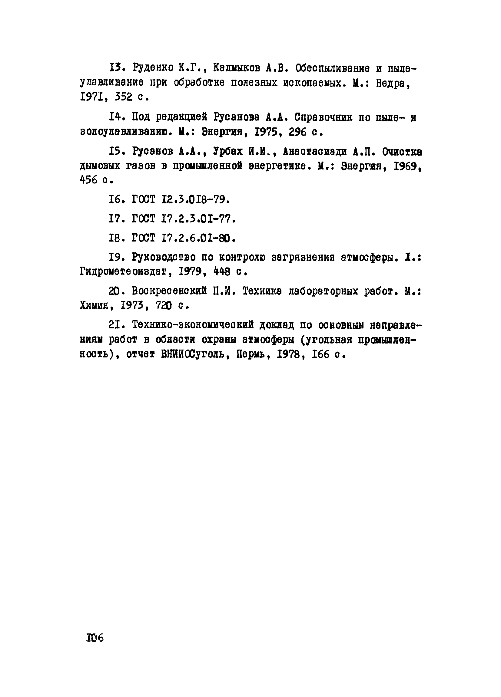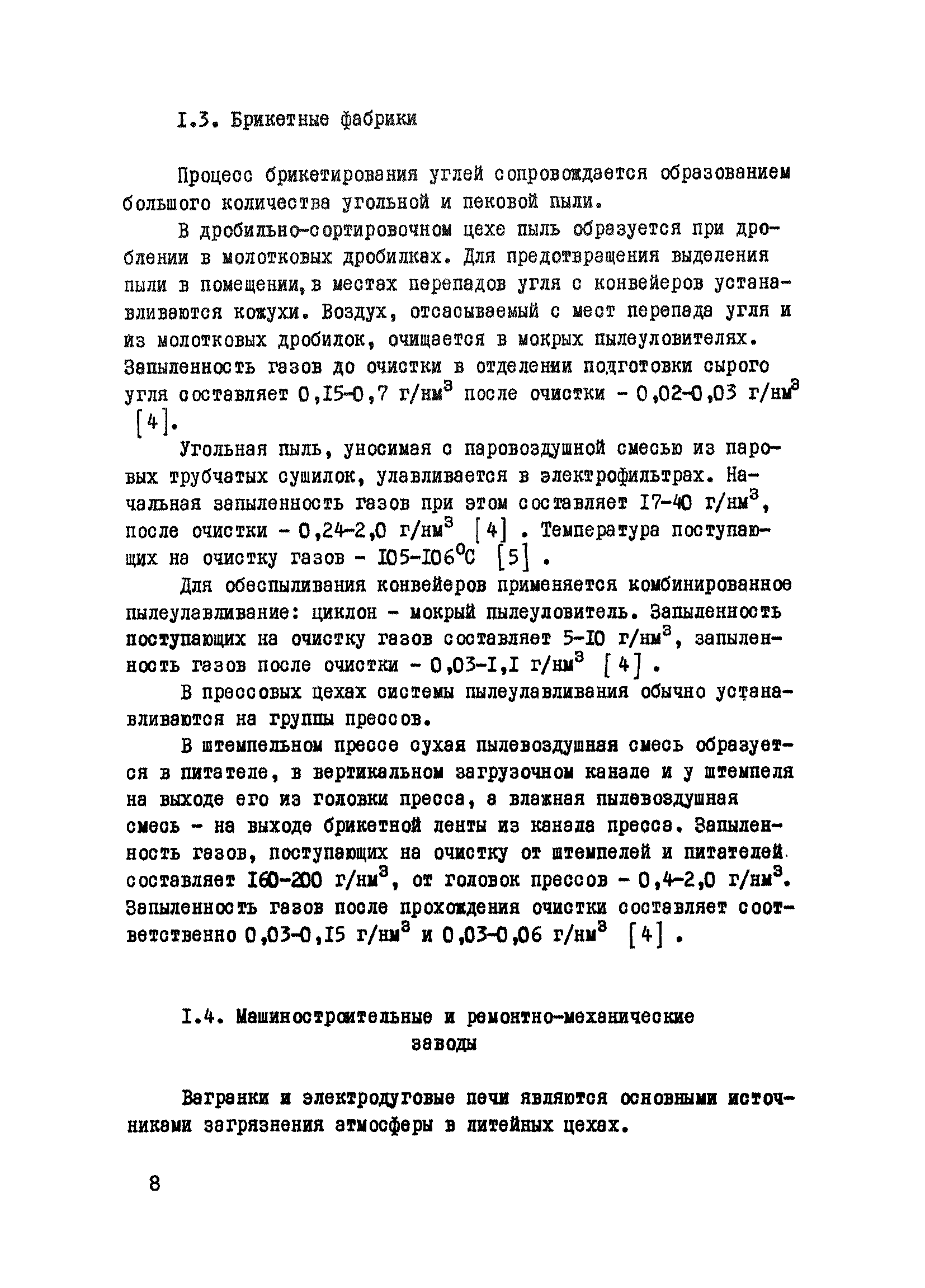 | Оглавление: | Введение 1. Характеристика основных источников выбросов вредных веществ в атмосферу на предприятиях угольной промышленности 1.1. Котельные установки и тепловые электростанции 1.2. Обогатительные фабрики 1.3. Брикетные фабрики 1.4. Машиностроительные заводы и ремонтно-механические заводы 2. Требования к пылеулавливающим установкам в период проверки эффективности 3, Выбор и оборудование мест замера параметров пылегазовых потоков 4. Определение основных параметров пылегазовых потоков 4.1. Измерение температуры газов 4.2. Измерение влажности газов 4.3. Определение плотности 4.4. Измерение давления 4.5. Определение скорости и расхода газов 4.6. Определение запыленности 5. Расчет эффективности работы пылеулавливающего оборудования 6. Техника безопасности при определении параметров пылегазовых потоков 7. Литература 8. Приложение. Графики и таблицы для определения параметров пылегазовых потоков |