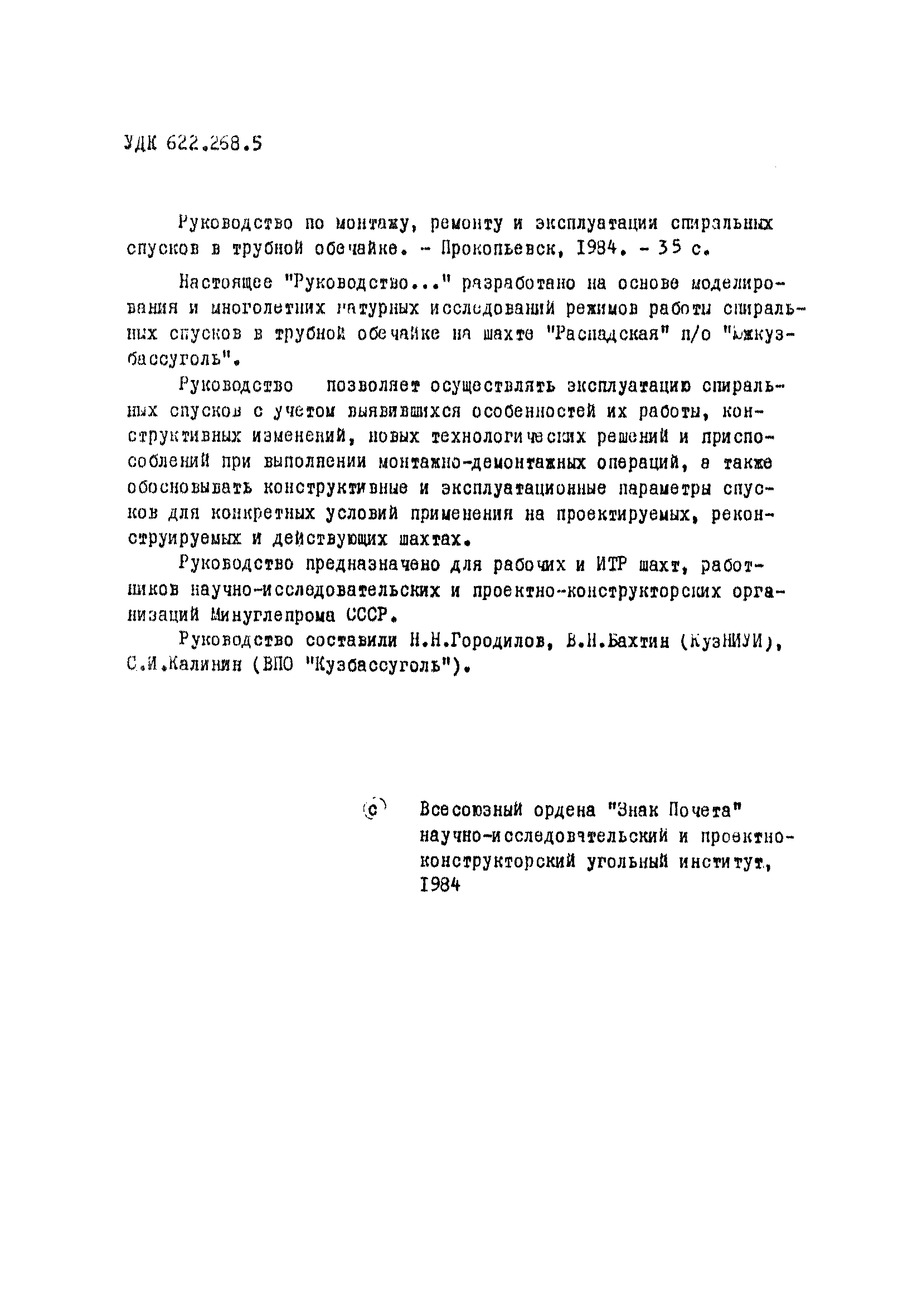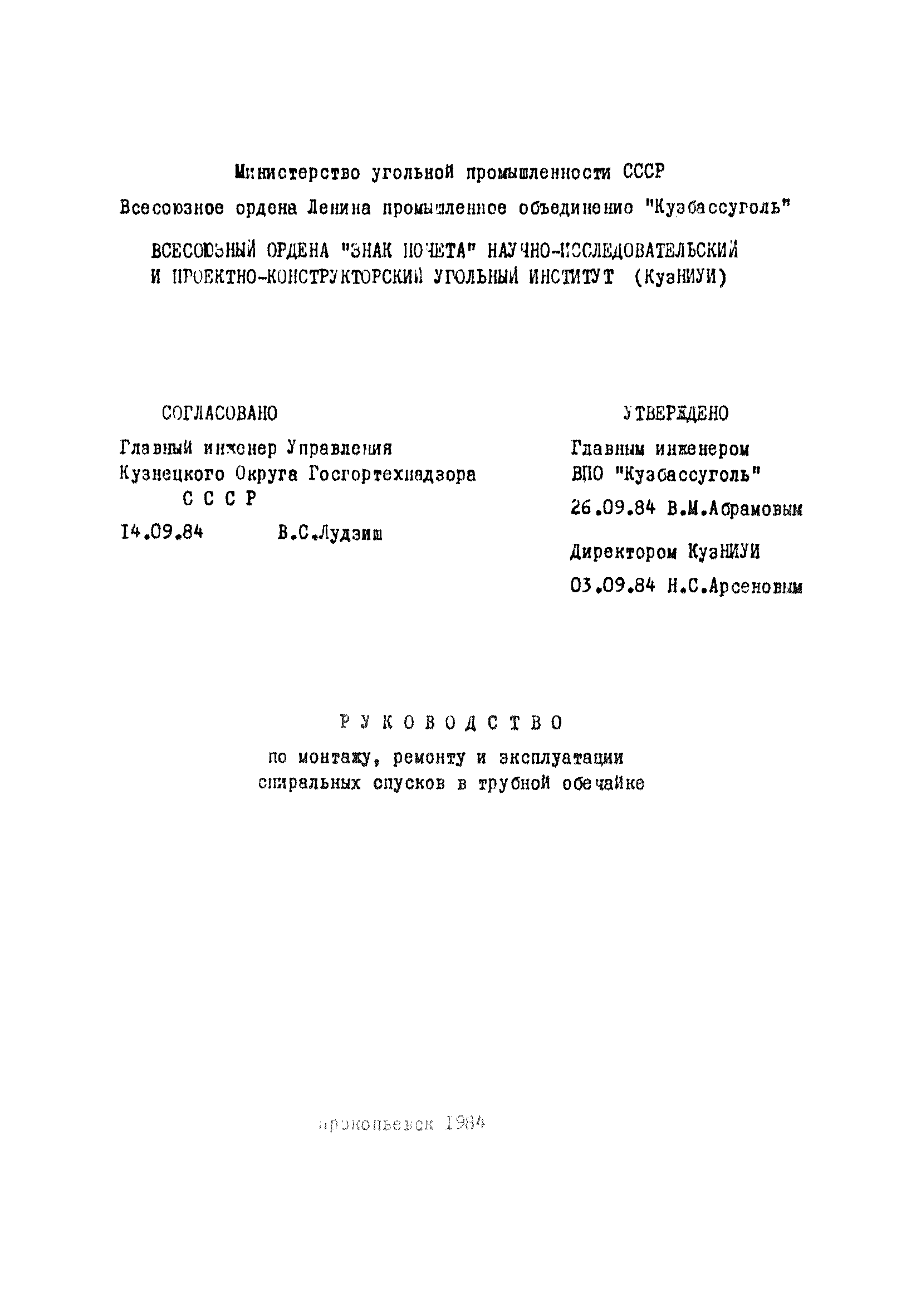 | | Принят: | 14.09.1984 Управление Кузнецкого округа Госгортехнадзора СССР