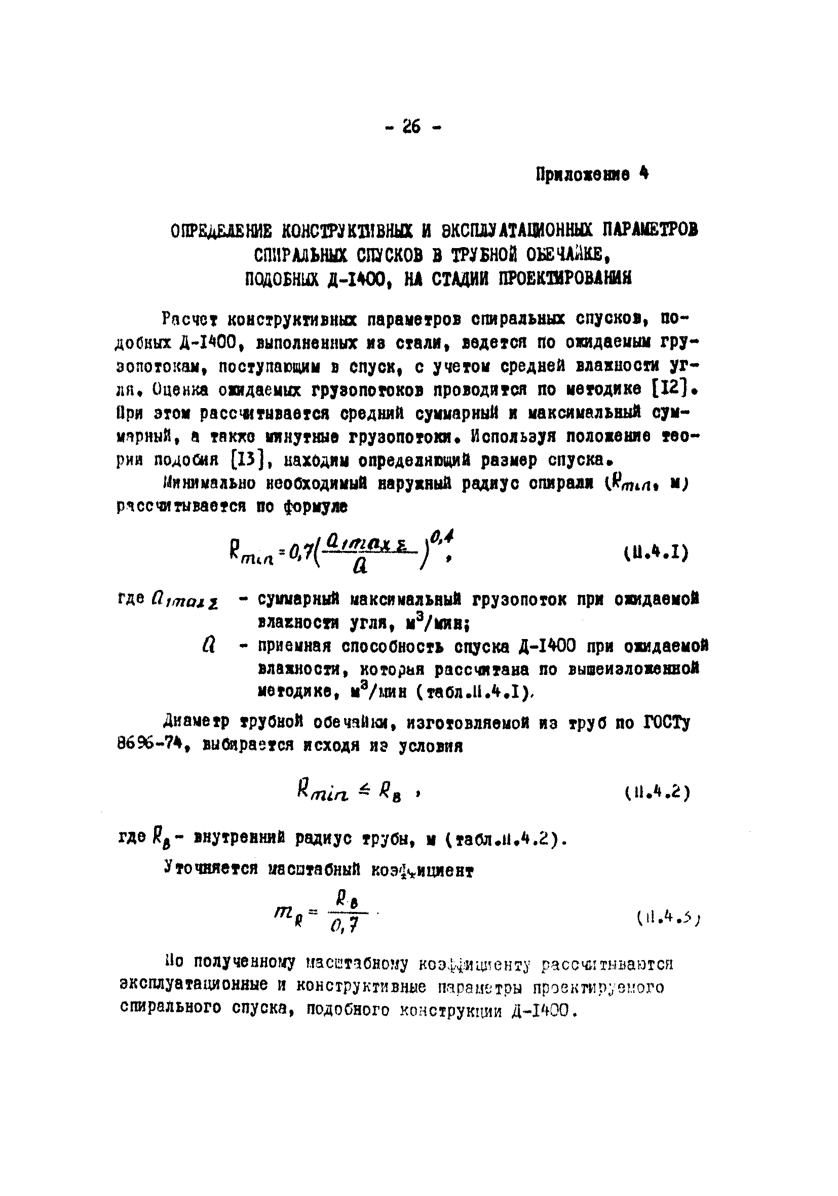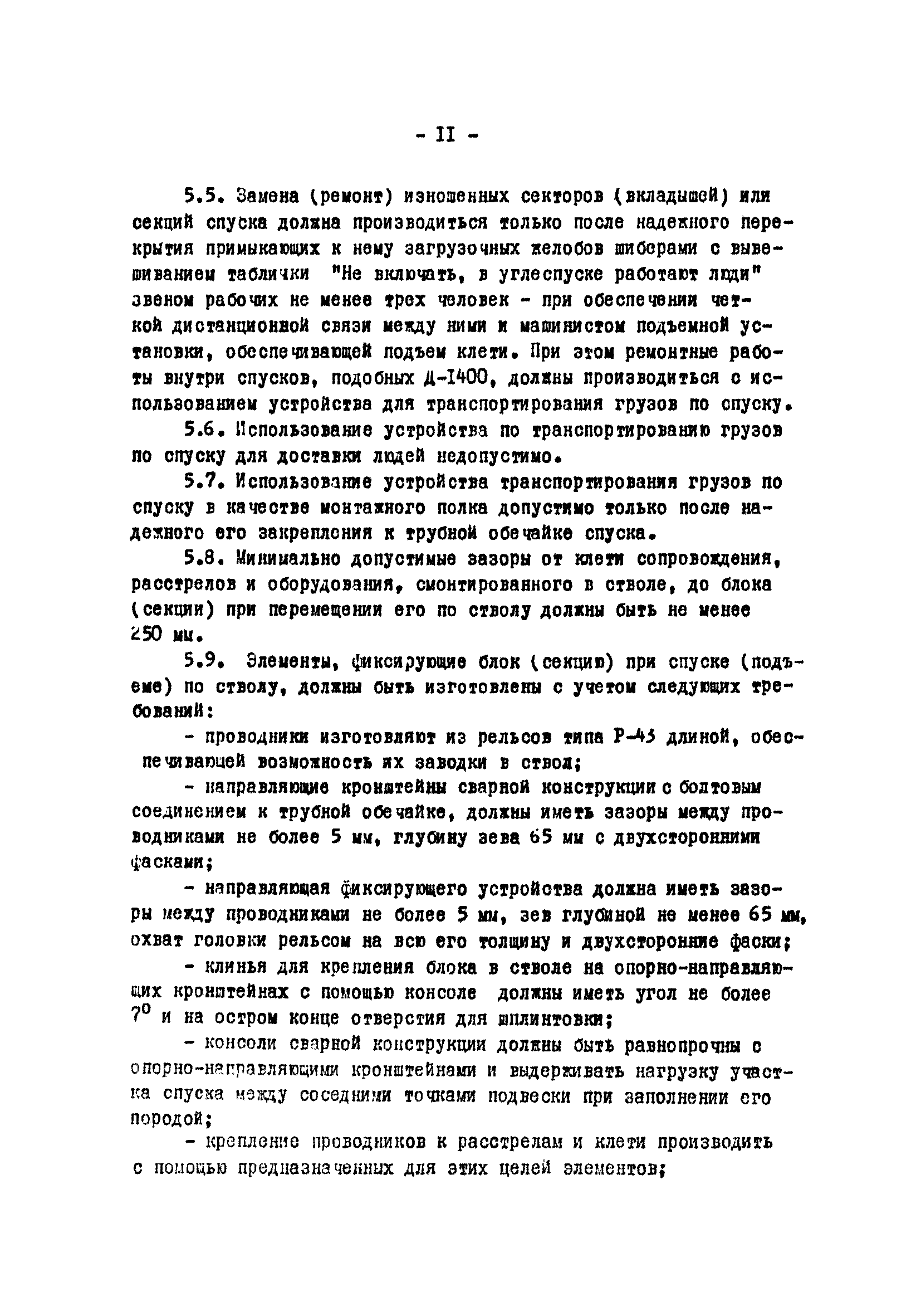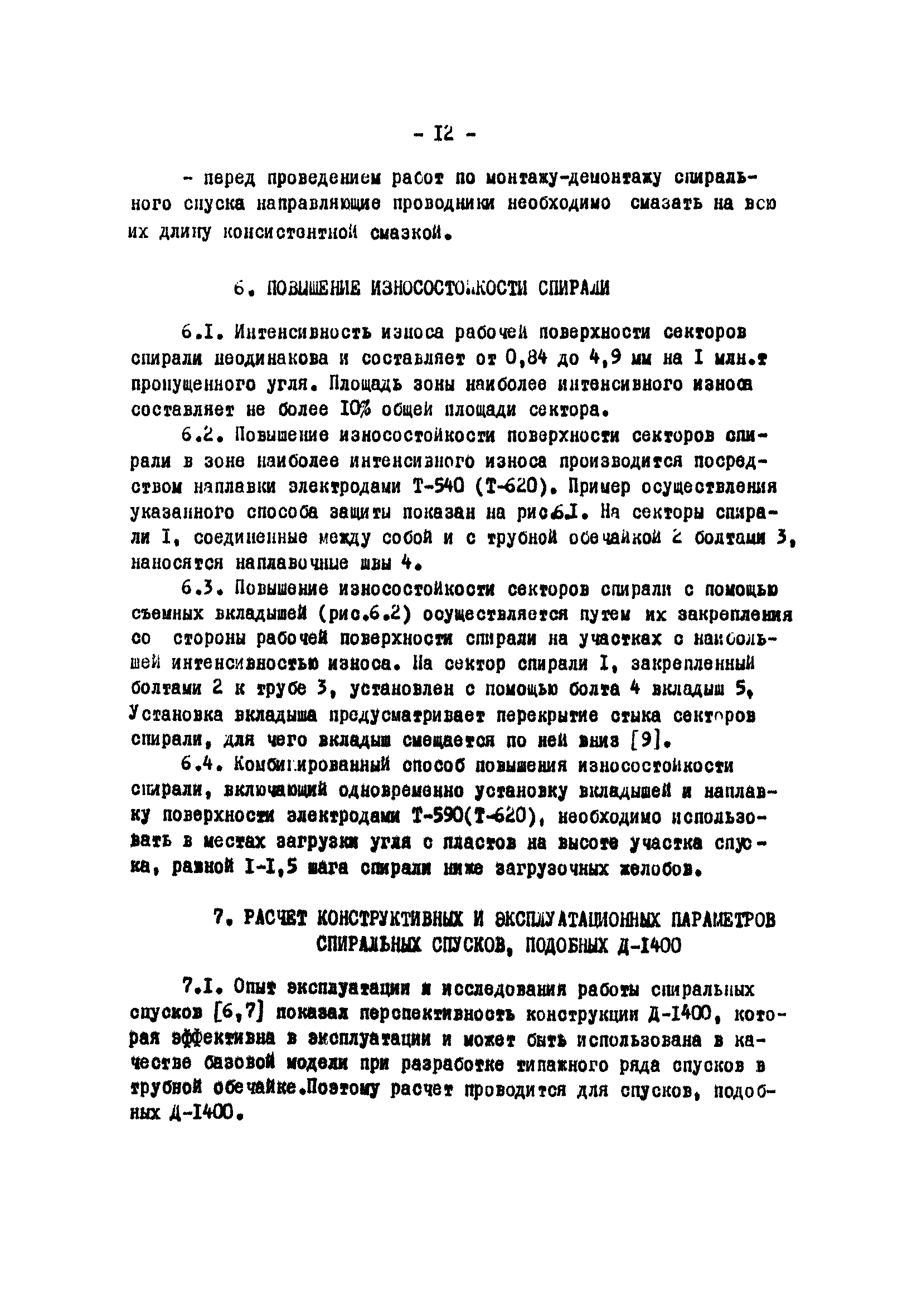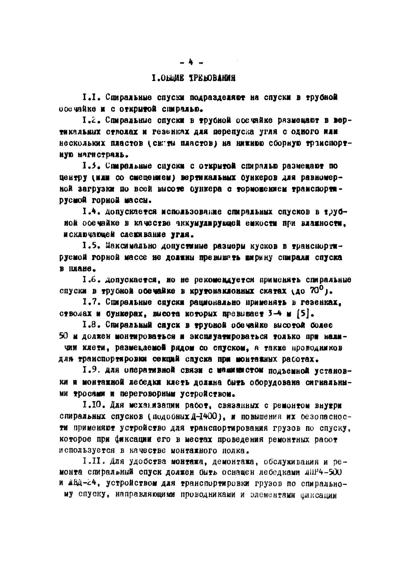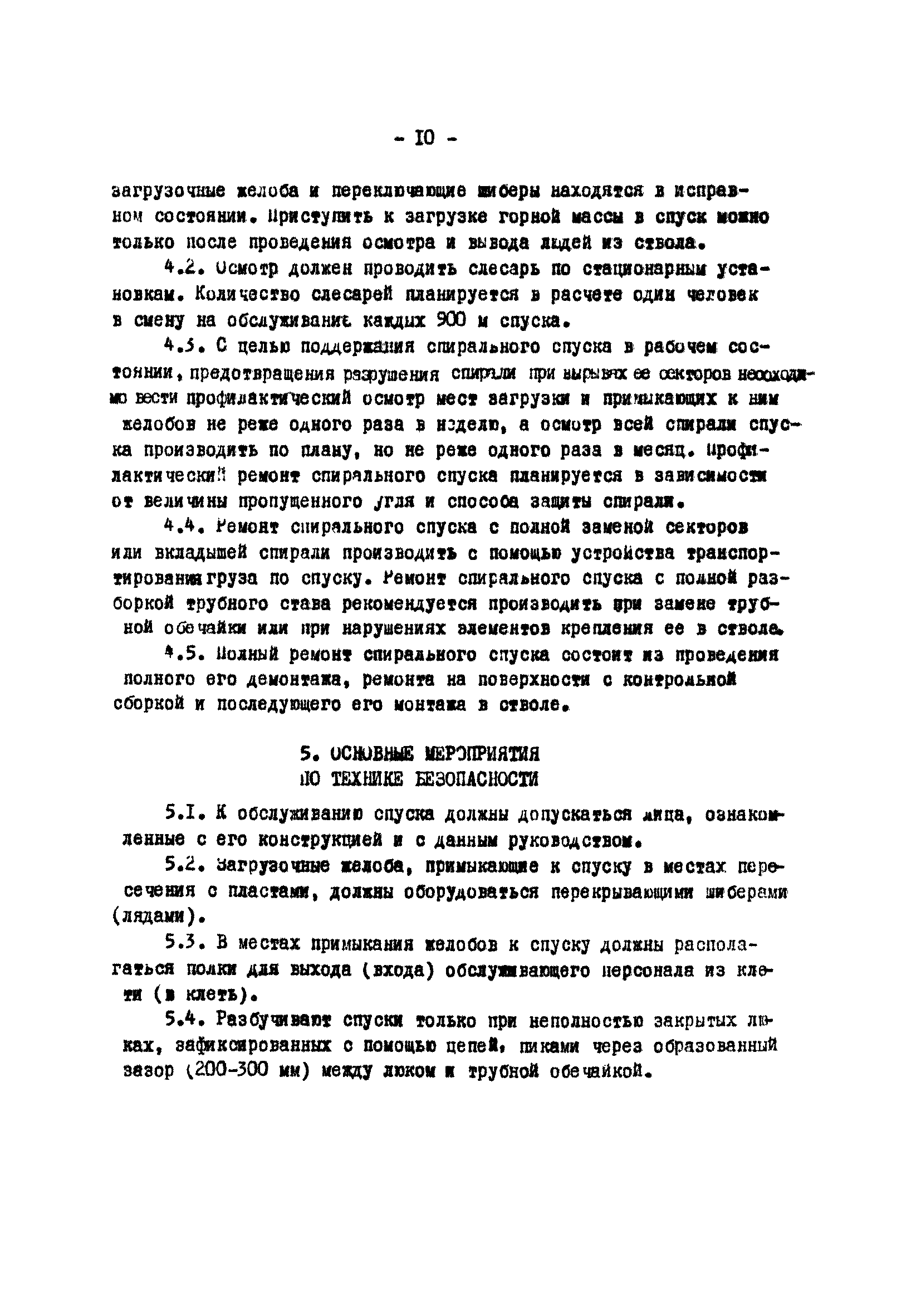 Руководство по монтажу, ремонту и эксплуатации спиральных спусков в трубной обечайке| Статус: | справочные материалы, мп, тпр | | Название рус.: | Руководство по монтажу, ремонту и эксплуатации спиральных спусков в трубной обечайке | | Дата добавления в базу: | 01.01.2019 | | Дата актуализации: | 01.01.2021 | | Область применения: | Руководство позволяет осуществлять эксплуатацию спиральных спусков с учетом выявившихся особенностей их работы, конструктивных изменений, новых технологических решений и приспособлений при выполнении монтажно-демонтажных операций, а также обосновывать конструктивные и эксплуатационные параметры спусков для конкретных условий применения на проектируемых, реконструируемых и действующих шахтах. Руководство предназначено для рабочих и ИТР шахт, работников научно-исследовательских и проектно-конструкторских организаций Минуглепрома СССР | | Оглавление: | Введение 1. Общие требования 2. Основные конструктивные параметры спиральных спусков в трубной обечайке 3. Монтаж-демонтаж спирального спуска 4. Эксплуатация и техническое обслуживание 5. Основные мероприятия по технике безопасности 6. Повышение износостойкости спирали 7. Расчет конструктивных и эксплуатационных параметров спиральных спусков, подобных Д-1400 Приложение 1. Расчет производительности спирального спуска Д-1400 Приложение 2. Расчет аккумулирующей способности спирального спуска Д-1400 Приложение 3. Определение участка спирали спуска, требующего повышения его износостойкости Приложение 4. Определение конструктивных и эксплуатационных параметров спиральных спусков в трубной обечайке, подобных Д-1400, на стадии проектирования Приложение 5. Устройство для транспортирования грузов по спиральным спускам типа Д-1400 Список литературы | | Разработан: | КузНИУИ ВПО Кузбассуголь