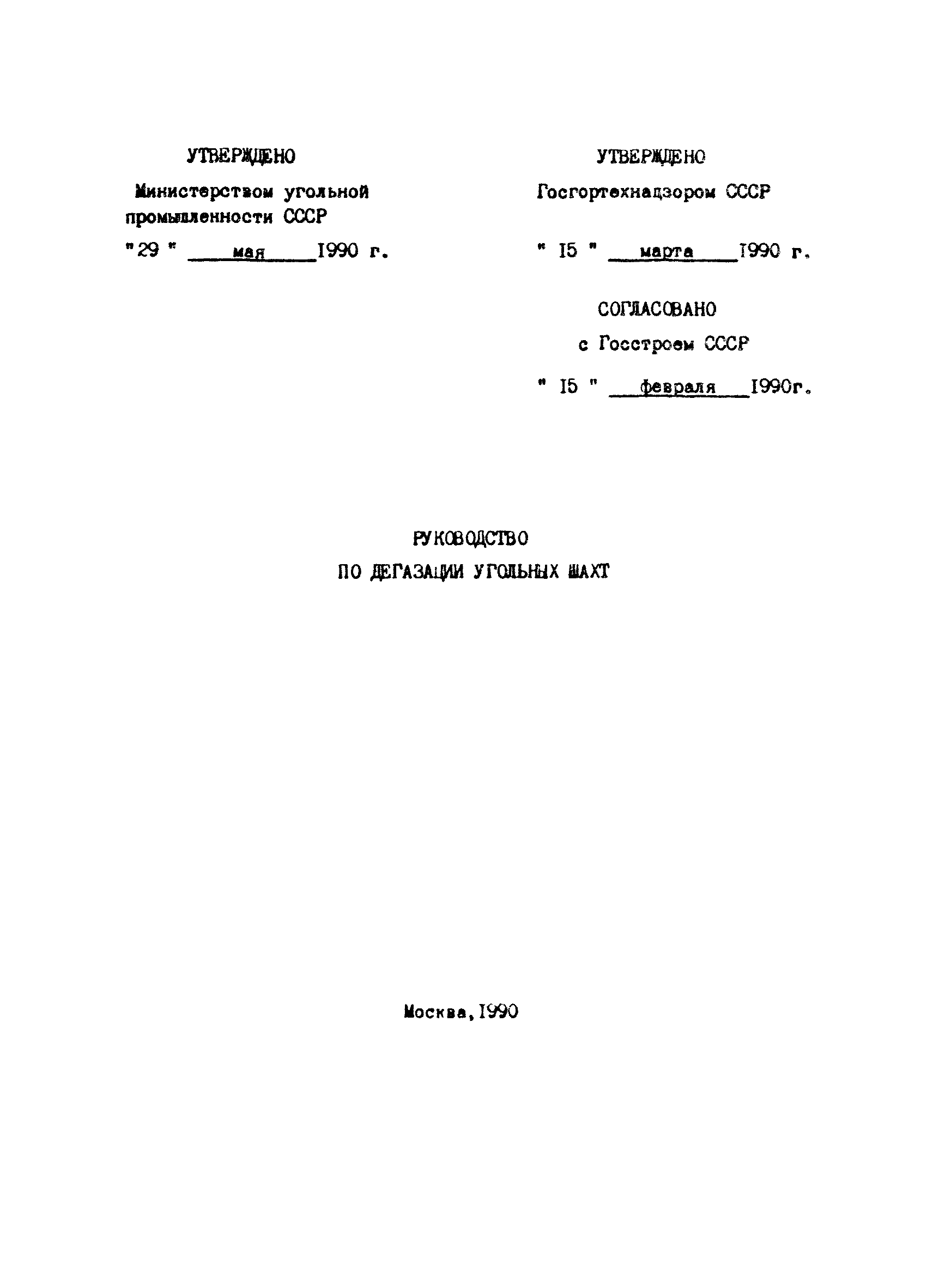 | Утверждён: | 15.03.1990 Госгортехнадзор СССР (USSR Gosgortekhnadzor ) 29.05.1990 Министерство угольной промышленности СССР (USSR Ministry of the Coal Industry ) |