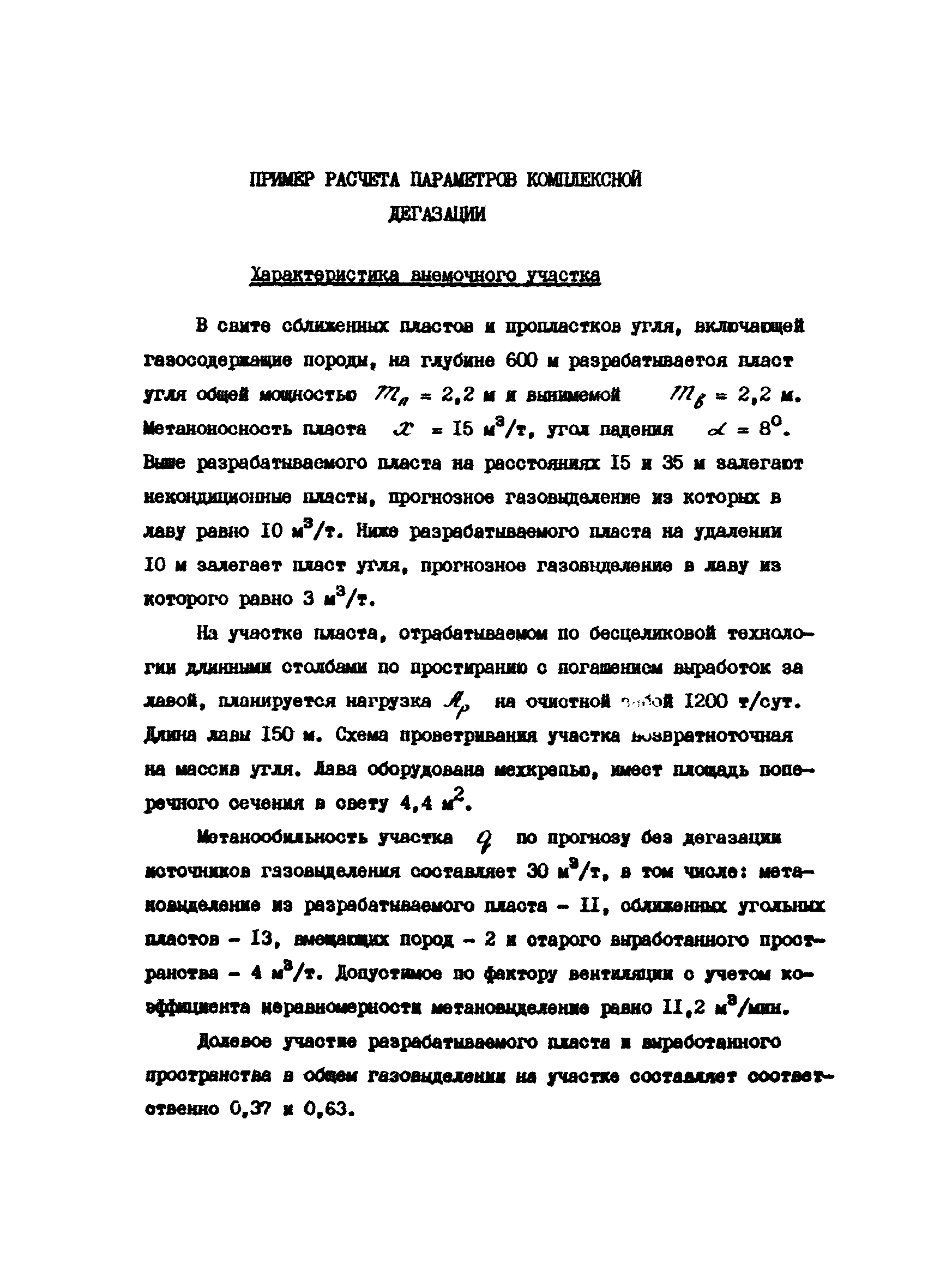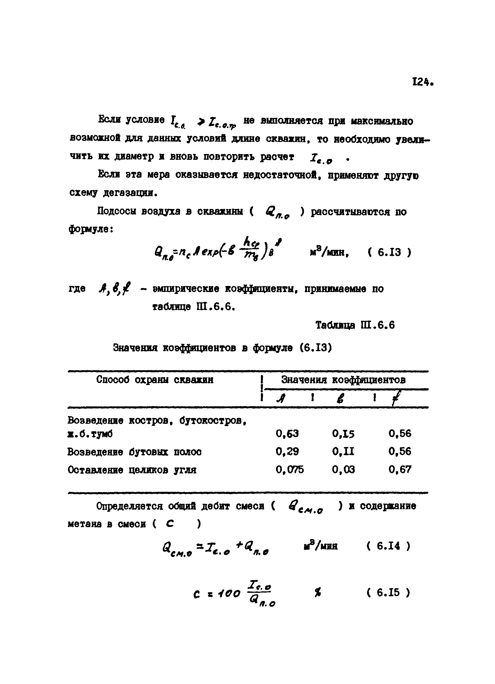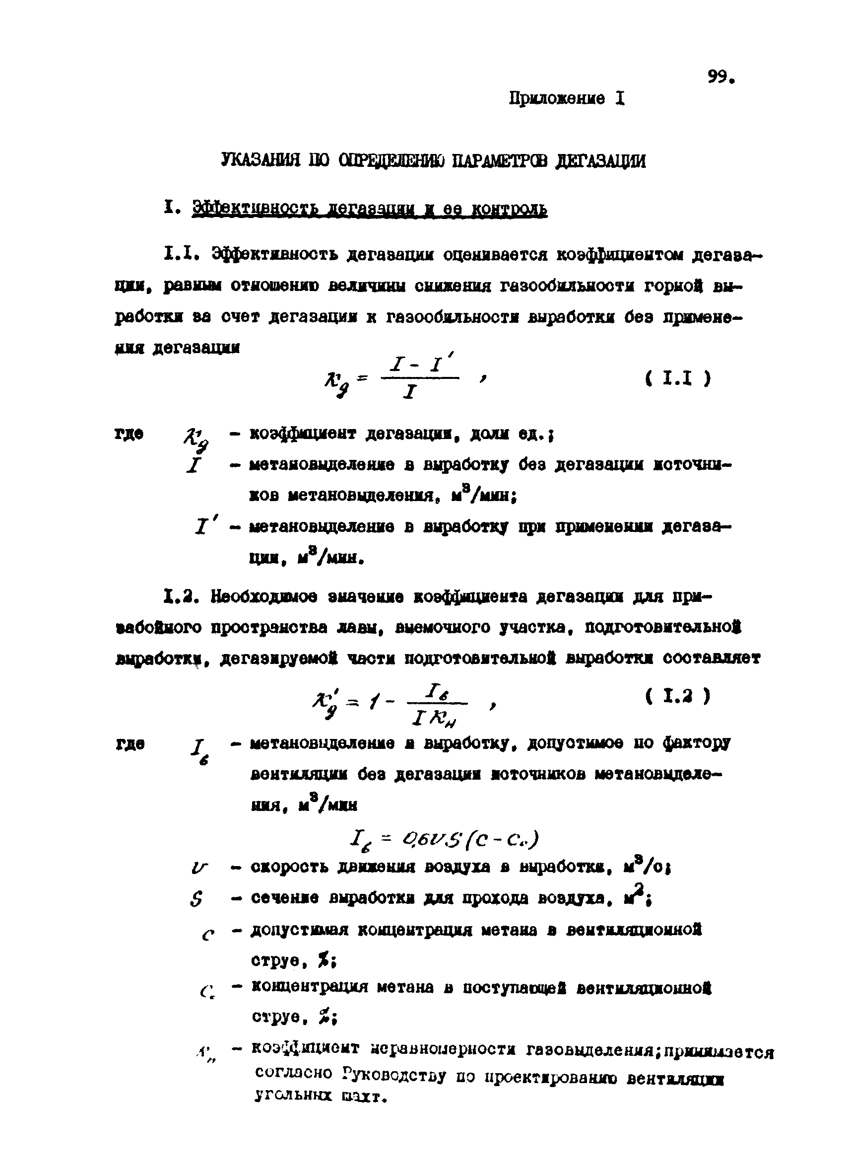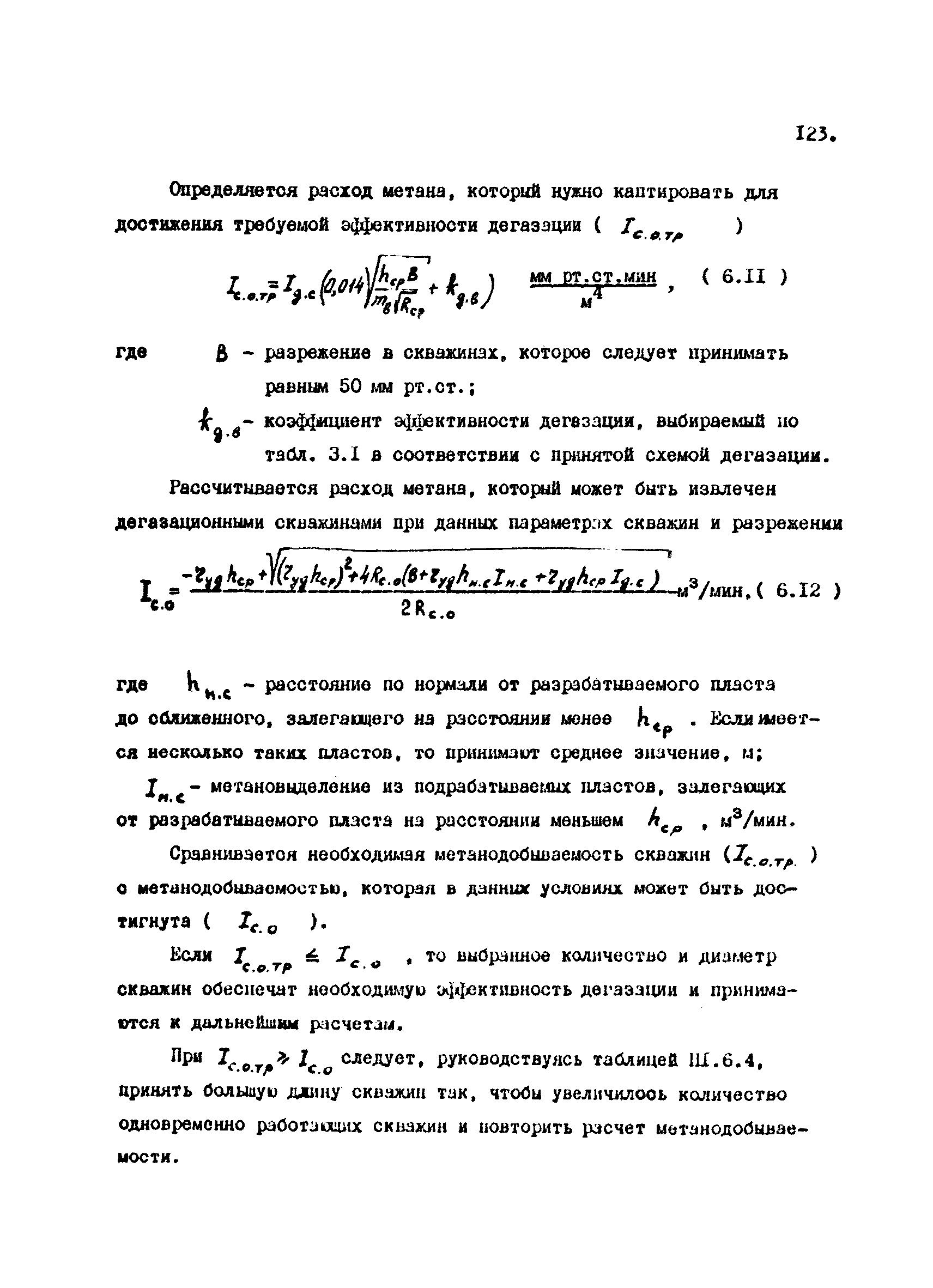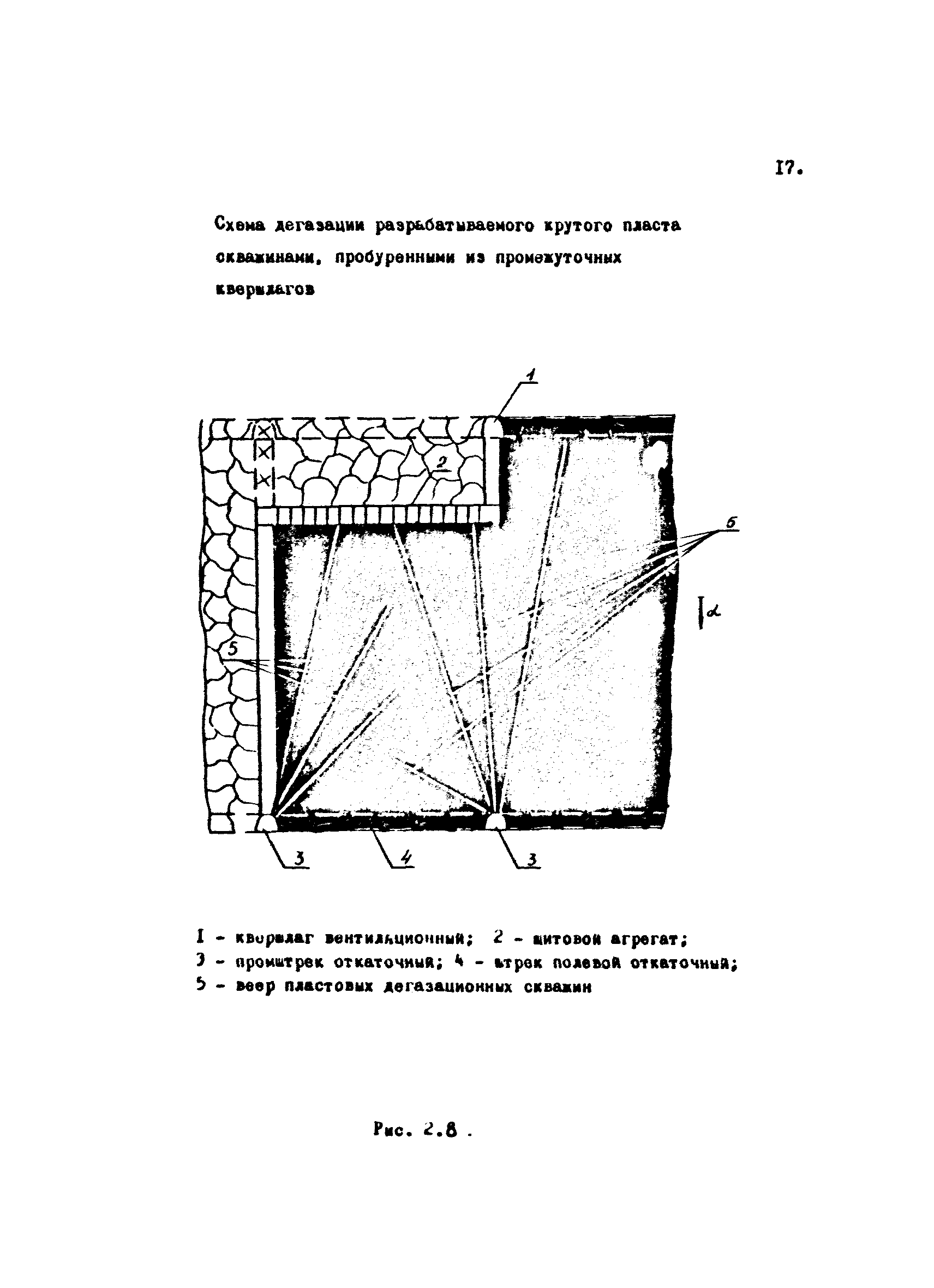 | Оглавление: | 1. Общие положения по дегазации угольных шахт 2. Способы дегазации неразгруженных угольных пластов 2.1. Дегазация при проведении горных выработок 2.2. Дегазация разрабатываемых угольных пластов скважинами, пробуренными из выработок 2.3. Дегазация разрабатываемых пластов скважинами с применением гидроразрыва 2.4. Дегазация угольных пластов скважинами гидрорасчленения, пробуренными с поверхности 3. Дегазация сближенных угольных пластов и вмещающих пород 3.1. Дегазация подрабатываемых пологих и наклонных пластов скважинами из выработок 3.2. Дегазация подрабатываемых пологих и наклонных пластов скважинами с поверхности 3.3. Дегазация надрабатываемых пологих и наклонных пластов 3.4. Дегазация подрабатываемых и надрабатываемых крутых пластов 4. Дегазация выработанного пространства 4.1. Дегазация выработанного пространства скважинами из подземных выработок 4.2. Дегазация выработанного пространства скважинами с поверхности 5. Метод предупреждения борьбы с суфлярами 6. Технология и организация ведения дегазационных работ 6.1. Бурение и герметизация скважин 6.2. Газопроводы 6.3. Контроль работы дегазационной сети 6.4. Организация службы дегазации 7. Вакуум-насосные станции (ВНС) 7.1. Общие положения 7.2. Стационарная вакуум-насосная станция на поверхности 7.3. Передвижные поверхностные вакуум-насосные станции 7.4. Передвижная подземная дегазационная установка Инструкция по безопасному ведению дегазационных работ на шахтах I. Общие положения II. Вакуум-насосные станции III. Газопроводы IV. Бурение дегазационных скважин V. Обслуживание дегазационной системы Приложение 1. Указания по определению параметров дегазации 1. Эффективность дегазации и ее контроль 2. Параметры дегазации при проведении подготовительных выработок 3. Параметры дегазации разрабатываемых пластов скважинами 4. Параметры гидроразрыва пласта через скважины, пробуренные из выработок 5. Параметры гидрорасчленения пластов Карагандинского бассейна через скважины, пробуренные с поверхности 6. Параметры дегазации подрабатываемых пологих и наклонных пластов 7. Параметры дегазации надрабатываемых пологих и наклонных пластов скважинами, пробуренными из выработок 8. Параметры дегазации подрабатываемых и надрабатываемых крутых пластов скважинами, пробуренными из выработок 9. Параметры дегазации выработанного пространства 10. Расчет газопроводов, выбор вакуум-насосов 11. Определение объемов каптируемого в шахтах метана 12. Приближенное определение необходимого количества скважин и разрежения в них при дегазации подрабатываемого массива Приложение 2. Методические указания по проведению вакуумно-газовой съемки в дегазационном трубопроводе Приложение 3. Определение мест подсосов воздуха в скважины, выбор способов их снижения Условные обозначения к приложениям |