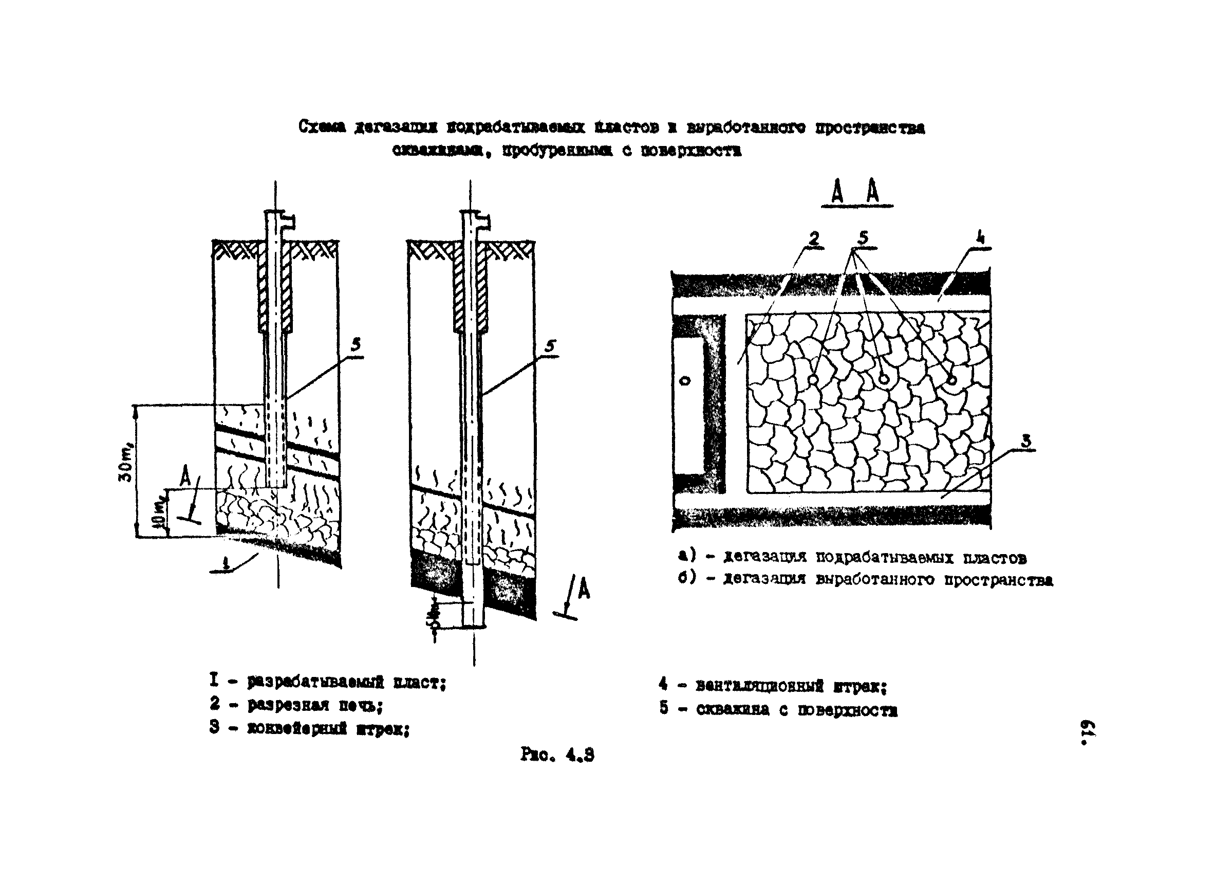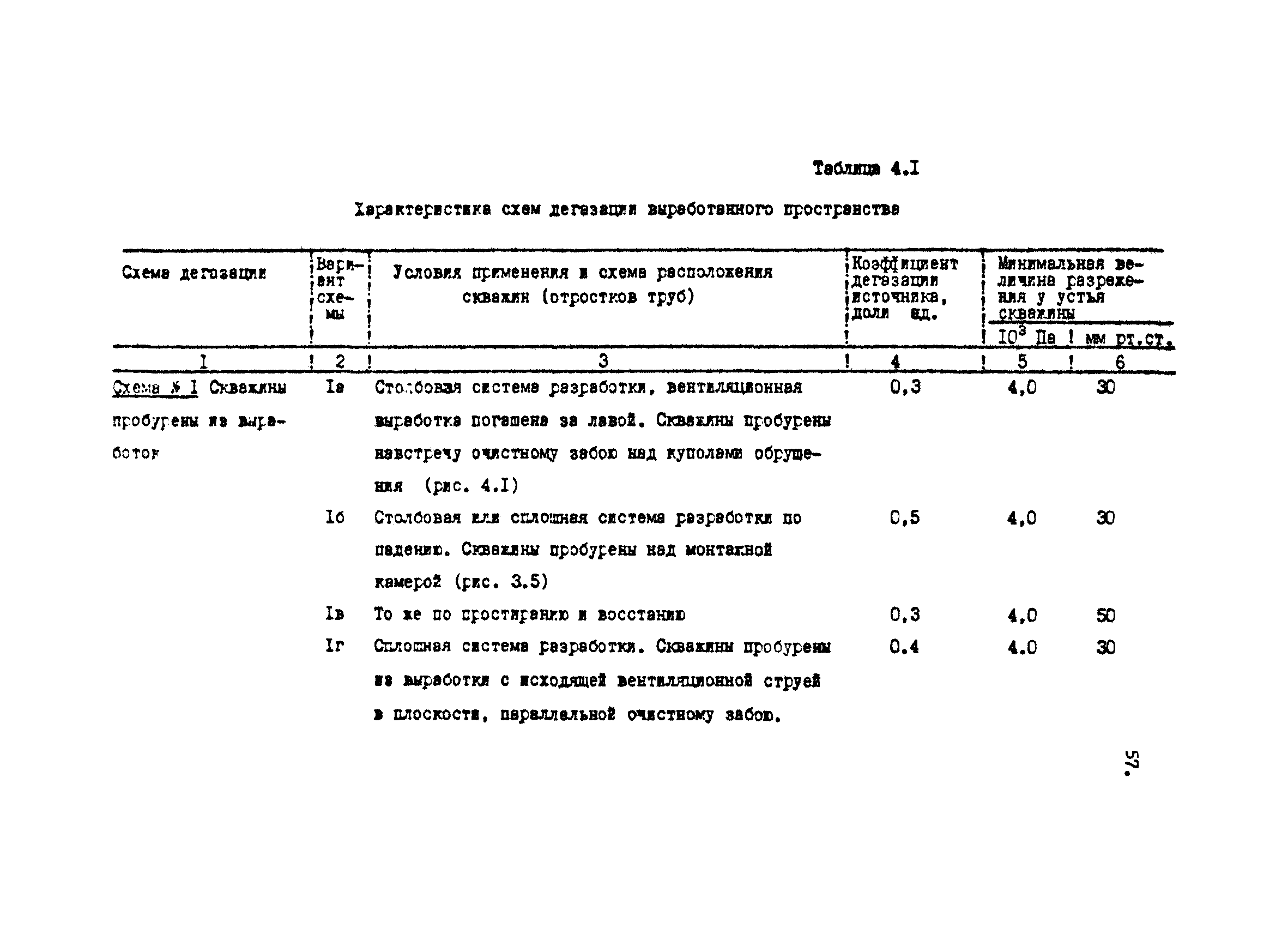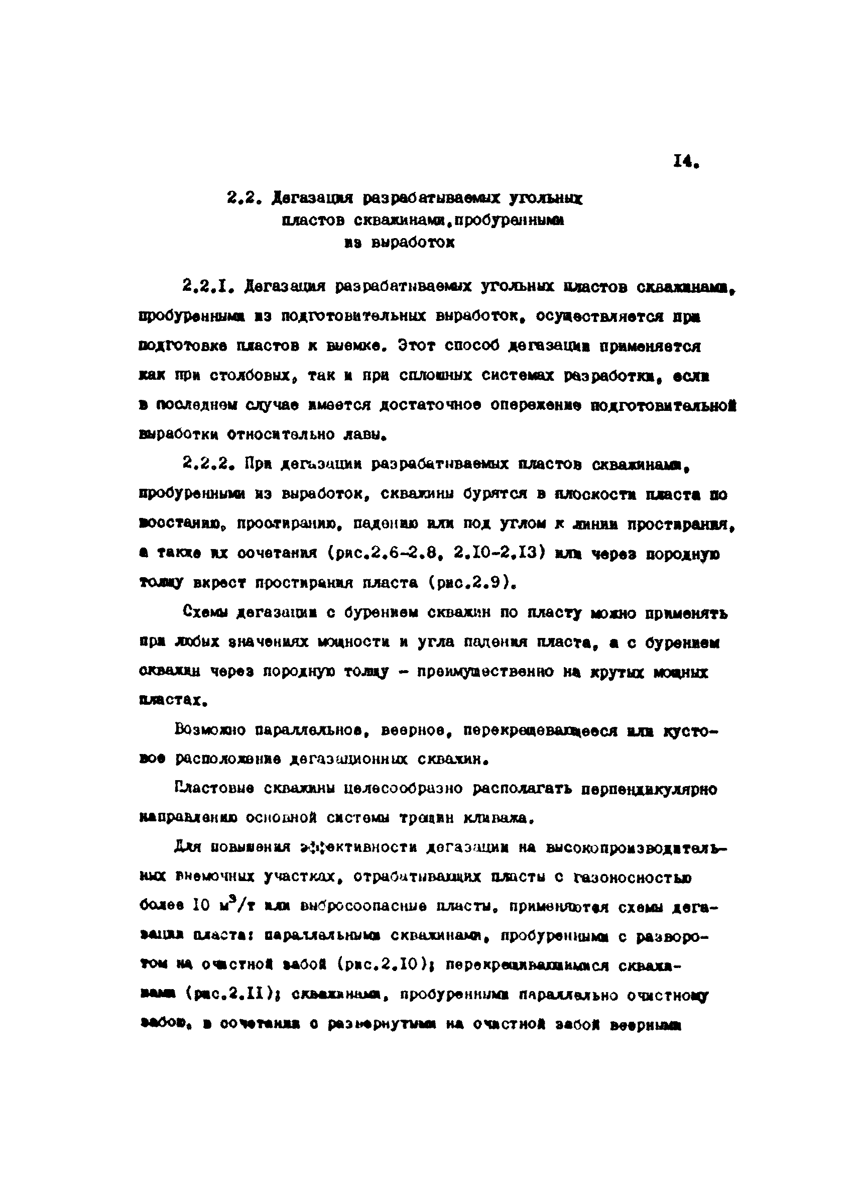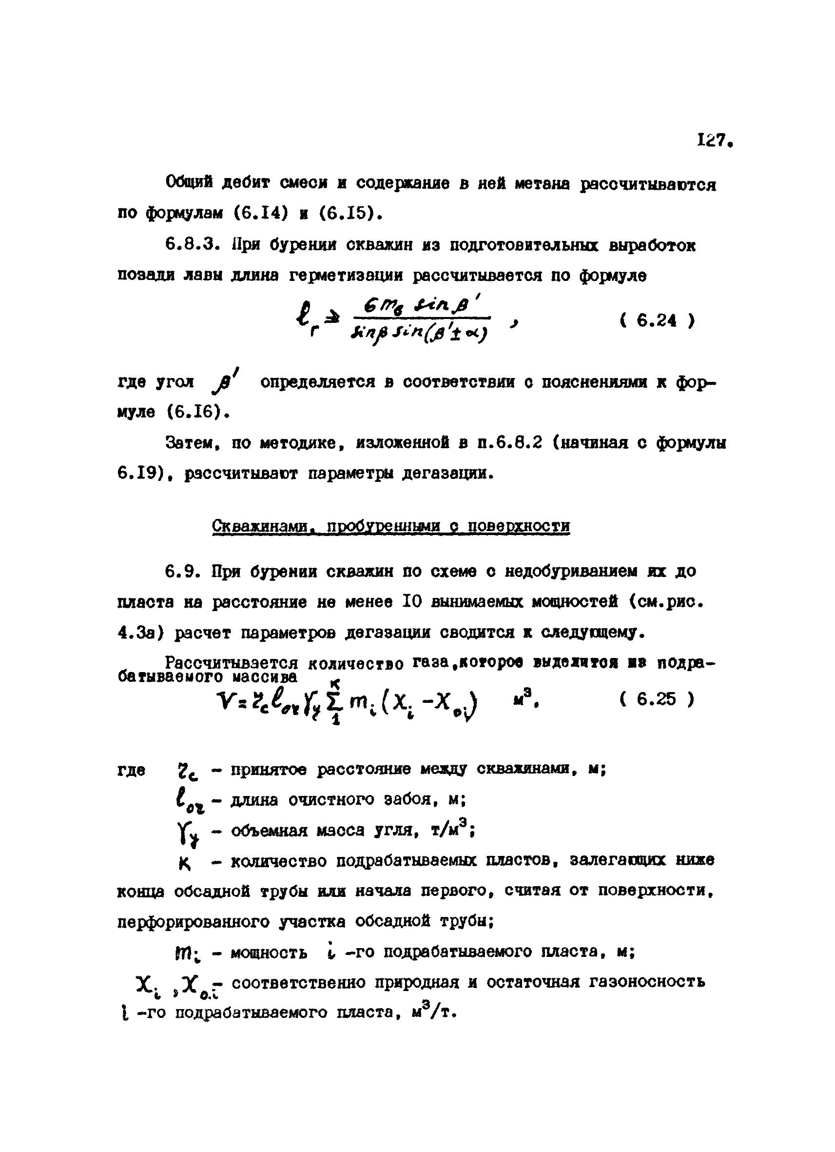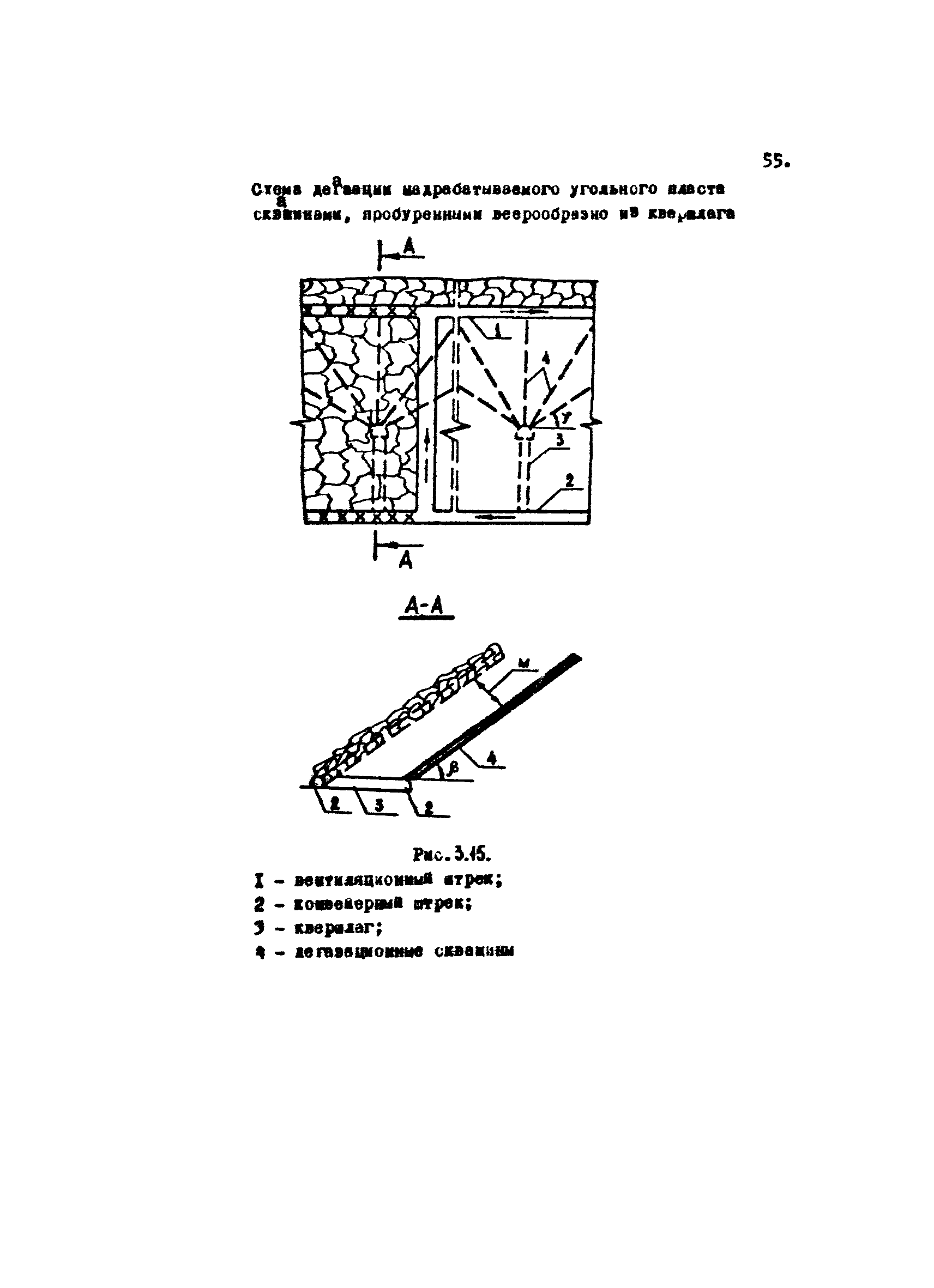 | Оглавление: | 1. Общие положения по дегазации угольных шахт 2. Способы дегазации неразгруженных угольных пластов 2.1. Дегазация при проведении горных выработок 2.2. Дегазация разрабатываемых угольных пластов скважинами, пробуренными из выработок 2.3. Дегазация разрабатываемых пластов скважинами с применением гидроразрыва 2.4. Дегазация угольных пластов скважинами гидрорасчленения, пробуренными с поверхности 3. Дегазация сближенных угольных пластов и вмещающих пород 3.1. Дегазация подрабатываемых пологих и наклонных пластов скважинами из выработок 3.2. Дегазация подрабатываемых пологих и наклонных пластов скважинами с поверхности 3.3. Дегазация надрабатываемых пологих и наклонных пластов 3.4. Дегазация подрабатываемых и надрабатываемых крутых пластов 4. Дегазация выработанного пространства 4.1. Дегазация выработанного пространства скважинами из подземных выработок 4.2. Дегазация выработанного пространства скважинами с поверхности 5. Метод предупреждения борьбы с суфлярами 6. Технология и организация ведения дегазационных работ 6.1. Бурение и герметизация скважин 6.2. Газопроводы 6.3. Контроль работы дегазационной сети 6.4. Организация службы дегазации 7. Вакуум-насосные станции (ВНС) 7.1. Общие положения 7.2. Стационарная вакуум-насосная станция на поверхности 7.3. Передвижные поверхностные вакуум-насосные станции 7.4. Передвижная подземная дегазационная установка Инструкция по безопасному ведению дегазационных работ на шахтах I. Общие положения II. Вакуум-насосные станции III. Газопроводы IV. Бурение дегазационных скважин V. Обслуживание дегазационной системы Приложение 1. Указания по определению параметров дегазации 1. Эффективность дегазации и ее контроль 2. Параметры дегазации при проведении подготовительных выработок 3. Параметры дегазации разрабатываемых пластов скважинами 4. Параметры гидроразрыва пласта через скважины, пробуренные из выработок 5. Параметры гидрорасчленения пластов Карагандинского бассейна через скважины, пробуренные с поверхности 6. Параметры дегазации подрабатываемых пологих и наклонных пластов 7. Параметры дегазации надрабатываемых пологих и наклонных пластов скважинами, пробуренными из выработок 8. Параметры дегазации подрабатываемых и надрабатываемых крутых пластов скважинами, пробуренными из выработок 9. Параметры дегазации выработанного пространства 10. Расчет газопроводов, выбор вакуум-насосов 11. Определение объемов каптируемого в шахтах метана 12. Приближенное определение необходимого количества скважин и разрежения в них при дегазации подрабатываемого массива Приложение 2. Методические указания по проведению вакуумно-газовой съемки в дегазационном трубопроводе Приложение 3. Определение мест подсосов воздуха в скважины, выбор способов их снижения Условные обозначения к приложениям |