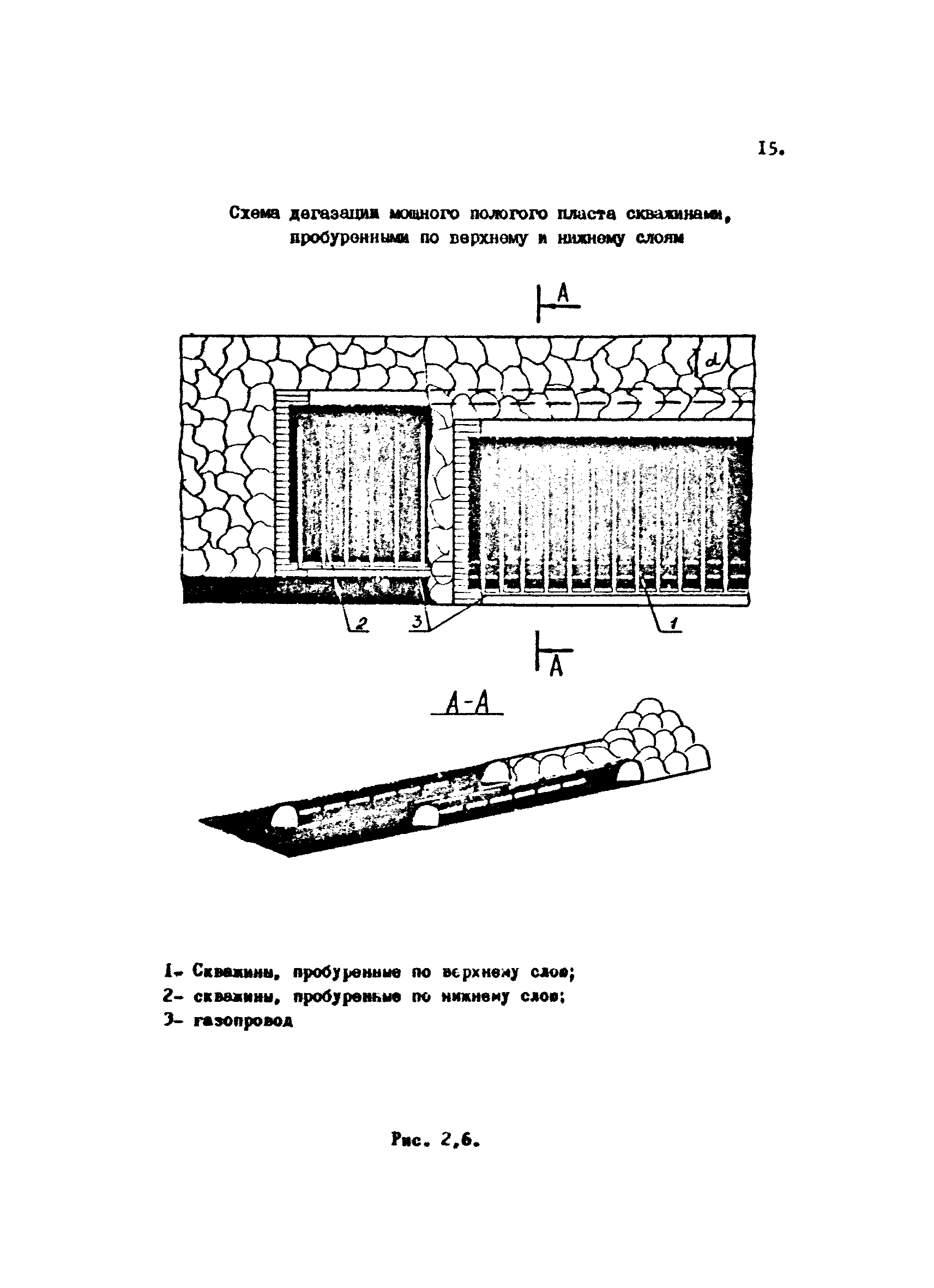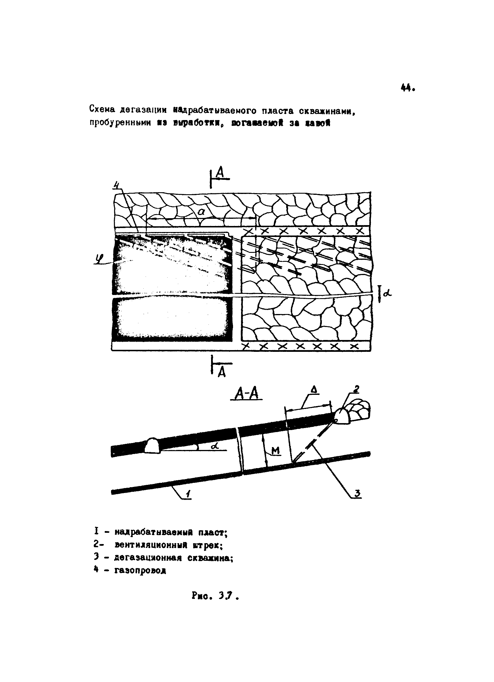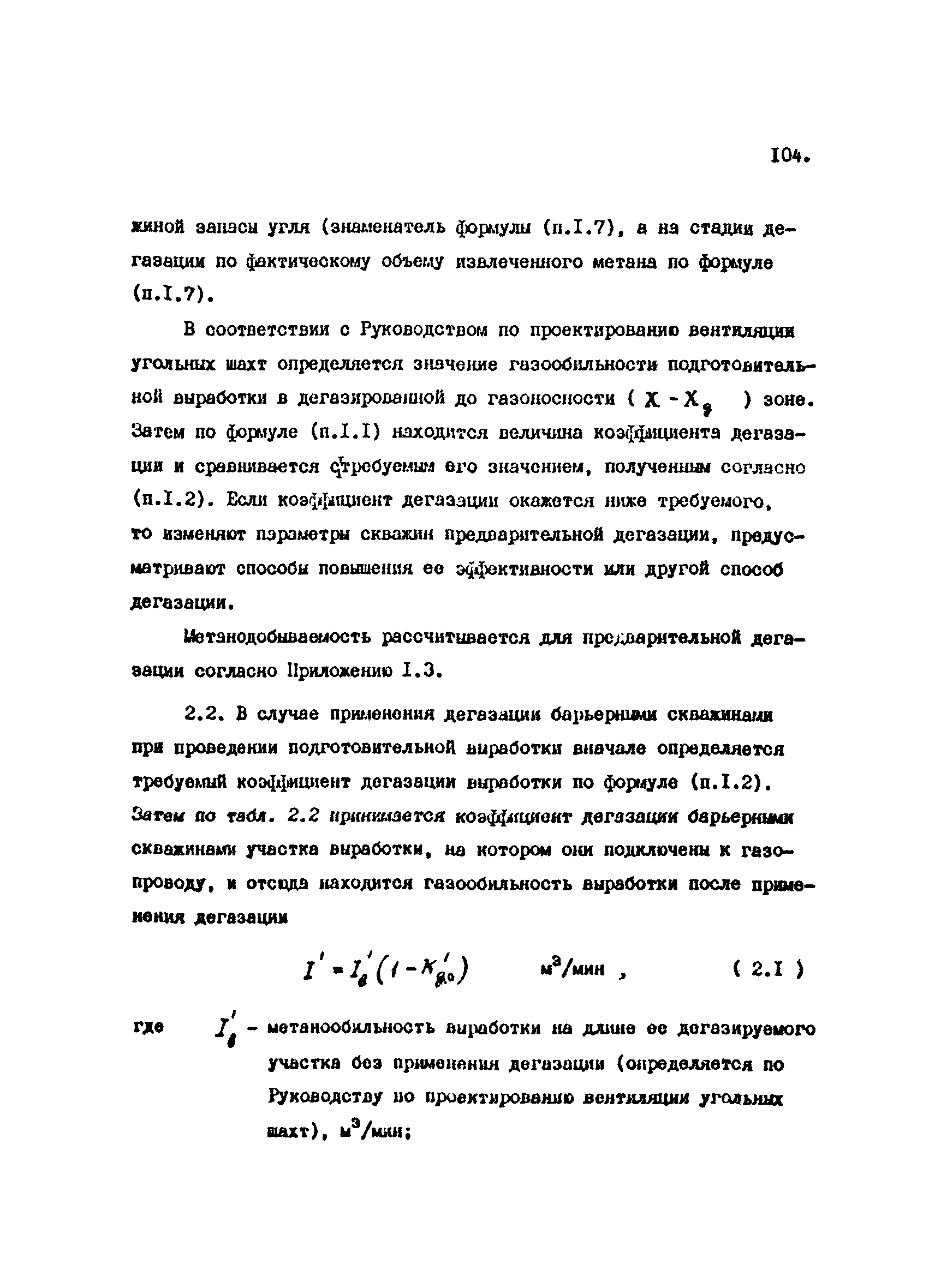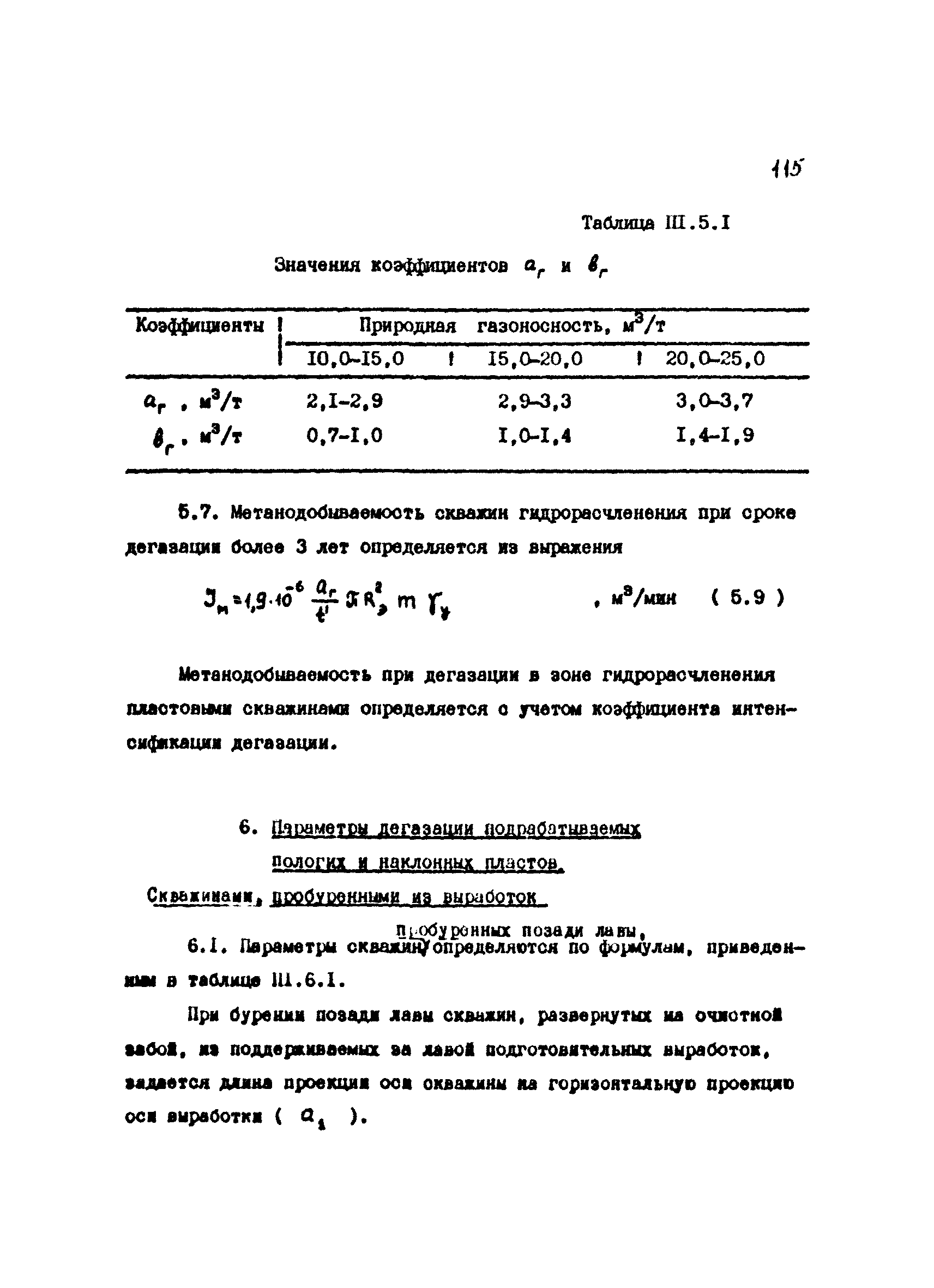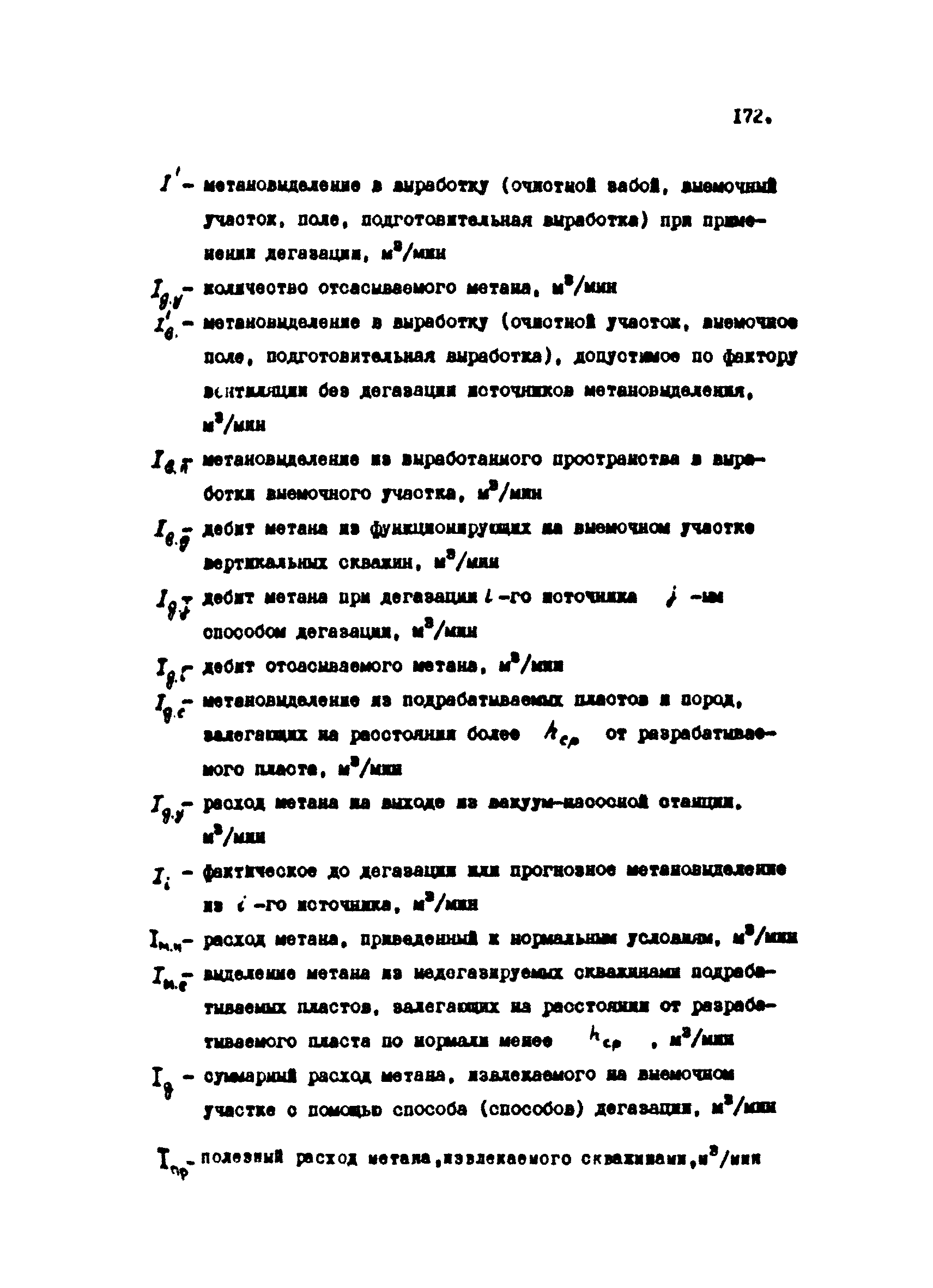 | Оглавление: | 1. Общие положения по дегазации угольных шахт 2. Способы дегазации неразгруженных угольных пластов 2.1. Дегазация при проведении горных выработок 2.2. Дегазация разрабатываемых угольных пластов скважинами, пробуренными из выработок 2.3. Дегазация разрабатываемых пластов скважинами с применением гидроразрыва 2.4. Дегазация угольных пластов скважинами гидрорасчленения, пробуренными с поверхности 3. Дегазация сближенных угольных пластов и вмещающих пород 3.1. Дегазация подрабатываемых пологих и наклонных пластов скважинами из выработок 3.2. Дегазация подрабатываемых пологих и наклонных пластов скважинами с поверхности 3.3. Дегазация надрабатываемых пологих и наклонных пластов 3.4. Дегазация подрабатываемых и надрабатываемых крутых пластов 4. Дегазация выработанного пространства 4.1. Дегазация выработанного пространства скважинами из подземных выработок 4.2. Дегазация выработанного пространства скважинами с поверхности 5. Метод предупреждения борьбы с суфлярами 6. Технология и организация ведения дегазационных работ 6.1. Бурение и герметизация скважин 6.2. Газопроводы 6.3. Контроль работы дегазационной сети 6.4. Организация службы дегазации 7. Вакуум-насосные станции (ВНС) 7.1. Общие положения 7.2. Стационарная вакуум-насосная станция на поверхности 7.3. Передвижные поверхностные вакуум-насосные станции 7.4. Передвижная подземная дегазационная установка Инструкция по безопасному ведению дегазационных работ на шахтах I. Общие положения II. Вакуум-насосные станции III. Газопроводы IV. Бурение дегазационных скважин V. Обслуживание дегазационной системы Приложение 1. Указания по определению параметров дегазации 1. Эффективность дегазации и ее контроль 2. Параметры дегазации при проведении подготовительных выработок 3. Параметры дегазации разрабатываемых пластов скважинами 4. Параметры гидроразрыва пласта через скважины, пробуренные из выработок 5. Параметры гидрорасчленения пластов Карагандинского бассейна через скважины, пробуренные с поверхности 6. Параметры дегазации подрабатываемых пологих и наклонных пластов 7. Параметры дегазации надрабатываемых пологих и наклонных пластов скважинами, пробуренными из выработок 8. Параметры дегазации подрабатываемых и надрабатываемых крутых пластов скважинами, пробуренными из выработок 9. Параметры дегазации выработанного пространства 10. Расчет газопроводов, выбор вакуум-насосов 11. Определение объемов каптируемого в шахтах метана 12. Приближенное определение необходимого количества скважин и разрежения в них при дегазации подрабатываемого массива Приложение 2. Методические указания по проведению вакуумно-газовой съемки в дегазационном трубопроводе Приложение 3. Определение мест подсосов воздуха в скважины, выбор способов их снижения Условные обозначения к приложениям |