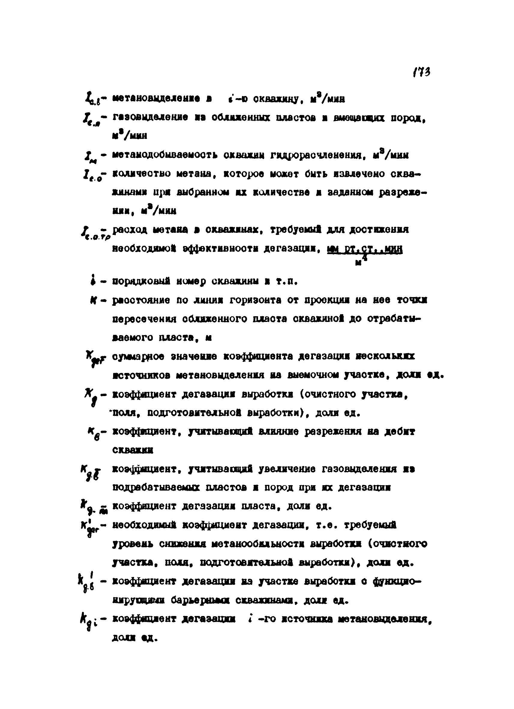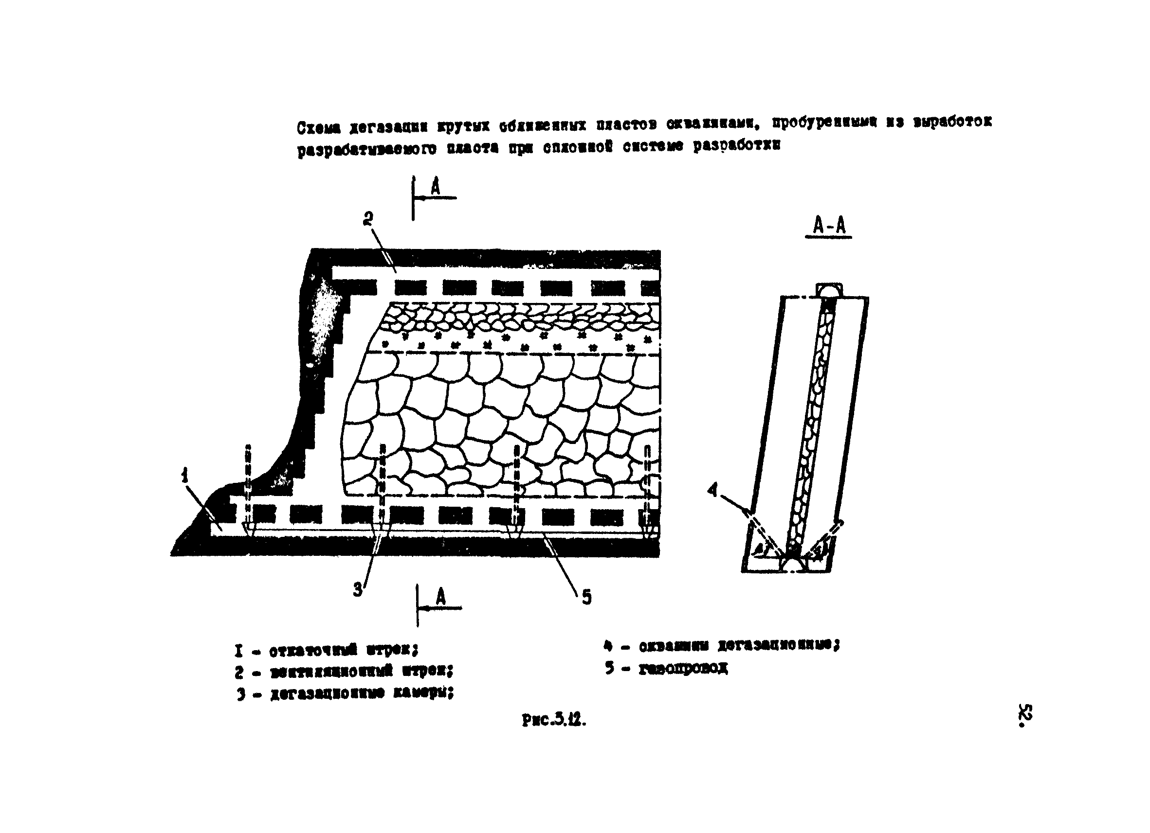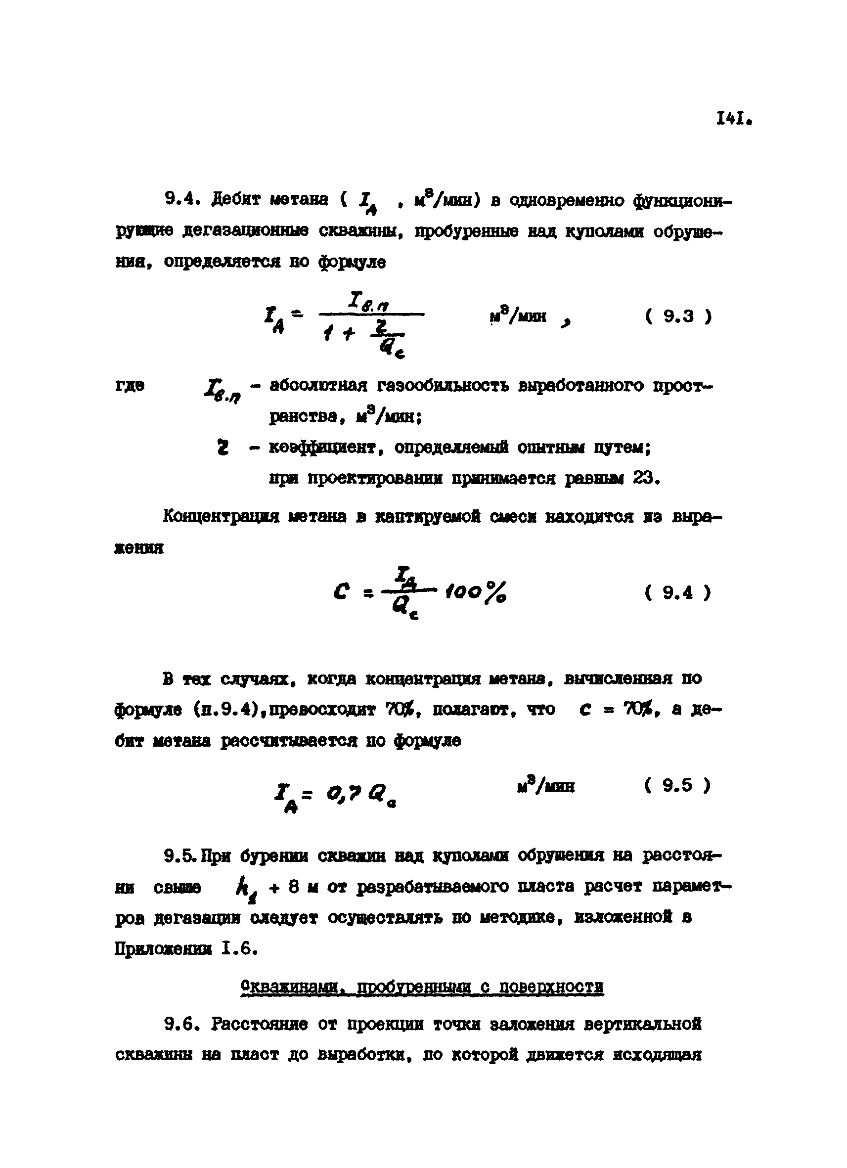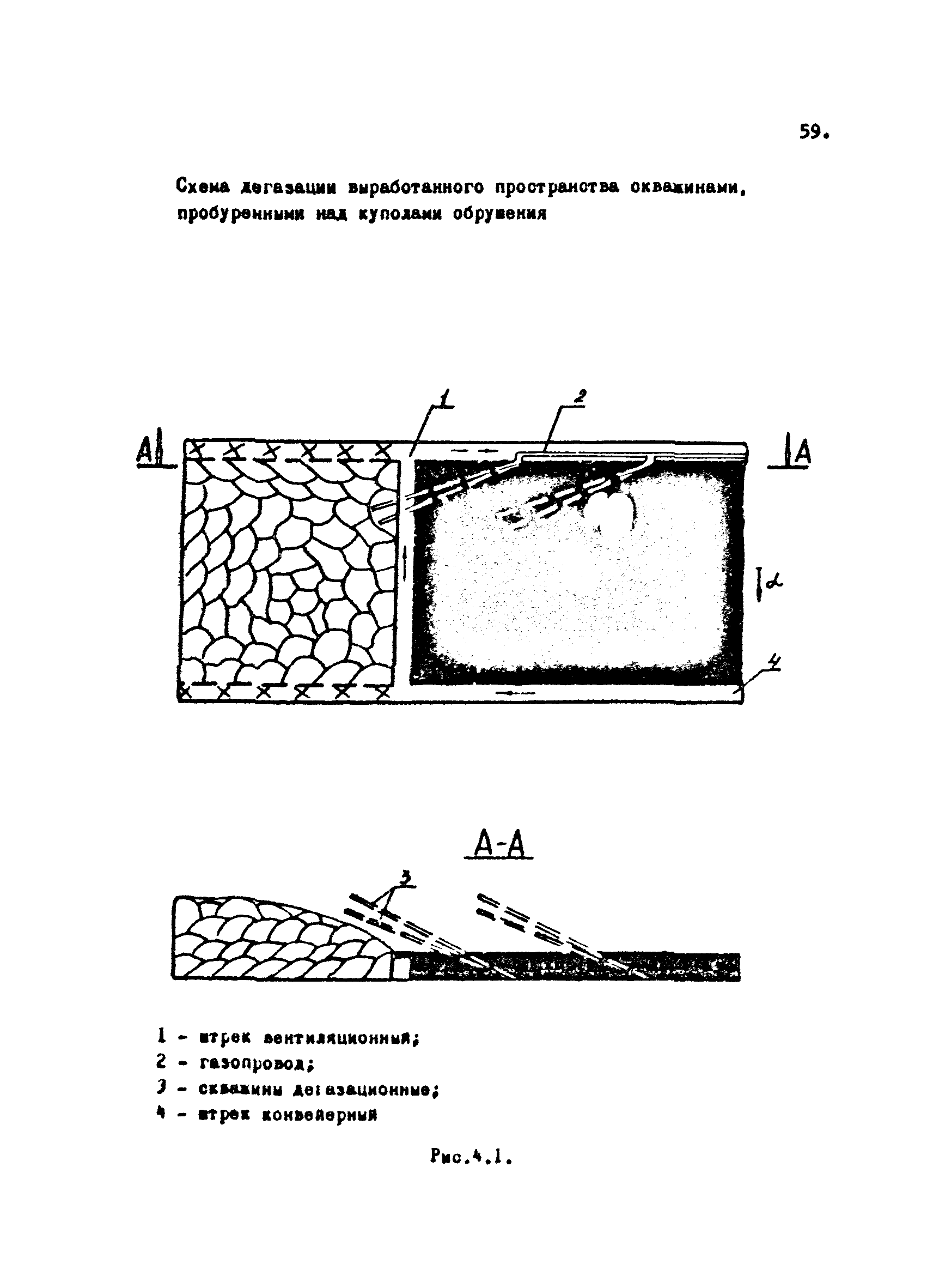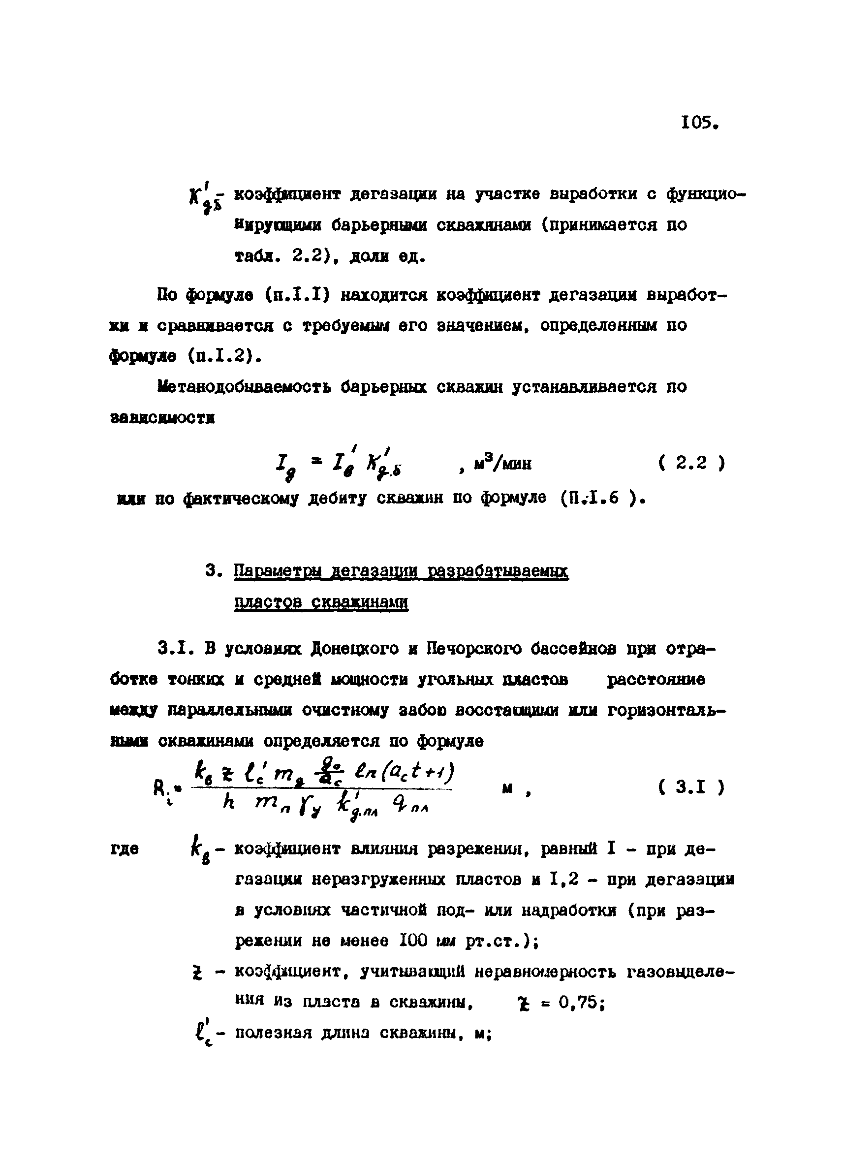 | Оглавление: | 1. Общие положения по дегазации угольных шахт 2. Способы дегазации неразгруженных угольных пластов 2.1. Дегазация при проведении горных выработок 2.2. Дегазация разрабатываемых угольных пластов скважинами, пробуренными из выработок 2.3. Дегазация разрабатываемых пластов скважинами с применением гидроразрыва 2.4. Дегазация угольных пластов скважинами гидрорасчленения, пробуренными с поверхности 3. Дегазация сближенных угольных пластов и вмещающих пород 3.1. Дегазация подрабатываемых пологих и наклонных пластов скважинами из выработок 3.2. Дегазация подрабатываемых пологих и наклонных пластов скважинами с поверхности 3.3. Дегазация надрабатываемых пологих и наклонных пластов 3.4. Дегазация подрабатываемых и надрабатываемых крутых пластов 4. Дегазация выработанного пространства 4.1. Дегазация выработанного пространства скважинами из подземных выработок 4.2. Дегазация выработанного пространства скважинами с поверхности 5. Метод предупреждения борьбы с суфлярами 6. Технология и организация ведения дегазационных работ 6.1. Бурение и герметизация скважин 6.2. Газопроводы 6.3. Контроль работы дегазационной сети 6.4. Организация службы дегазации 7. Вакуум-насосные станции (ВНС) 7.1. Общие положения 7.2. Стационарная вакуум-насосная станция на поверхности 7.3. Передвижные поверхностные вакуум-насосные станции 7.4. Передвижная подземная дегазационная установка Инструкция по безопасному ведению дегазационных работ на шахтах I. Общие положения II. Вакуум-насосные станции III. Газопроводы IV. Бурение дегазационных скважин V. Обслуживание дегазационной системы Приложение 1. Указания по определению параметров дегазации 1. Эффективность дегазации и ее контроль 2. Параметры дегазации при проведении подготовительных выработок 3. Параметры дегазации разрабатываемых пластов скважинами 4. Параметры гидроразрыва пласта через скважины, пробуренные из выработок 5. Параметры гидрорасчленения пластов Карагандинского бассейна через скважины, пробуренные с поверхности 6. Параметры дегазации подрабатываемых пологих и наклонных пластов 7. Параметры дегазации надрабатываемых пологих и наклонных пластов скважинами, пробуренными из выработок 8. Параметры дегазации подрабатываемых и надрабатываемых крутых пластов скважинами, пробуренными из выработок 9. Параметры дегазации выработанного пространства 10. Расчет газопроводов, выбор вакуум-насосов 11. Определение объемов каптируемого в шахтах метана 12. Приближенное определение необходимого количества скважин и разрежения в них при дегазации подрабатываемого массива Приложение 2. Методические указания по проведению вакуумно-газовой съемки в дегазационном трубопроводе Приложение 3. Определение мест подсосов воздуха в скважины, выбор способов их снижения Условные обозначения к приложениям |