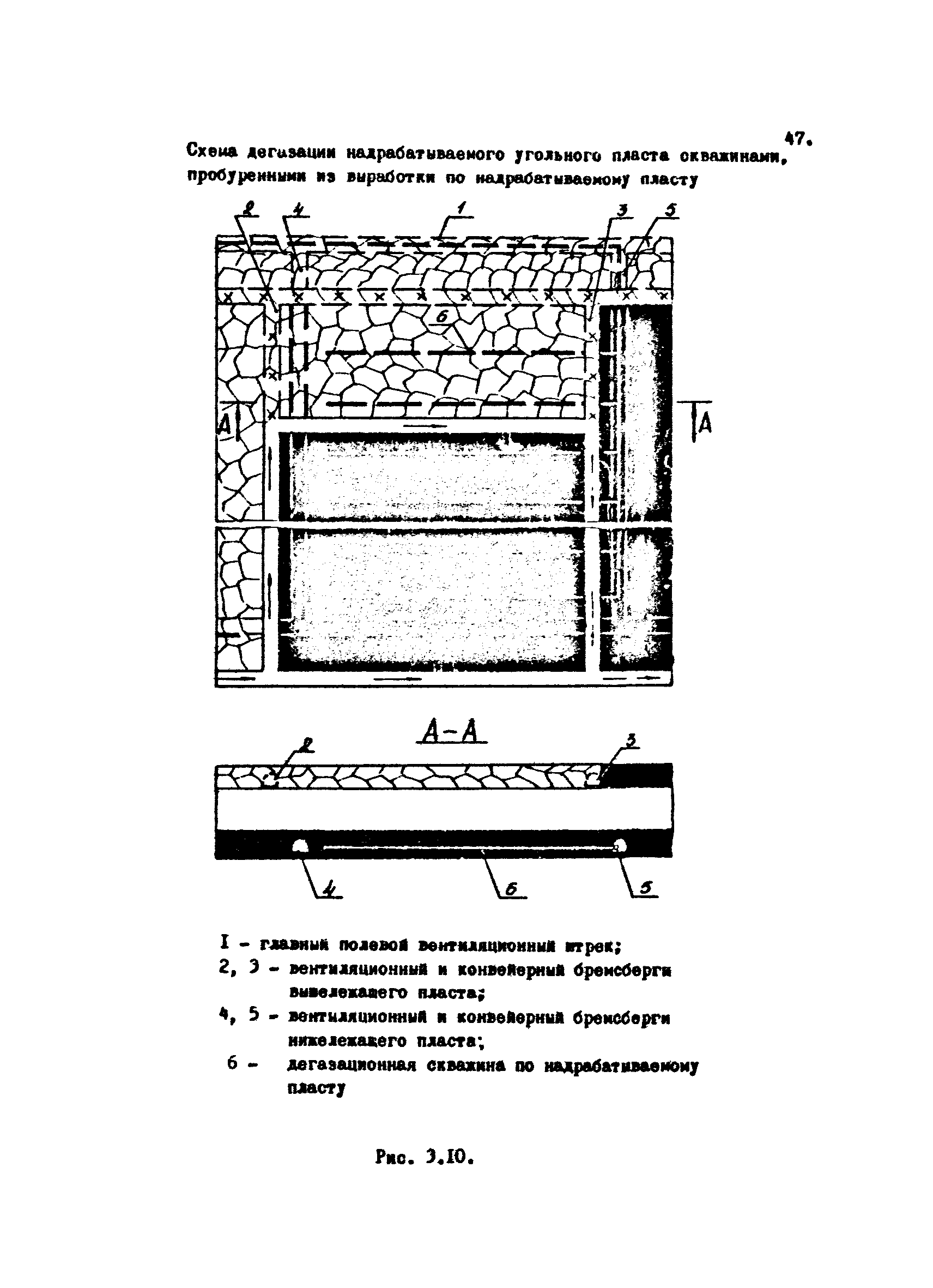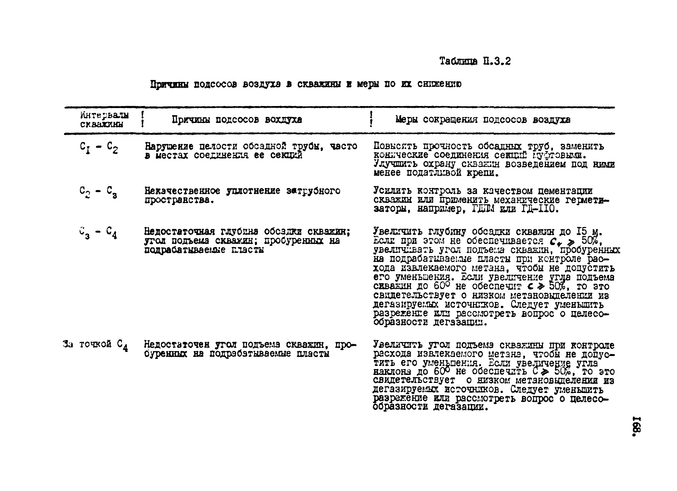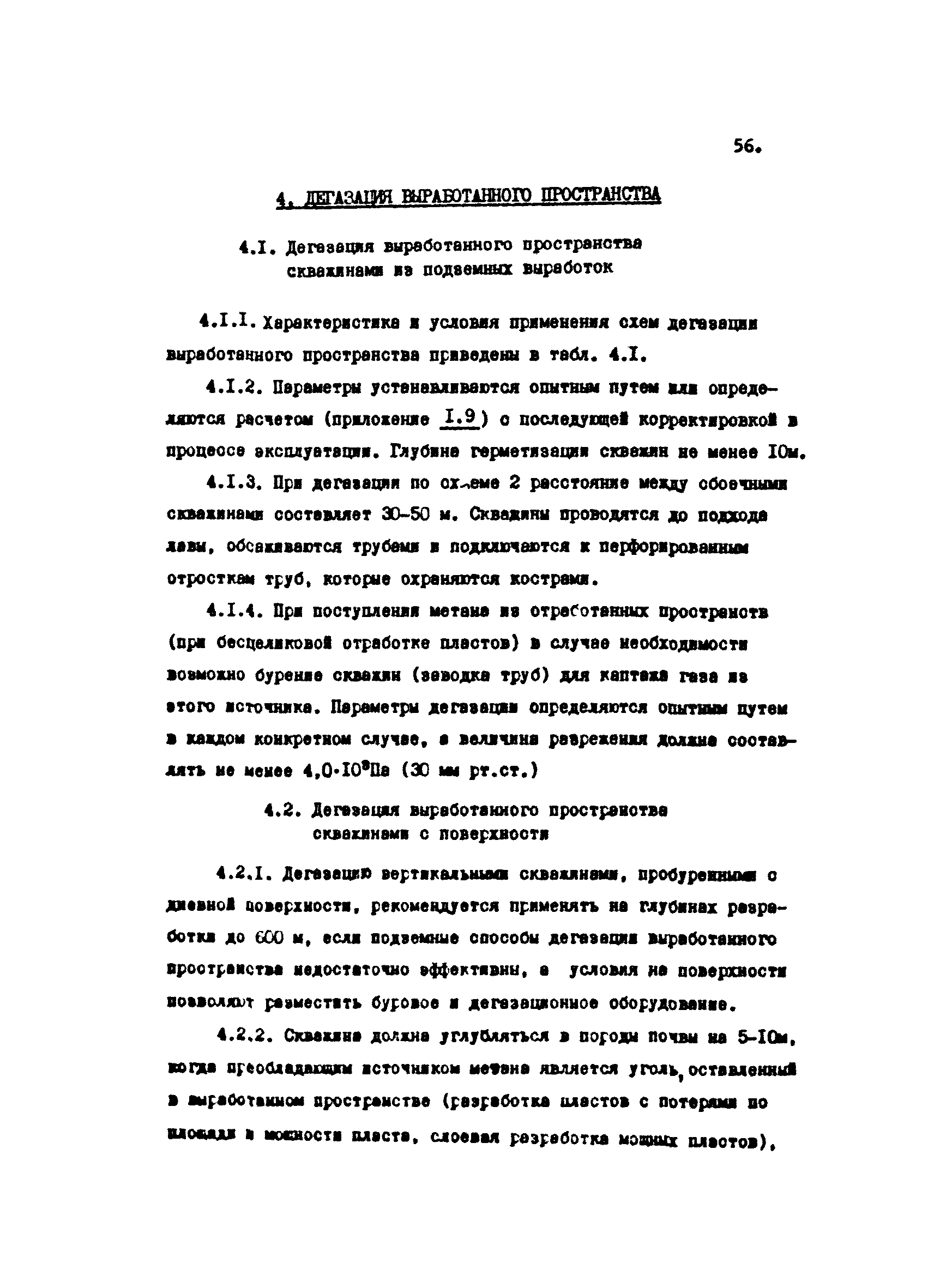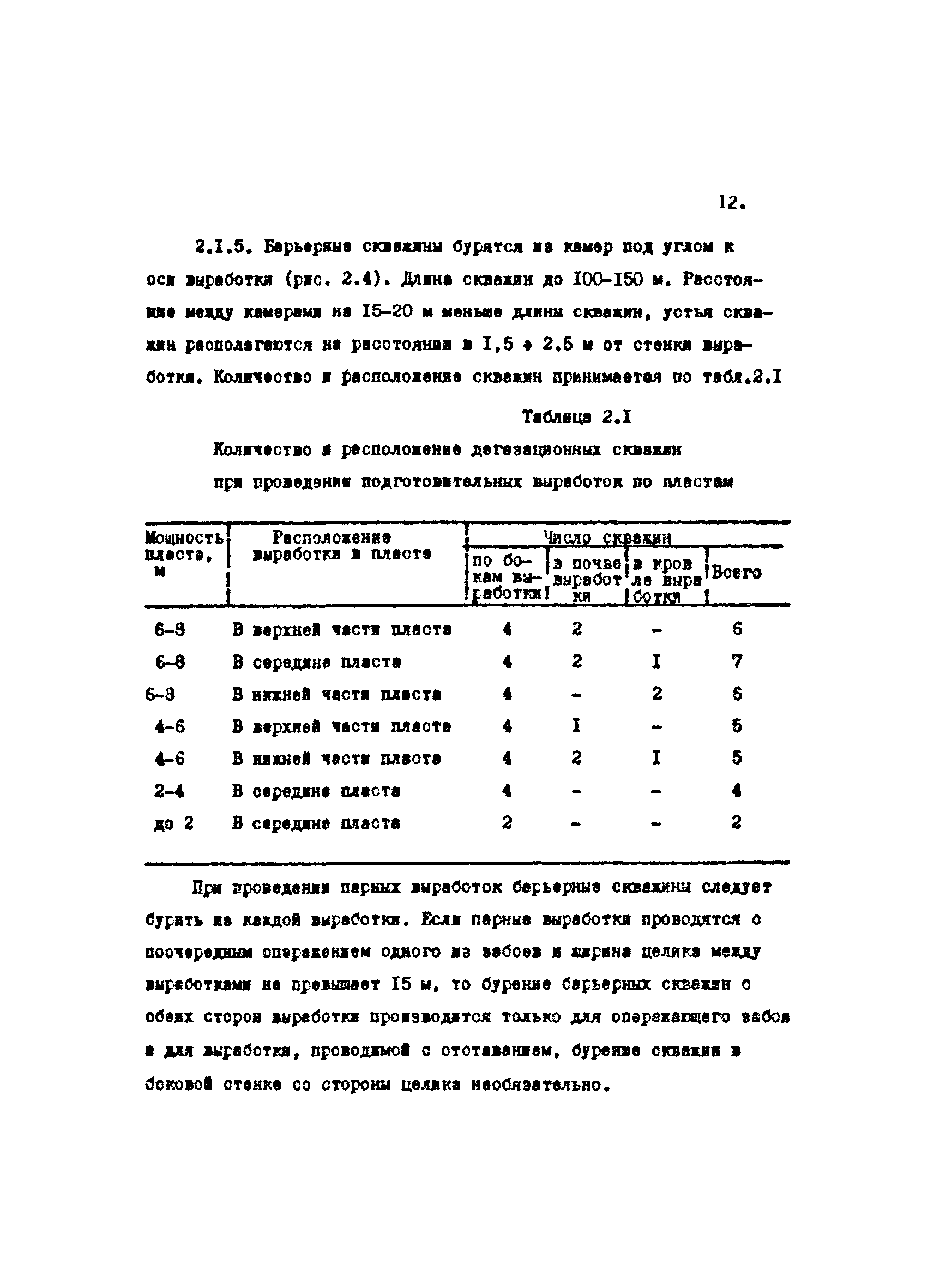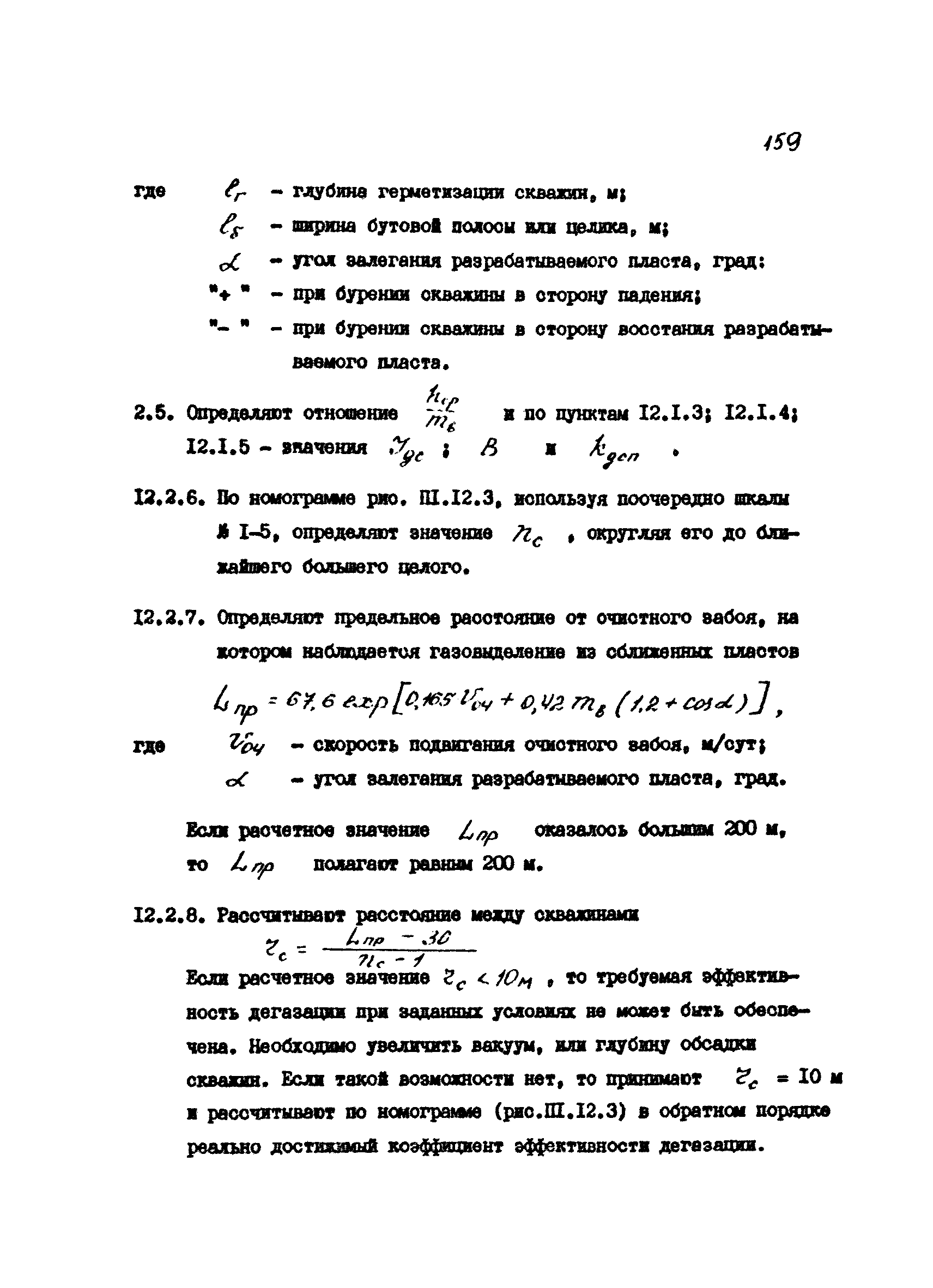 | Оглавление: | 1. Общие положения по дегазации угольных шахт 2. Способы дегазации неразгруженных угольных пластов 2.1. Дегазация при проведении горных выработок 2.2. Дегазация разрабатываемых угольных пластов скважинами, пробуренными из выработок 2.3. Дегазация разрабатываемых пластов скважинами с применением гидроразрыва 2.4. Дегазация угольных пластов скважинами гидрорасчленения, пробуренными с поверхности 3. Дегазация сближенных угольных пластов и вмещающих пород 3.1. Дегазация подрабатываемых пологих и наклонных пластов скважинами из выработок 3.2. Дегазация подрабатываемых пологих и наклонных пластов скважинами с поверхности 3.3. Дегазация надрабатываемых пологих и наклонных пластов 3.4. Дегазация подрабатываемых и надрабатываемых крутых пластов 4. Дегазация выработанного пространства 4.1. Дегазация выработанного пространства скважинами из подземных выработок 4.2. Дегазация выработанного пространства скважинами с поверхности 5. Метод предупреждения борьбы с суфлярами 6. Технология и организация ведения дегазационных работ 6.1. Бурение и герметизация скважин 6.2. Газопроводы 6.3. Контроль работы дегазационной сети 6.4. Организация службы дегазации 7. Вакуум-насосные станции (ВНС) 7.1. Общие положения 7.2. Стационарная вакуум-насосная станция на поверхности 7.3. Передвижные поверхностные вакуум-насосные станции 7.4. Передвижная подземная дегазационная установка Инструкция по безопасному ведению дегазационных работ на шахтах I. Общие положения II. Вакуум-насосные станции III. Газопроводы IV. Бурение дегазационных скважин V. Обслуживание дегазационной системы Приложение 1. Указания по определению параметров дегазации 1. Эффективность дегазации и ее контроль 2. Параметры дегазации при проведении подготовительных выработок 3. Параметры дегазации разрабатываемых пластов скважинами 4. Параметры гидроразрыва пласта через скважины, пробуренные из выработок 5. Параметры гидрорасчленения пластов Карагандинского бассейна через скважины, пробуренные с поверхности 6. Параметры дегазации подрабатываемых пологих и наклонных пластов 7. Параметры дегазации надрабатываемых пологих и наклонных пластов скважинами, пробуренными из выработок 8. Параметры дегазации подрабатываемых и надрабатываемых крутых пластов скважинами, пробуренными из выработок 9. Параметры дегазации выработанного пространства 10. Расчет газопроводов, выбор вакуум-насосов 11. Определение объемов каптируемого в шахтах метана 12. Приближенное определение необходимого количества скважин и разрежения в них при дегазации подрабатываемого массива Приложение 2. Методические указания по проведению вакуумно-газовой съемки в дегазационном трубопроводе Приложение 3. Определение мест подсосов воздуха в скважины, выбор способов их снижения Условные обозначения к приложениям |