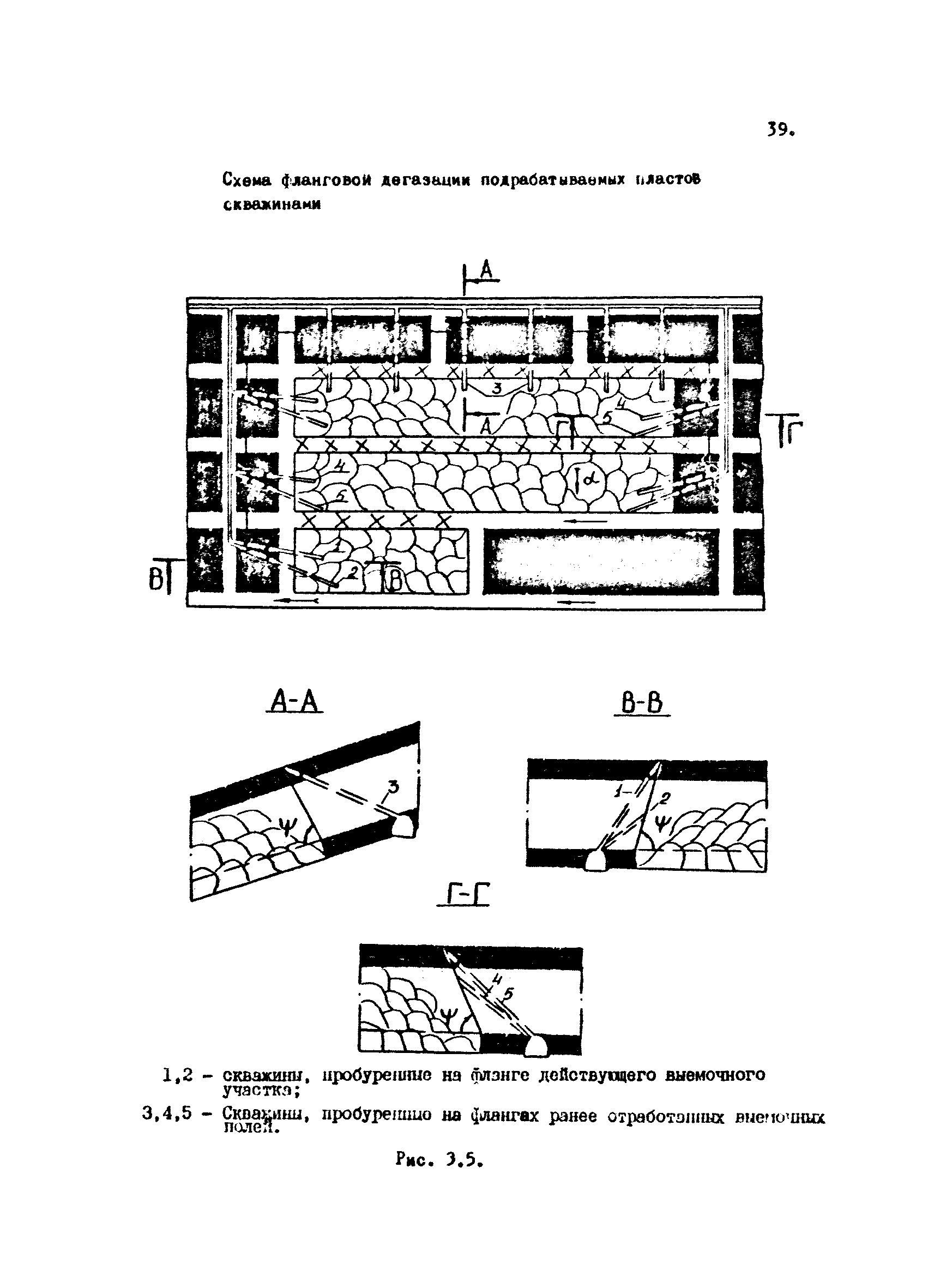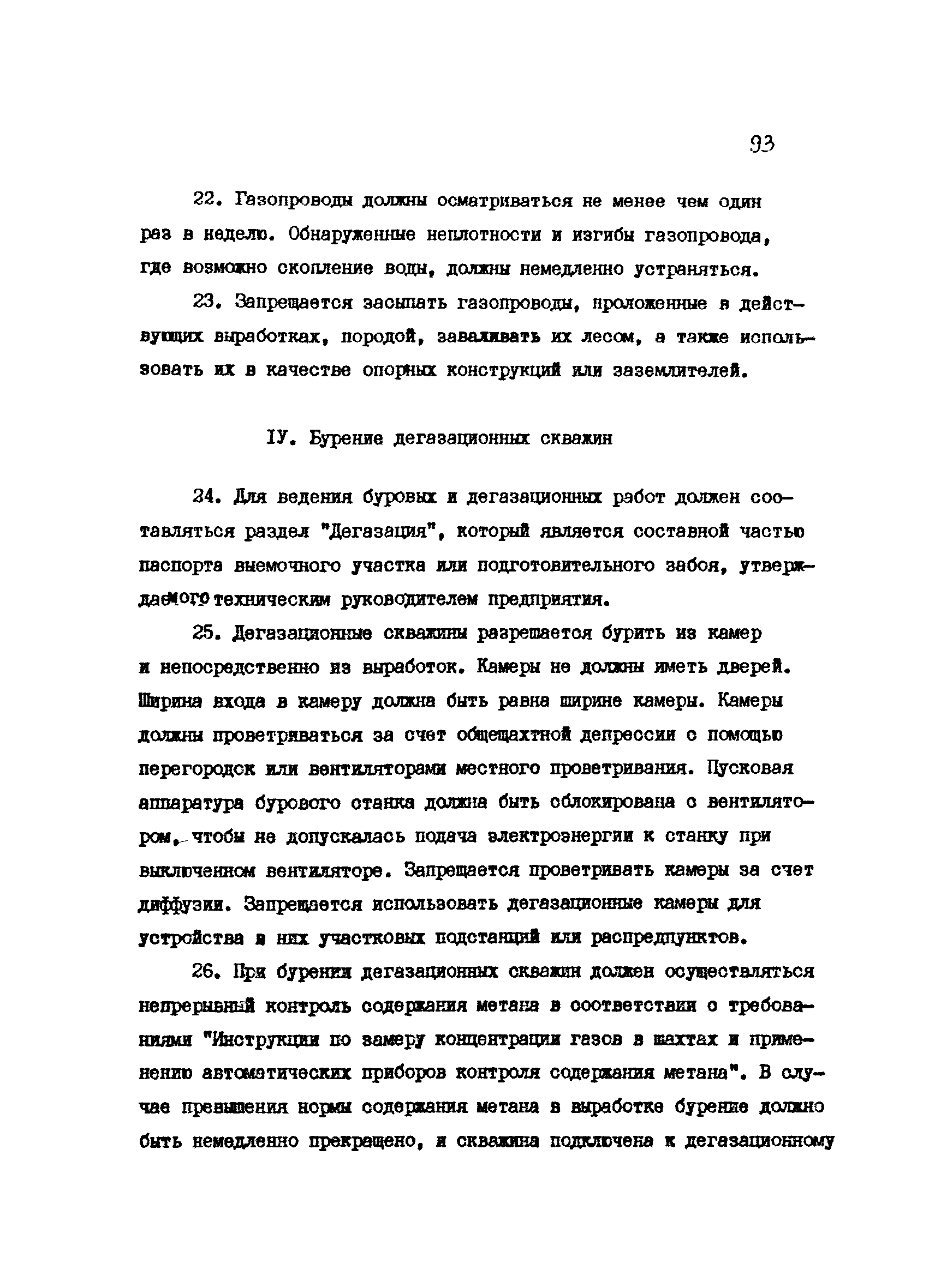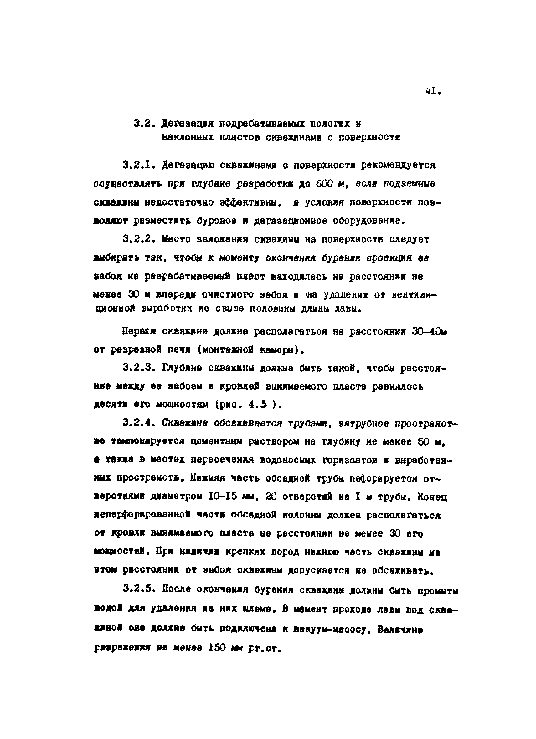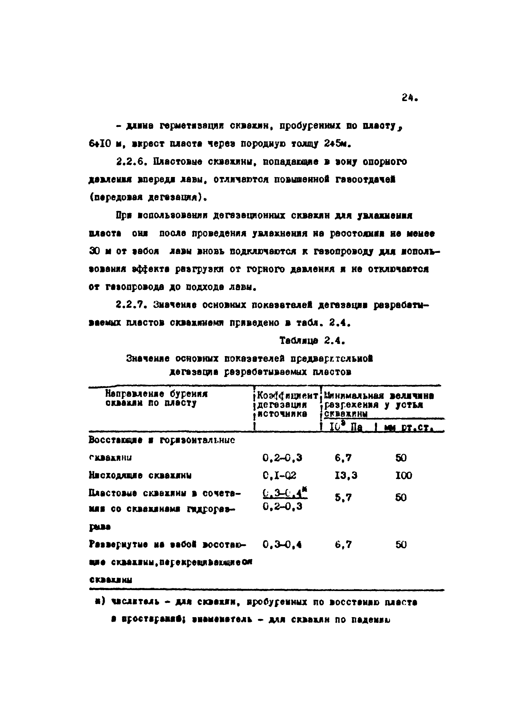 | Оглавление: | 1. Общие положения по дегазации угольных шахт 2. Способы дегазации неразгруженных угольных пластов 2.1. Дегазация при проведении горных выработок 2.2. Дегазация разрабатываемых угольных пластов скважинами, пробуренными из выработок 2.3. Дегазация разрабатываемых пластов скважинами с применением гидроразрыва 2.4. Дегазация угольных пластов скважинами гидрорасчленения, пробуренными с поверхности 3. Дегазация сближенных угольных пластов и вмещающих пород 3.1. Дегазация подрабатываемых пологих и наклонных пластов скважинами из выработок 3.2. Дегазация подрабатываемых пологих и наклонных пластов скважинами с поверхности 3.3. Дегазация надрабатываемых пологих и наклонных пластов 3.4. Дегазация подрабатываемых и надрабатываемых крутых пластов 4. Дегазация выработанного пространства 4.1. Дегазация выработанного пространства скважинами из подземных выработок 4.2. Дегазация выработанного пространства скважинами с поверхности 5. Метод предупреждения борьбы с суфлярами 6. Технология и организация ведения дегазационных работ 6.1. Бурение и герметизация скважин 6.2. Газопроводы 6.3. Контроль работы дегазационной сети 6.4. Организация службы дегазации 7. Вакуум-насосные станции (ВНС) 7.1. Общие положения 7.2. Стационарная вакуум-насосная станция на поверхности 7.3. Передвижные поверхностные вакуум-насосные станции 7.4. Передвижная подземная дегазационная установка Инструкция по безопасному ведению дегазационных работ на шахтах I. Общие положения II. Вакуум-насосные станции III. Газопроводы IV. Бурение дегазационных скважин V. Обслуживание дегазационной системы Приложение 1. Указания по определению параметров дегазации 1. Эффективность дегазации и ее контроль 2. Параметры дегазации при проведении подготовительных выработок 3. Параметры дегазации разрабатываемых пластов скважинами 4. Параметры гидроразрыва пласта через скважины, пробуренные из выработок 5. Параметры гидрорасчленения пластов Карагандинского бассейна через скважины, пробуренные с поверхности 6. Параметры дегазации подрабатываемых пологих и наклонных пластов 7. Параметры дегазации надрабатываемых пологих и наклонных пластов скважинами, пробуренными из выработок 8. Параметры дегазации подрабатываемых и надрабатываемых крутых пластов скважинами, пробуренными из выработок 9. Параметры дегазации выработанного пространства 10. Расчет газопроводов, выбор вакуум-насосов 11. Определение объемов каптируемого в шахтах метана 12. Приближенное определение необходимого количества скважин и разрежения в них при дегазации подрабатываемого массива Приложение 2. Методические указания по проведению вакуумно-газовой съемки в дегазационном трубопроводе Приложение 3. Определение мест подсосов воздуха в скважины, выбор способов их снижения Условные обозначения к приложениям |