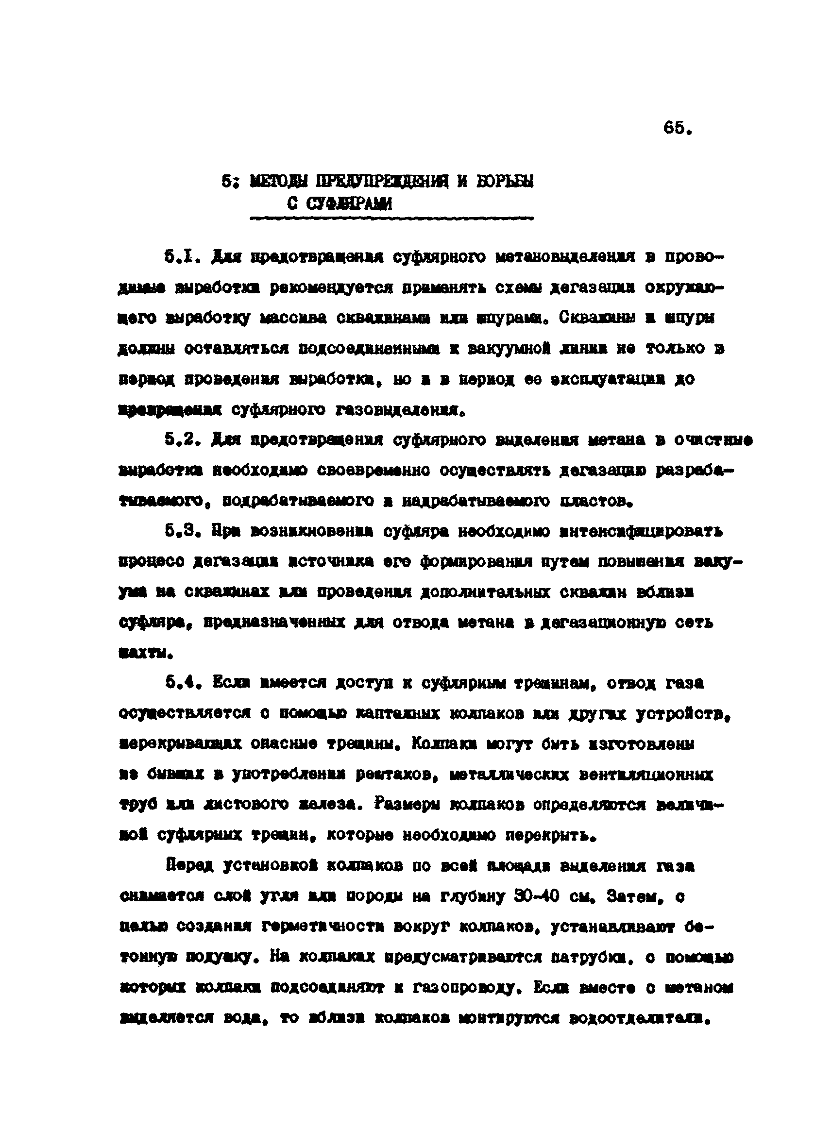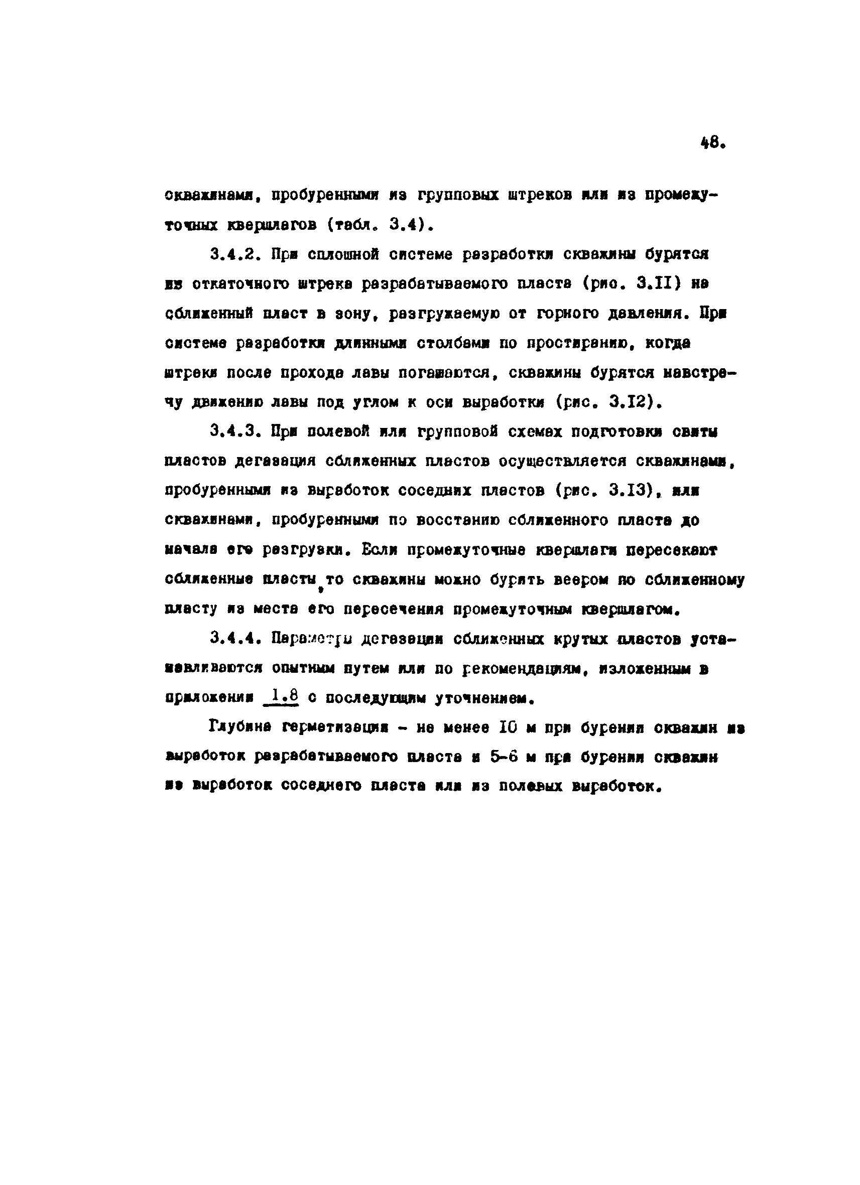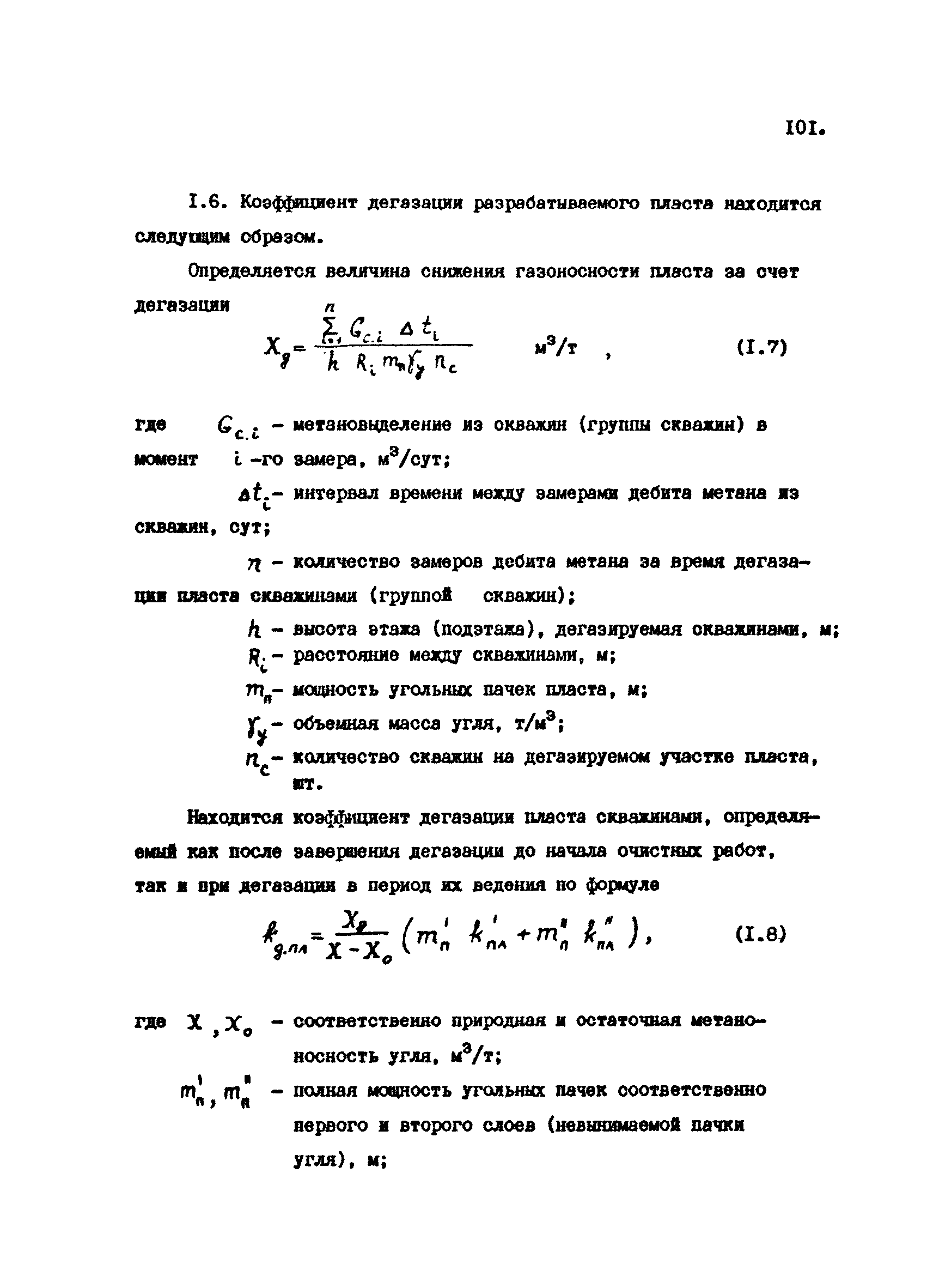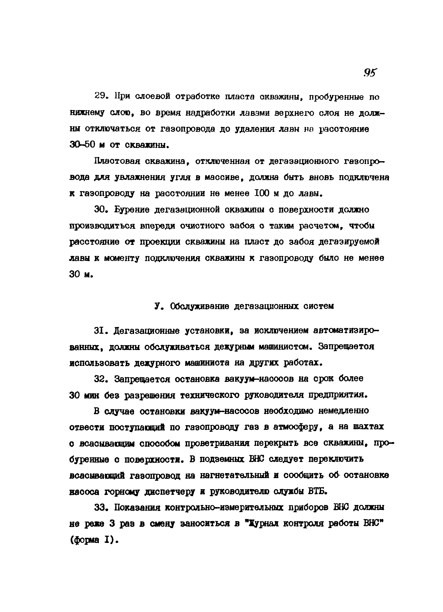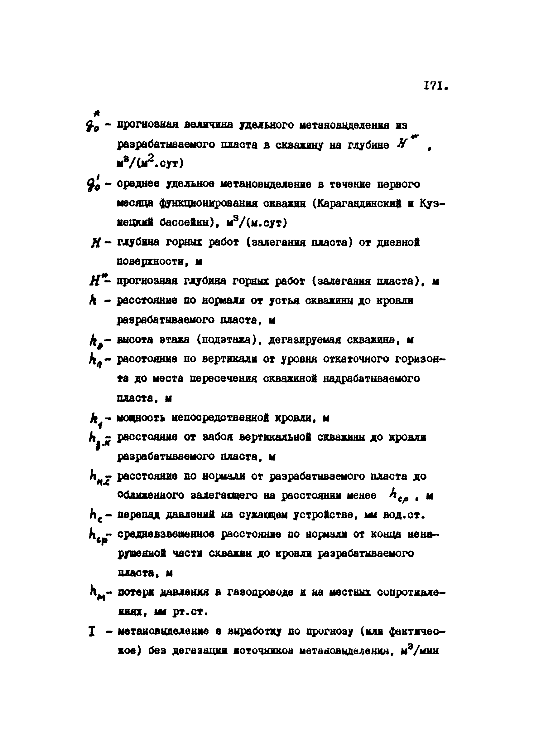 | Оглавление: | 1. Общие положения по дегазации угольных шахт 2. Способы дегазации неразгруженных угольных пластов 2.1. Дегазация при проведении горных выработок 2.2. Дегазация разрабатываемых угольных пластов скважинами, пробуренными из выработок 2.3. Дегазация разрабатываемых пластов скважинами с применением гидроразрыва 2.4. Дегазация угольных пластов скважинами гидрорасчленения, пробуренными с поверхности 3. Дегазация сближенных угольных пластов и вмещающих пород 3.1. Дегазация подрабатываемых пологих и наклонных пластов скважинами из выработок 3.2. Дегазация подрабатываемых пологих и наклонных пластов скважинами с поверхности 3.3. Дегазация надрабатываемых пологих и наклонных пластов 3.4. Дегазация подрабатываемых и надрабатываемых крутых пластов 4. Дегазация выработанного пространства 4.1. Дегазация выработанного пространства скважинами из подземных выработок 4.2. Дегазация выработанного пространства скважинами с поверхности 5. Метод предупреждения борьбы с суфлярами 6. Технология и организация ведения дегазационных работ 6.1. Бурение и герметизация скважин 6.2. Газопроводы 6.3. Контроль работы дегазационной сети 6.4. Организация службы дегазации 7. Вакуум-насосные станции (ВНС) 7.1. Общие положения 7.2. Стационарная вакуум-насосная станция на поверхности 7.3. Передвижные поверхностные вакуум-насосные станции 7.4. Передвижная подземная дегазационная установка Инструкция по безопасному ведению дегазационных работ на шахтах I. Общие положения II. Вакуум-насосные станции III. Газопроводы IV. Бурение дегазационных скважин V. Обслуживание дегазационной системы Приложение 1. Указания по определению параметров дегазации 1. Эффективность дегазации и ее контроль 2. Параметры дегазации при проведении подготовительных выработок 3. Параметры дегазации разрабатываемых пластов скважинами 4. Параметры гидроразрыва пласта через скважины, пробуренные из выработок 5. Параметры гидрорасчленения пластов Карагандинского бассейна через скважины, пробуренные с поверхности 6. Параметры дегазации подрабатываемых пологих и наклонных пластов 7. Параметры дегазации надрабатываемых пологих и наклонных пластов скважинами, пробуренными из выработок 8. Параметры дегазации подрабатываемых и надрабатываемых крутых пластов скважинами, пробуренными из выработок 9. Параметры дегазации выработанного пространства 10. Расчет газопроводов, выбор вакуум-насосов 11. Определение объемов каптируемого в шахтах метана 12. Приближенное определение необходимого количества скважин и разрежения в них при дегазации подрабатываемого массива Приложение 2. Методические указания по проведению вакуумно-газовой съемки в дегазационном трубопроводе Приложение 3. Определение мест подсосов воздуха в скважины, выбор способов их снижения Условные обозначения к приложениям |