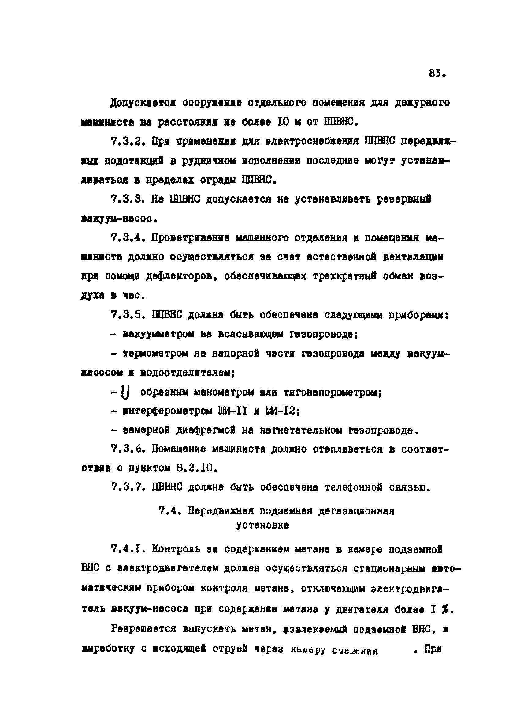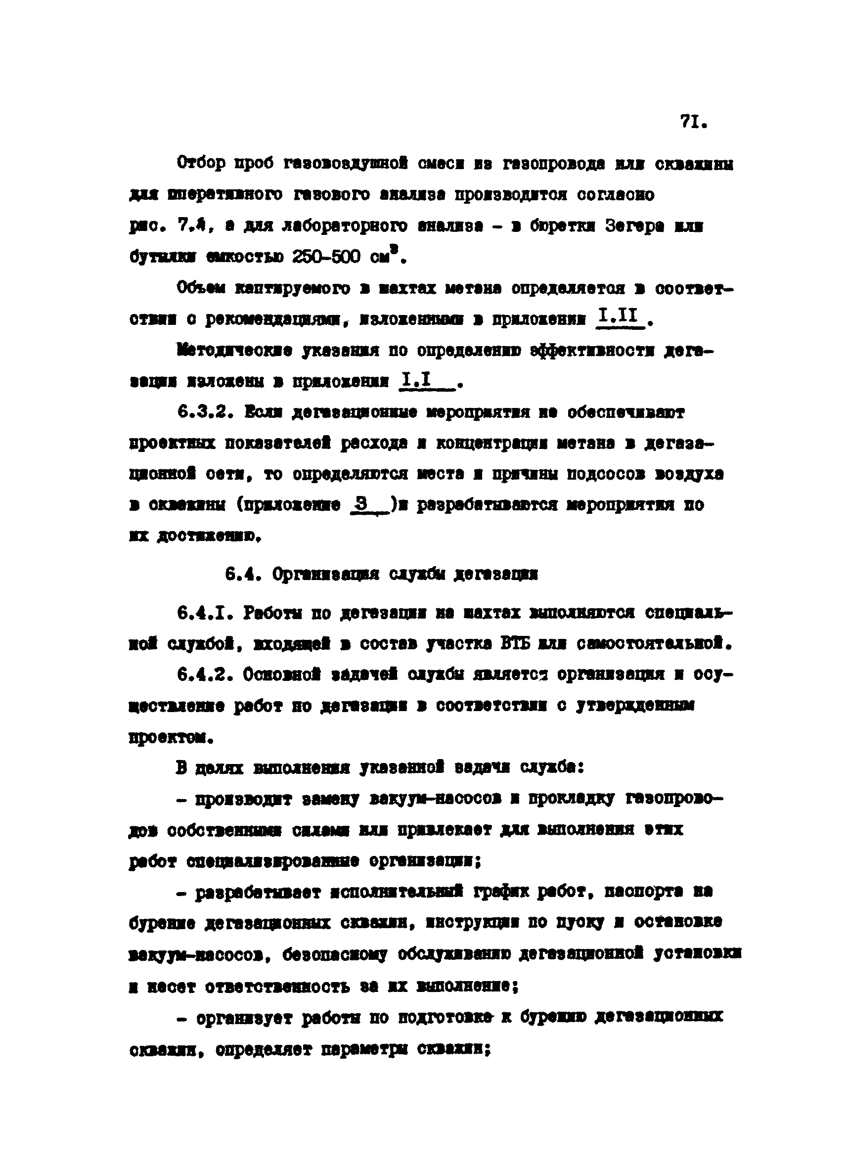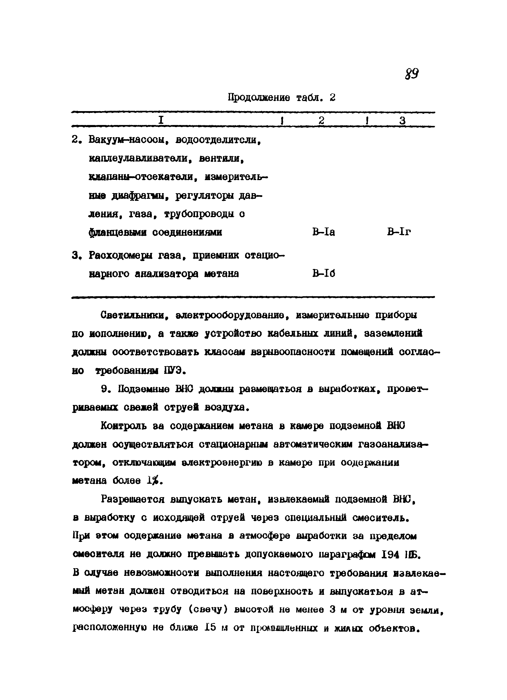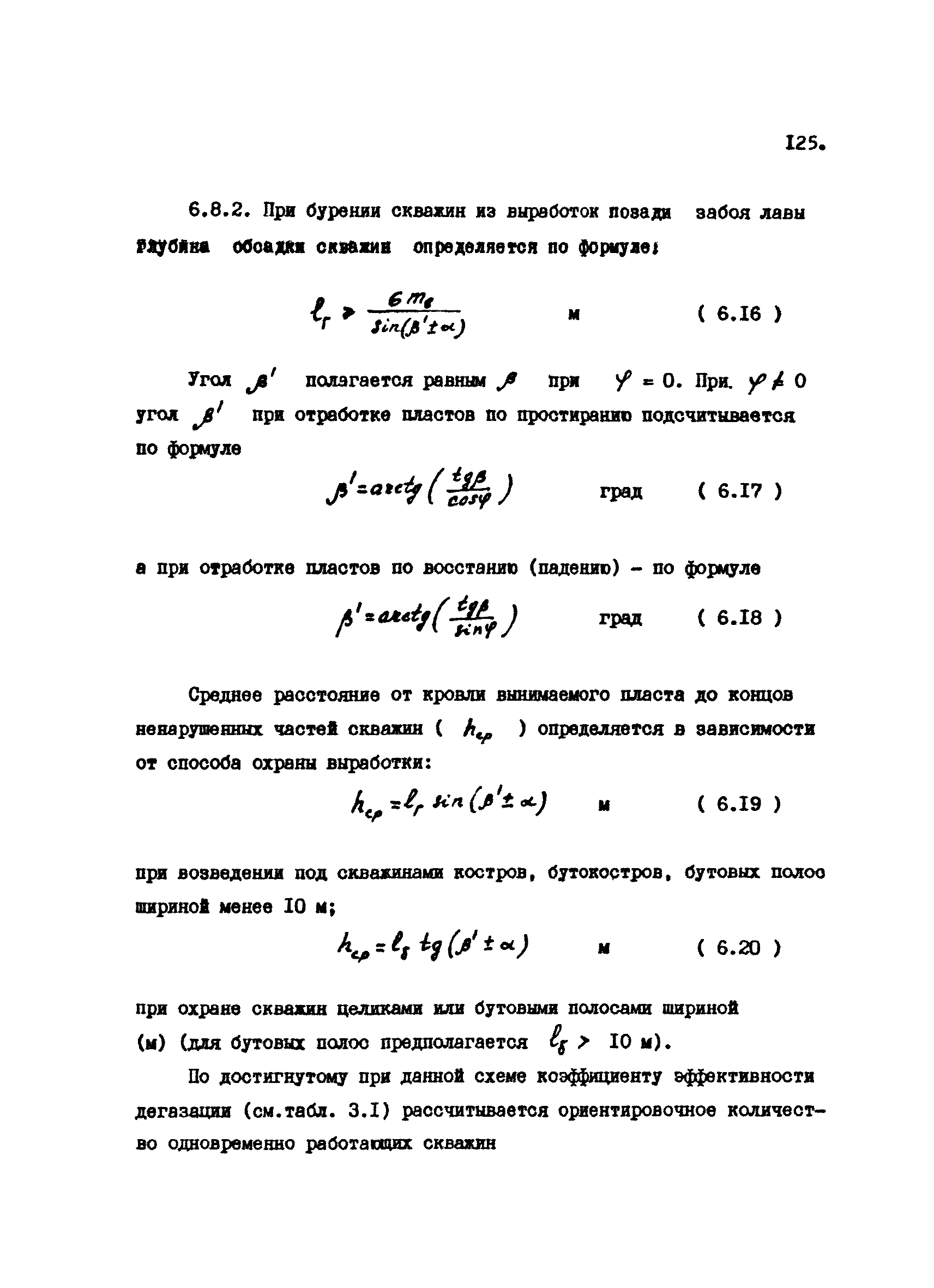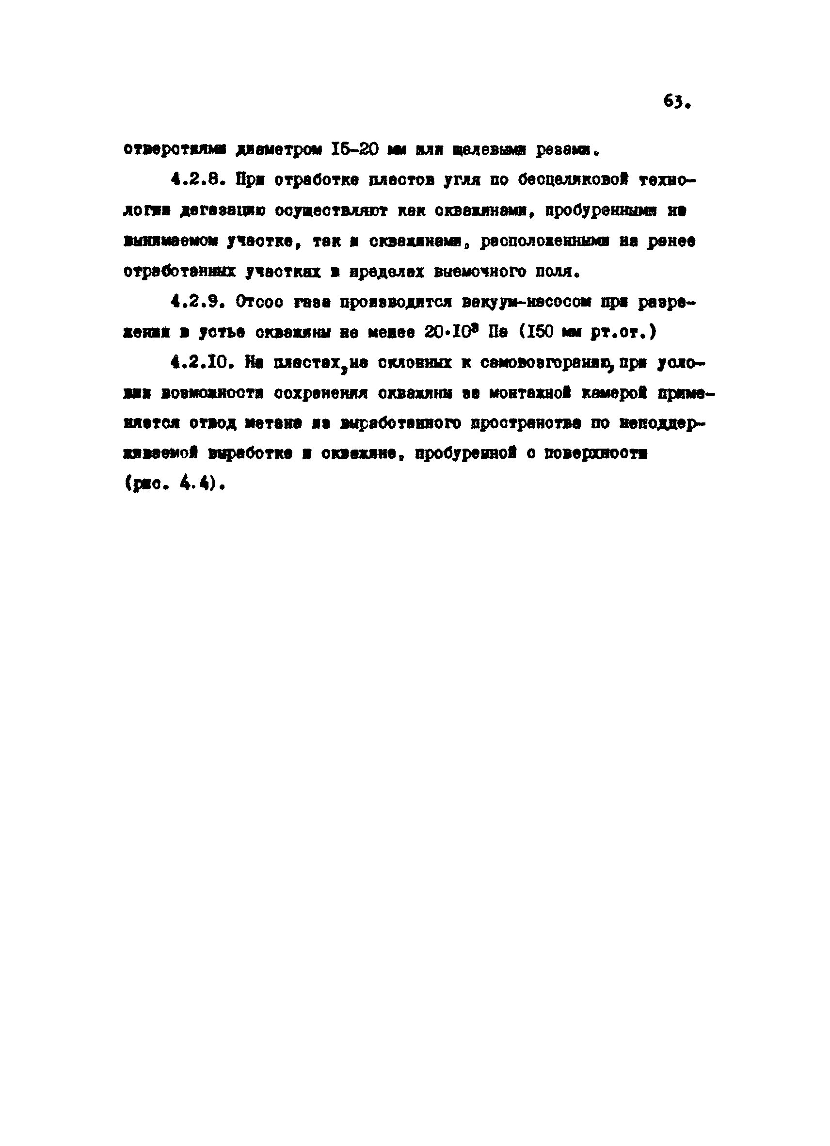 | Оглавление: | 1. Общие положения по дегазации угольных шахт 2. Способы дегазации неразгруженных угольных пластов 2.1. Дегазация при проведении горных выработок 2.2. Дегазация разрабатываемых угольных пластов скважинами, пробуренными из выработок 2.3. Дегазация разрабатываемых пластов скважинами с применением гидроразрыва 2.4. Дегазация угольных пластов скважинами гидрорасчленения, пробуренными с поверхности 3. Дегазация сближенных угольных пластов и вмещающих пород 3.1. Дегазация подрабатываемых пологих и наклонных пластов скважинами из выработок 3.2. Дегазация подрабатываемых пологих и наклонных пластов скважинами с поверхности 3.3. Дегазация надрабатываемых пологих и наклонных пластов 3.4. Дегазация подрабатываемых и надрабатываемых крутых пластов 4. Дегазация выработанного пространства 4.1. Дегазация выработанного пространства скважинами из подземных выработок 4.2. Дегазация выработанного пространства скважинами с поверхности 5. Метод предупреждения борьбы с суфлярами 6. Технология и организация ведения дегазационных работ 6.1. Бурение и герметизация скважин 6.2. Газопроводы 6.3. Контроль работы дегазационной сети 6.4. Организация службы дегазации 7. Вакуум-насосные станции (ВНС) 7.1. Общие положения 7.2. Стационарная вакуум-насосная станция на поверхности 7.3. Передвижные поверхностные вакуум-насосные станции 7.4. Передвижная подземная дегазационная установка Инструкция по безопасному ведению дегазационных работ на шахтах I. Общие положения II. Вакуум-насосные станции III. Газопроводы IV. Бурение дегазационных скважин V. Обслуживание дегазационной системы Приложение 1. Указания по определению параметров дегазации 1. Эффективность дегазации и ее контроль 2. Параметры дегазации при проведении подготовительных выработок 3. Параметры дегазации разрабатываемых пластов скважинами 4. Параметры гидроразрыва пласта через скважины, пробуренные из выработок 5. Параметры гидрорасчленения пластов Карагандинского бассейна через скважины, пробуренные с поверхности 6. Параметры дегазации подрабатываемых пологих и наклонных пластов 7. Параметры дегазации надрабатываемых пологих и наклонных пластов скважинами, пробуренными из выработок 8. Параметры дегазации подрабатываемых и надрабатываемых крутых пластов скважинами, пробуренными из выработок 9. Параметры дегазации выработанного пространства 10. Расчет газопроводов, выбор вакуум-насосов 11. Определение объемов каптируемого в шахтах метана 12. Приближенное определение необходимого количества скважин и разрежения в них при дегазации подрабатываемого массива Приложение 2. Методические указания по проведению вакуумно-газовой съемки в дегазационном трубопроводе Приложение 3. Определение мест подсосов воздуха в скважины, выбор способов их снижения Условные обозначения к приложениям |