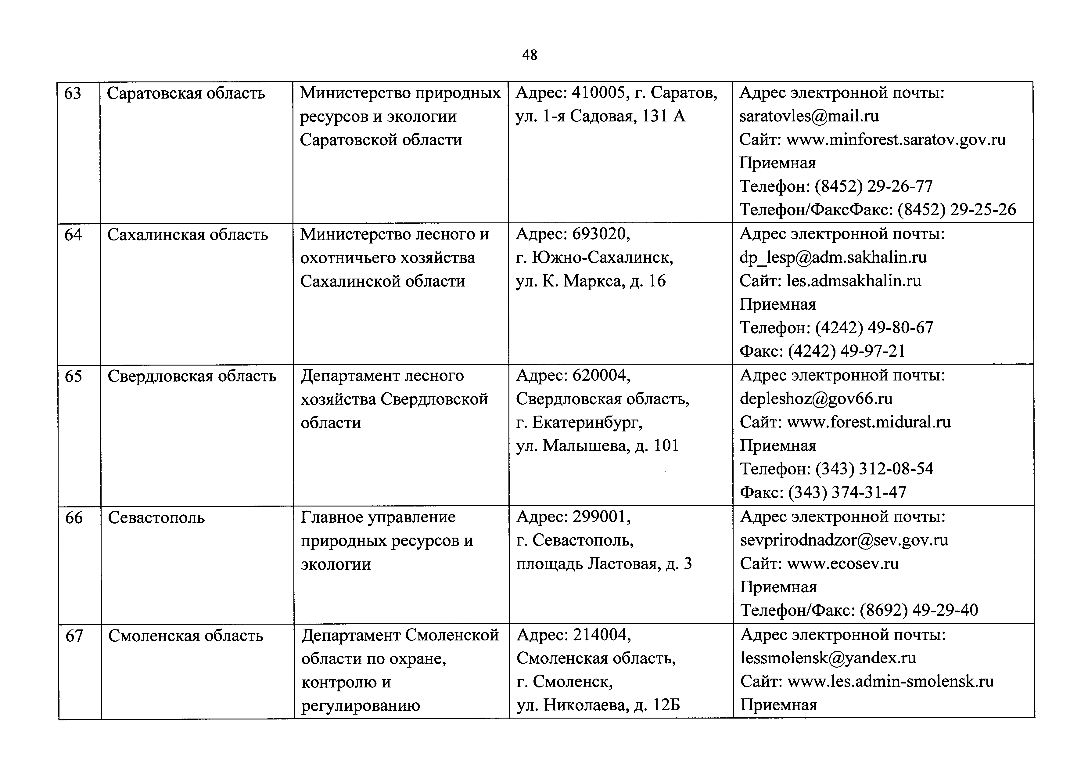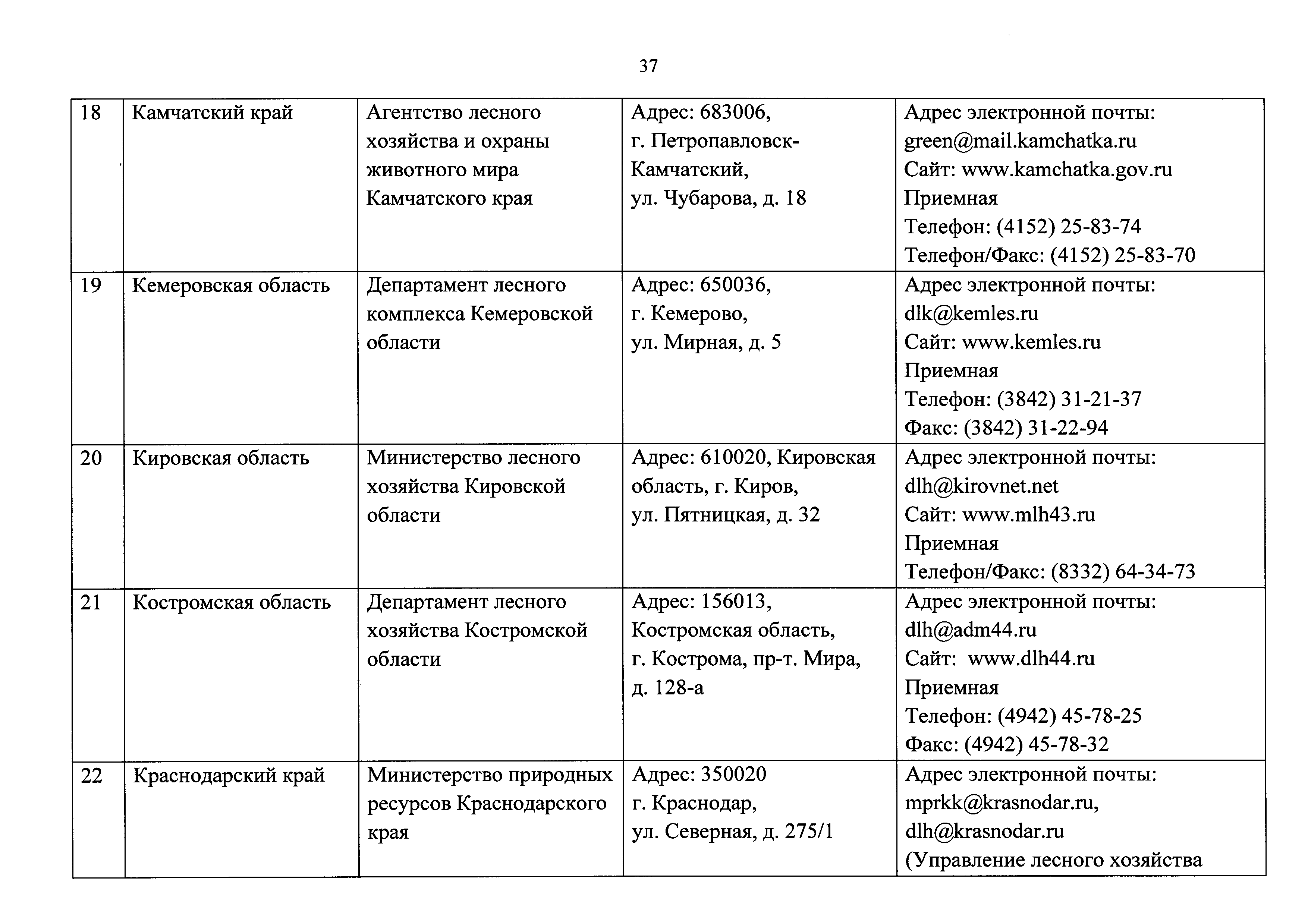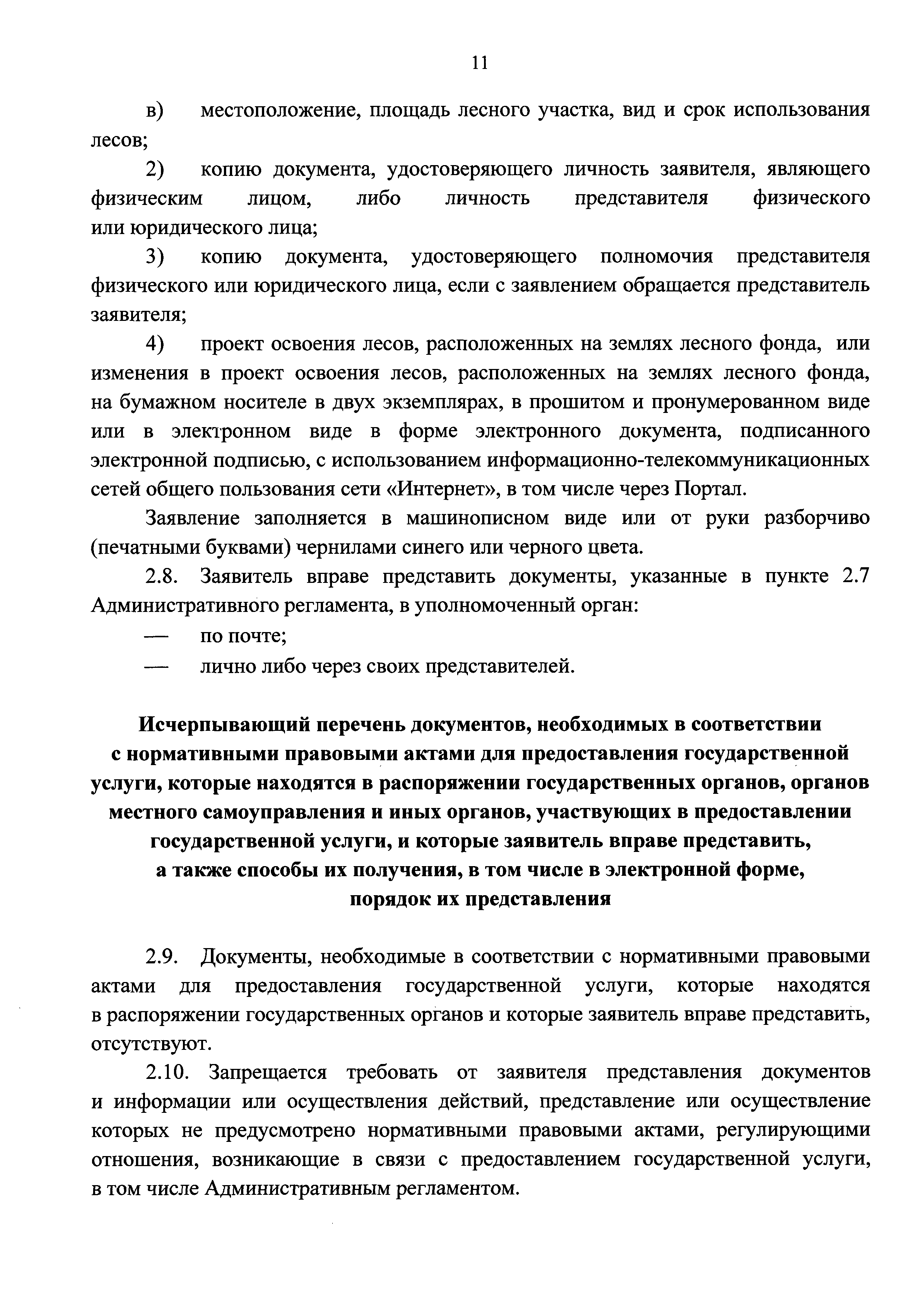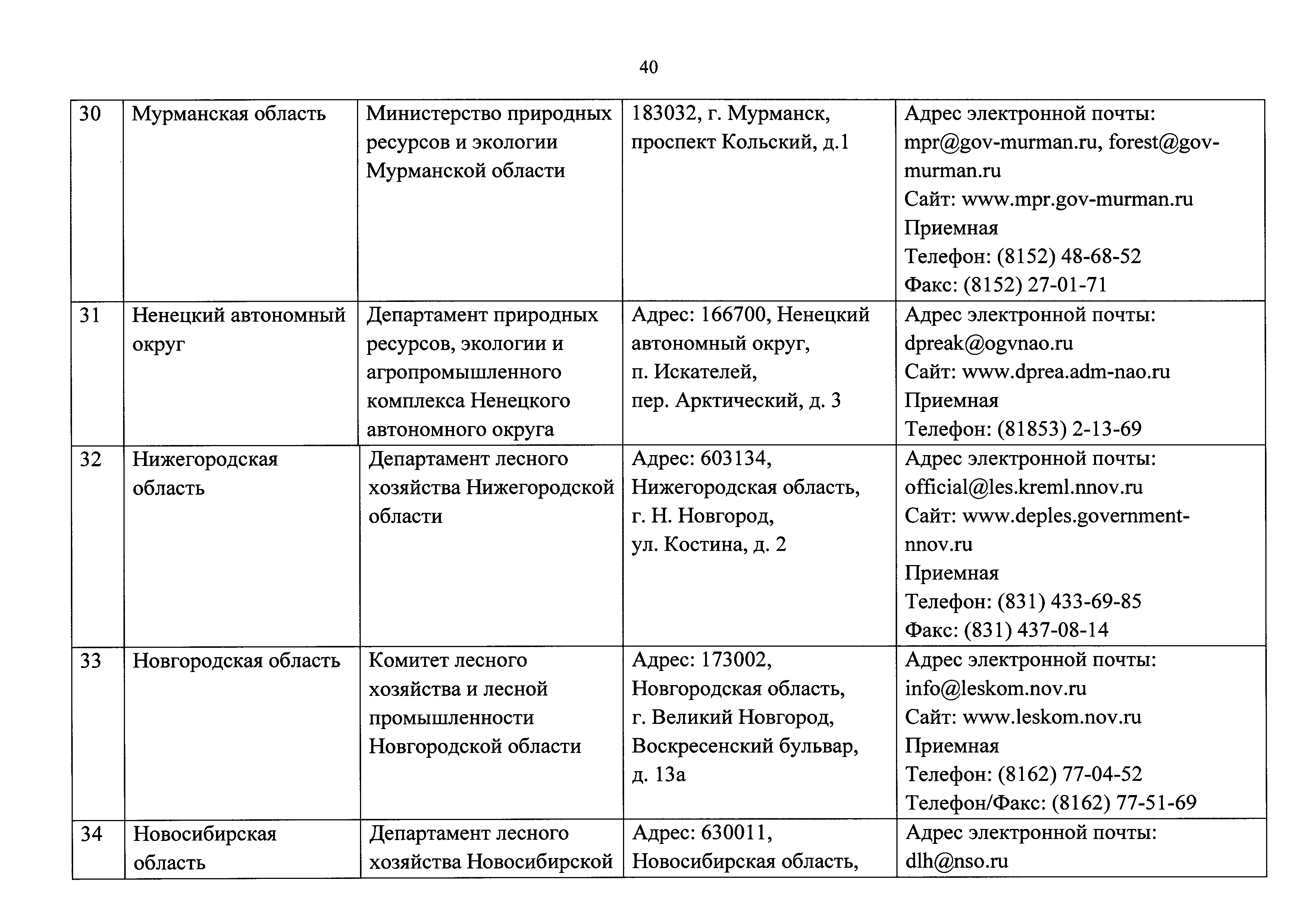 | Оглавление: | I. Общие положения II. Стандарт предоставления государственной услуги III. Состав, последовательность и сроки выполнения административных процедур (действий), требования к порядку их выполнения, в том числе особенности выполнения административных процедур (действий) в электронной форме IV. Формы контроля за предоставлением государственной услуги V. Досудебный (внесудебный) порядок обжалования решений и действий (бездействия) уполномоченного органа, предоставляющего государственную услугу, а также его должностных лиц Приложение 1. Информация о местах нахождения, справочных телефонах, адресах официальных сайтов в информационно-телекоммуникационной сети "Интернет", электронной почты органов государственной власти субъектов Российской Федерации в области лесных отношений Приложение 2. Блок-схема предоставления органом государственной власти субъекта Российской Федерации в области лесных отношений государственной услуги по проведению государственной экспертизы проектов освоения лесов, расположенных на землях лесного фонда Приложение 3. Заявление о проведении государственной экспертизы проекта освоения лесов, расположенных на землях лесного фонда |
