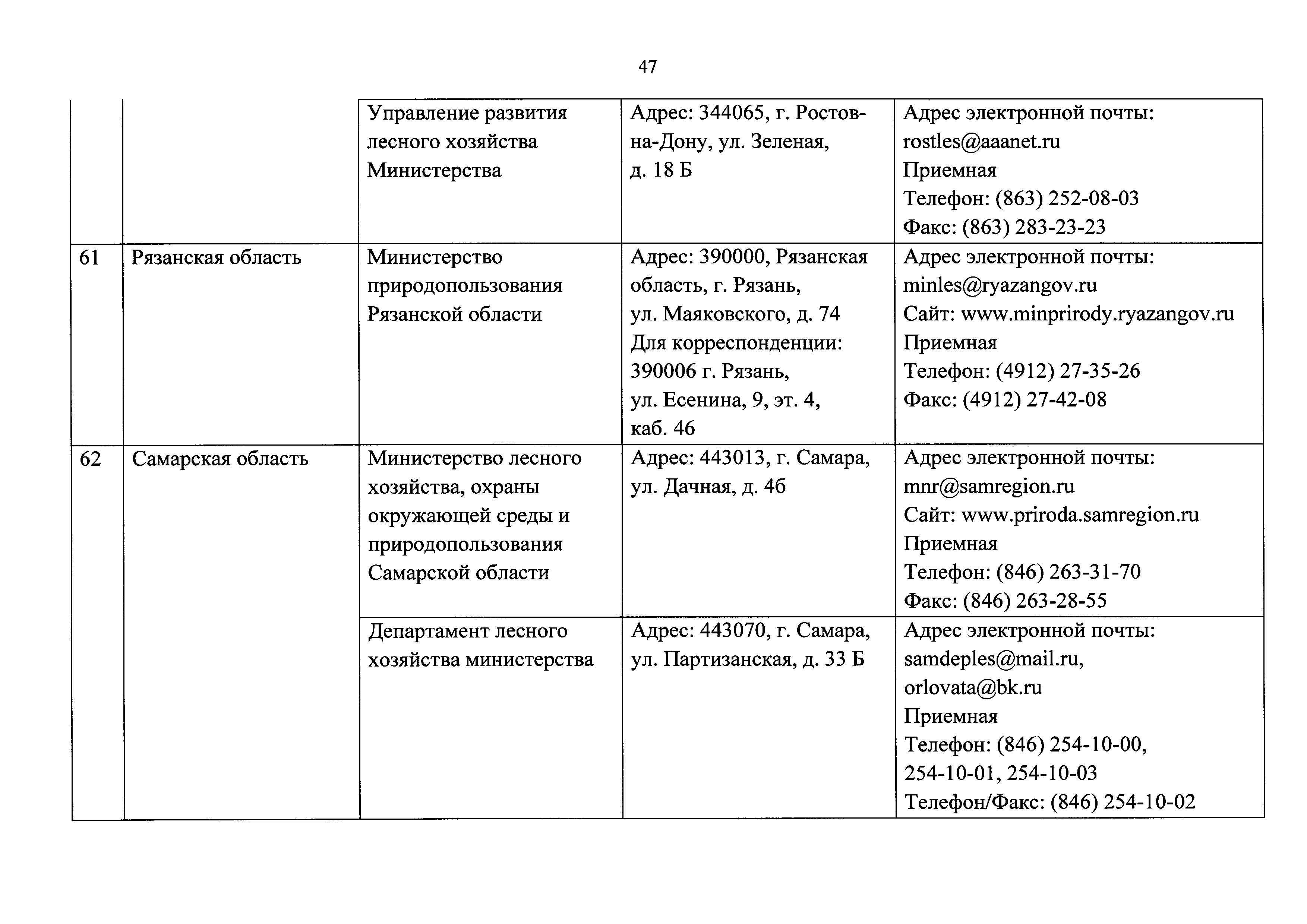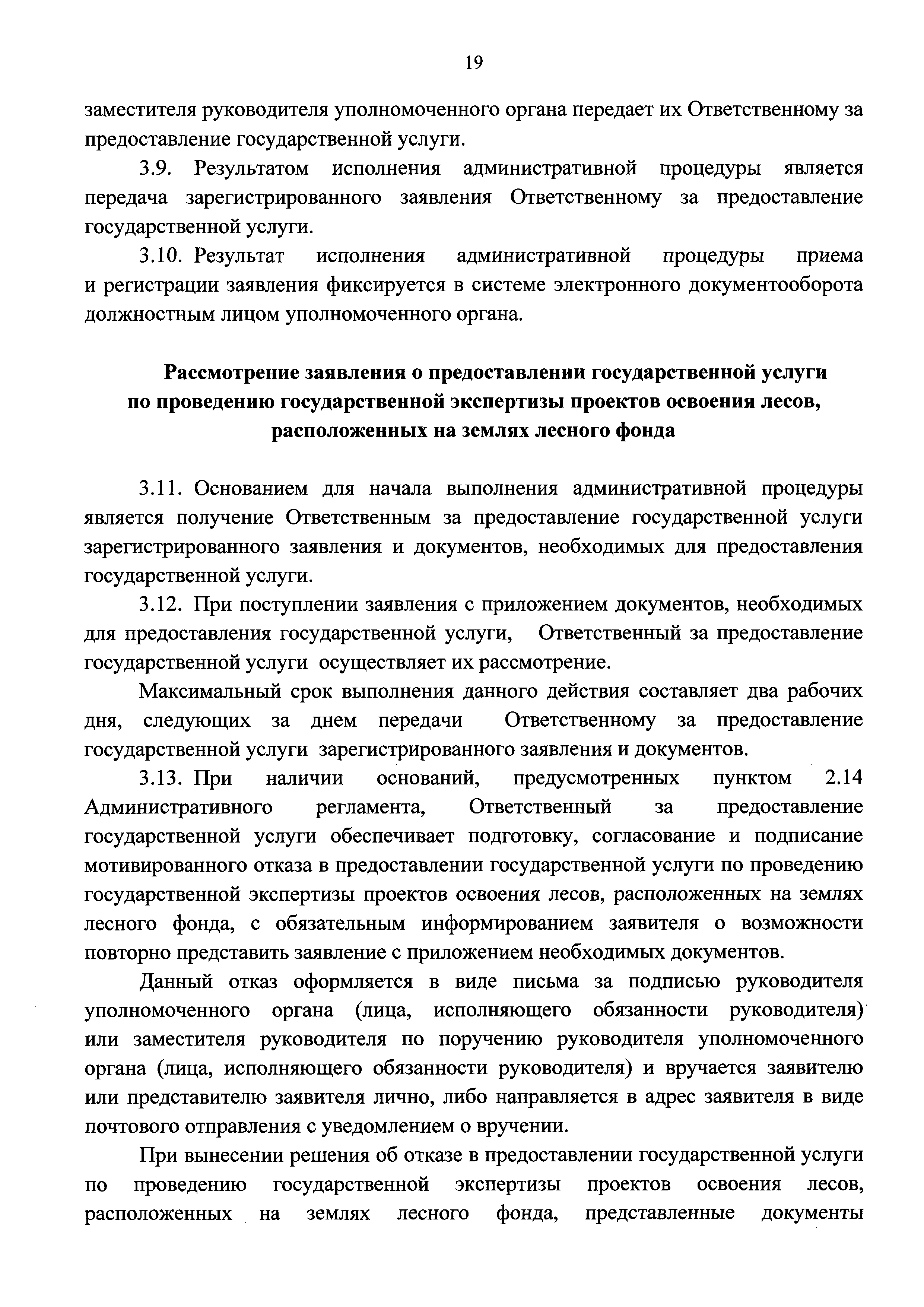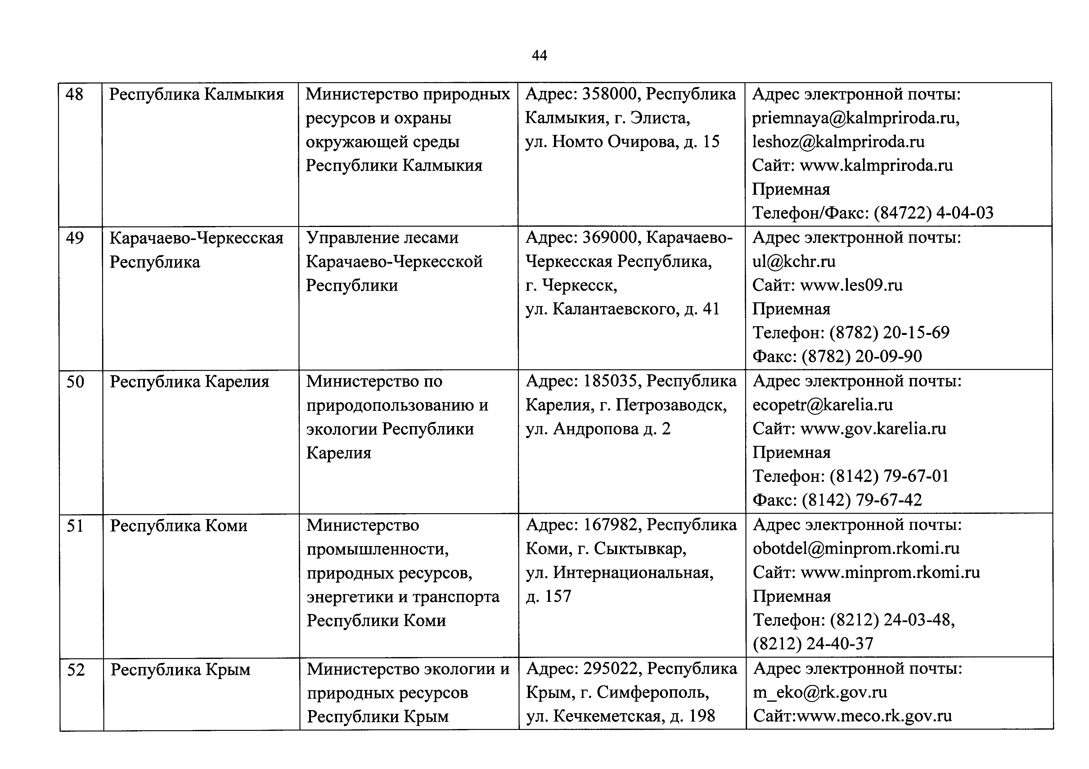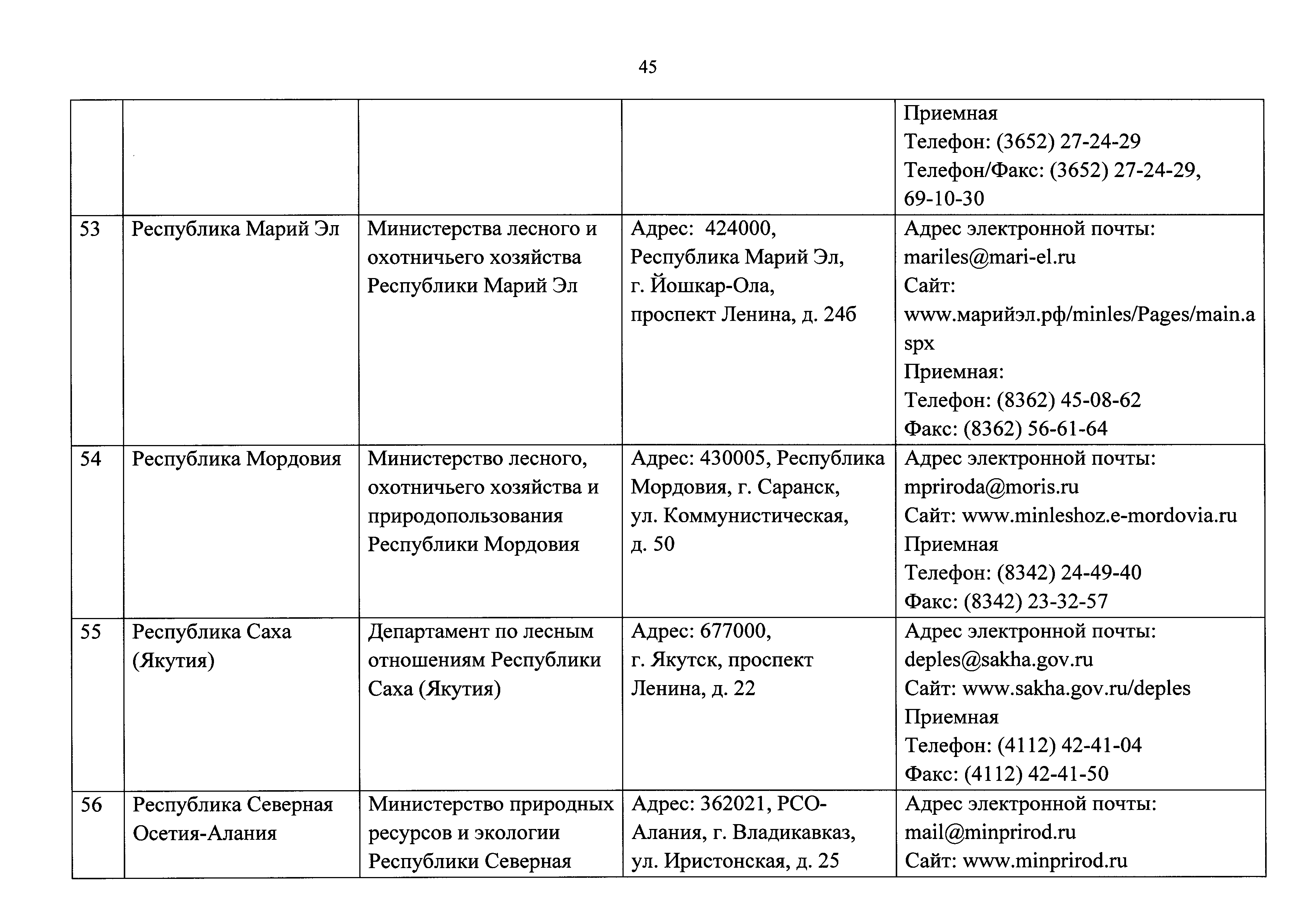 | Оглавление: | I. Общие положения II. Стандарт предоставления государственной услуги III. Состав, последовательность и сроки выполнения административных процедур (действий), требования к порядку их выполнения, в том числе особенности выполнения административных процедур (действий) в электронной форме IV. Формы контроля за предоставлением государственной услуги V. Досудебный (внесудебный) порядок обжалования решений и действий (бездействия) уполномоченного органа, предоставляющего государственную услугу, а также его должностных лиц Приложение 1. Информация о местах нахождения, справочных телефонах, адресах официальных сайтов в информационно-телекоммуникационной сети "Интернет", электронной почты органов государственной власти субъектов Российской Федерации в области лесных отношений Приложение 2. Блок-схема предоставления органом государственной власти субъекта Российской Федерации в области лесных отношений государственной услуги по проведению государственной экспертизы проектов освоения лесов, расположенных на землях лесного фонда Приложение 3. Заявление о проведении государственной экспертизы проекта освоения лесов, расположенных на землях лесного фонда |