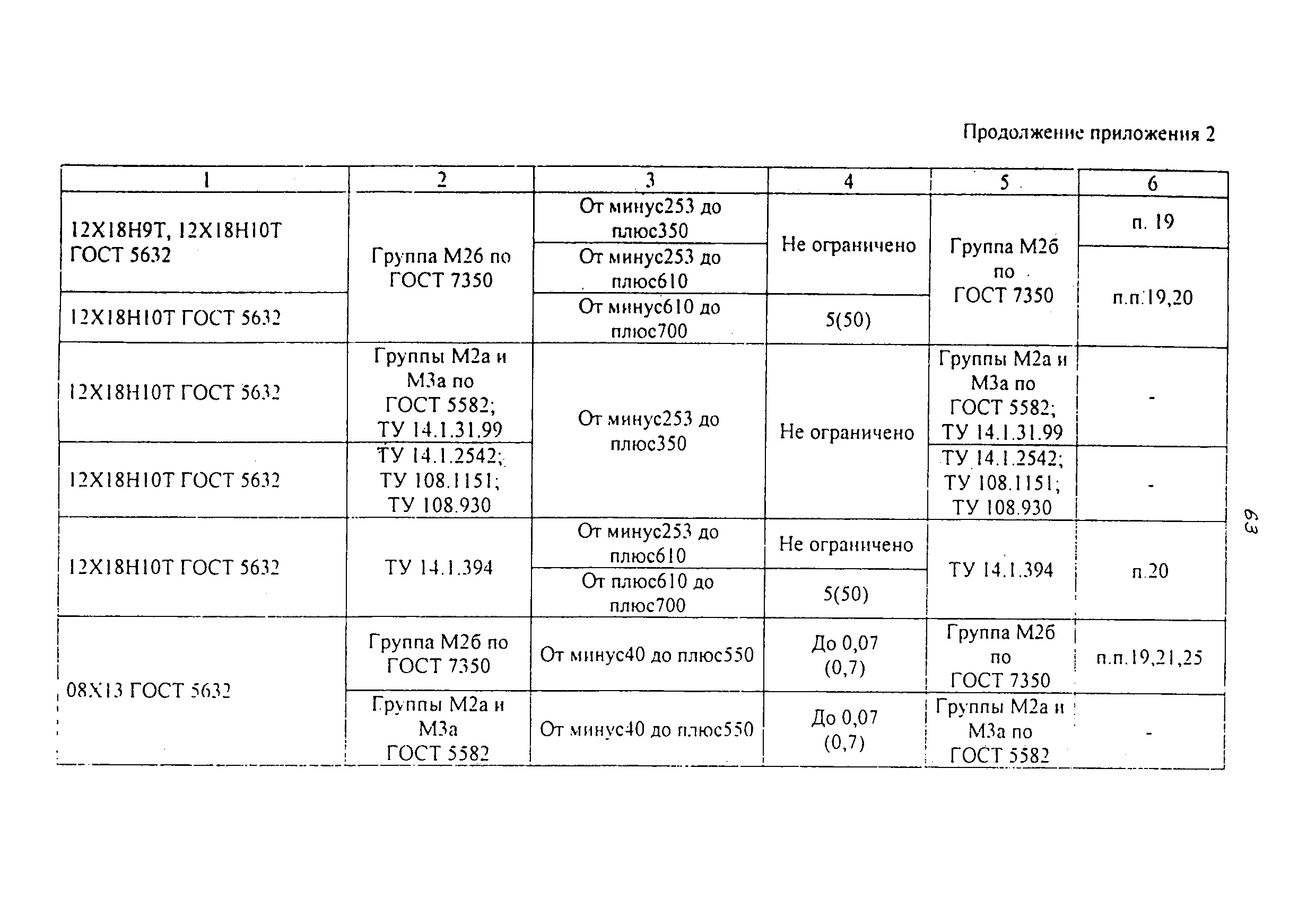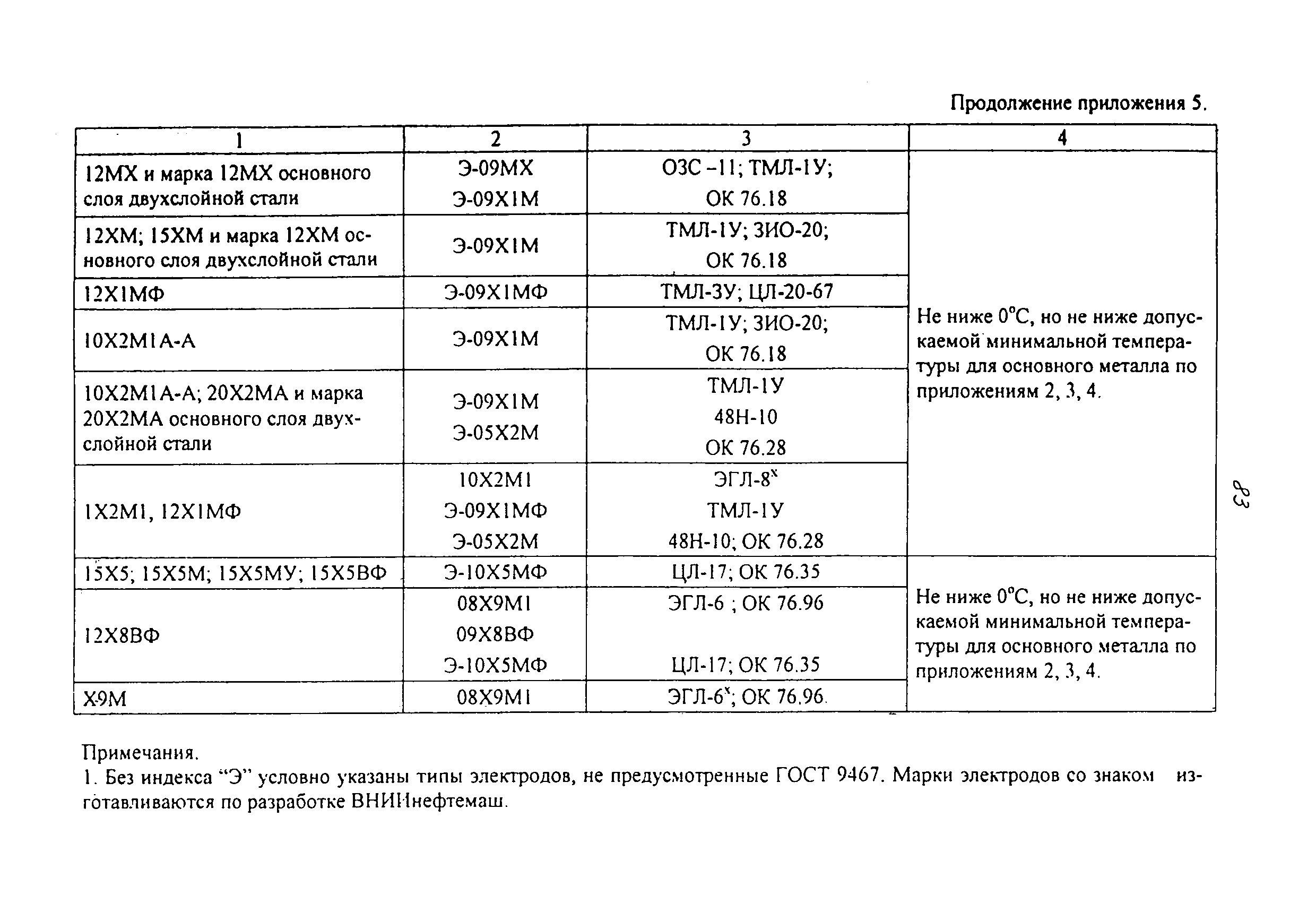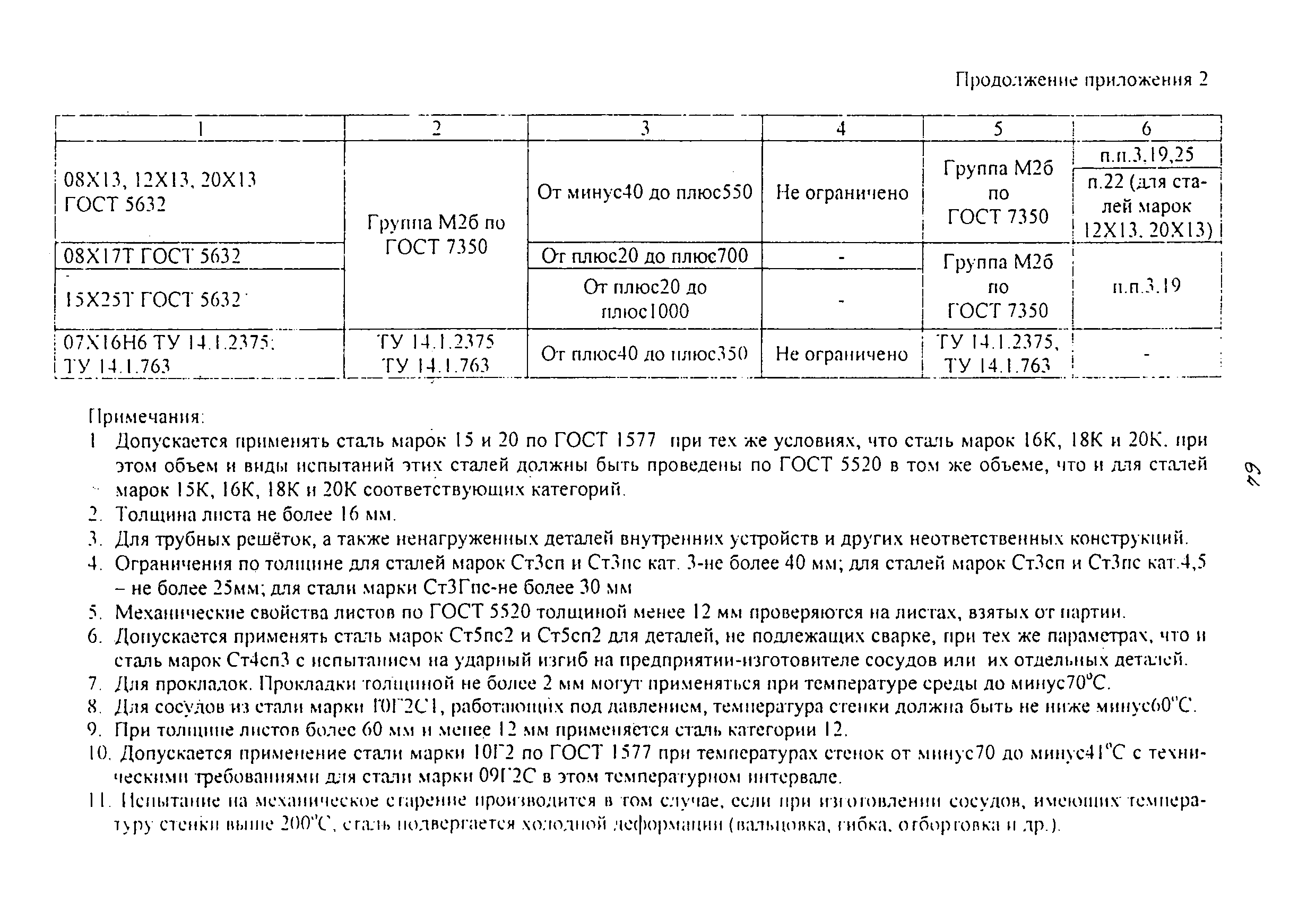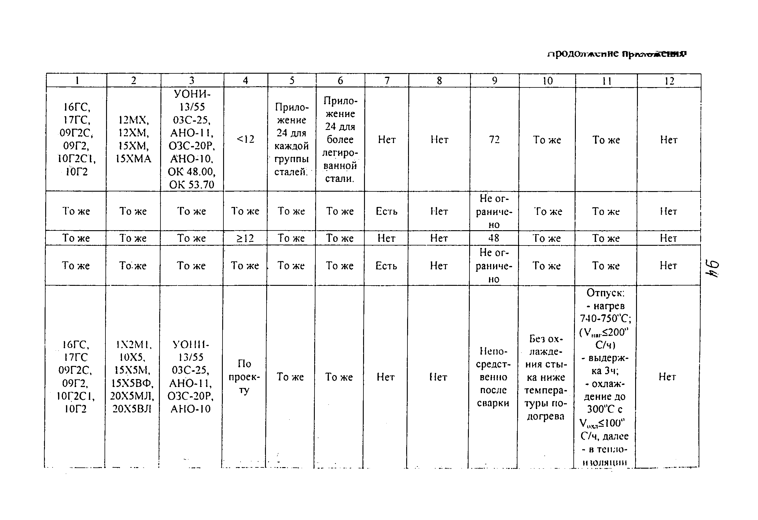 | | Нормативные ссылки: |   ПБ 10-115-96 «Правила устройства и безопасной эксплуатации сосудов, работающих под давлением»  ГОСТ 21.401-88 «Система проектной документации для строительства. Технология производства. Основные требования к рабочим чертежам»  ГОСТ 380-94 «Сталь углеродистая обыкновенного качества. Марки»  ГОСТ 535-88 «Прокат сортовой и фасонный из стали углеродистой обыкновенного качества. Общие технические условия»  ГОСТ 1050-88 «Прокат сортовой, калиброванный, со специальной отделкой поверхности из углеродистой качественной конструкционной стали. Общие технические условия»  ГОСТ 1577-93 «Прокат толстолистовой и широкополосный из конструкционной качественной стали. Технические условия»  ГОСТ 2246-70 «Проволока стальная сварочная. Технические условия»  ГОСТ 2601-84 «Сварка металлов. Термины и определения основных понятий»  ГОСТ 3242-79 «Соединения сварные. Методы контроля качества»  ГОСТ 5264-80 «Ручная дуговая сварка. Соединения сварные. Основные типы, конструктивные элементы и размеры»  ГОСТ 5520-79 «Прокат листовой из углеродистой, низколегированной и легированной стали для котлов и сосудов, работающих под давлением. Технические условия»  ГОСТ 5632-72 «Стали высоколегированные и сплавы коррозионно-стойкие, жаростойкие и жаропрочные. Марки»  ГОСТ 6996-66 «Сварные соединения. Методы определения механических свойств»  ГОСТ 7512-82 «Контроль неразрушающий. Соединения сварные. Радиографический метод»  ГОСТ 9466-75 «Электроды покрытые металлические для ручной дуговой сварки сталей и наплавки. Классификация и общие технические условия»  ГОСТ 9467-75 «Электроды покрытые металлические для ручной дуговой сварки конструкционных и теплоустойчивых сталей. Типы»  ГОСТ 10706-76 «Трубы стальные электросварные прямошовные. Технические требования»  ГОСТ 10707-80 «Трубы стальные электросварные холоднодеформированные. Технические условия»  ГОСТ 14637-89 «Прокат толстолистовой из углеродистой стали обыкновенного качества. Технические условия»  ГОСТ 14782-86 «Контроль неразрушающий. Соединения сварные. Методы ультразвуковые»  ГОСТ 16037-80 «Соединения сварные стальных трубопроводов. Основные типы, конструктивные элементы и размеры»  ГОСТ 16098-80 «Соединения сварные из двухслойной коррозионностойкой стали. Основные типы, конструктивные элементы и размеры»  ГОСТ 19281-89 «Прокат из стали повышенной прочности. Общие технические условия»  ГОСТ 19521-74 «Сварка металлов. Классификация»  ГОСТ 19903-74 «Прокат листовой горячекатаный. Сортамент»  ГОСТ 19904-90 «Прокат листовой холоднокатаный. Сортамент»  ГОСТ 20072-74 «Сталь теплоустойчивая. Технические условия»  ГОСТ 12.1.005-88 «Система стандартов безопасности труда. Общие санитарно-гигиенические требования к воздуху рабочей зоны»  ГОСТ 12.1.007-76 «Система стандартов безопасности труда. Вредные вещества. Классификация и общие требования безопасности»  ГОСТ 12.1.044-89 «Система стандартов безопасности труда. Пожаровзрывоопасность веществ и материалов. Номенклатура показателей и методы их определения»  ГОСТ 15467-79 «Управление качеством продукции. Основные понятия. Термины и определения»  ГОСТ 16504-81 «Система государственных испытаний продукции. Испытания и контроль качества продукции. Основные термины и определения»  ГОСТ 18442-80 «Контроль неразрушающий. Капиллярные методы. Общие требования»  ГОСТ 9941-81 «Трубы бесшовные холодно- и теплодеформированные из корр