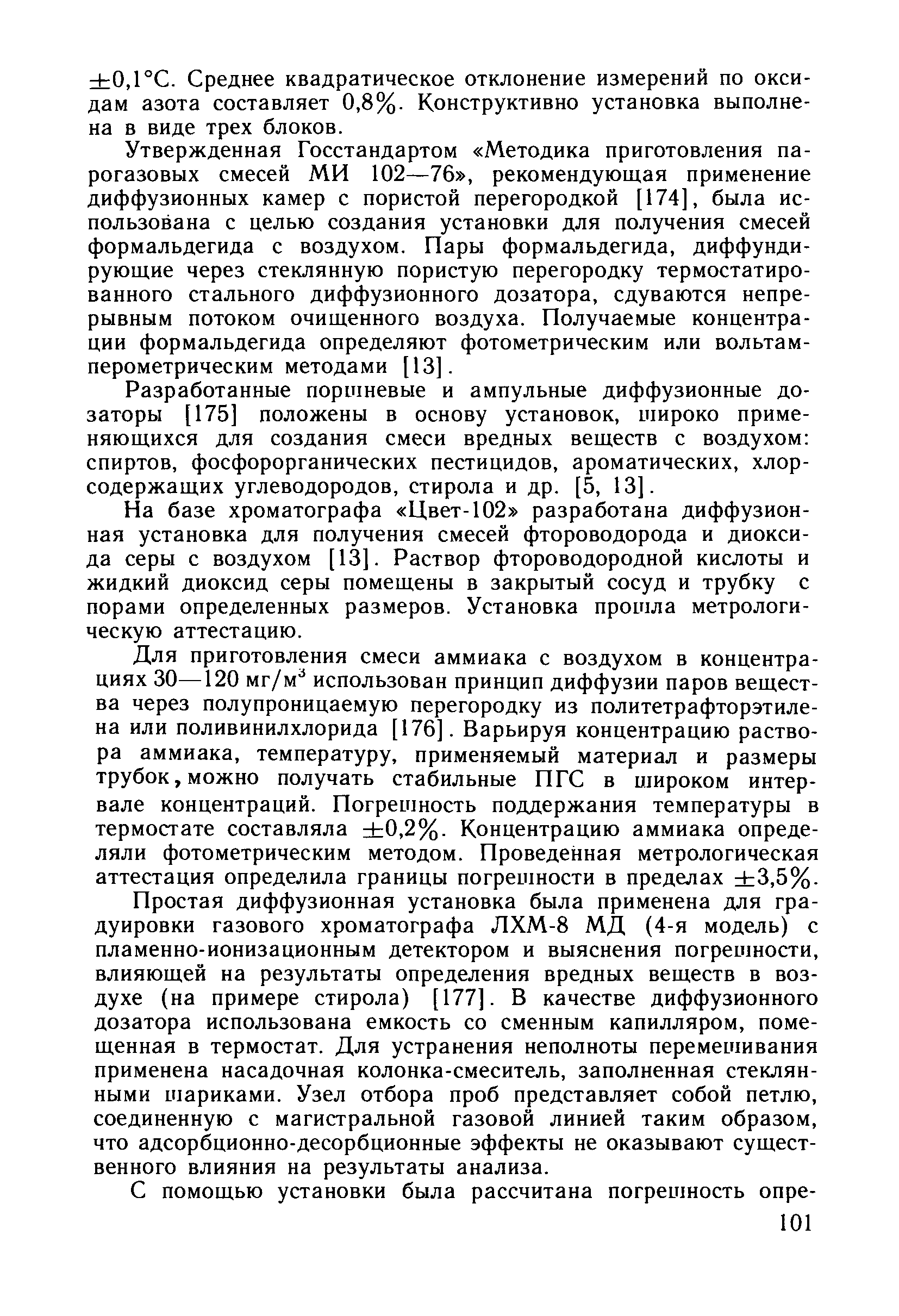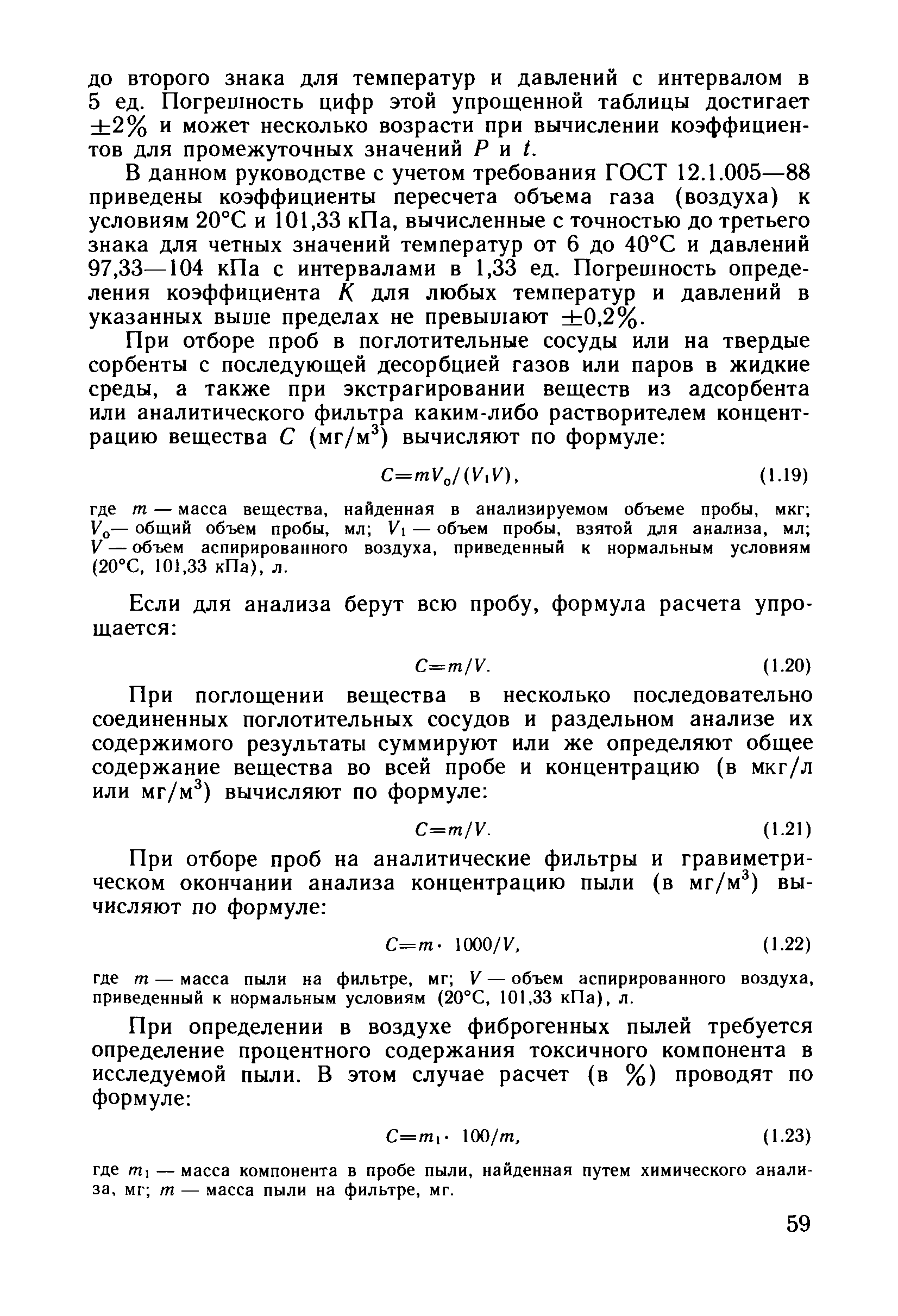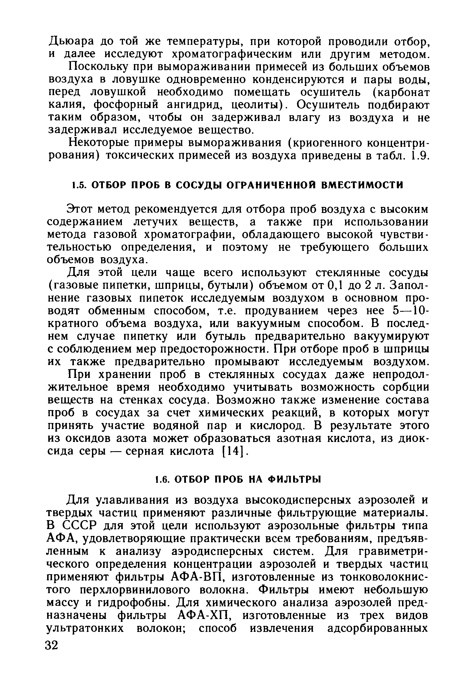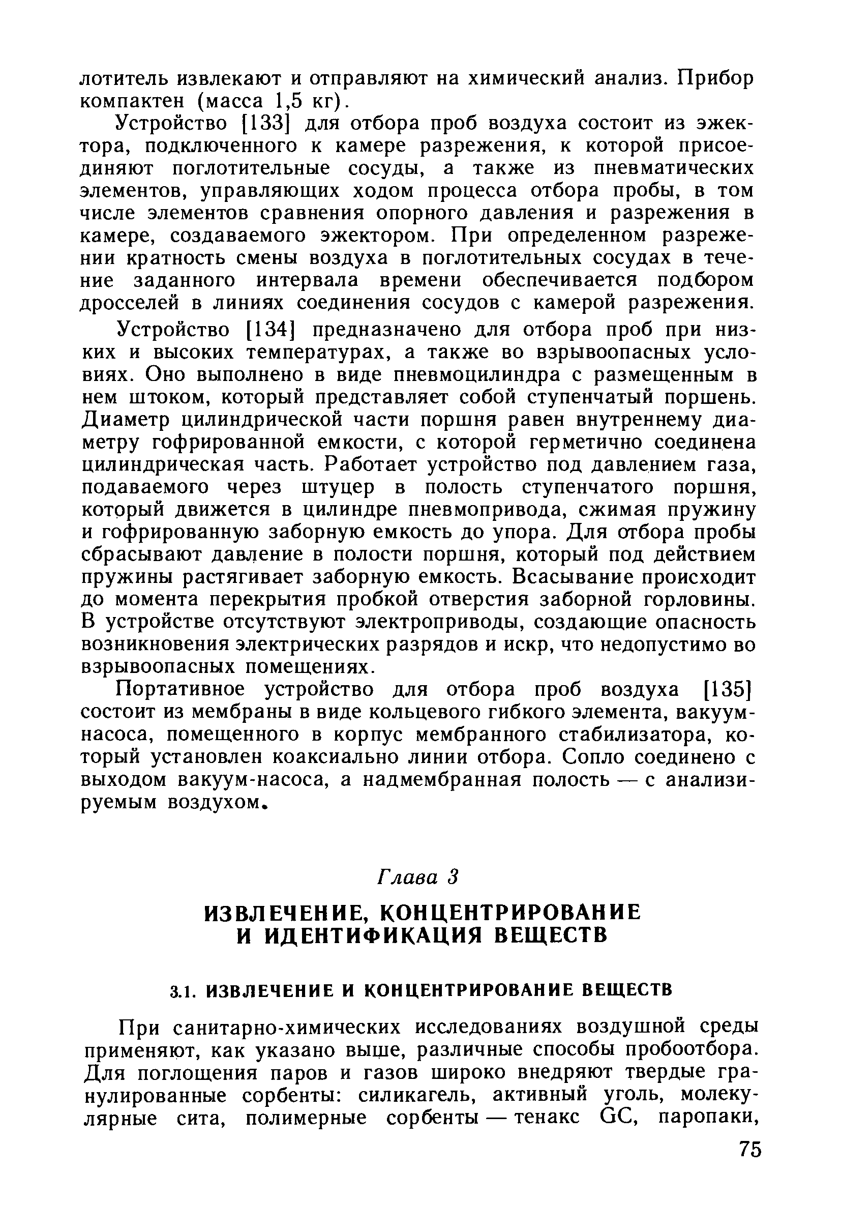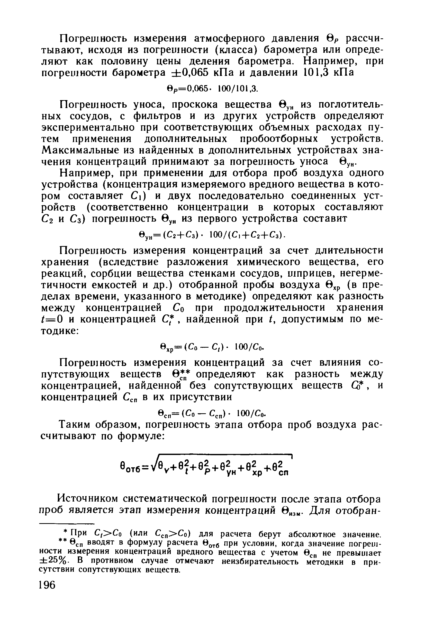 | Оглавление: | Введение Глава 1. Отбор проб воздуха 1.1. Отбор проб в жидкие среды 1.2. Отбор проб на твердые сорбенты 1.3. Хемосорбция 1.4. Отбор проб в охлаждаемые ловушки 1.5. Отбор проб в сосуды ограниченной вместимости 1.6. Отбор проб на фильтры 1.7. Индивидуальная активная дозиметрия 1.8. Индивидуальная пассивная дозиметрия 1.8.1. Аналитические методы контроля, применяемые при пассивном отборе проб воздуха 1.8.2. Влияние окружающей среды на адсорбцию веществ в пассивном дозиметре 1.8.3. Установление скорости поглощения вещества пассивными дозиметрами 1.9. Расчет концентрации веществ Глава 2. Аппаратура для отбора проб воздуха 2.1. Побудители расхода 2.2. Расходомеры 2.3. Аспирационные устройства Глава 3. Извлечение, концентрирование и идентификация веществ 3.1. Извлечение и концентрирование веществ 3.2. Идентификация веществ Глава 4. Методы приготовления смесей вредных веществ с воздухом 4.1. Статические методы 4.2. Динамические методы 4.3. Установки, используемые в практике контроля воздуха 4.4. Приготовление смесей аэрозолей с воздухом Глава 5. Физико-химические методы анализа 5.1. Газовая хроматография 5.1.1. Хроматограмма и ее параметры 5.1.2. Хроматографические колонки и коэффициент разделения 5.1.3. Выбор неподвижной фазы и условий разделения 5.1.4. Твердые носители для газожидкостной хроматографии и адсорбенты для газоадсорбционной хроматографии 5.1.5. Детекторы 5.1.6. Качественный анализ 5.1.7. Количественный анализ 5.1.8. Хроматографы 5.1.9. Дозаторы для ввода проб в хроматограф 5.1.10. Приготовление сорбентов 5.2. Тонкослойная хроматография 5.2.1. Адсорбционная хроматография 5.2.2. Распределительная хроматография 5.2.3. Сорбенты для ТСХ 5.2.4. Пластинки для ТСХ 5.2.5. Процесс разделения веществ на пластинке 5.2.6. Обнаружение веществ на хроматограмме 5.2.7. Количественный анализ 5.2.8. Оборудование для ТСХ 5.3. Жидкостная хроматография 5.4. Ионная хроматография 5.5. Масс-спектрометрия и хромато-масс-спектрометрия 5.6. Фотометрия 5.7. Спектроскопические методы 5.7.1. Атомно-эмиссионная спектрометрия 5.7.2. Атомно-абсорбционная спектрометрия 5.7.3. Атомно-флуоресцентная спектрометрия 5.7.4. Оптико-акустическая спектрометрия 5.8. Вольтамперометрия 5.9. Ионометрия Глава б. Метрологическое обеспечение контроля воздуха Глава 7. Измерение концентрации вредных веществ индикаторными трубками 7.1. Основные принципы работы индикаторных трубок 7.2. Подготовка и проведение измерений индикаторными трубками 7.3. Воздухозаборные устройства для индикаторных трубок 7.3.1. Аспиратор сильфонный АМ-5 7.3.2. Воздухозаборное устройство газоанализатора УГ-2 7.3.3. Ручной поршневой насос Китагавы 7.4. Газоопределители химические ГХ-М 7.5. Газоанализатор универсальный переносной УГ-2 7.5.1. Комплекты индикаторных средств 7.5.2. Подготовка и проведение анализа воздушной среды газоанализатором УГ-2 7.6. Зарубежные средства индикации 7.7. Индикаторные трубки длительного действия для определения среднесменных концентраций вредных веществ в воздухе Глава 8. Автоматический анализ воздушной среды производственных помещений 8.1. Общие сведения 8.2. Автоматические сигнализаторы довзрывоопасных концентраций 8.3. Газоанализаторы вредных веществ в воздухе 8.4. Магнитные и термомагнитные газоанализаторы кислорода 8.5. Общие требования к выбору мест отбора проб воздуха и к установке датчиков автоматических анализаторов контроля воздушной среды 8.