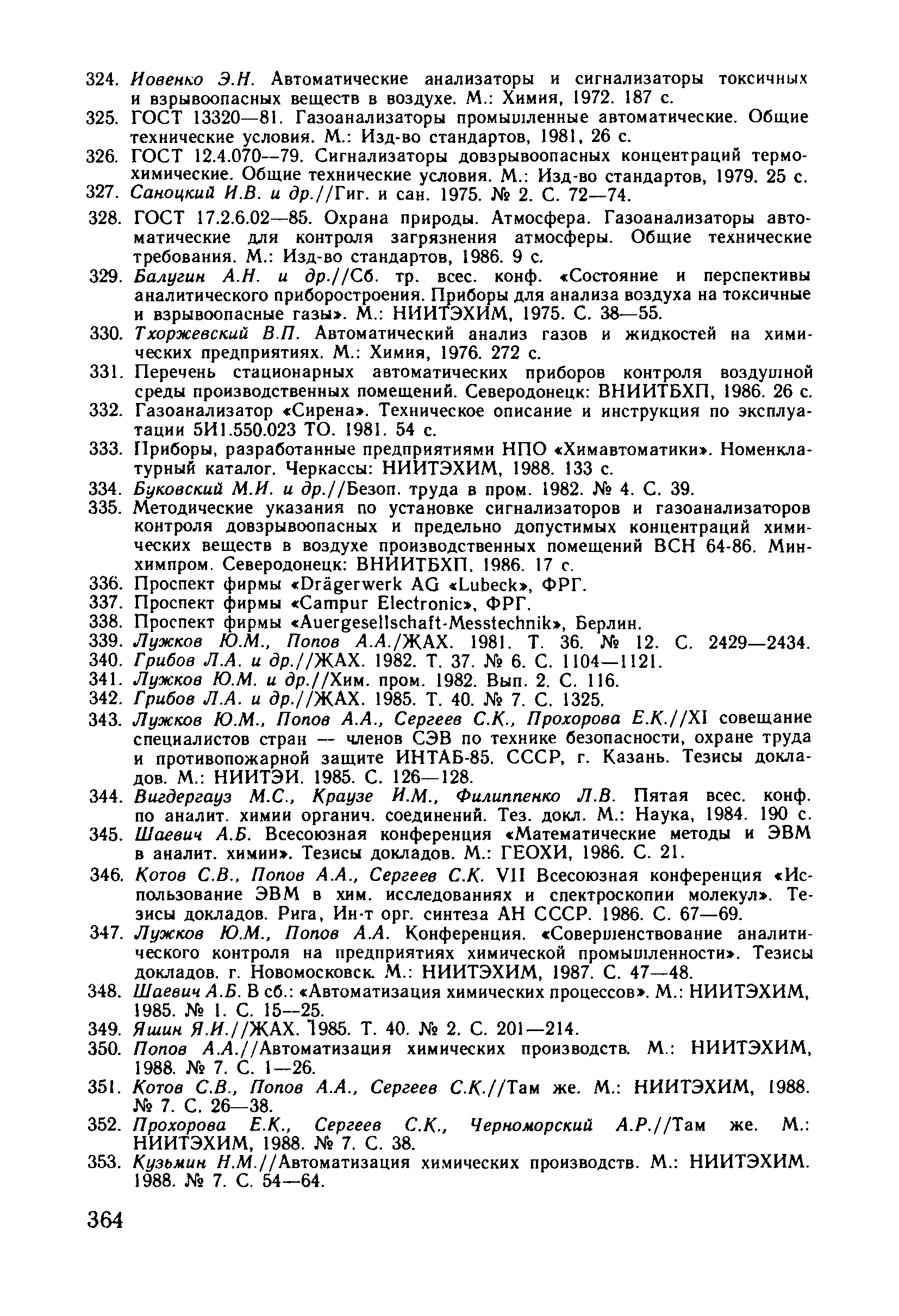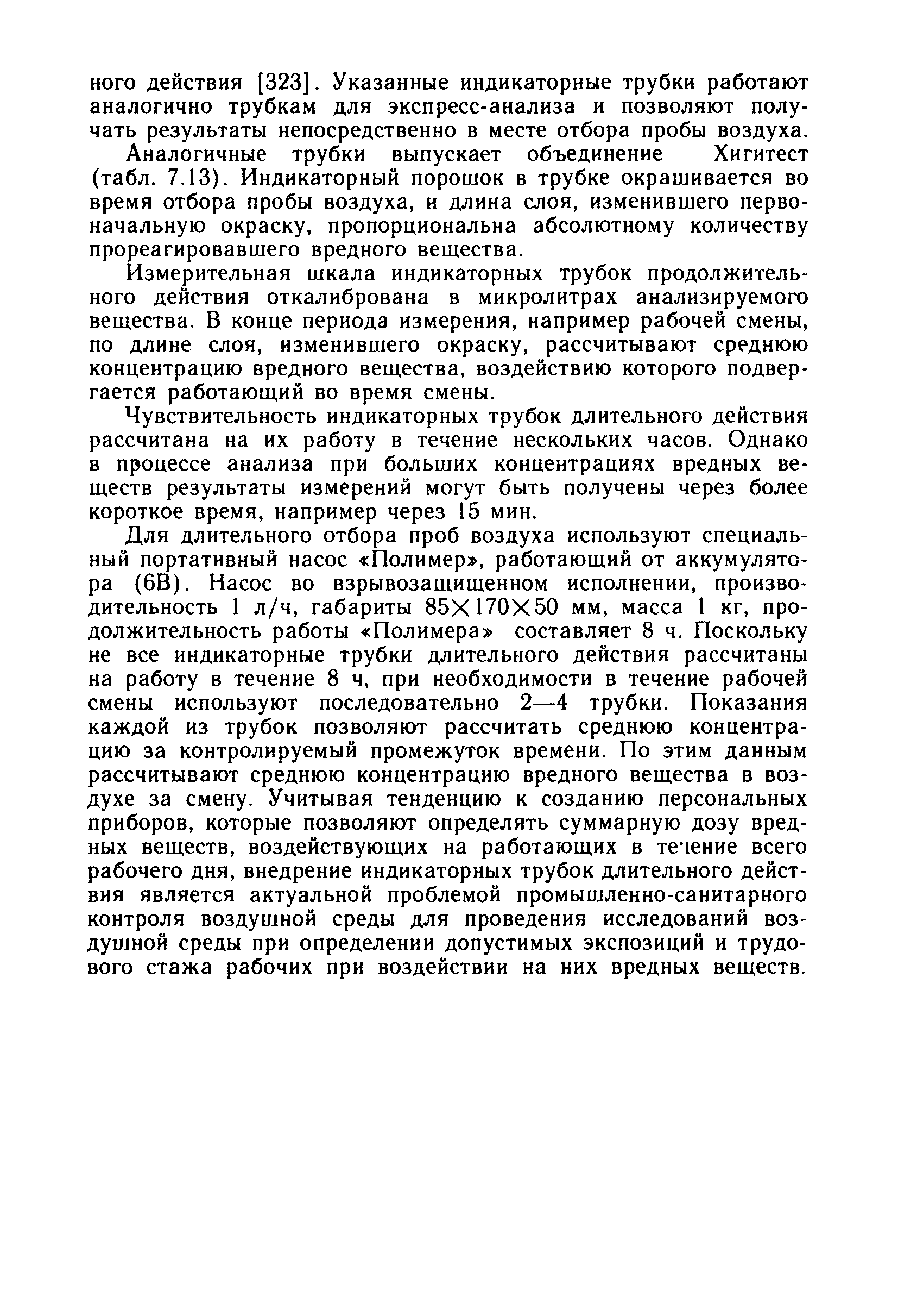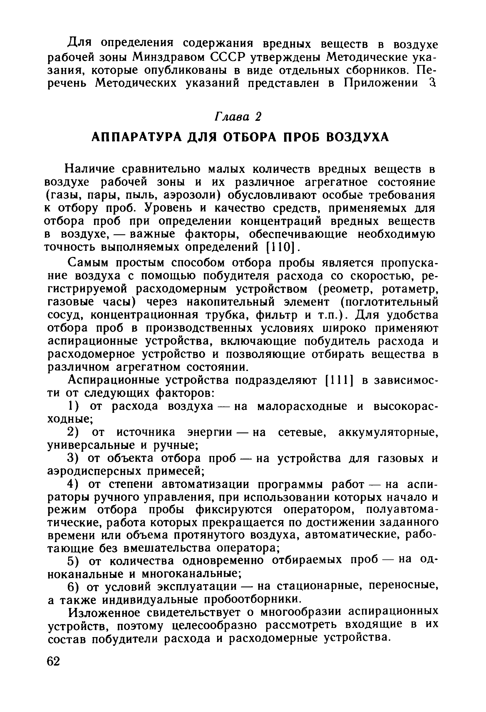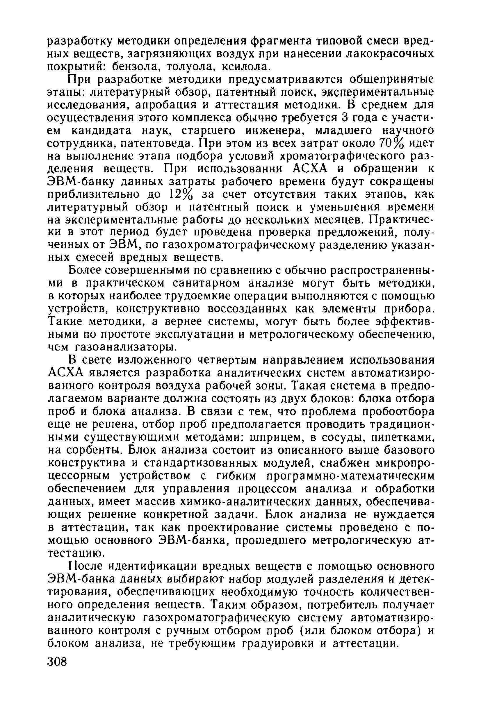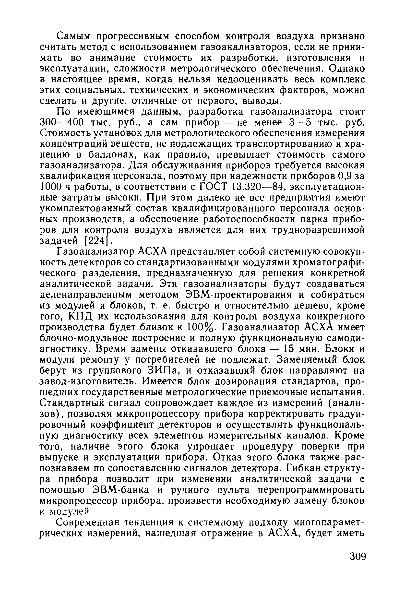 | Оглавление: | Введение Глава 1. Отбор проб воздуха 1.1. Отбор проб в жидкие среды 1.2. Отбор проб на твердые сорбенты 1.3. Хемосорбция 1.4. Отбор проб в охлаждаемые ловушки 1.5. Отбор проб в сосуды ограниченной вместимости 1.6. Отбор проб на фильтры 1.7. Индивидуальная активная дозиметрия 1.8. Индивидуальная пассивная дозиметрия 1.8.1. Аналитические методы контроля, применяемые при пассивном отборе проб воздуха 1.8.2. Влияние окружающей среды на адсорбцию веществ в пассивном дозиметре 1.8.3. Установление скорости поглощения вещества пассивными дозиметрами 1.9. Расчет концентрации веществ Глава 2. Аппаратура для отбора проб воздуха 2.1. Побудители расхода 2.2. Расходомеры 2.3. Аспирационные устройства Глава 3. Извлечение, концентрирование и идентификация веществ 3.1. Извлечение и концентрирование веществ 3.2. Идентификация веществ Глава 4. Методы приготовления смесей вредных веществ с воздухом 4.1. Статические методы 4.2. Динамические методы 4.3. Установки, используемые в практике контроля воздуха 4.4. Приготовление смесей аэрозолей с воздухом Глава 5. Физико-химические методы анализа 5.1. Газовая хроматография 5.1.1. Хроматограмма и ее параметры 5.1.2. Хроматографические колонки и коэффициент разделения 5.1.3. Выбор неподвижной фазы и условий разделения 5.1.4. Твердые носители для газожидкостной хроматографии и адсорбенты для газоадсорбционной хроматографии 5.1.5. Детекторы 5.1.6. Качественный анализ 5.1.7. Количественный анализ 5.1.8. Хроматографы 5.1.9. Дозаторы для ввода проб в хроматограф 5.1.10. Приготовление сорбентов 5.2. Тонкослойная хроматография 5.2.1. Адсорбционная хроматография 5.2.2. Распределительная хроматография 5.2.3. Сорбенты для ТСХ 5.2.4. Пластинки для ТСХ 5.2.5. Процесс разделения веществ на пластинке 5.2.6. Обнаружение веществ на хроматограмме 5.2.7. Количественный анализ 5.2.8. Оборудование для ТСХ 5.3. Жидкостная хроматография 5.4. Ионная хроматография 5.5. Масс-спектрометрия и хромато-масс-спектрометрия 5.6. Фотометрия 5.7. Спектроскопические методы 5.7.1. Атомно-эмиссионная спектрометрия 5.7.2. Атомно-абсорбционная спектрометрия 5.7.3. Атомно-флуоресцентная спектрометрия 5.7.4. Оптико-акустическая спектрометрия 5.8. Вольтамперометрия 5.9. Ионометрия Глава б. Метрологическое обеспечение контроля воздуха Глава 7. Измерение концентрации вредных веществ индикаторными трубками 7.1. Основные принципы работы индикаторных трубок 7.2. Подготовка и проведение измерений индикаторными трубками 7.3. Воздухозаборные устройства для индикаторных трубок 7.3.1. Аспиратор сильфонный АМ-5 7.3.2. Воздухозаборное устройство газоанализатора УГ-2 7.3.3. Ручной поршневой насос Китагавы 7.4. Газоопределители химические ГХ-М 7.5. Газоанализатор универсальный переносной УГ-2 7.5.1. Комплекты индикаторных средств 7.5.2. Подготовка и проведение анализа воздушной среды газоанализатором УГ-2 7.6. Зарубежные средства индикации 7.7. Индикаторные трубки длительного действия для определения среднесменных концентраций вредных веществ в воздухе Глава 8. Автоматический анализ воздушной среды производственных помещений 8.1. Общие сведения 8.2. Автоматические сигнализаторы довзрывоопасных концентраций 8.3. Газоанализаторы вредных веществ в воздухе 8.4. Магнитные и термомагнитные газоанализаторы кислорода 8.5. Общие требования к выбору мест отбора проб воздуха и к установке датчиков автоматических анализаторов контроля воздушной среды 8.