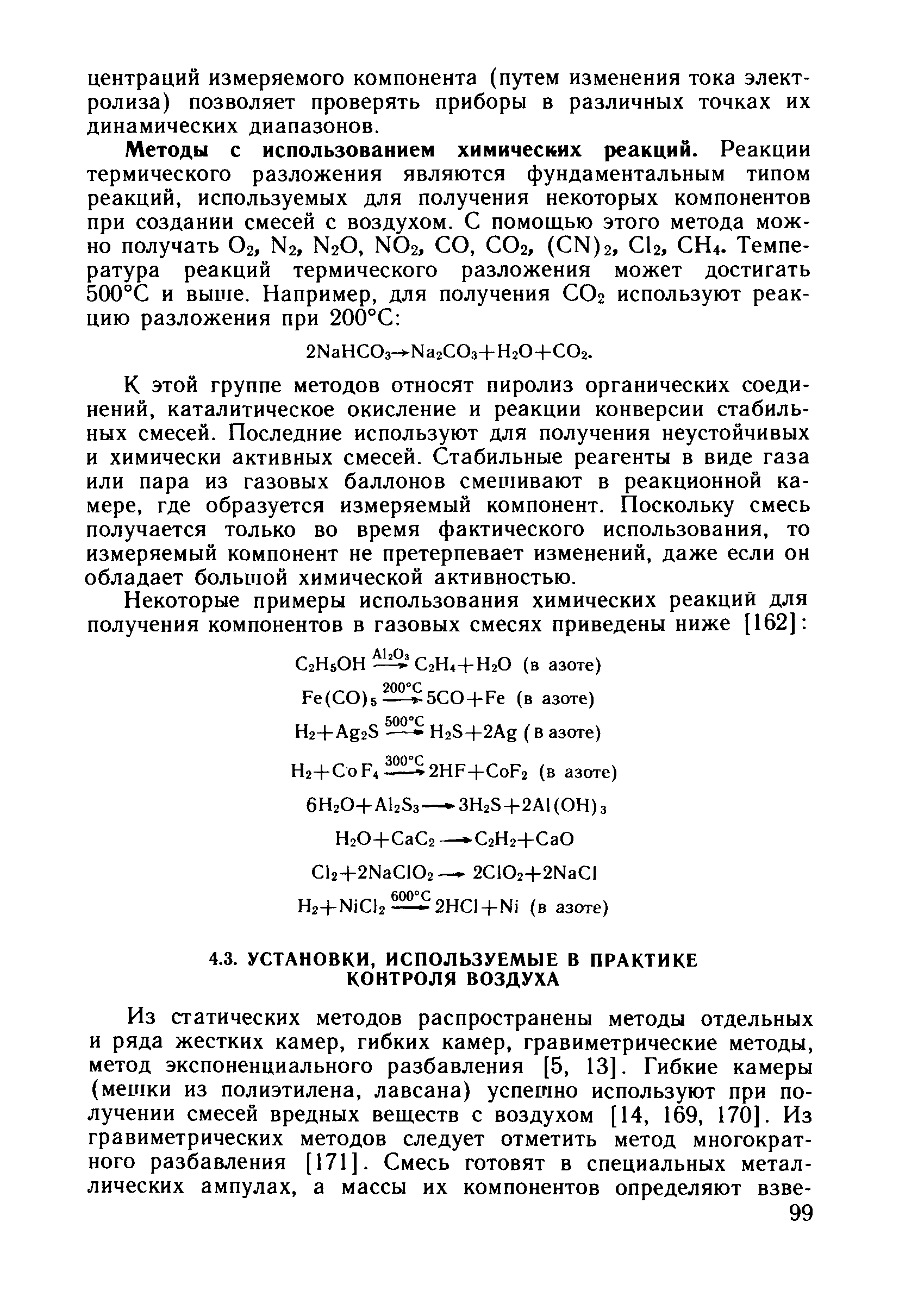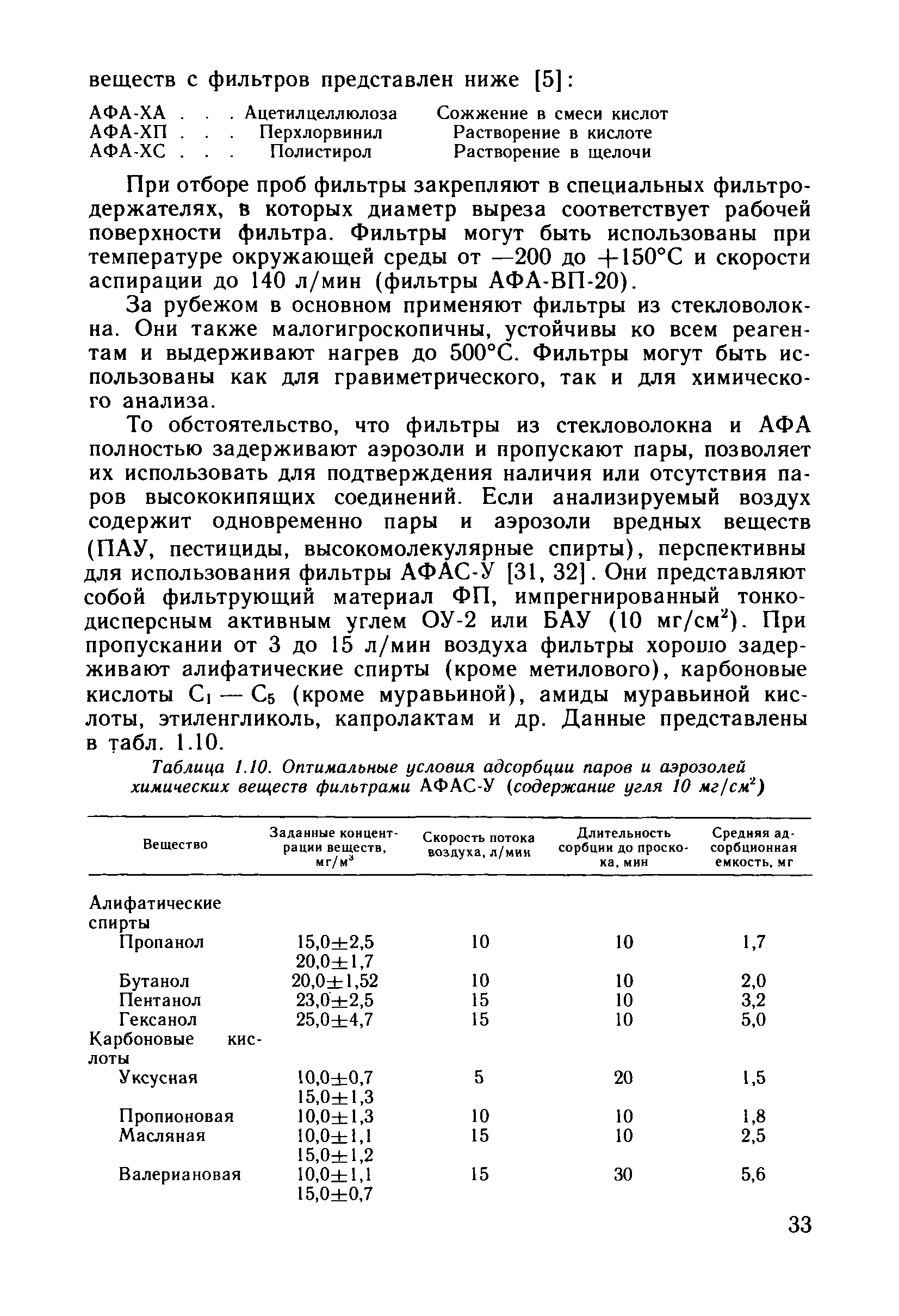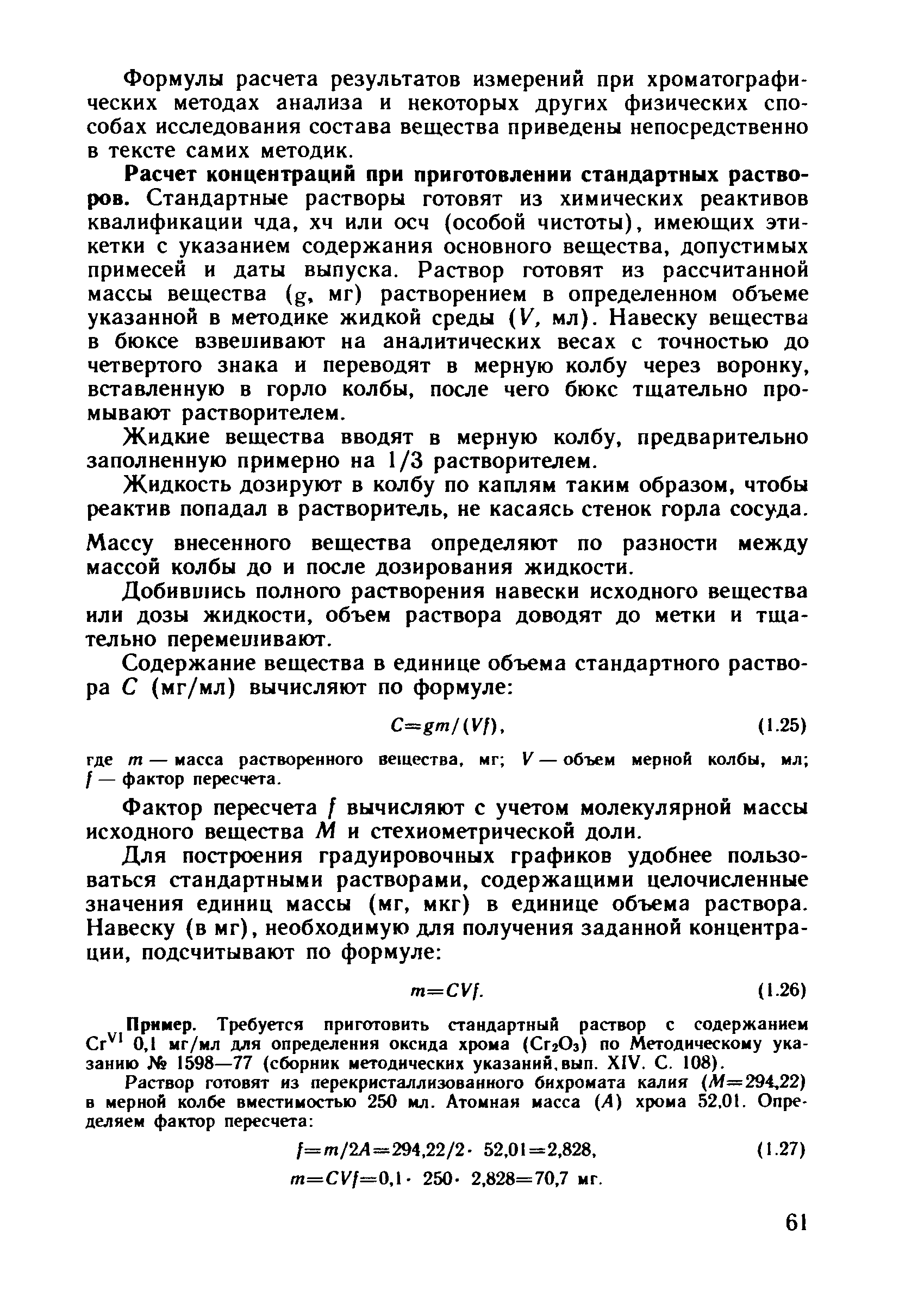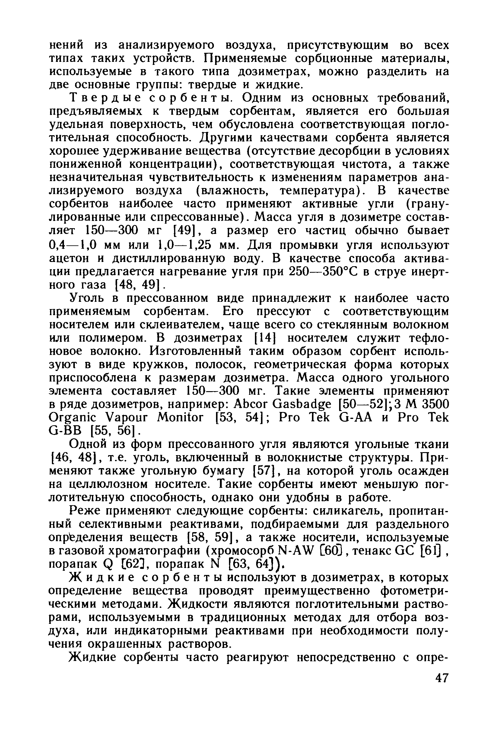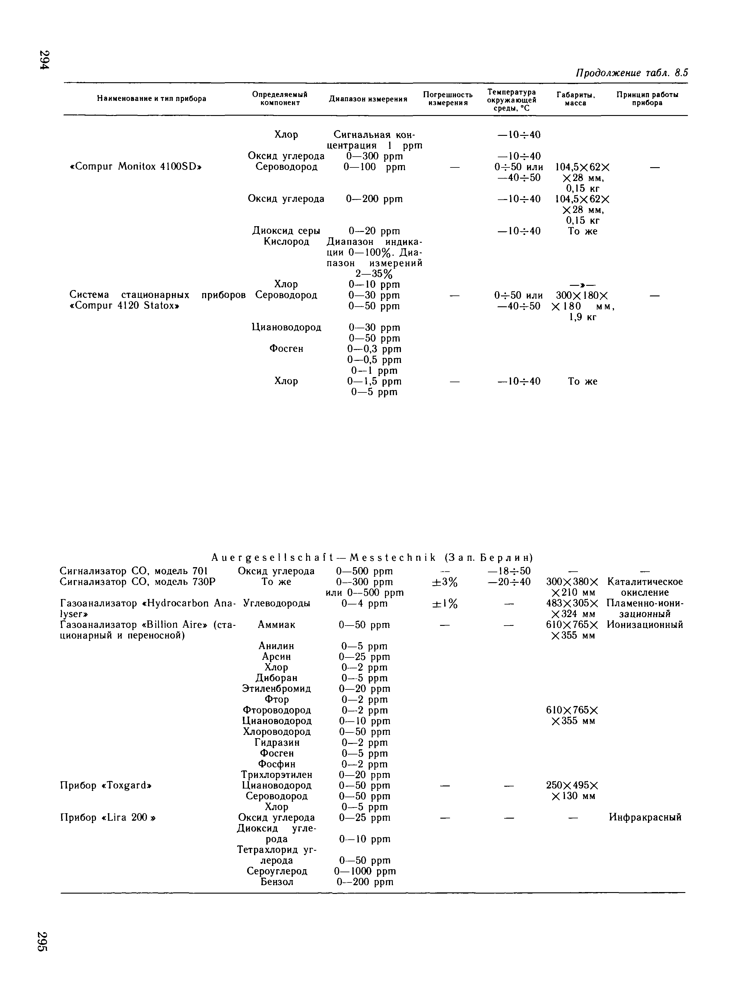 | Оглавление: | Введение Глава 1. Отбор проб воздуха 1.1. Отбор проб в жидкие среды 1.2. Отбор проб на твердые сорбенты 1.3. Хемосорбция 1.4. Отбор проб в охлаждаемые ловушки 1.5. Отбор проб в сосуды ограниченной вместимости 1.6. Отбор проб на фильтры 1.7. Индивидуальная активная дозиметрия 1.8. Индивидуальная пассивная дозиметрия 1.8.1. Аналитические методы контроля, применяемые при пассивном отборе проб воздуха 1.8.2. Влияние окружающей среды на адсорбцию веществ в пассивном дозиметре 1.8.3. Установление скорости поглощения вещества пассивными дозиметрами 1.9. Расчет концентрации веществ Глава 2. Аппаратура для отбора проб воздуха 2.1. Побудители расхода 2.2. Расходомеры 2.3. Аспирационные устройства Глава 3. Извлечение, концентрирование и идентификация веществ 3.1. Извлечение и концентрирование веществ 3.2. Идентификация веществ Глава 4. Методы приготовления смесей вредных веществ с воздухом 4.1. Статические методы 4.2. Динамические методы 4.3. Установки, используемые в практике контроля воздуха 4.4. Приготовление смесей аэрозолей с воздухом Глава 5. Физико-химические методы анализа 5.1. Газовая хроматография 5.1.1. Хроматограмма и ее параметры 5.1.2. Хроматографические колонки и коэффициент разделения 5.1.3. Выбор неподвижной фазы и условий разделения 5.1.4. Твердые носители для газожидкостной хроматографии и адсорбенты для газоадсорбционной хроматографии 5.1.5. Детекторы 5.1.6. Качественный анализ 5.1.7. Количественный анализ 5.1.8. Хроматографы 5.1.9. Дозаторы для ввода проб в хроматограф 5.1.10. Приготовление сорбентов 5.2. Тонкослойная хроматография 5.2.1. Адсорбционная хроматография 5.2.2. Распределительная хроматография 5.2.3. Сорбенты для ТСХ 5.2.4. Пластинки для ТСХ 5.2.5. Процесс разделения веществ на пластинке 5.2.6. Обнаружение веществ на хроматограмме 5.2.7. Количественный анализ 5.2.8. Оборудование для ТСХ 5.3. Жидкостная хроматография 5.4. Ионная хроматография 5.5. Масс-спектрометрия и хромато-масс-спектрометрия 5.6. Фотометрия 5.7. Спектроскопические методы 5.7.1. Атомно-эмиссионная спектрометрия 5.7.2. Атомно-абсорбционная спектрометрия 5.7.3. Атомно-флуоресцентная спектрометрия 5.7.4. Оптико-акустическая спектрометрия 5.8. Вольтамперометрия 5.9. Ионометрия Глава б. Метрологическое обеспечение контроля воздуха Глава 7. Измерение концентрации вредных веществ индикаторными трубками 7.1. Основные принципы работы индикаторных трубок 7.2. Подготовка и проведение измерений индикаторными трубками 7.3. Воздухозаборные устройства для индикаторных трубок 7.3.1. Аспиратор сильфонный АМ-5 7.3.2. Воздухозаборное устройство газоанализатора УГ-2 7.3.3. Ручной поршневой насос Китагавы 7.4. Газоопределители химические ГХ-М 7.5. Газоанализатор универсальный переносной УГ-2 7.5.1. Комплекты индикаторных средств 7.5.2. Подготовка и проведение анализа воздушной среды газоанализатором УГ-2 7.6. Зарубежные средства индикации 7.7. Индикаторные трубки длительного действия для определения среднесменных концентраций вредных веществ в воздухе Глава 8. Автоматический анализ воздушной среды производственных помещений 8.1. Общие сведения 8.2. Автоматические сигнализаторы довзрывоопасных концентраций 8.3. Газоанализаторы вредных веществ в воздухе 8.4. Магнитные и термомагнитные газоанализаторы кислорода 8.5. Общие требования к выбору мест отбора проб воздуха и к установке датчиков автоматических анализаторов контроля воздушной среды 8.