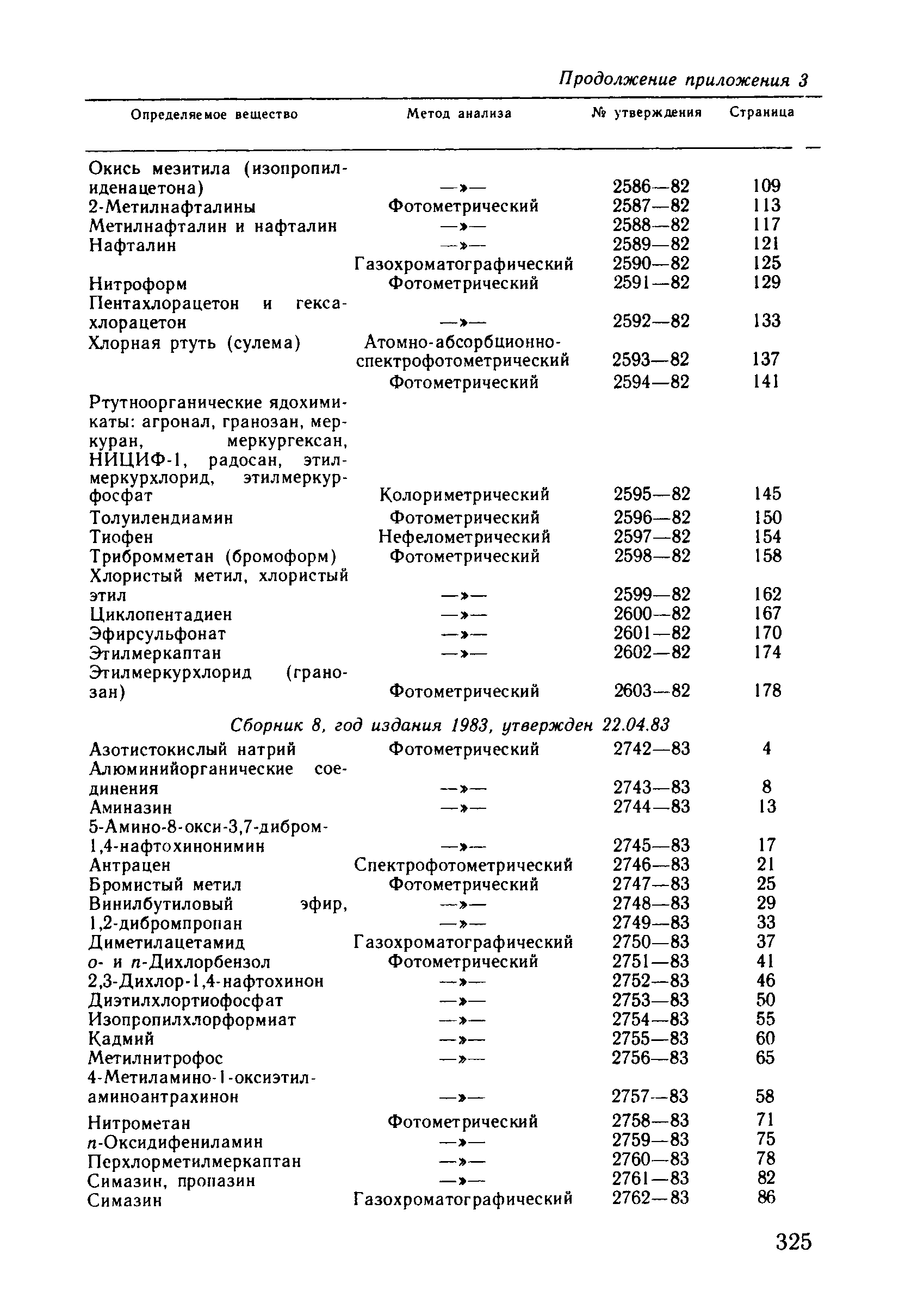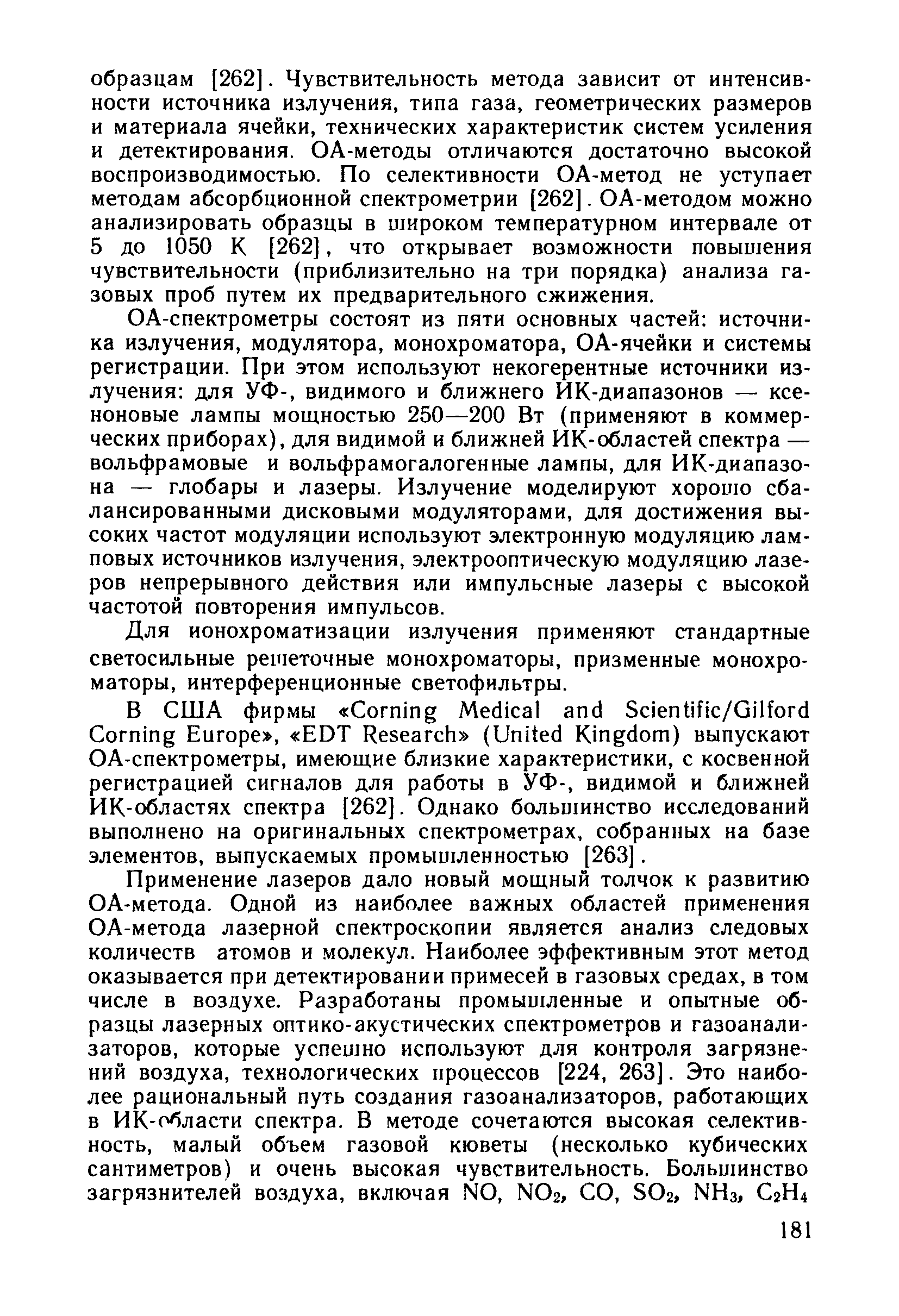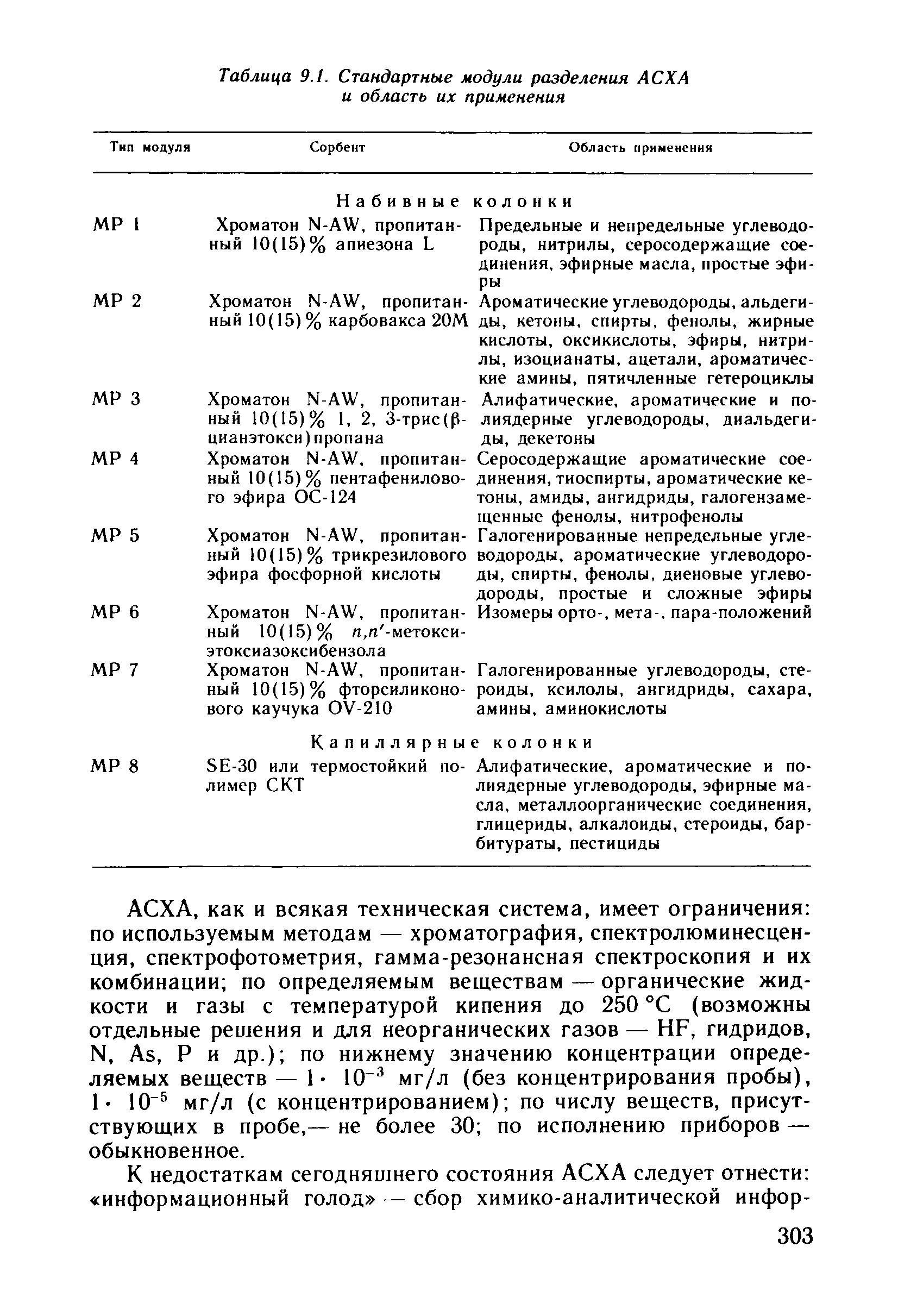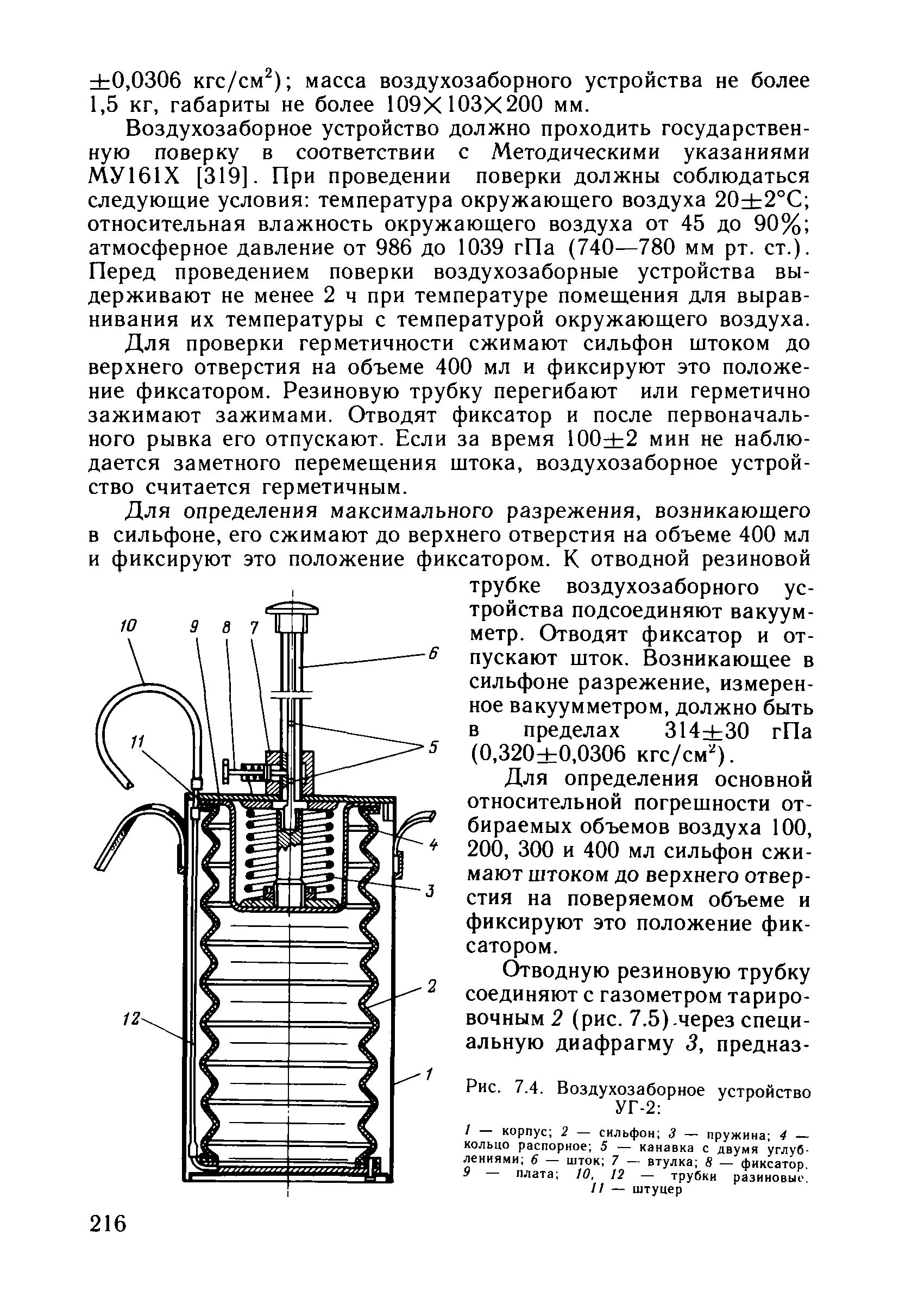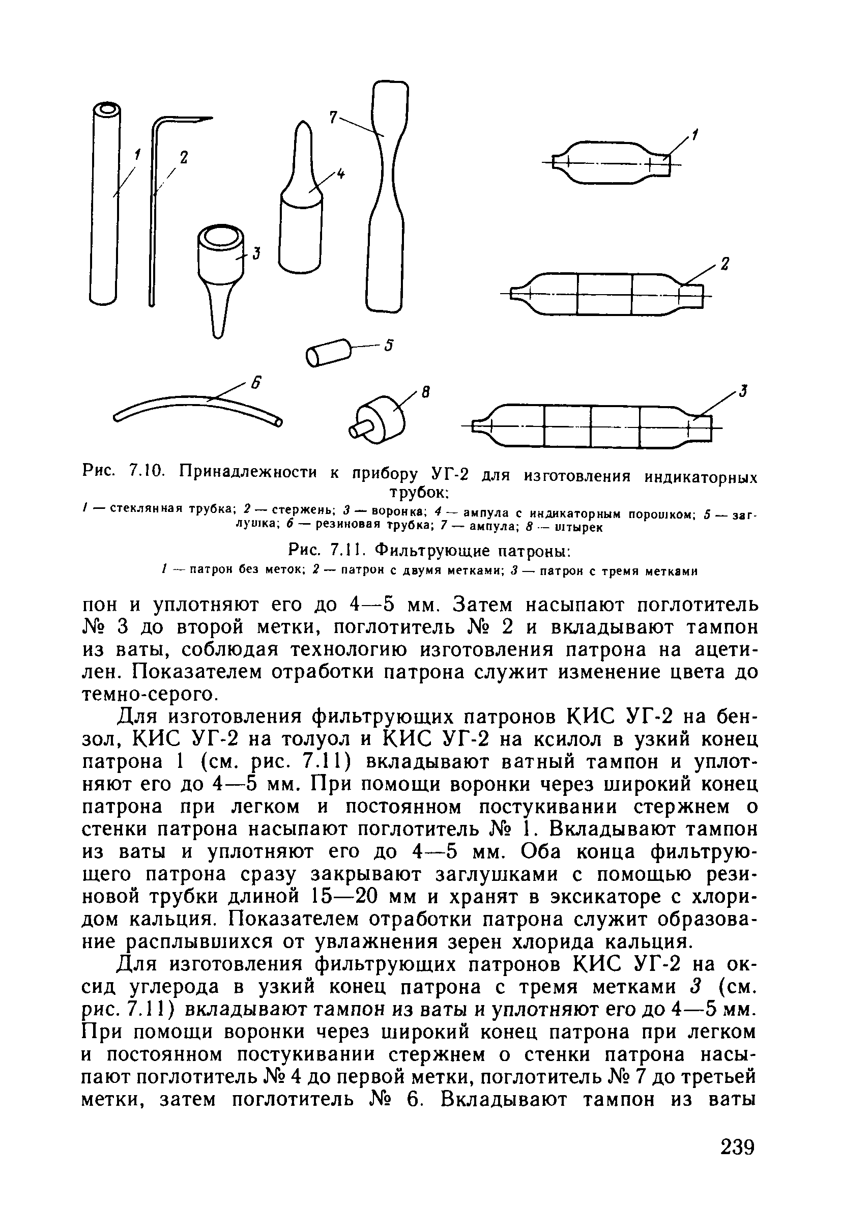 | Оглавление: | Введение Глава 1. Отбор проб воздуха 1.1. Отбор проб в жидкие среды 1.2. Отбор проб на твердые сорбенты 1.3. Хемосорбция 1.4. Отбор проб в охлаждаемые ловушки 1.5. Отбор проб в сосуды ограниченной вместимости 1.6. Отбор проб на фильтры 1.7. Индивидуальная активная дозиметрия 1.8. Индивидуальная пассивная дозиметрия 1.8.1. Аналитические методы контроля, применяемые при пассивном отборе проб воздуха 1.8.2. Влияние окружающей среды на адсорбцию веществ в пассивном дозиметре 1.8.3. Установление скорости поглощения вещества пассивными дозиметрами 1.9. Расчет концентрации веществ Глава 2. Аппаратура для отбора проб воздуха 2.1. Побудители расхода 2.2. Расходомеры 2.3. Аспирационные устройства Глава 3. Извлечение, концентрирование и идентификация веществ 3.1. Извлечение и концентрирование веществ 3.2. Идентификация веществ Глава 4. Методы приготовления смесей вредных веществ с воздухом 4.1. Статические методы 4.2. Динамические методы 4.3. Установки, используемые в практике контроля воздуха 4.4. Приготовление смесей аэрозолей с воздухом Глава 5. Физико-химические методы анализа 5.1. Газовая хроматография 5.1.1. Хроматограмма и ее параметры 5.1.2. Хроматографические колонки и коэффициент разделения 5.1.3. Выбор неподвижной фазы и условий разделения 5.1.4. Твердые носители для газожидкостной хроматографии и адсорбенты для газоадсорбционной хроматографии 5.1.5. Детекторы 5.1.6. Качественный анализ 5.1.7. Количественный анализ 5.1.8. Хроматографы 5.1.9. Дозаторы для ввода проб в хроматограф 5.1.10. Приготовление сорбентов 5.2. Тонкослойная хроматография 5.2.1. Адсорбционная хроматография 5.2.2. Распределительная хроматография 5.2.3. Сорбенты для ТСХ 5.2.4. Пластинки для ТСХ 5.2.5. Процесс разделения веществ на пластинке 5.2.6. Обнаружение веществ на хроматограмме 5.2.7. Количественный анализ 5.2.8. Оборудование для ТСХ 5.3. Жидкостная хроматография 5.4. Ионная хроматография 5.5. Масс-спектрометрия и хромато-масс-спектрометрия 5.6. Фотометрия 5.7. Спектроскопические методы 5.7.1. Атомно-эмиссионная спектрометрия 5.7.2. Атомно-абсорбционная спектрометрия 5.7.3. Атомно-флуоресцентная спектрометрия 5.7.4. Оптико-акустическая спектрометрия 5.8. Вольтамперометрия 5.9. Ионометрия Глава б. Метрологическое обеспечение контроля воздуха Глава 7. Измерение концентрации вредных веществ индикаторными трубками 7.1. Основные принципы работы индикаторных трубок 7.2. Подготовка и проведение измерений индикаторными трубками 7.3. Воздухозаборные устройства для индикаторных трубок 7.3.1. Аспиратор сильфонный АМ-5 7.3.2. Воздухозаборное устройство газоанализатора УГ-2 7.3.3. Ручной поршневой насос Китагавы 7.4. Газоопределители химические ГХ-М 7.5. Газоанализатор универсальный переносной УГ-2 7.5.1. Комплекты индикаторных средств 7.5.2. Подготовка и проведение анализа воздушной среды газоанализатором УГ-2 7.6. Зарубежные средства индикации 7.7. Индикаторные трубки длительного действия для определения среднесменных концентраций вредных веществ в воздухе Глава 8. Автоматический анализ воздушной среды производственных помещений 8.1. Общие сведения 8.2. Автоматические сигнализаторы довзрывоопасных концентраций 8.3. Газоанализаторы вредных веществ в воздухе 8.4. Магнитные и термомагнитные газоанализаторы кислорода 8.5. Общие требования к выбору мест отбора проб воздуха и к установке датчиков автоматических анализаторов контроля воздушной среды 8.