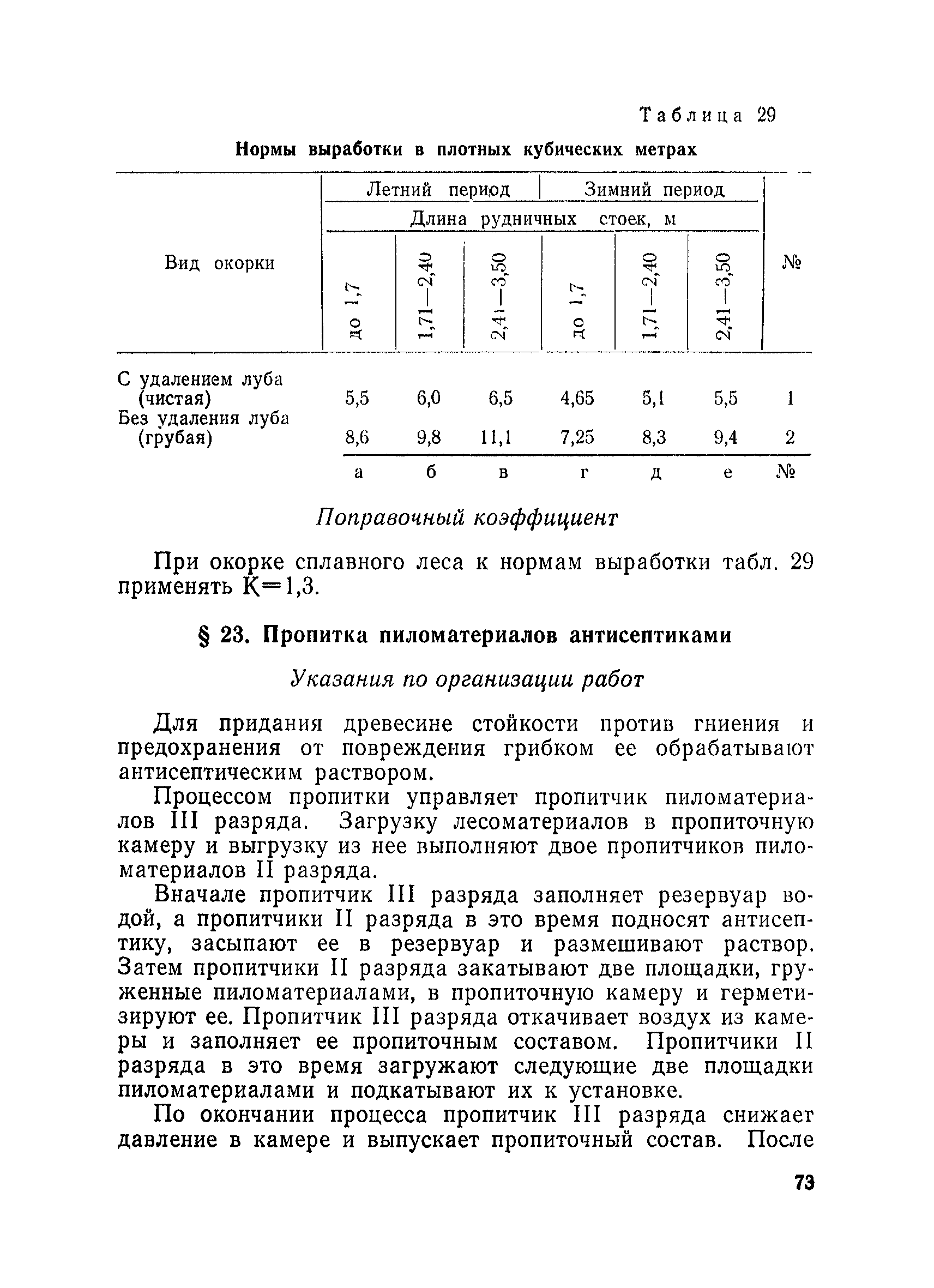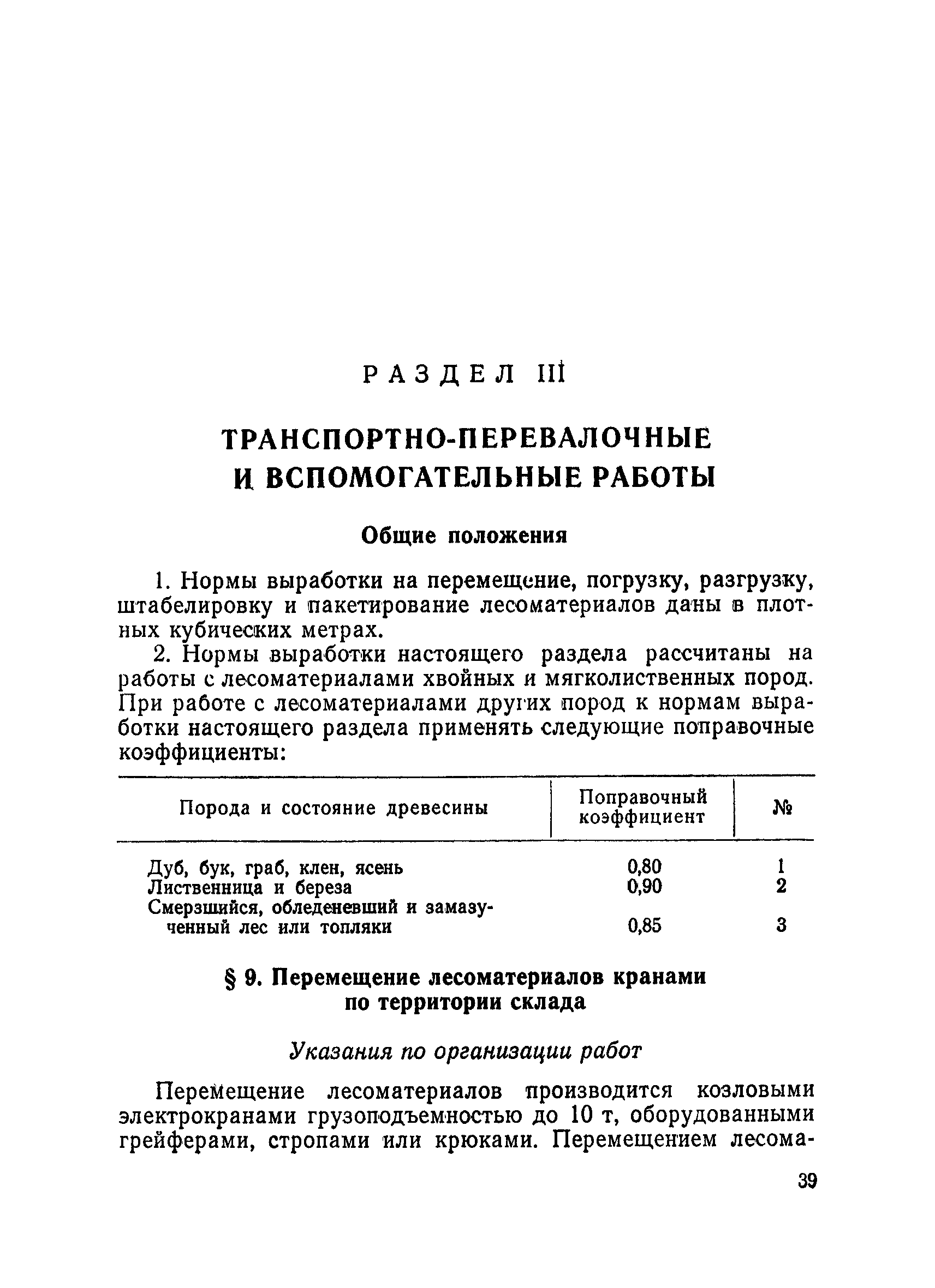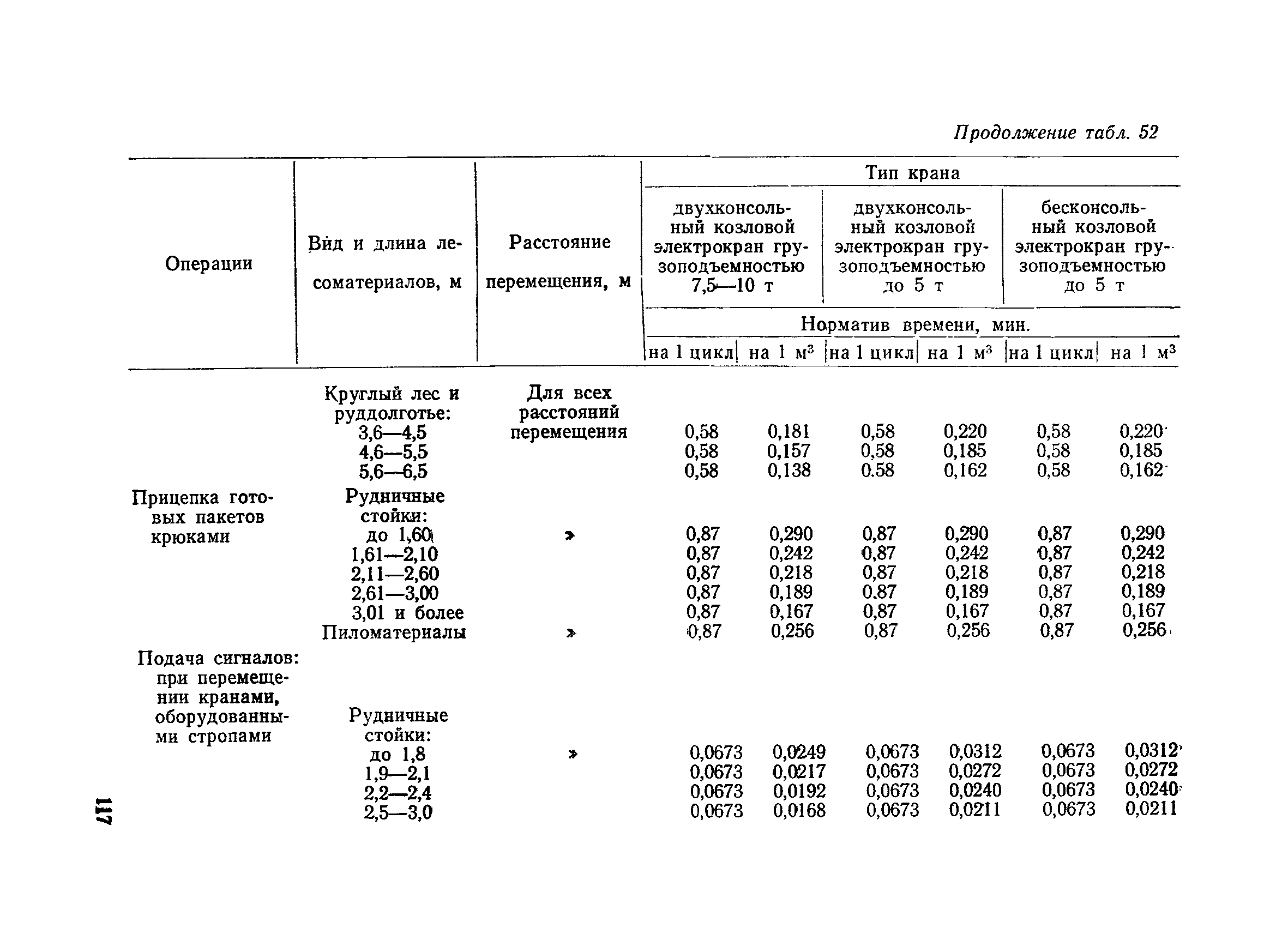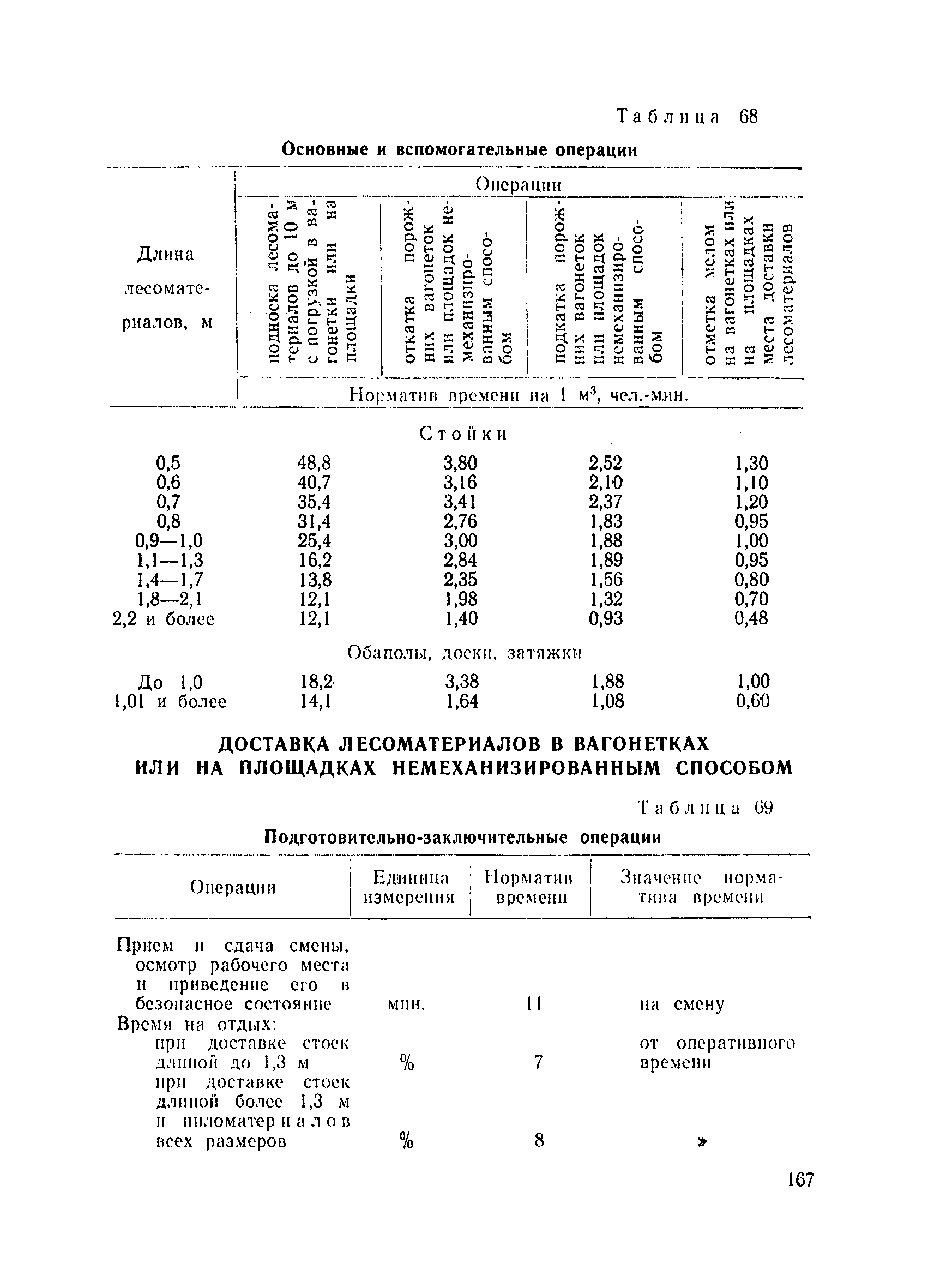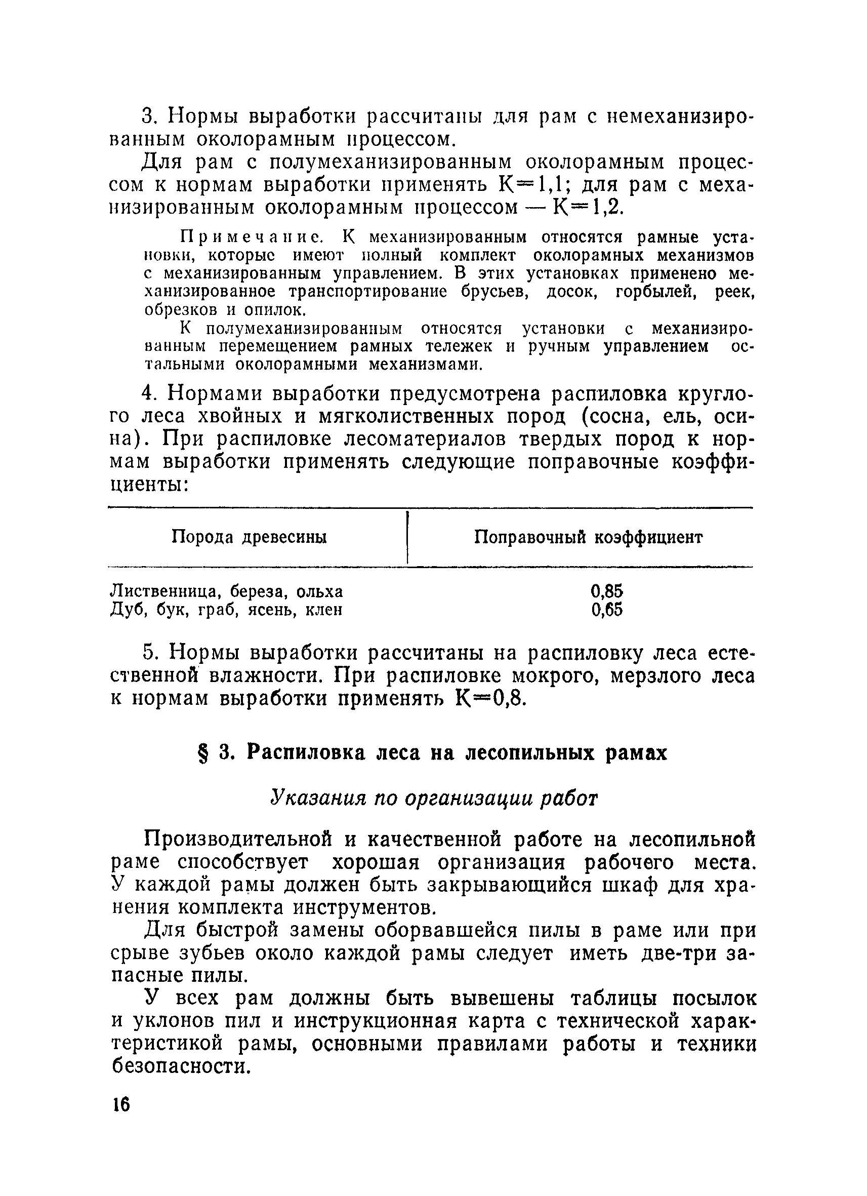 Типовые нормы выработки на переработку лесоматериалов на лесных складах предприятий (организаций) угольной промышленности| Статус: | справочные материалы, мп, тпр | | Название рус.: | Типовые нормы выработки на переработку лесоматериалов на лесных складах предприятий (организаций) угольной промышленности | | Дата добавления в базу: | 01.01.2019 | | Дата актуализации: | 01.01.2021 | | Область применения: | Типовые нормы рекомендуются для использования в качестве основы при разработке Единых отраслевых и бассейновых норм выработки, а также для применения на предприятиях и в организациях как местных технически обоснованных норм после утверждения их руководителем по согласованию с соответствующим комитетом профсоюза и нормативно-исследовательской станцией комбината (треста). Материалы сборника могут быть использованы научно-исследовательскими и проектными организациями, изучающими вопросы организации и нормирования труда | | Оглавление: | Порядок применения типовых норм Общая часть Раздел I. Разгрузочные работы § 1. Выгрузка лесоматериалов кранами из железнодорожного подвижного состава § 2. Выгрузка лесоматериалов из железнодорожного подвижного состава вручную или с применением простейших приспособлений Раздел II. Механизированное лесопиление и разделка леса § 3. Распиловка леса па лесопильных рамах § 4. Разборка и установка поставов рамных пил § 5. Продольная распиловка леса на круглопильных станках § 6. Заготовка рудничных стоек на круглопильных станках § 7. Заготовка рудничных стоек ручными электро- или бензопилами § 8. Поперечная распиловка пиломатериалов (досок, обаполов, затяжек, распилов, брусьев, шпал) на круглопильных станках Раздел III. Транспортно-перевалочные и вспомогательные работы § 9. Перемещение лесоматериалов кранами по территории склада § 10. Погрузка лесоматериалов кранами на автомашины (тракторные прицепы) § 11. Погрузка лесоматериалов на автомашины (тракторные прицепы) и выгрузка их вручную или с применением простейших приспособлений § 12. Перемещение леса автопогрузчиками § 13. Сортировка и перемещение круглого леса лебедками или тракторами § 14. Механизированное пакетирование рудничных стоек § 15. Сортировка незаштабелированных лесоматериалов вручную с формированием пакетов или с укладкой в контейнеры § 16. Погрузка лесоматериалов в вагонетки или на площадки немеханизированным способом § 17. Доставка лесоматериалов в вагонетках или на площадках немеханизированным способом § 18. Доставка лесоматериалов в вагонетках или на площадках лебедками § 19. Доставка лесоматериалов конвейерами § 20. Штабелировка круглого леса и рудничного долготья лебедками Раздел IV. Прочие работы § 21. Окорка рудничных стоек на механическом станке § 22. Окорка рудничных стоек вручную § 23. Пропитка пиломатериалов антисептиками § 24. Заточка рамных пил на суппортном станке ТчПА-3 § 25. Нарезка, заточка круглых, рамных и цепных пил на наждачном станке. Развод зубьев и правка пил § 26. Разные работы на лесном складе § 27. Вывозка отходов и мусора Раздел V. Расчетные нормативы времени по операциям или группам операций рабочих процессов Выгрузка лесоматериалов кранами из железнодорожного подвижного состава Выгрузка лесоматериалов из железнодорожного подвижного состава вручную или с применением простейших приспособлений Распиловка леса на лесопильны