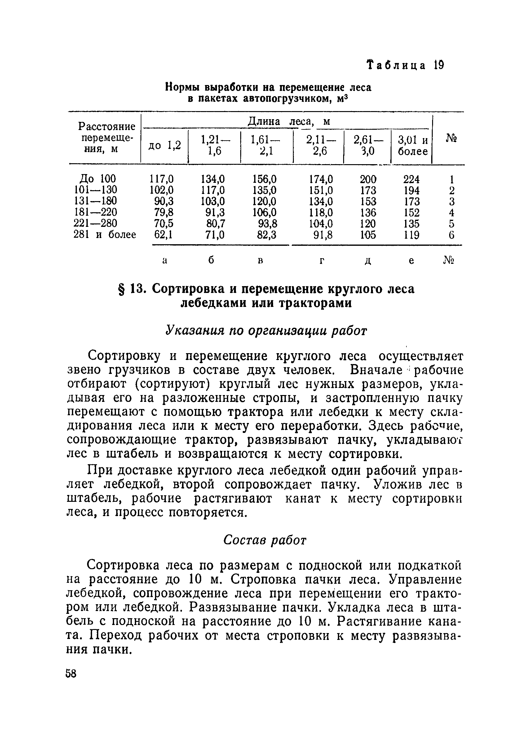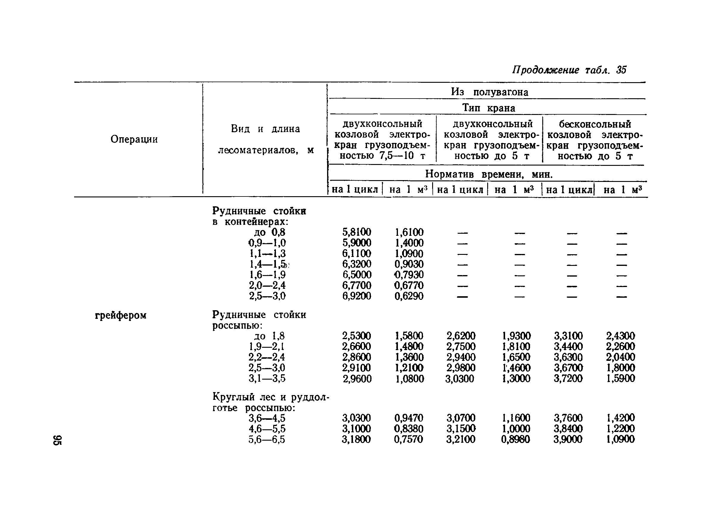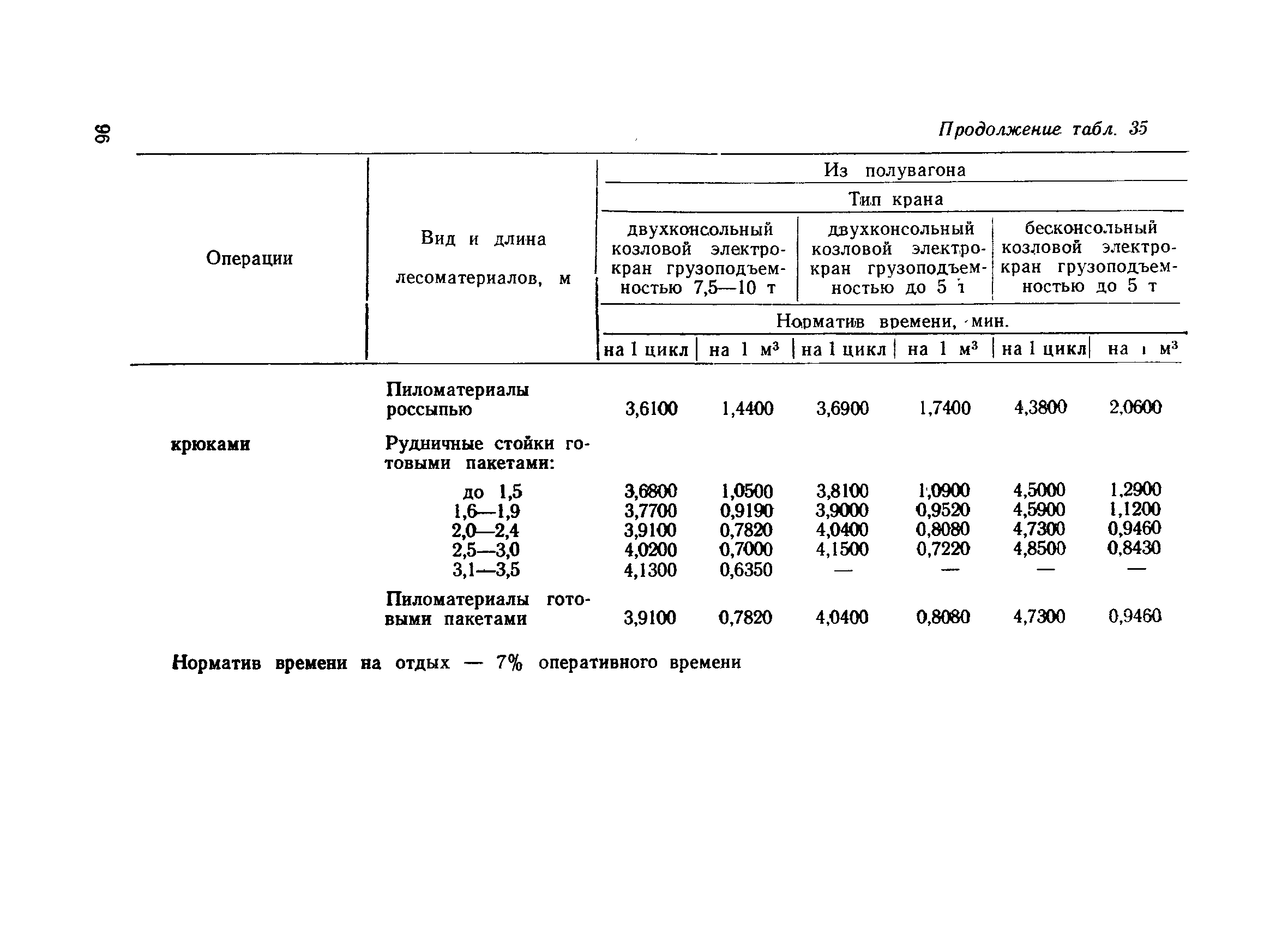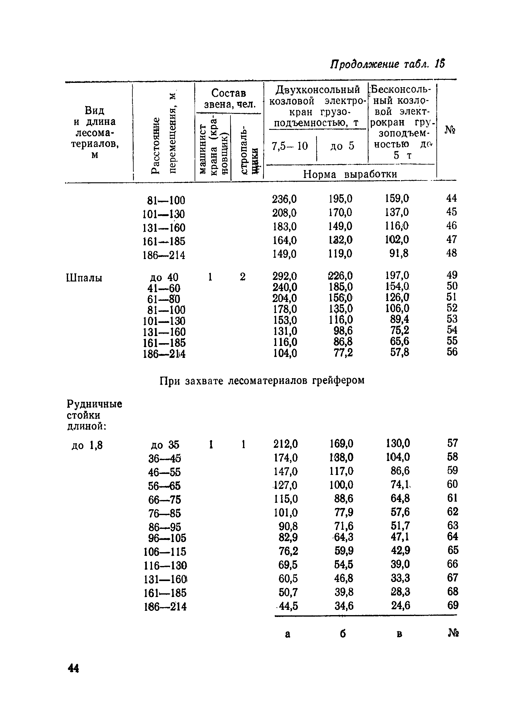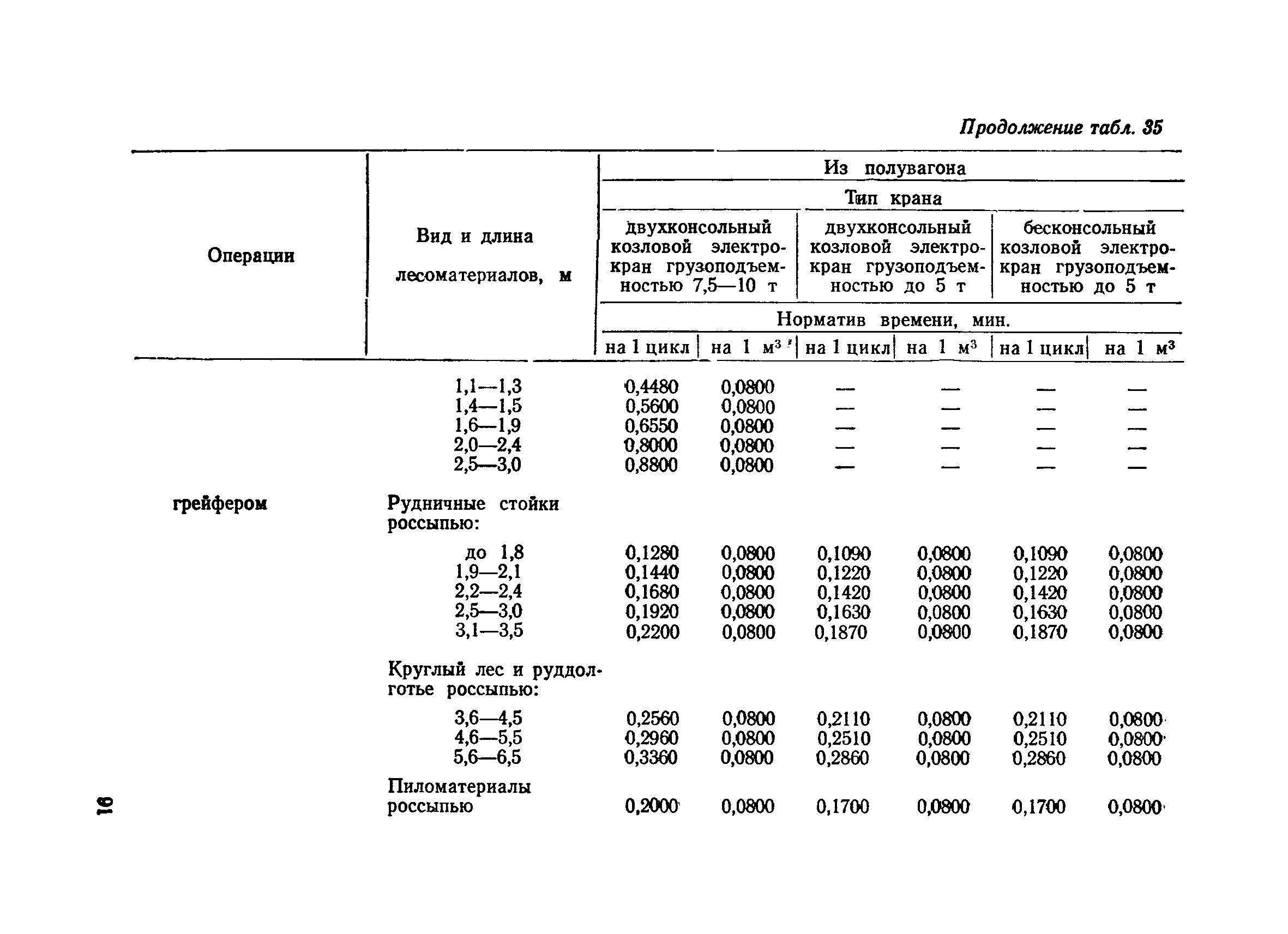 Типовые нормы выработки на переработку лесоматериалов на лесных складах предприятий (организаций) угольной промышленности| Статус: | справочные материалы, мп, тпр | | Название рус.: | Типовые нормы выработки на переработку лесоматериалов на лесных складах предприятий (организаций) угольной промышленности | | Дата добавления в базу: | 01.01.2019 | | Дата актуализации: | 01.01.2021 | | Область применения: | Типовые нормы рекомендуются для использования в качестве основы при разработке Единых отраслевых и бассейновых норм выработки, а также для применения на предприятиях и в организациях как местных технически обоснованных норм после утверждения их руководителем по согласованию с соответствующим комитетом профсоюза и нормативно-исследовательской станцией комбината (треста). Материалы сборника могут быть использованы научно-исследовательскими и проектными организациями, изучающими вопросы организации и нормирования труда | | Оглавление: | Порядок применения типовых норм Общая часть Раздел I. Разгрузочные работы § 1. Выгрузка лесоматериалов кранами из железнодорожного подвижного состава § 2. Выгрузка лесоматериалов из железнодорожного подвижного состава вручную или с применением простейших приспособлений Раздел II. Механизированное лесопиление и разделка леса § 3. Распиловка леса па лесопильных рамах § 4. Разборка и установка поставов рамных пил § 5. Продольная распиловка леса на круглопильных станках § 6. Заготовка рудничных стоек на круглопильных станках § 7. Заготовка рудничных стоек ручными электро- или бензопилами § 8. Поперечная распиловка пиломатериалов (досок, обаполов, затяжек, распилов, брусьев, шпал) на круглопильных станках Раздел III. Транспортно-перевалочные и вспомогательные работы § 9. Перемещение лесоматериалов кранами по территории склада § 10. Погрузка лесоматериалов кранами на автомашины (тракторные прицепы) § 11. Погрузка лесоматериалов на автомашины (тракторные прицепы) и выгрузка их вручную или с применением простейших приспособлений § 12. Перемещение леса автопогрузчиками § 13. Сортировка и перемещение круглого леса лебедками или тракторами § 14. Механизированное пакетирование рудничных стоек § 15. Сортировка незаштабелированных лесоматериалов вручную с формированием пакетов или с укладкой в контейнеры § 16. Погрузка лесоматериалов в вагонетки или на площадки немеханизированным способом § 17. Доставка лесоматериалов в вагонетках или на площадках немеханизированным способом § 18. Доставка лесоматериалов в вагонетках или на площадках лебедками § 19. Доставка лесоматериалов конвейерами § 20. Штабелировка круглого леса и рудничного долготья лебедками Раздел IV. Прочие работы § 21. Окорка рудничных стоек на механическом станке § 22. Окорка рудничных стоек вручную § 23. Пропитка пиломатериалов антисептиками § 24. Заточка рамных пил на суппортном станке ТчПА-3 § 25. Нарезка, заточка круглых, рамных и цепных пил на наждачном станке. Развод зубьев и правка пил § 26. Разные работы на лесном складе § 27. Вывозка отходов и мусора Раздел V. Расчетные нормативы времени по операциям или группам операций рабочих процессов Выгрузка лесоматериалов кранами из железнодорожного подвижного состава Выгрузка лесоматериалов из железнодорожного подвижного состава вручную или с применением простейших приспособлений Распиловка леса на лесопильны