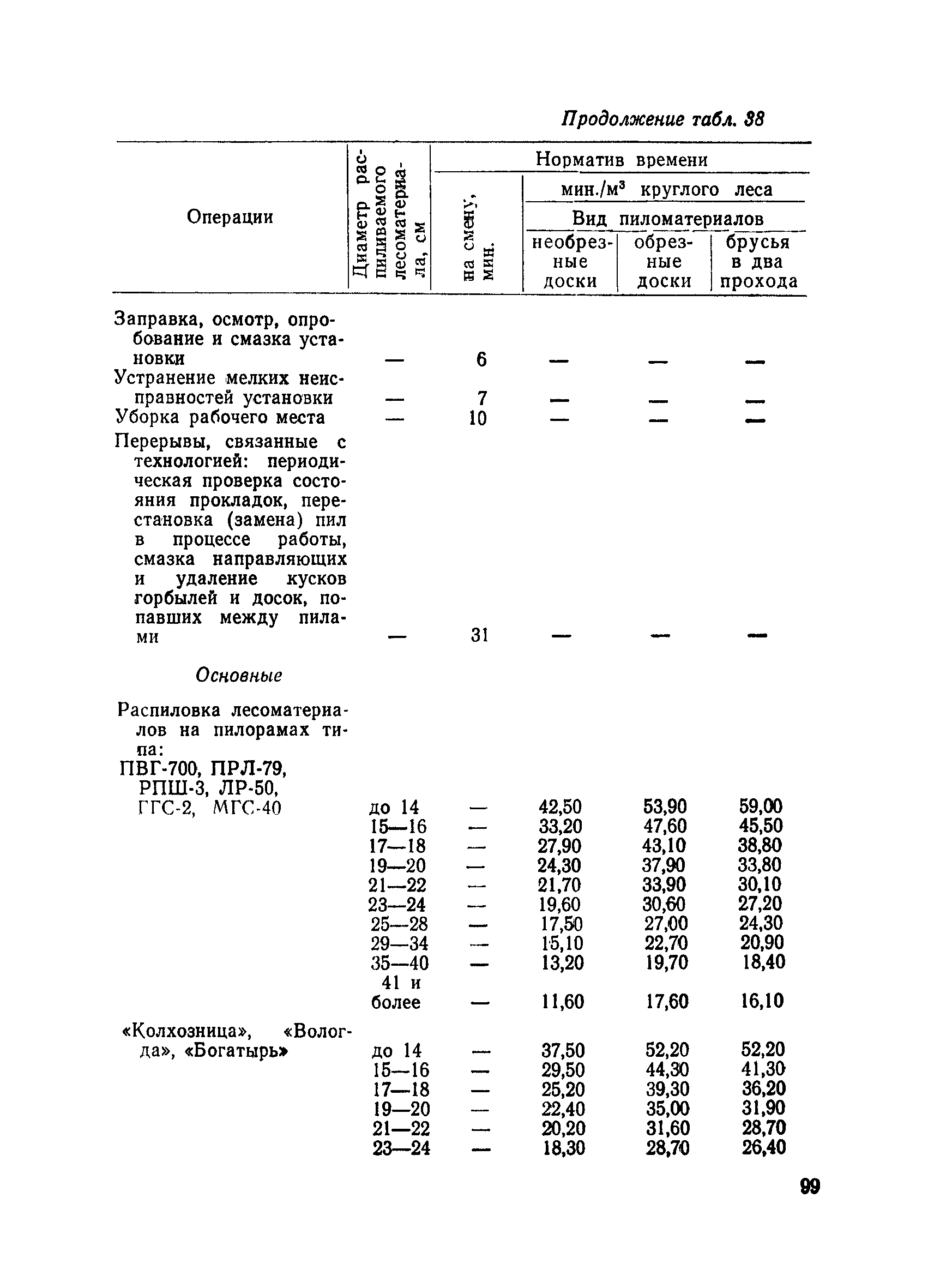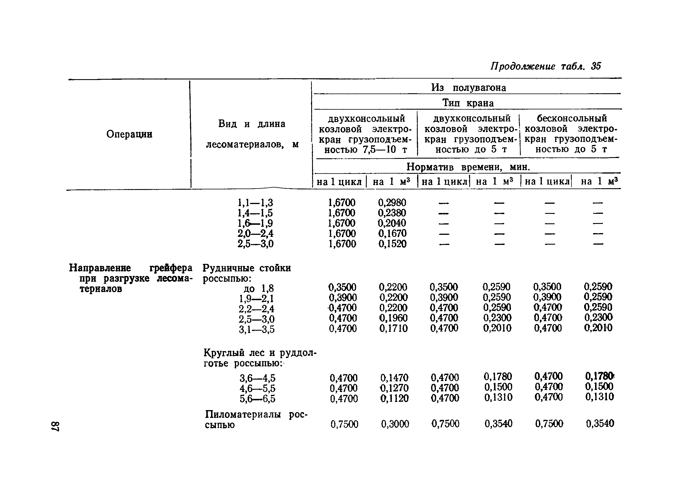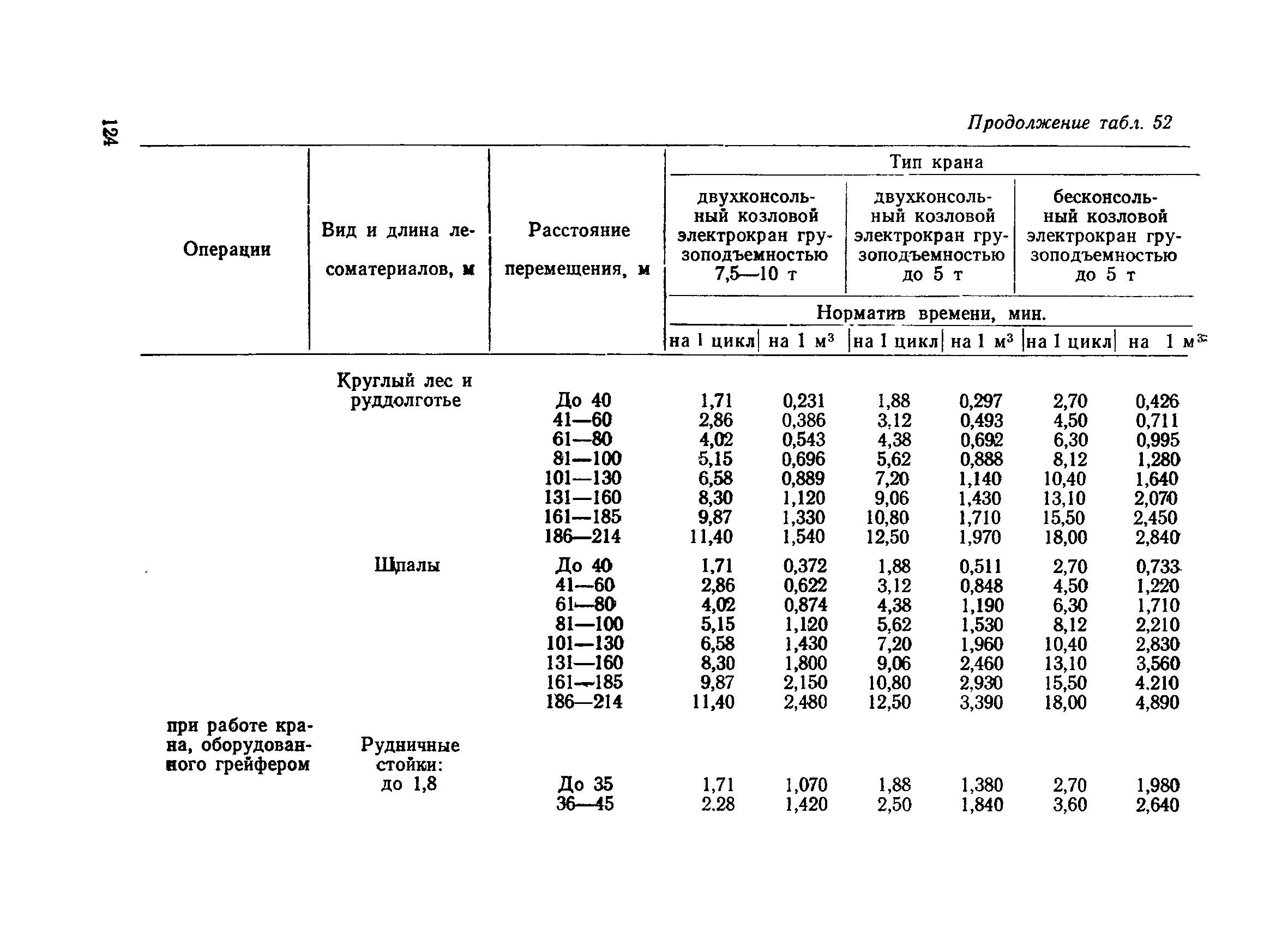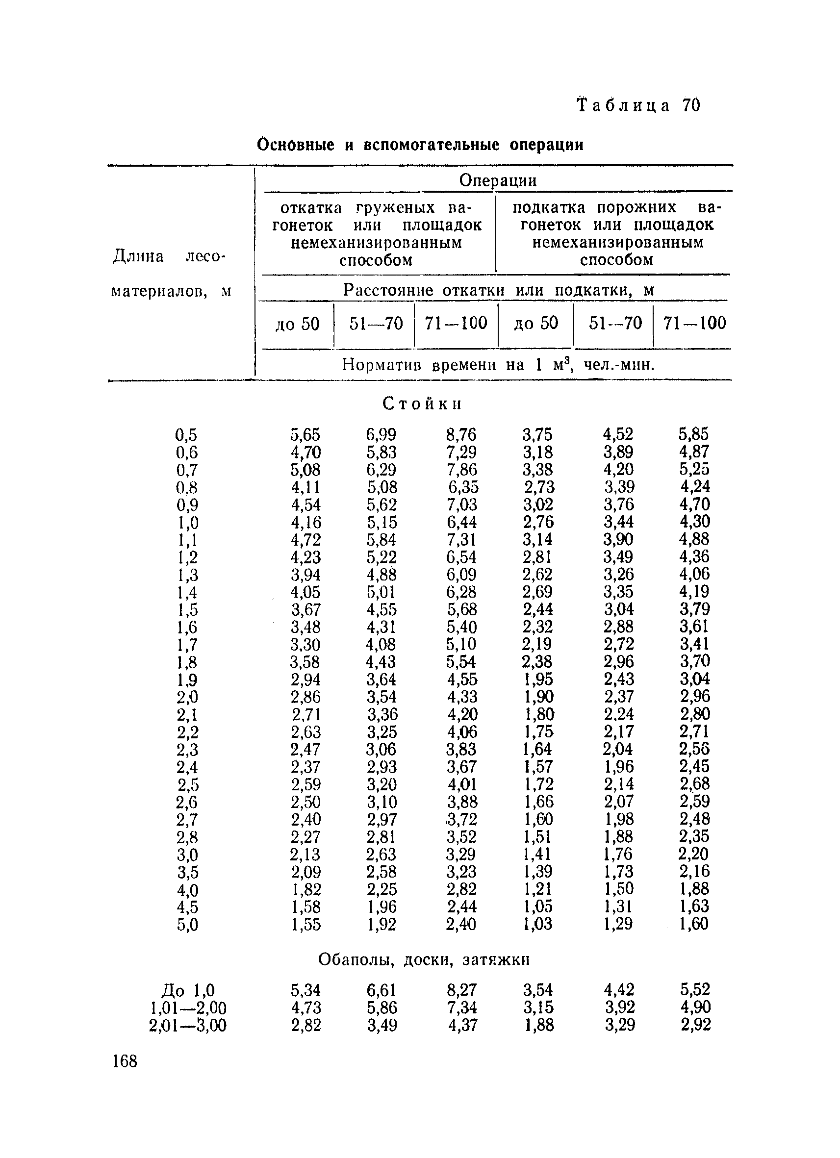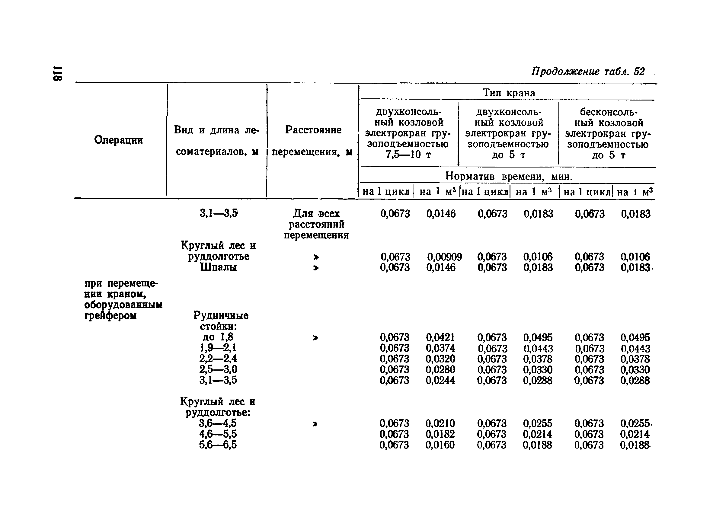 Типовые нормы выработки на переработку лесоматериалов на лесных складах предприятий (организаций) угольной промышленности| Статус: | справочные материалы, мп, тпр | | Название рус.: | Типовые нормы выработки на переработку лесоматериалов на лесных складах предприятий (организаций) угольной промышленности | | Дата добавления в базу: | 01.01.2019 | | Дата актуализации: | 01.01.2021 | | Область применения: | Типовые нормы рекомендуются для использования в качестве основы при разработке Единых отраслевых и бассейновых норм выработки, а также для применения на предприятиях и в организациях как местных технически обоснованных норм после утверждения их руководителем по согласованию с соответствующим комитетом профсоюза и нормативно-исследовательской станцией комбината (треста). Материалы сборника могут быть использованы научно-исследовательскими и проектными организациями, изучающими вопросы организации и нормирования труда | | Оглавление: | Порядок применения типовых норм Общая часть Раздел I. Разгрузочные работы § 1. Выгрузка лесоматериалов кранами из железнодорожного подвижного состава § 2. Выгрузка лесоматериалов из железнодорожного подвижного состава вручную или с применением простейших приспособлений Раздел II. Механизированное лесопиление и разделка леса § 3. Распиловка леса па лесопильных рамах § 4. Разборка и установка поставов рамных пил § 5. Продольная распиловка леса на круглопильных станках § 6. Заготовка рудничных стоек на круглопильных станках § 7. Заготовка рудничных стоек ручными электро- или бензопилами § 8. Поперечная распиловка пиломатериалов (досок, обаполов, затяжек, распилов, брусьев, шпал) на круглопильных станках Раздел III. Транспортно-перевалочные и вспомогательные работы § 9. Перемещение лесоматериалов кранами по территории склада § 10. Погрузка лесоматериалов кранами на автомашины (тракторные прицепы) § 11. Погрузка лесоматериалов на автомашины (тракторные прицепы) и выгрузка их вручную или с применением простейших приспособлений § 12. Перемещение леса автопогрузчиками § 13. Сортировка и перемещение круглого леса лебедками или тракторами § 14. Механизированное пакетирование рудничных стоек § 15. Сортировка незаштабелированных лесоматериалов вручную с формированием пакетов или с укладкой в контейнеры § 16. Погрузка лесоматериалов в вагонетки или на площадки немеханизированным способом § 17. Доставка лесоматериалов в вагонетках или на площадках немеханизированным способом § 18. Доставка лесоматериалов в вагонетках или на площадках лебедками § 19. Доставка лесоматериалов конвейерами § 20. Штабелировка круглого леса и рудничного долготья лебедками Раздел IV. Прочие работы § 21. Окорка рудничных стоек на механическом станке § 22. Окорка рудничных стоек вручную § 23. Пропитка пиломатериалов антисептиками § 24. Заточка рамных пил на суппортном станке ТчПА-3 § 25. Нарезка, заточка круглых, рамных и цепных пил на наждачном станке. Развод зубьев и правка пил § 26. Разные работы на лесном складе § 27. Вывозка отходов и мусора Раздел V. Расчетные нормативы времени по операциям или группам операций рабочих процессов Выгрузка лесоматериалов кранами из железнодорожного подвижного состава Выгрузка лесоматериалов из железнодорожного подвижного состава вручную или с применением простейших приспособлений Распиловка леса на лесопильны