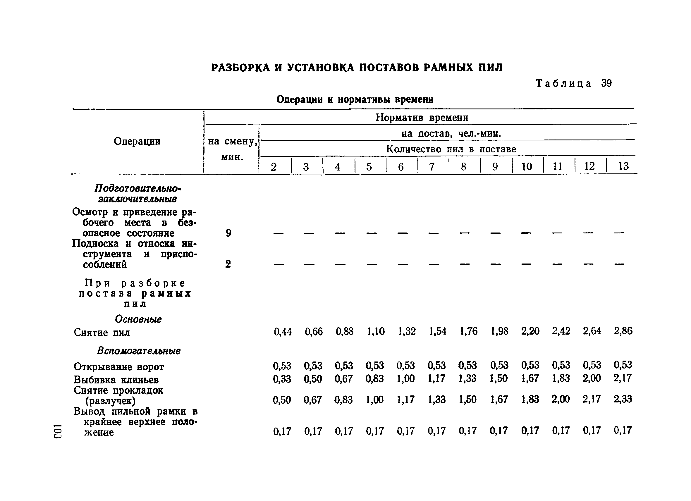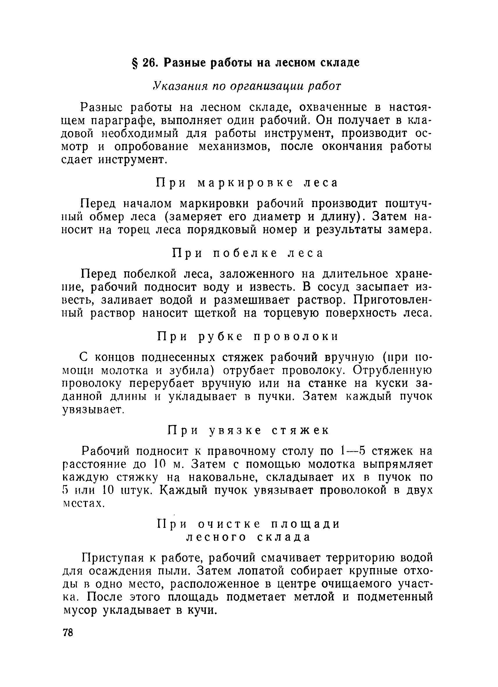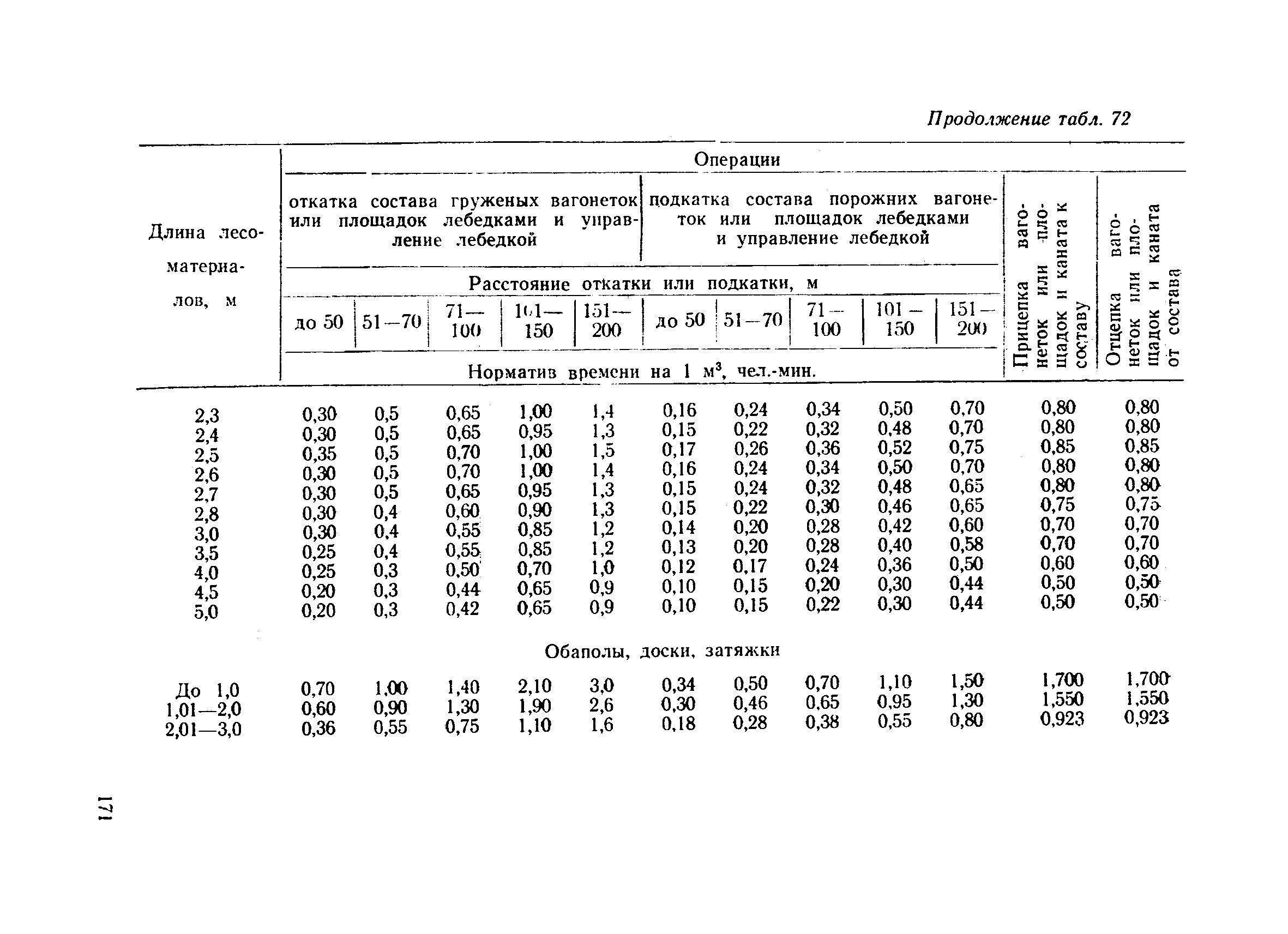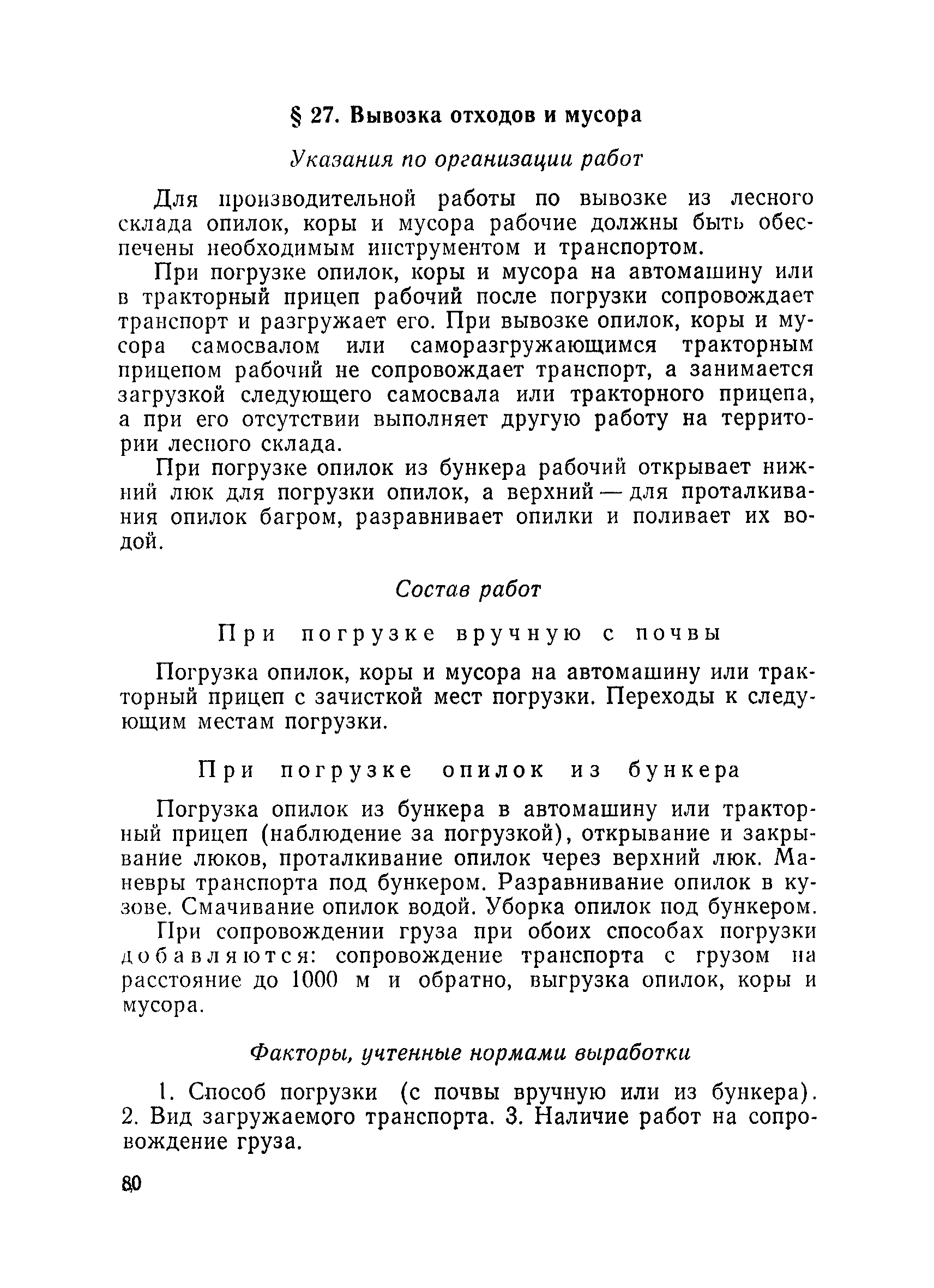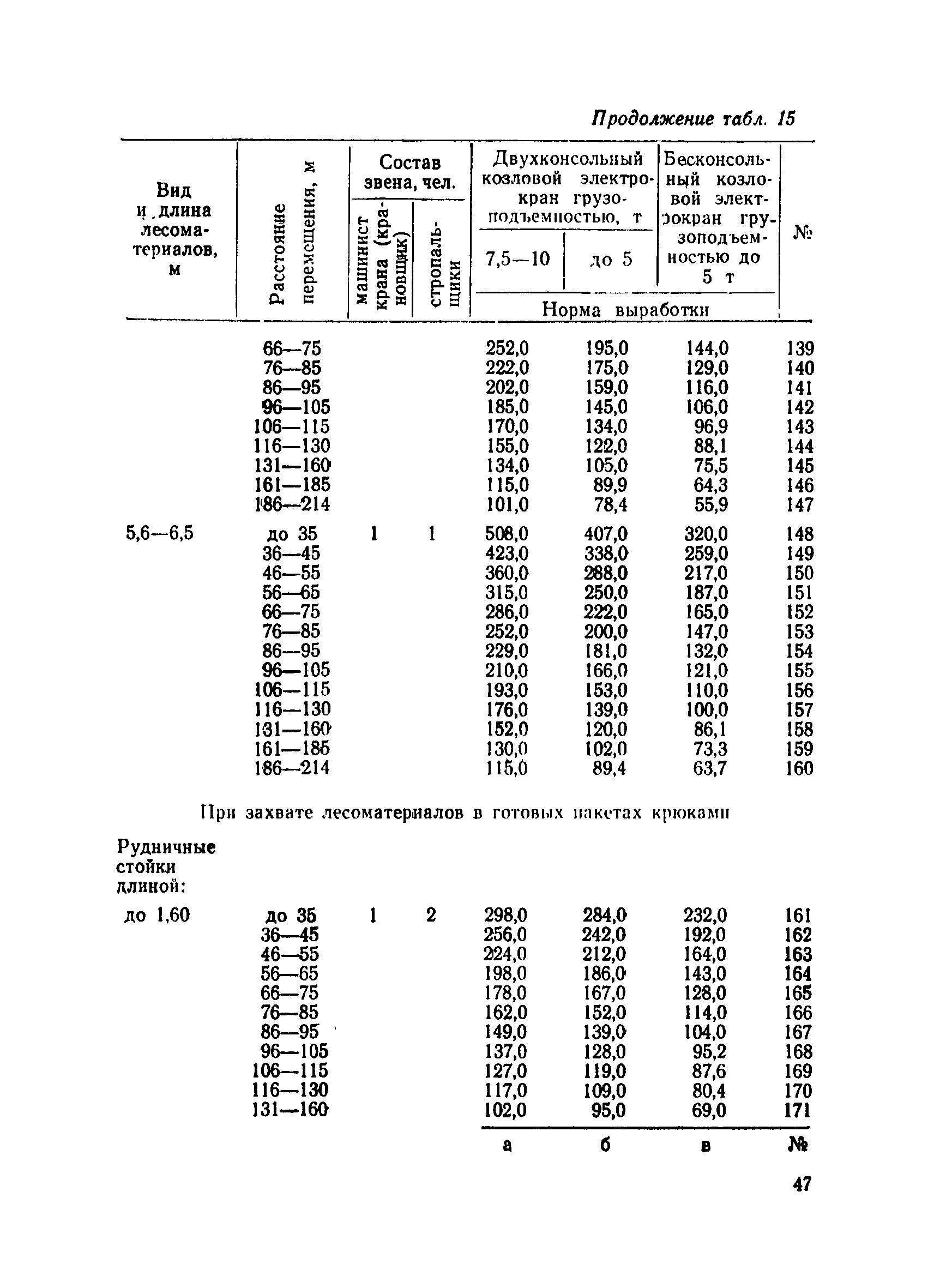 Типовые нормы выработки на переработку лесоматериалов на лесных складах предприятий (организаций) угольной промышленности| Статус: | справочные материалы, мп, тпр | | Название рус.: | Типовые нормы выработки на переработку лесоматериалов на лесных складах предприятий (организаций) угольной промышленности | | Дата добавления в базу: | 01.01.2019 | | Дата актуализации: | 01.01.2021 | | Область применения: | Типовые нормы рекомендуются для использования в качестве основы при разработке Единых отраслевых и бассейновых норм выработки, а также для применения на предприятиях и в организациях как местных технически обоснованных норм после утверждения их руководителем по согласованию с соответствующим комитетом профсоюза и нормативно-исследовательской станцией комбината (треста). Материалы сборника могут быть использованы научно-исследовательскими и проектными организациями, изучающими вопросы организации и нормирования труда | | Оглавление: | Порядок применения типовых норм Общая часть Раздел I. Разгрузочные работы § 1. Выгрузка лесоматериалов кранами из железнодорожного подвижного состава § 2. Выгрузка лесоматериалов из железнодорожного подвижного состава вручную или с применением простейших приспособлений Раздел II. Механизированное лесопиление и разделка леса § 3. Распиловка леса па лесопильных рамах § 4. Разборка и установка поставов рамных пил § 5. Продольная распиловка леса на круглопильных станках § 6. Заготовка рудничных стоек на круглопильных станках § 7. Заготовка рудничных стоек ручными электро- или бензопилами § 8. Поперечная распиловка пиломатериалов (досок, обаполов, затяжек, распилов, брусьев, шпал) на круглопильных станках Раздел III. Транспортно-перевалочные и вспомогательные работы § 9. Перемещение лесоматериалов кранами по территории склада § 10. Погрузка лесоматериалов кранами на автомашины (тракторные прицепы) § 11. Погрузка лесоматериалов на автомашины (тракторные прицепы) и выгрузка их вручную или с применением простейших приспособлений § 12. Перемещение леса автопогрузчиками § 13. Сортировка и перемещение круглого леса лебедками или тракторами § 14. Механизированное пакетирование рудничных стоек § 15. Сортировка незаштабелированных лесоматериалов вручную с формированием пакетов или с укладкой в контейнеры § 16. Погрузка лесоматериалов в вагонетки или на площадки немеханизированным способом § 17. Доставка лесоматериалов в вагонетках или на площадках немеханизированным способом § 18. Доставка лесоматериалов в вагонетках или на площадках лебедками § 19. Доставка лесоматериалов конвейерами § 20. Штабелировка круглого леса и рудничного долготья лебедками Раздел IV. Прочие работы § 21. Окорка рудничных стоек на механическом станке § 22. Окорка рудничных стоек вручную § 23. Пропитка пиломатериалов антисептиками § 24. Заточка рамных пил на суппортном станке ТчПА-3 § 25. Нарезка, заточка круглых, рамных и цепных пил на наждачном станке. Развод зубьев и правка пил § 26. Разные работы на лесном складе § 27. Вывозка отходов и мусора Раздел V. Расчетные нормативы времени по операциям или группам операций рабочих процессов Выгрузка лесоматериалов кранами из железнодорожного подвижного состава Выгрузка лесоматериалов из железнодорожного подвижного состава вручную или с применением простейших приспособлений Распиловка леса на лесопильны