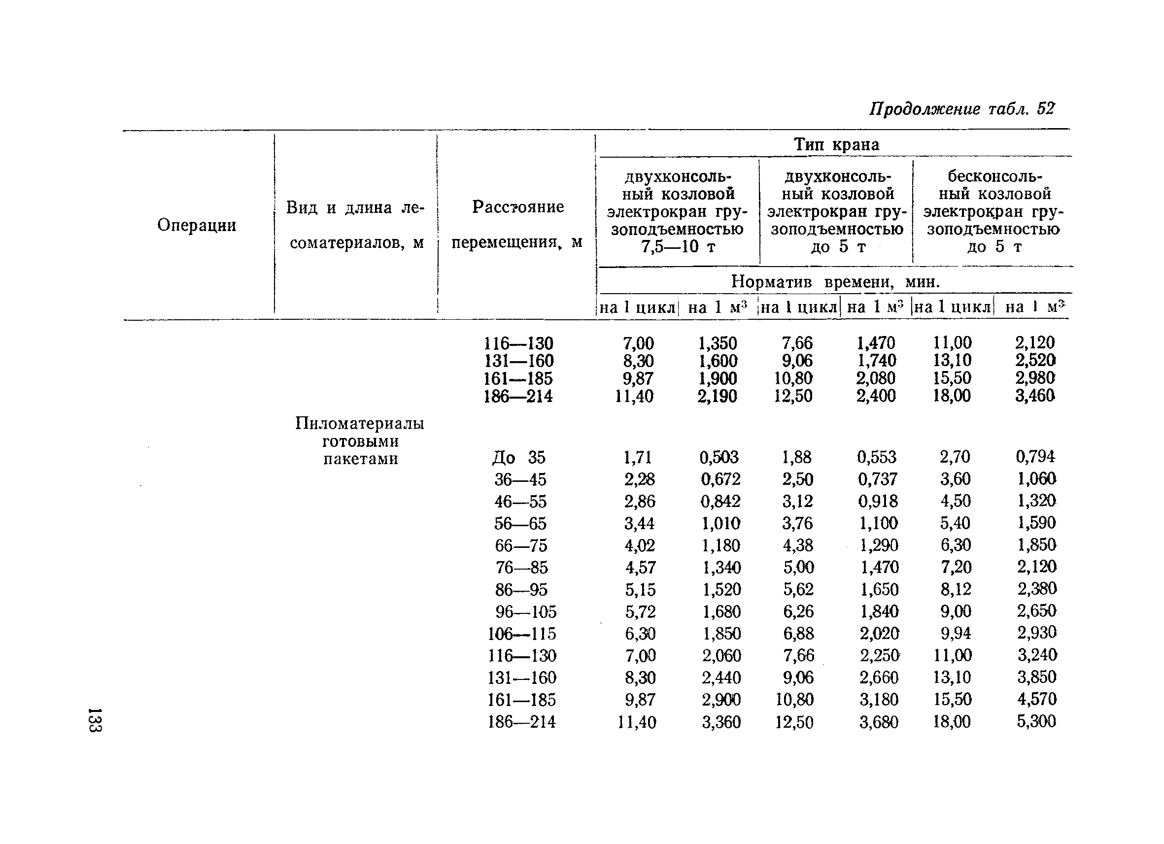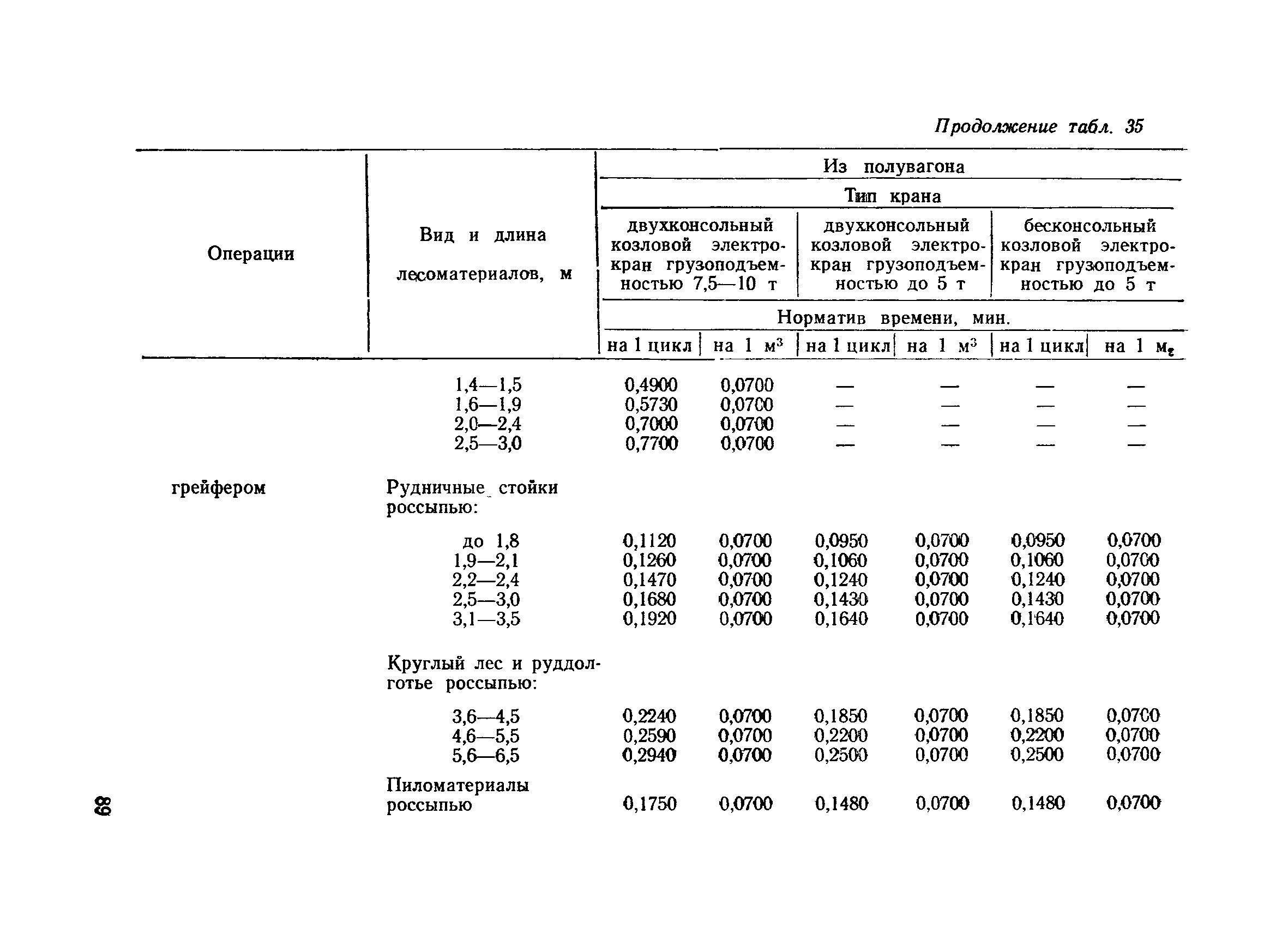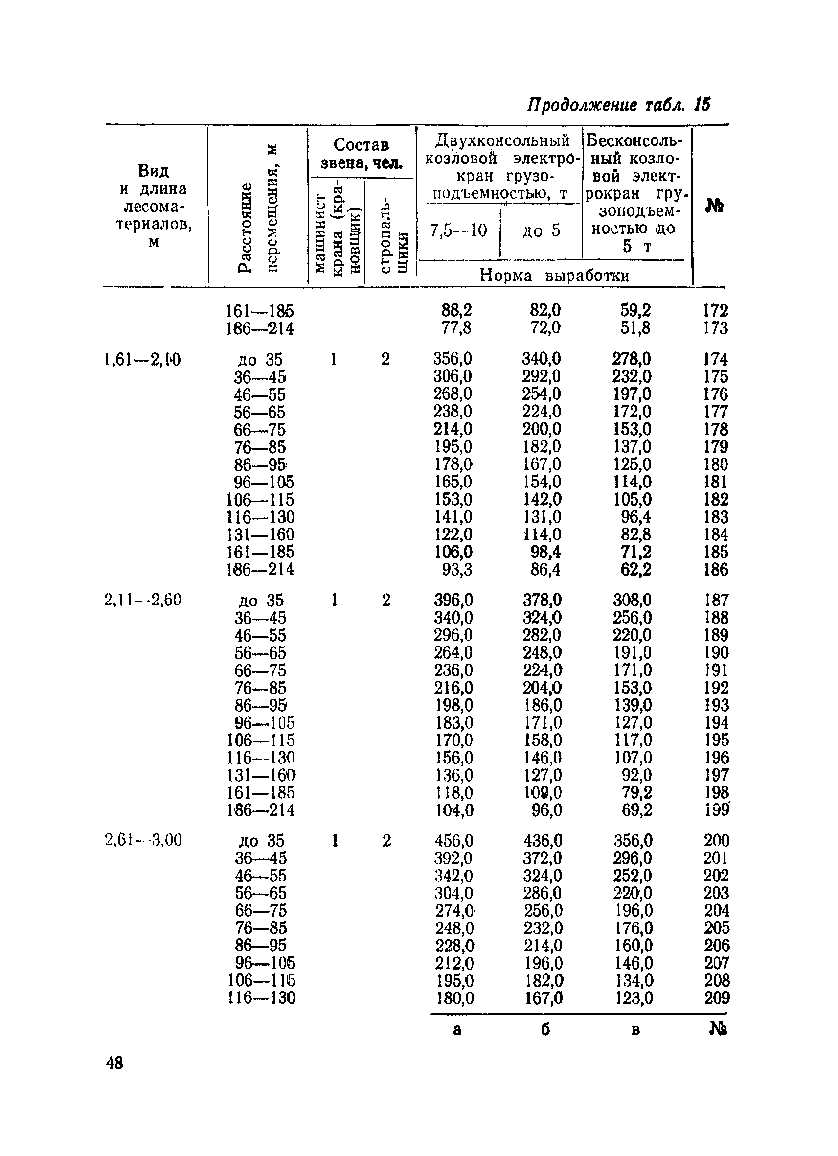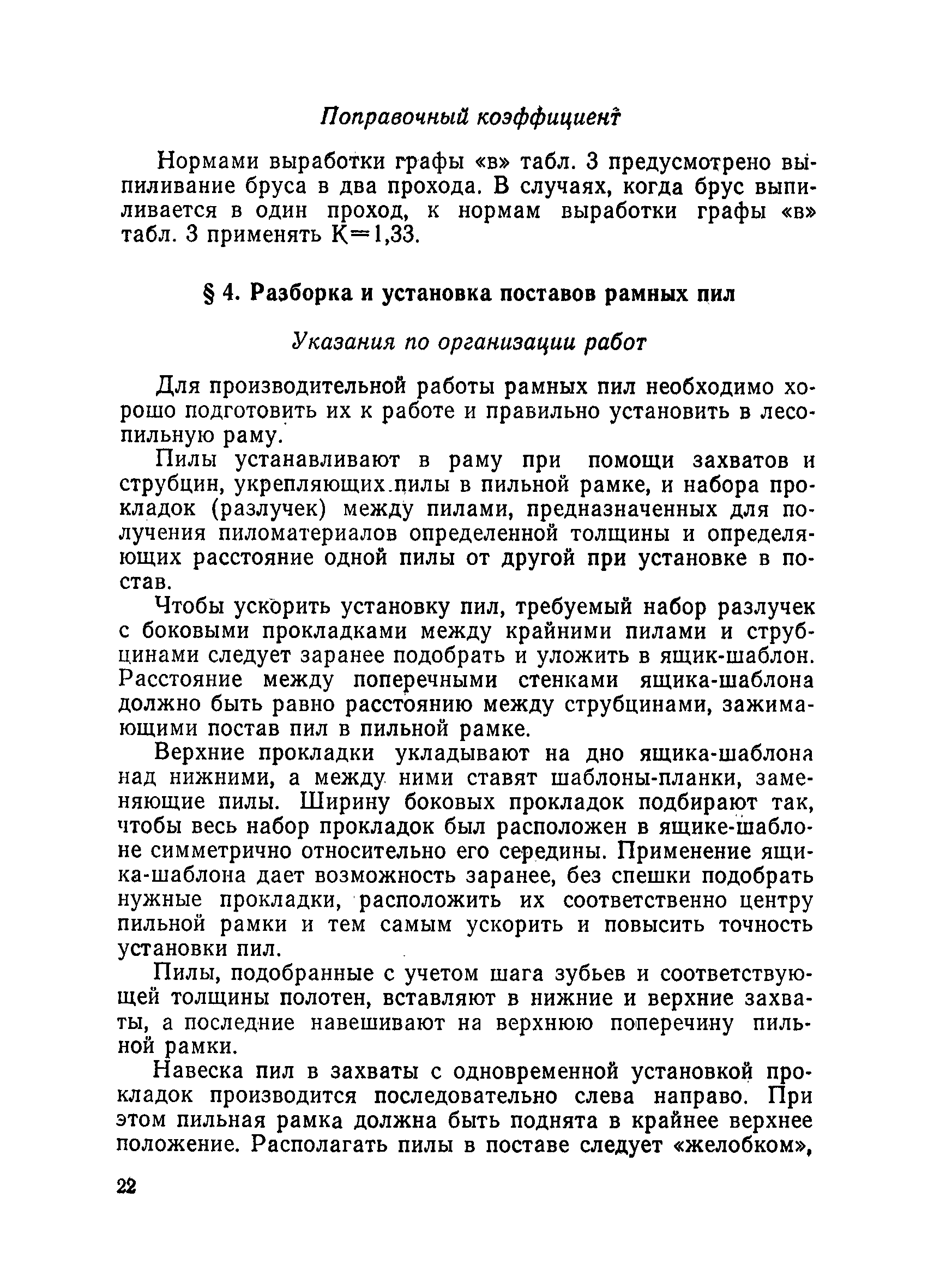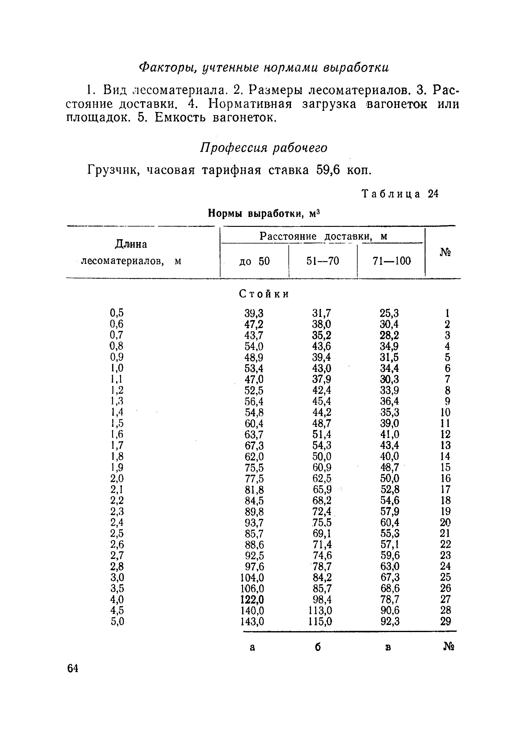 Типовые нормы выработки на переработку лесоматериалов на лесных складах предприятий (организаций) угольной промышленности| Статус: | справочные материалы, мп, тпр | | Название рус.: | Типовые нормы выработки на переработку лесоматериалов на лесных складах предприятий (организаций) угольной промышленности | | Дата добавления в базу: | 01.01.2019 | | Дата актуализации: | 01.01.2021 | | Область применения: | Типовые нормы рекомендуются для использования в качестве основы при разработке Единых отраслевых и бассейновых норм выработки, а также для применения на предприятиях и в организациях как местных технически обоснованных норм после утверждения их руководителем по согласованию с соответствующим комитетом профсоюза и нормативно-исследовательской станцией комбината (треста). Материалы сборника могут быть использованы научно-исследовательскими и проектными организациями, изучающими вопросы организации и нормирования труда | | Оглавление: | Порядок применения типовых норм Общая часть Раздел I. Разгрузочные работы § 1. Выгрузка лесоматериалов кранами из железнодорожного подвижного состава § 2. Выгрузка лесоматериалов из железнодорожного подвижного состава вручную или с применением простейших приспособлений Раздел II. Механизированное лесопиление и разделка леса § 3. Распиловка леса па лесопильных рамах § 4. Разборка и установка поставов рамных пил § 5. Продольная распиловка леса на круглопильных станках § 6. Заготовка рудничных стоек на круглопильных станках § 7. Заготовка рудничных стоек ручными электро- или бензопилами § 8. Поперечная распиловка пиломатериалов (досок, обаполов, затяжек, распилов, брусьев, шпал) на круглопильных станках Раздел III. Транспортно-перевалочные и вспомогательные работы § 9. Перемещение лесоматериалов кранами по территории склада § 10. Погрузка лесоматериалов кранами на автомашины (тракторные прицепы) § 11. Погрузка лесоматериалов на автомашины (тракторные прицепы) и выгрузка их вручную или с применением простейших приспособлений § 12. Перемещение леса автопогрузчиками § 13. Сортировка и перемещение круглого леса лебедками или тракторами § 14. Механизированное пакетирование рудничных стоек § 15. Сортировка незаштабелированных лесоматериалов вручную с формированием пакетов или с укладкой в контейнеры § 16. Погрузка лесоматериалов в вагонетки или на площадки немеханизированным способом § 17. Доставка лесоматериалов в вагонетках или на площадках немеханизированным способом § 18. Доставка лесоматериалов в вагонетках или на площадках лебедками § 19. Доставка лесоматериалов конвейерами § 20. Штабелировка круглого леса и рудничного долготья лебедками Раздел IV. Прочие работы § 21. Окорка рудничных стоек на механическом станке § 22. Окорка рудничных стоек вручную § 23. Пропитка пиломатериалов антисептиками § 24. Заточка рамных пил на суппортном станке ТчПА-3 § 25. Нарезка, заточка круглых, рамных и цепных пил на наждачном станке. Развод зубьев и правка пил § 26. Разные работы на лесном складе § 27. Вывозка отходов и мусора Раздел V. Расчетные нормативы времени по операциям или группам операций рабочих процессов Выгрузка лесоматериалов кранами из железнодорожного подвижного состава Выгрузка лесоматериалов из железнодорожного подвижного состава вручную или с применением простейших приспособлений Распиловка леса на лесопильны
