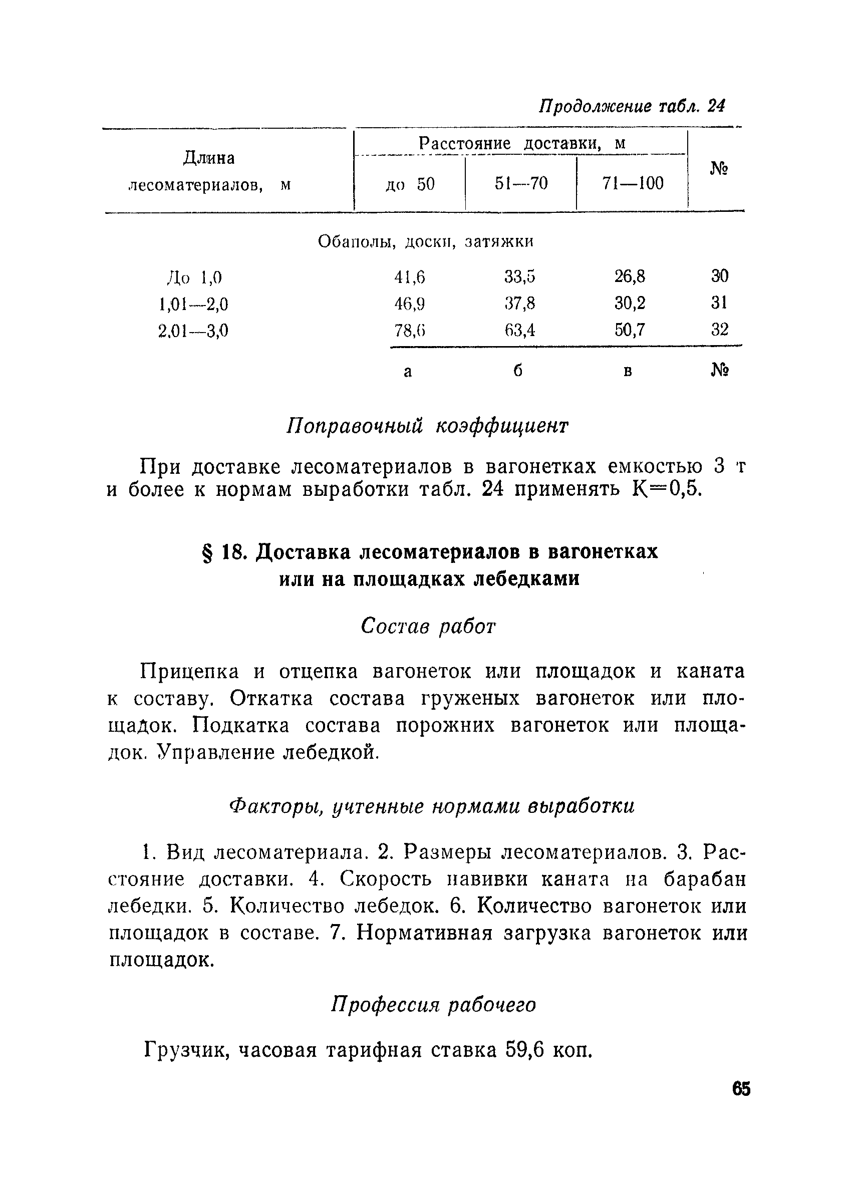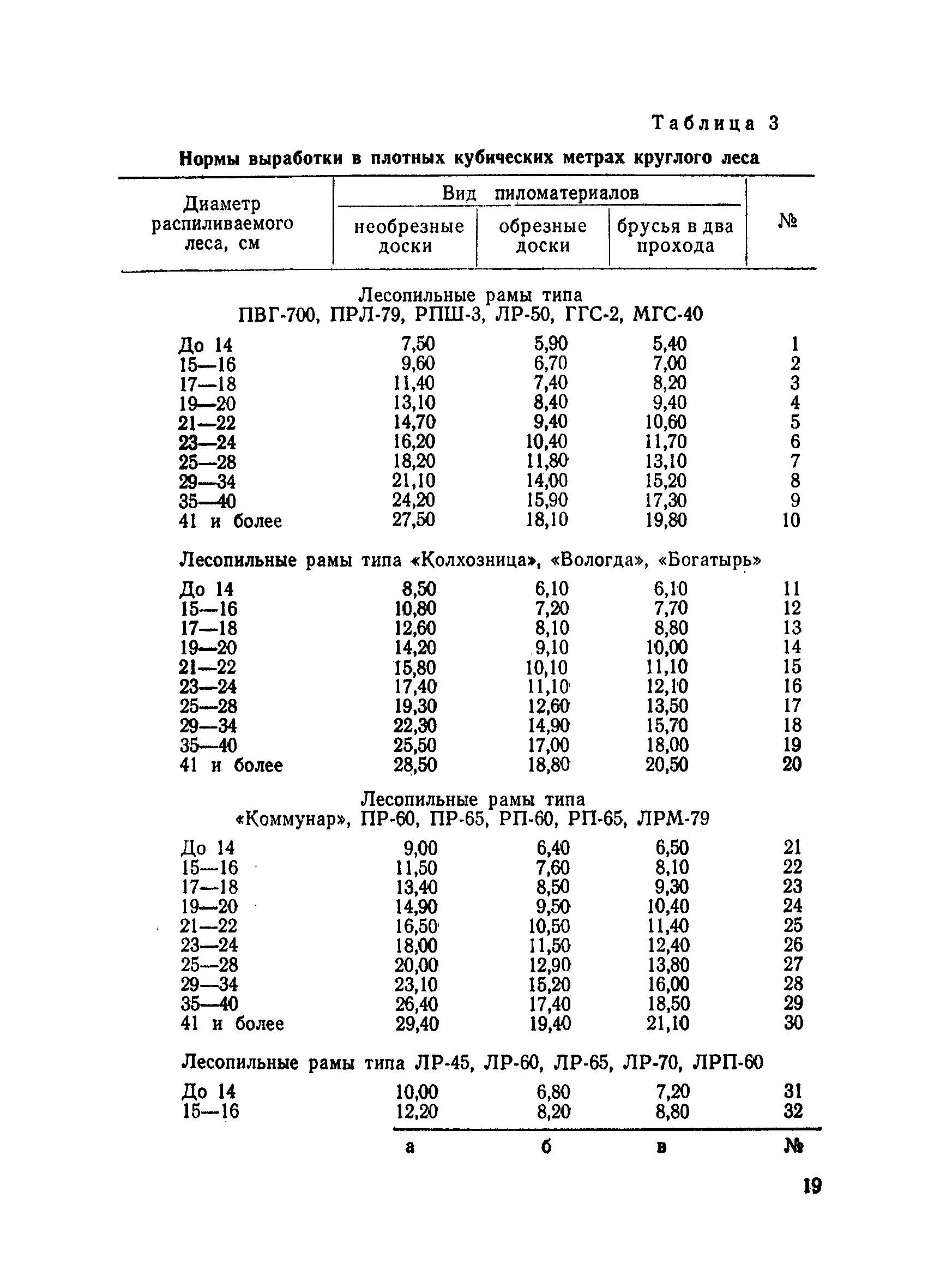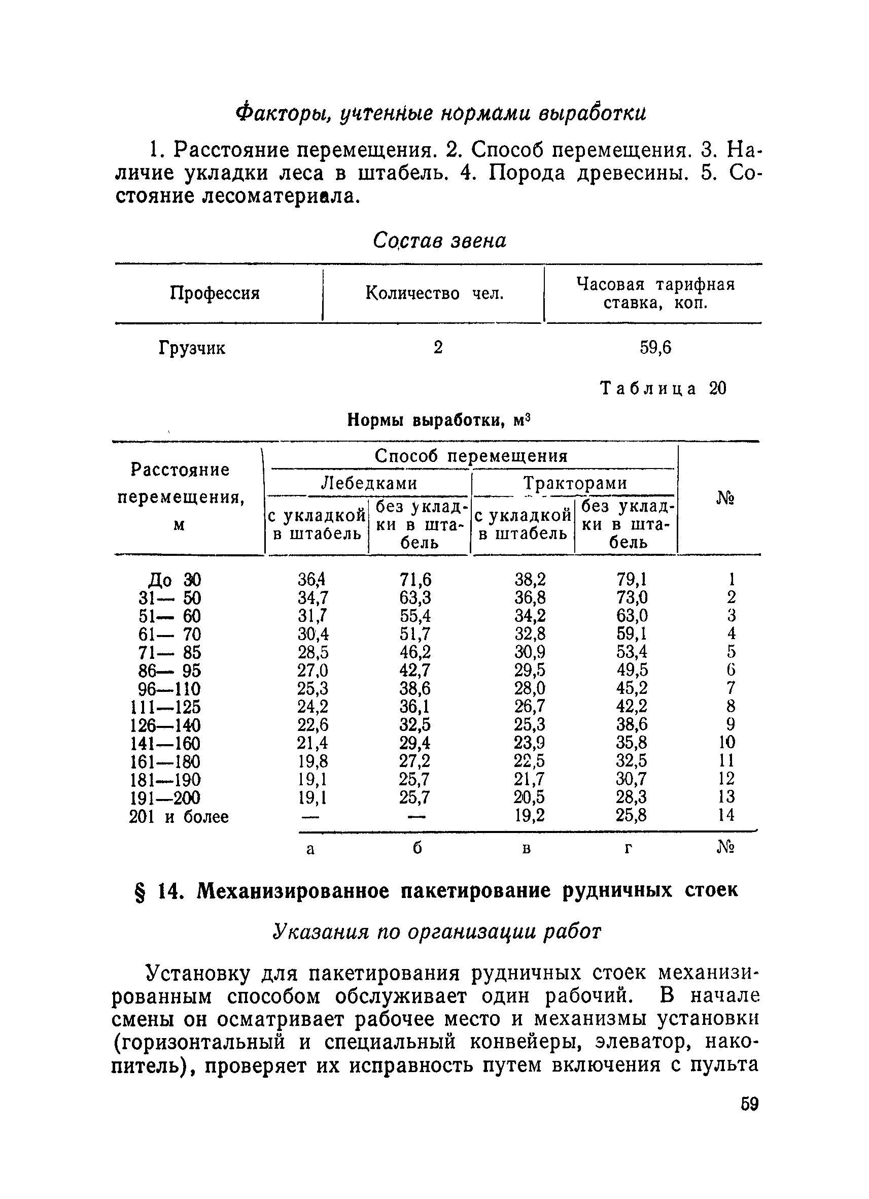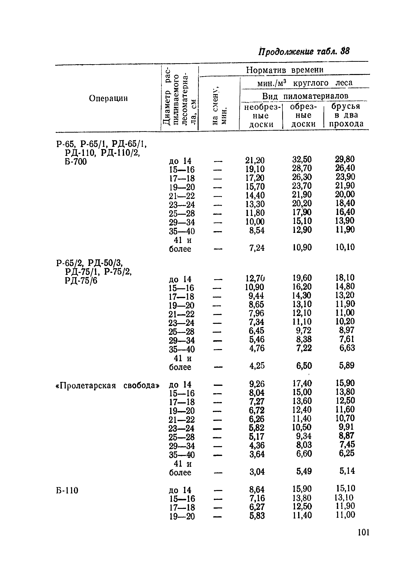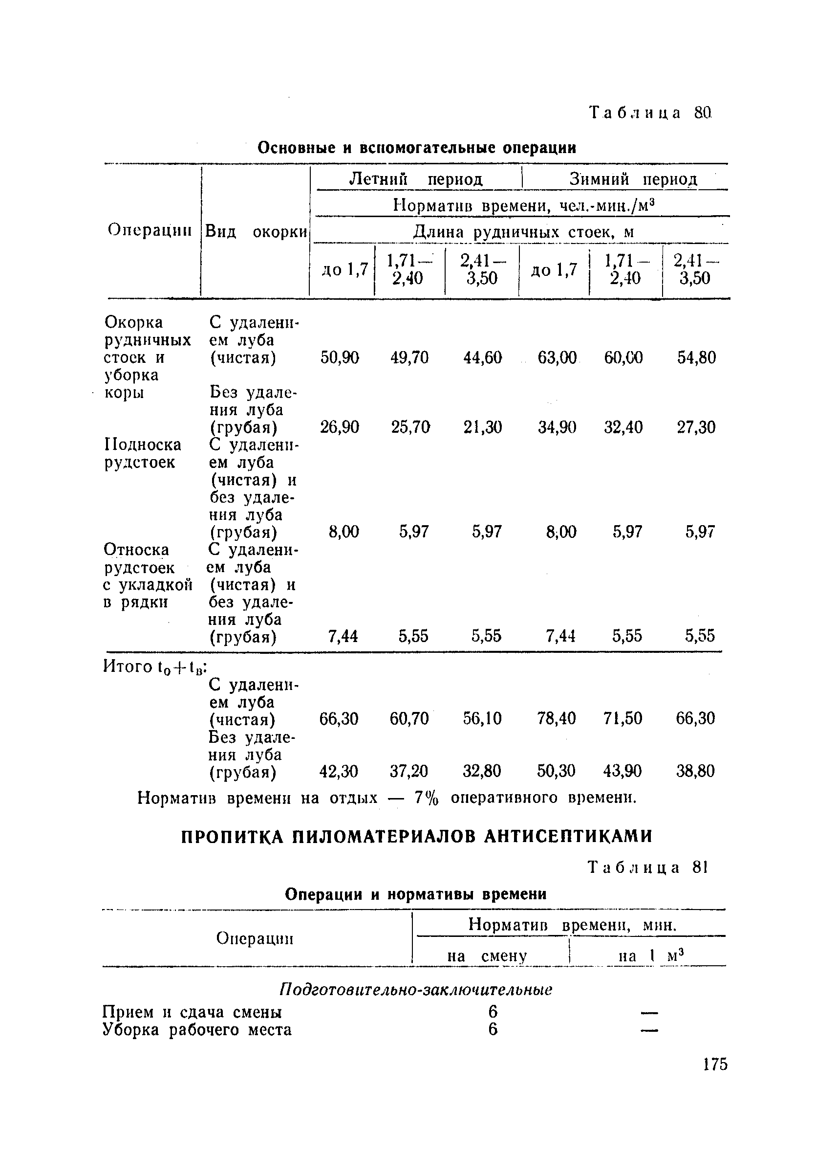 Типовые нормы выработки на переработку лесоматериалов на лесных складах предприятий (организаций) угольной промышленности| Статус: | справочные материалы, мп, тпр | | Название рус.: | Типовые нормы выработки на переработку лесоматериалов на лесных складах предприятий (организаций) угольной промышленности | | Дата добавления в базу: | 01.01.2019 | | Дата актуализации: | 01.01.2021 | | Область применения: | Типовые нормы рекомендуются для использования в качестве основы при разработке Единых отраслевых и бассейновых норм выработки, а также для применения на предприятиях и в организациях как местных технически обоснованных норм после утверждения их руководителем по согласованию с соответствующим комитетом профсоюза и нормативно-исследовательской станцией комбината (треста). Материалы сборника могут быть использованы научно-исследовательскими и проектными организациями, изучающими вопросы организации и нормирования труда | | Оглавление: | Порядок применения типовых норм Общая часть Раздел I. Разгрузочные работы § 1. Выгрузка лесоматериалов кранами из железнодорожного подвижного состава § 2. Выгрузка лесоматериалов из железнодорожного подвижного состава вручную или с применением простейших приспособлений Раздел II. Механизированное лесопиление и разделка леса § 3. Распиловка леса па лесопильных рамах § 4. Разборка и установка поставов рамных пил § 5. Продольная распиловка леса на круглопильных станках § 6. Заготовка рудничных стоек на круглопильных станках § 7. Заготовка рудничных стоек ручными электро- или бензопилами § 8. Поперечная распиловка пиломатериалов (досок, обаполов, затяжек, распилов, брусьев, шпал) на круглопильных станках Раздел III. Транспортно-перевалочные и вспомогательные работы § 9. Перемещение лесоматериалов кранами по территории склада § 10. Погрузка лесоматериалов кранами на автомашины (тракторные прицепы) § 11. Погрузка лесоматериалов на автомашины (тракторные прицепы) и выгрузка их вручную или с применением простейших приспособлений § 12. Перемещение леса автопогрузчиками § 13. Сортировка и перемещение круглого леса лебедками или тракторами § 14. Механизированное пакетирование рудничных стоек § 15. Сортировка незаштабелированных лесоматериалов вручную с формированием пакетов или с укладкой в контейнеры § 16. Погрузка лесоматериалов в вагонетки или на площадки немеханизированным способом § 17. Доставка лесоматериалов в вагонетках или на площадках немеханизированным способом § 18. Доставка лесоматериалов в вагонетках или на площадках лебедками § 19. Доставка лесоматериалов конвейерами § 20. Штабелировка круглого леса и рудничного долготья лебедками Раздел IV. Прочие работы § 21. Окорка рудничных стоек на механическом станке § 22. Окорка рудничных стоек вручную § 23. Пропитка пиломатериалов антисептиками § 24. Заточка рамных пил на суппортном станке ТчПА-3 § 25. Нарезка, заточка круглых, рамных и цепных пил на наждачном станке. Развод зубьев и правка пил § 26. Разные работы на лесном складе § 27. Вывозка отходов и мусора Раздел V. Расчетные нормативы времени по операциям или группам операций рабочих процессов Выгрузка лесоматериалов кранами из железнодорожного подвижного состава Выгрузка лесоматериалов из железнодорожного подвижного состава вручную или с применением простейших приспособлений Распиловка леса на лесопильны