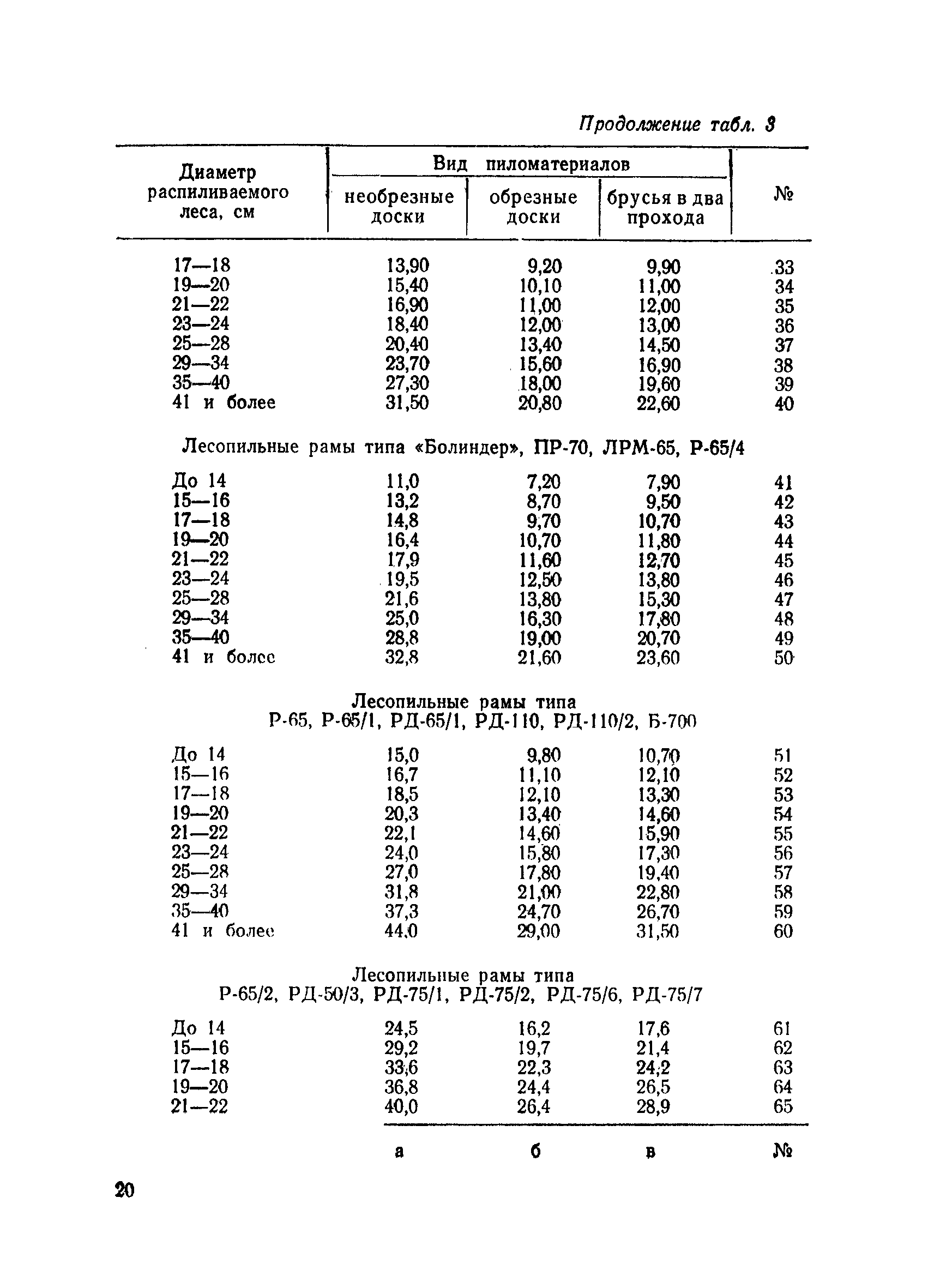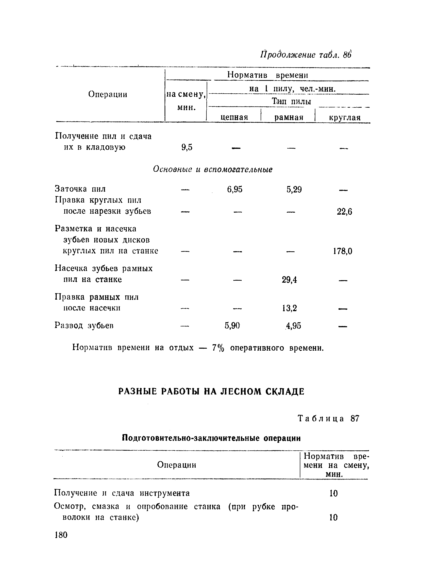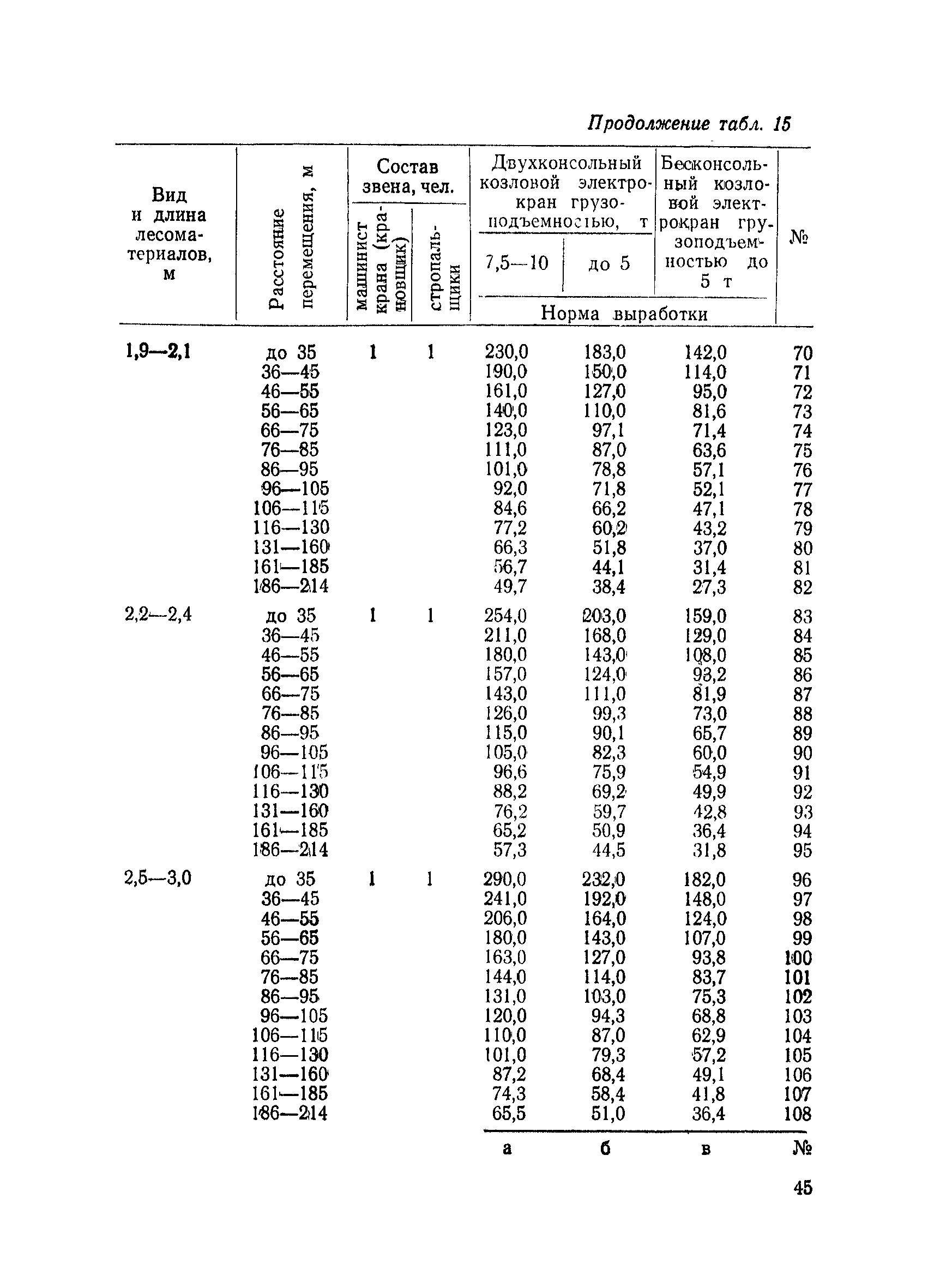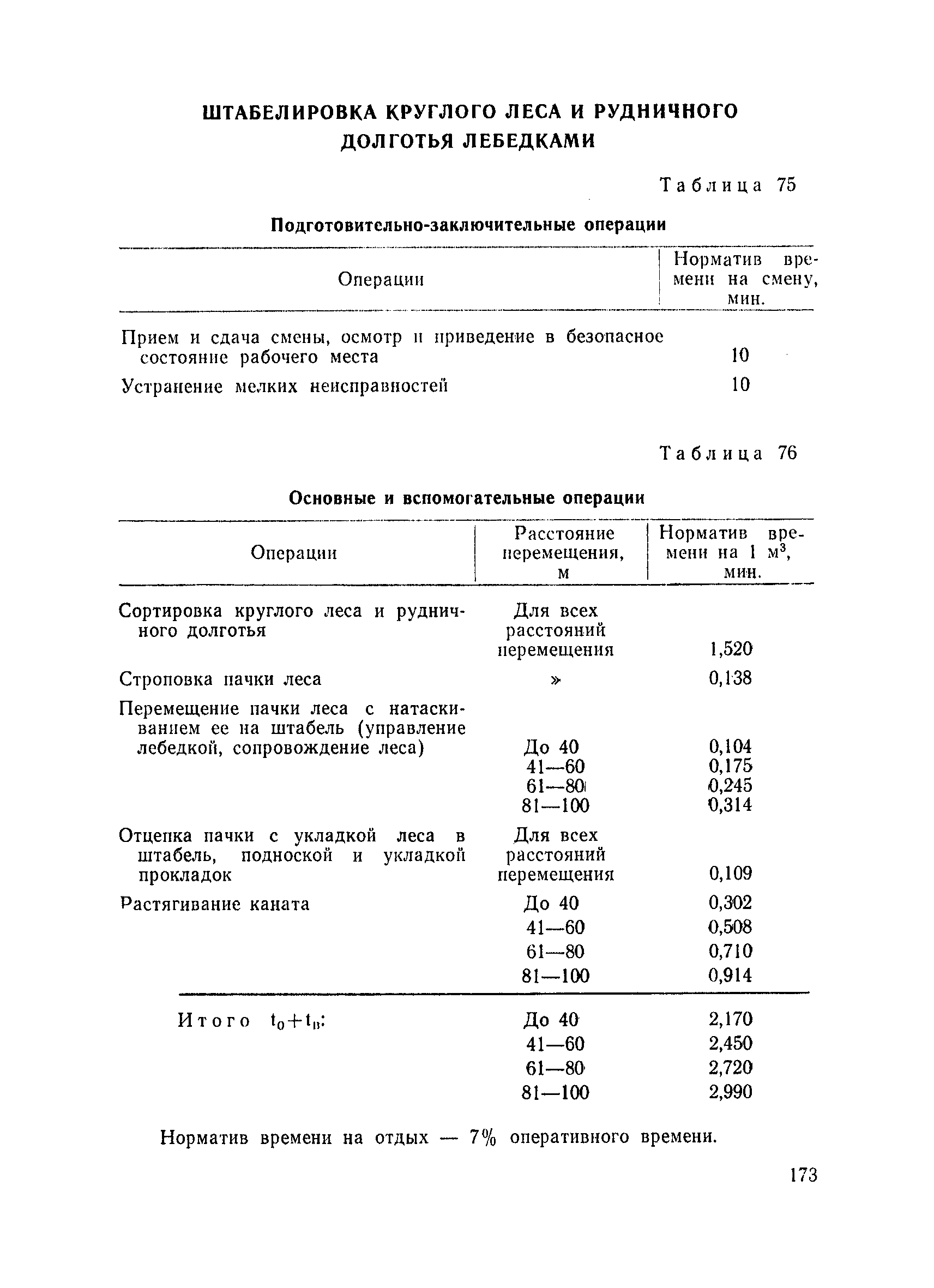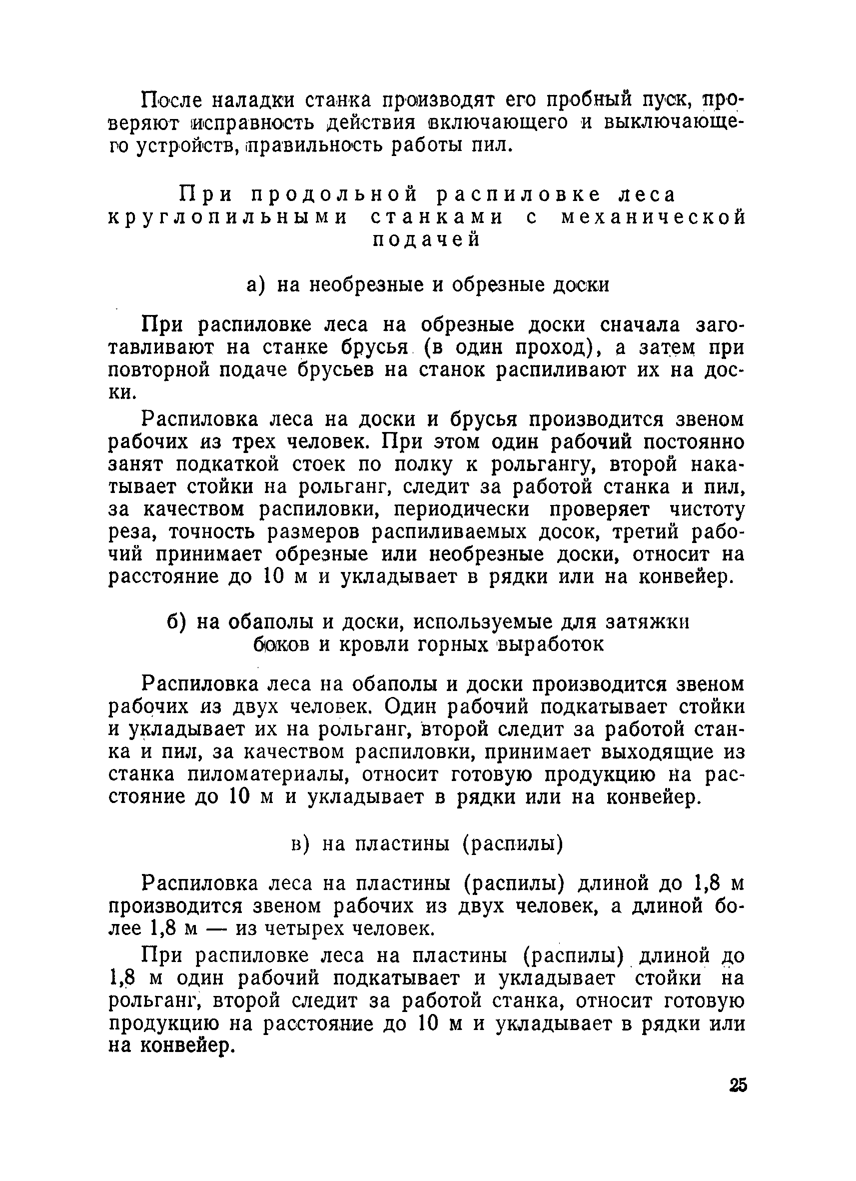 Типовые нормы выработки на переработку лесоматериалов на лесных складах предприятий (организаций) угольной промышленности| Статус: | справочные материалы, мп, тпр | | Название рус.: | Типовые нормы выработки на переработку лесоматериалов на лесных складах предприятий (организаций) угольной промышленности | | Дата добавления в базу: | 01.01.2019 | | Дата актуализации: | 01.01.2021 | | Область применения: | Типовые нормы рекомендуются для использования в качестве основы при разработке Единых отраслевых и бассейновых норм выработки, а также для применения на предприятиях и в организациях как местных технически обоснованных норм после утверждения их руководителем по согласованию с соответствующим комитетом профсоюза и нормативно-исследовательской станцией комбината (треста). Материалы сборника могут быть использованы научно-исследовательскими и проектными организациями, изучающими вопросы организации и нормирования труда | | Оглавление: | Порядок применения типовых норм Общая часть Раздел I. Разгрузочные работы § 1. Выгрузка лесоматериалов кранами из железнодорожного подвижного состава § 2. Выгрузка лесоматериалов из железнодорожного подвижного состава вручную или с применением простейших приспособлений Раздел II. Механизированное лесопиление и разделка леса § 3. Распиловка леса па лесопильных рамах § 4. Разборка и установка поставов рамных пил § 5. Продольная распиловка леса на круглопильных станках § 6. Заготовка рудничных стоек на круглопильных станках § 7. Заготовка рудничных стоек ручными электро- или бензопилами § 8. Поперечная распиловка пиломатериалов (досок, обаполов, затяжек, распилов, брусьев, шпал) на круглопильных станках Раздел III. Транспортно-перевалочные и вспомогательные работы § 9. Перемещение лесоматериалов кранами по территории склада § 10. Погрузка лесоматериалов кранами на автомашины (тракторные прицепы) § 11. Погрузка лесоматериалов на автомашины (тракторные прицепы) и выгрузка их вручную или с применением простейших приспособлений § 12. Перемещение леса автопогрузчиками § 13. Сортировка и перемещение круглого леса лебедками или тракторами § 14. Механизированное пакетирование рудничных стоек § 15. Сортировка незаштабелированных лесоматериалов вручную с формированием пакетов или с укладкой в контейнеры § 16. Погрузка лесоматериалов в вагонетки или на площадки немеханизированным способом § 17. Доставка лесоматериалов в вагонетках или на площадках немеханизированным способом § 18. Доставка лесоматериалов в вагонетках или на площадках лебедками § 19. Доставка лесоматериалов конвейерами § 20. Штабелировка круглого леса и рудничного долготья лебедками Раздел IV. Прочие работы § 21. Окорка рудничных стоек на механическом станке § 22. Окорка рудничных стоек вручную § 23. Пропитка пиломатериалов антисептиками § 24. Заточка рамных пил на суппортном станке ТчПА-3 § 25. Нарезка, заточка круглых, рамных и цепных пил на наждачном станке. Развод зубьев и правка пил § 26. Разные работы на лесном складе § 27. Вывозка отходов и мусора Раздел V. Расчетные нормативы времени по операциям или группам операций рабочих процессов Выгрузка лесоматериалов кранами из железнодорожного подвижного состава Выгрузка лесоматериалов из железнодорожного подвижного состава вручную или с применением простейших приспособлений Распиловка леса на лесопильны