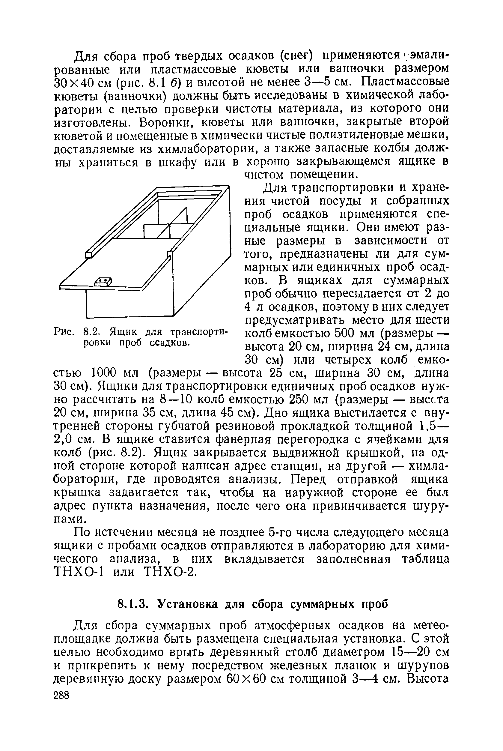 Руководство по контролю загрязнения атмосферы (редакция 1979 года)| Статус: | заменен | | Название рус.: | Руководство по контролю загрязнения атмосферы (редакция 1979 года) | | Дата добавления в базу: | 01.01.2019 | | Дата актуализации: | 01.01.2021 | | Область применения: | В Руководстве обобщен накопленный опыт по организации работы в области охраны воздушного бассейна с учетом современного уровня научных исследований в СССР и за рубежом. Руководство предназначено санитарно-эпидемиологической службе, станциям и постам управлений гидрометеорологической службы для организации и проведения работ по определению загрязнения атмосферы, обобщению и использованию полученного материала. В нем содержатся методические рекомендации по выбору расположения постов наблюдения, их оснащению, методике отбора и химического анализа проб воздуха, обработке результатов определения загрязнения атмосферы | | Оглавление: | Глава 1. Организация наблюдений и контроля за загрязнением атмосферы 1.1. Общие положения 1.2. Организация наблюдений на стационарных постах 1.3. Организация наблюдений на маршрутных постах 1.4. Организация наблюдений в районе промышленных предприятий (подфакельные наблюдения) Глава 2. Комплексное обследование загрязнения атмосферы в городах 2.1. Организация комплексного обследования 2.2. Организация наблюдений за загрязнением атмосферы при проведении обследования 2.3. Организация метеорологических наблюдений 2.4. Вертикальное зондирование атмосферы 2.5. Наблюдения за загрязнением воздуха выхлопными газами от автотранспорта 2.6. Обобщение результатов комплексного обследования Глава 3. Отбор проб воздуха и метеорологические наблюдения 3.1. Отбор проб воздуха 3.2. Метеорологические наблюдения при отборах проб воздуха 3.3. Порядок проведения наблюдений на стационарном (маршрутном) посту Глава 4. Автоматические методы регистрации загрязнения атмосферы 4.1. Газоанализатор ГКП-1 4.2. Газоанализатор ГМК-3 Глава 5. Анализ атмосферного воздуха на содержание вредных веществ 5.1. Общие положения 5.2. Методы химического анализа 5.3. Расчет концентрации примесей по результатам анализа Глава 6. Формы сбора результатов наблюдений за загрязнением атмосферы и их обработка 6.1. Общие положения 6.2. Составление таблицы ТЗА-1 6.3. Составление таблицы ТЗА-2 6.4. Составление таблицы ТЗА-3 6.5. Составление таблицы ТЗА-4 6.6. Специальная обработка результатов подфакельных наблюдений Глава 7. Обработка данных наблюдений за загрязнением атмосферы на ЭВМ 7.1. Порядок сбора, обработки и распространения данных 7.2. Кодирование результатов наблюдений 7.3. Перфорация результатов наблюдений 7.4. Обработка результатов наблюдений на ЭВМ Глава 8. Определение химического состава осадков 8.1. Сбор проб атмосферных осадков 8.2. Методы анализа проб атмосферных осадков Глава 9. Наблюдения за фоновым загрязнением атмосферы все населенных пунктов 9.1. Цели и задачи наблюдений 9.2. Определение аэрозольной мутности атмосферы по данным спектральных актинометрических наблюдений 9.3. Наблюдения по актинометру АТ-50 с фильтрами Глава 10. Сбор и обобщение данных о выбросах вредных веществ в атмосферу 10.1. Промышленные выбросы вредных веществ 10.2. Выбросы вредных веществ от автотранспорта 10.3. Содержание отчета о выбросах 10.4. Регулирование выбросов вредных веществ в атмосферу Глава 11. Обобщение результатов наблюдений за заг