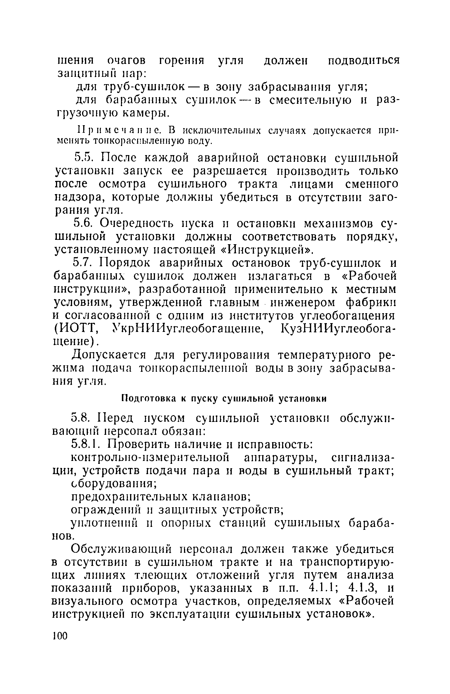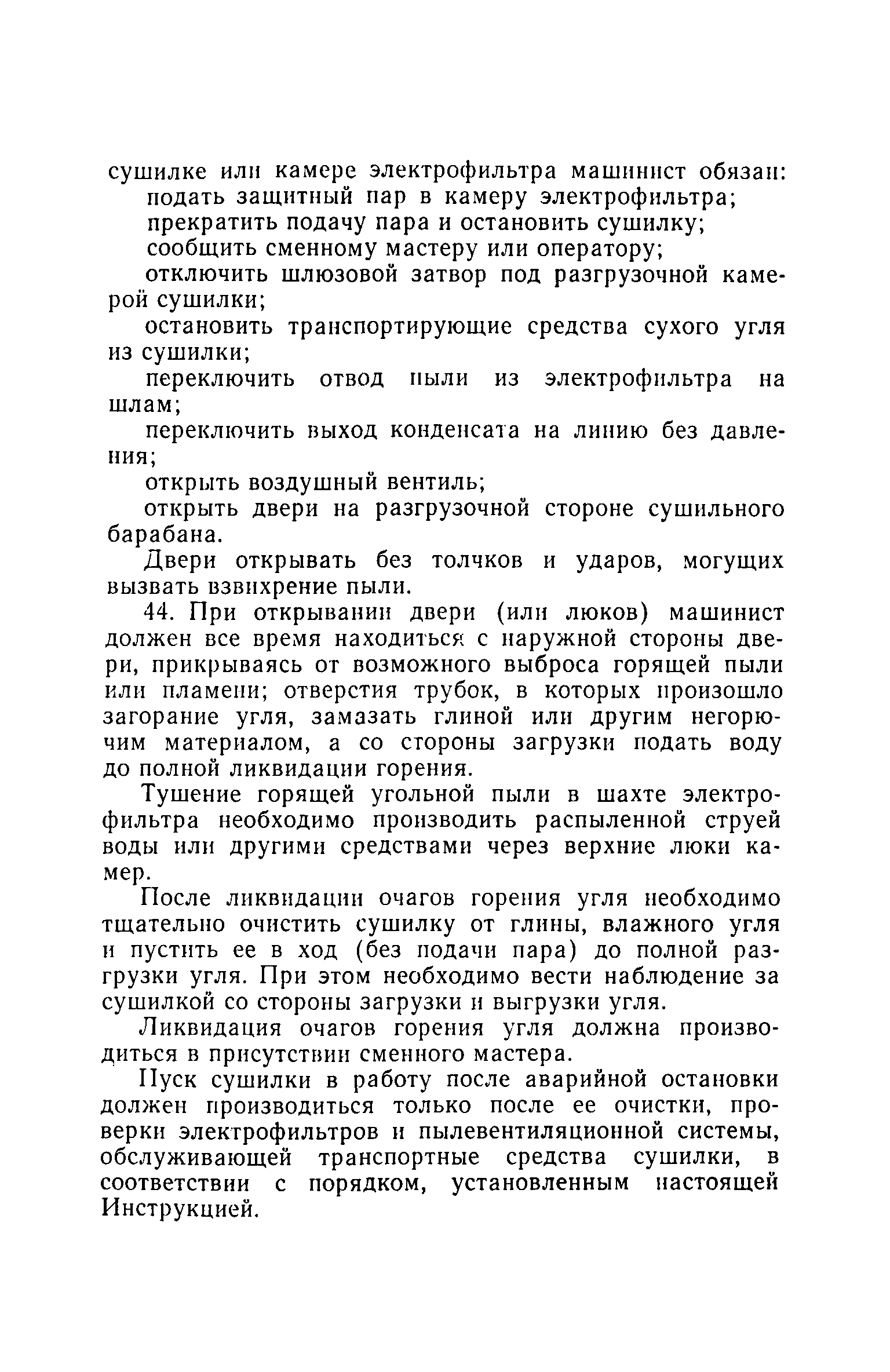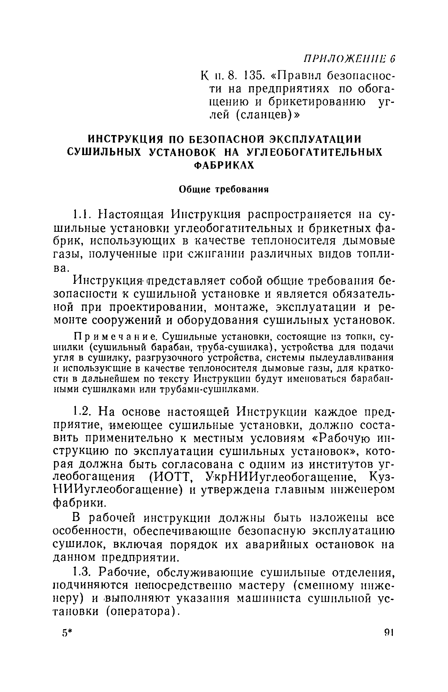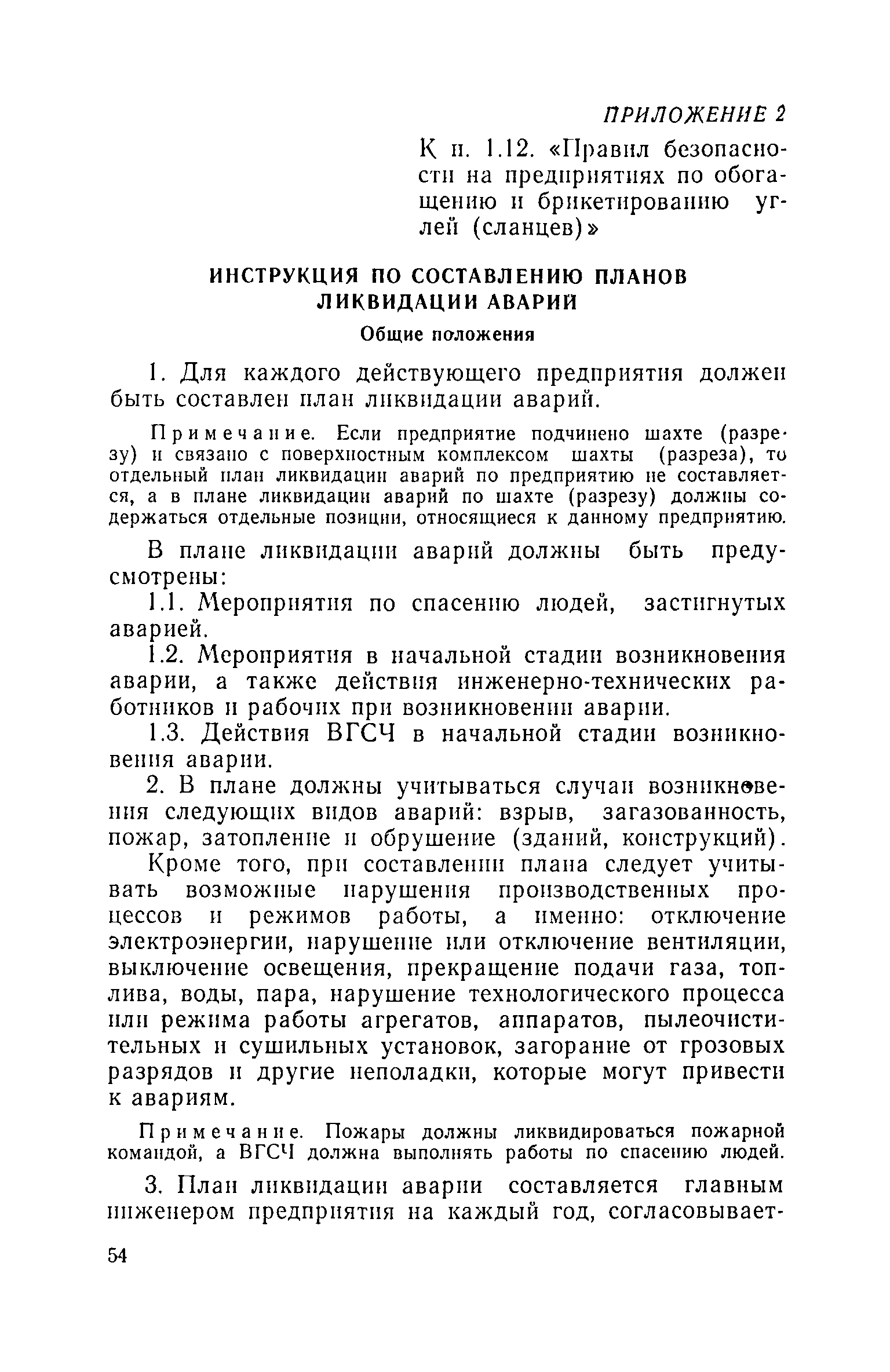 | Оглавление: | 1. Общие требования 2. Классификация помещений и требования к промплощадке предприятий 3. Приемка, погрузка и складирование угля Приемка рядового угля Погрузка и складирование угля 4. Породное хозяйство 5. Фабричный транспорт Внутрифабричный транспорт Грузоподъемные средства 6. Обогащение, рассортировка н брикетирование угля Обогащение н рассортировка Брикетирование Ремонт оборудования 7. Обезвоживание, водно-шламовое хозяйство 8. Сушка угля на обогатительных в брикетных фабриках 9. Электротехническое хозяйство Общие требования Электросиловое оборудование и подстанции. Заземление Освещение 10. Отопление 11. Пылегазовый режим и противопожарная защита Общие требования по борьбе с газом в пылью Вентиляция Контроль за состоянием внутрифабричной атмосферы Меры противопожарной защиты 12. Общие санитарные правила Общие требования Санитарно-бытовые помещения Питьевое и техническое водоснабжение Медицинская помощь 13. Ответственность за нарушение правил безопасности . Приложение 1. Журнал учета трудящихся, прошедших предварительное обучение по технике безопасности. Приложение 2. Инструкция по составлению планов ликвидации аварий Приложение 3. Инструкция по обращению с токсичными продуктами Приложение 4. Инструкция по безопасной эксплуатации электрофильтров на углебрикетных фабриках. Приложение 5. Инструкция по производству огневых работ Приложение 6. Инструкция по безопасной эксплуатации сушильных установок на углеобогатительных фабриках Приложение 7. Инструкция по безопасной эксплуатации паровых трубчатых сушилок на буроугольных брикетных фабриках |