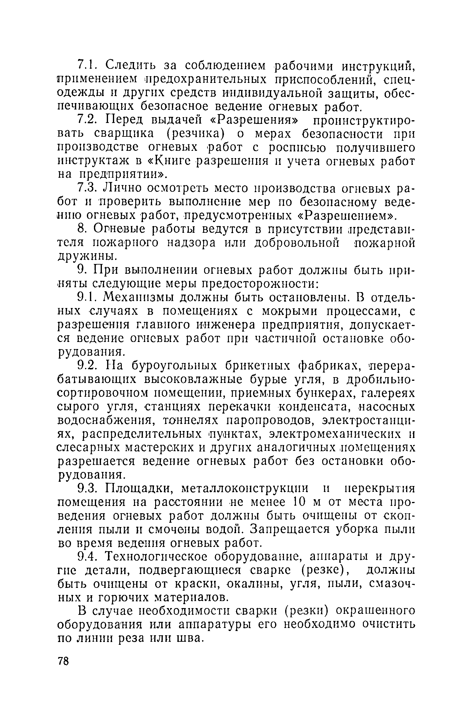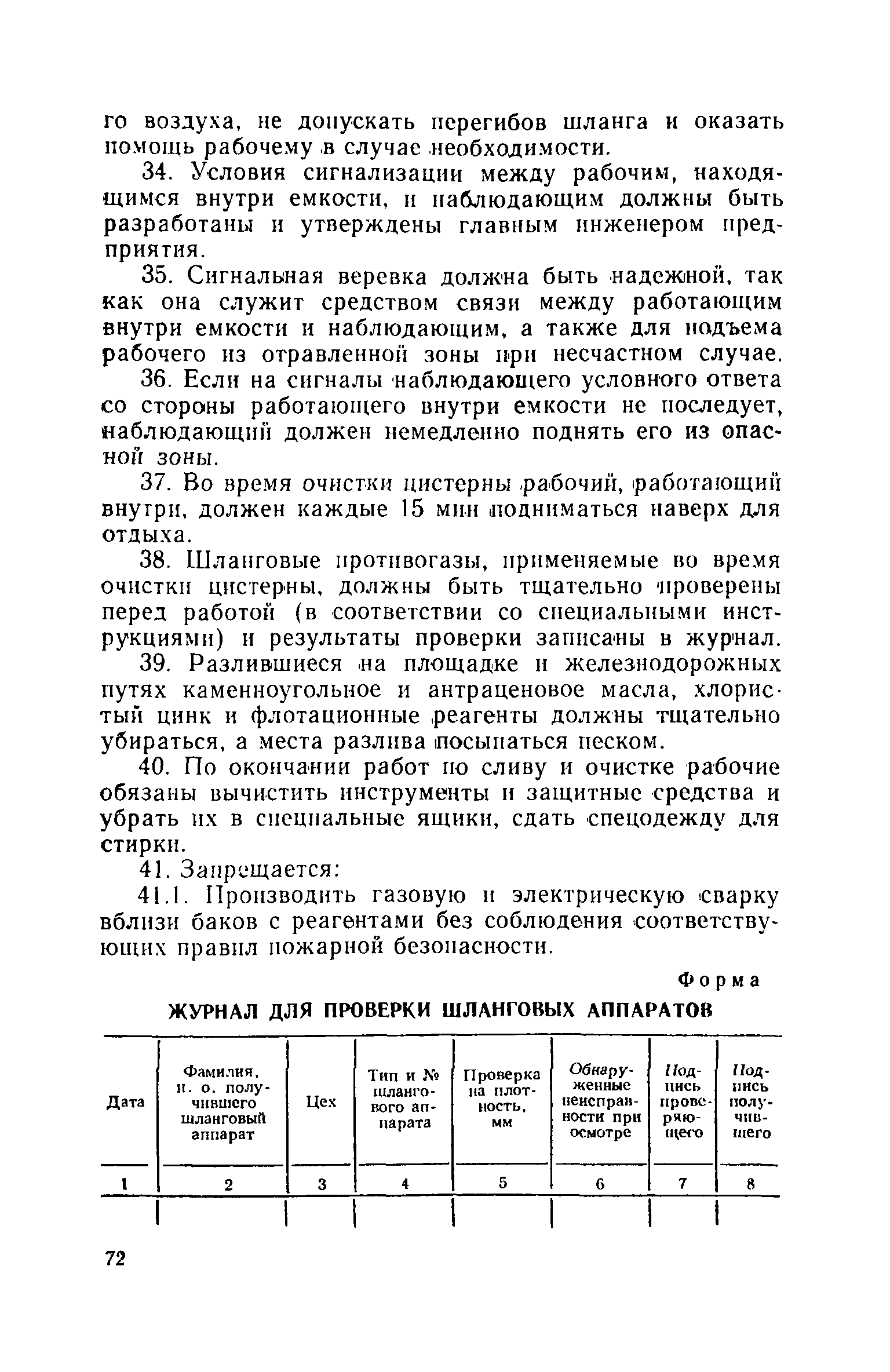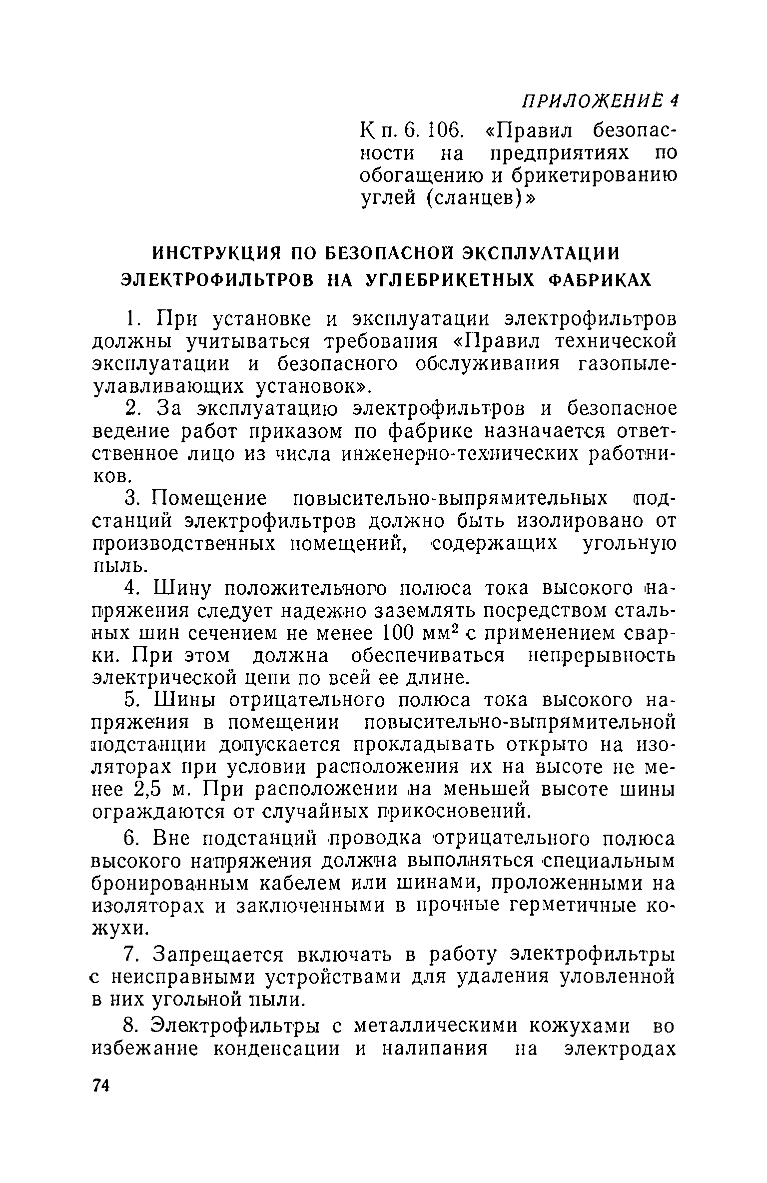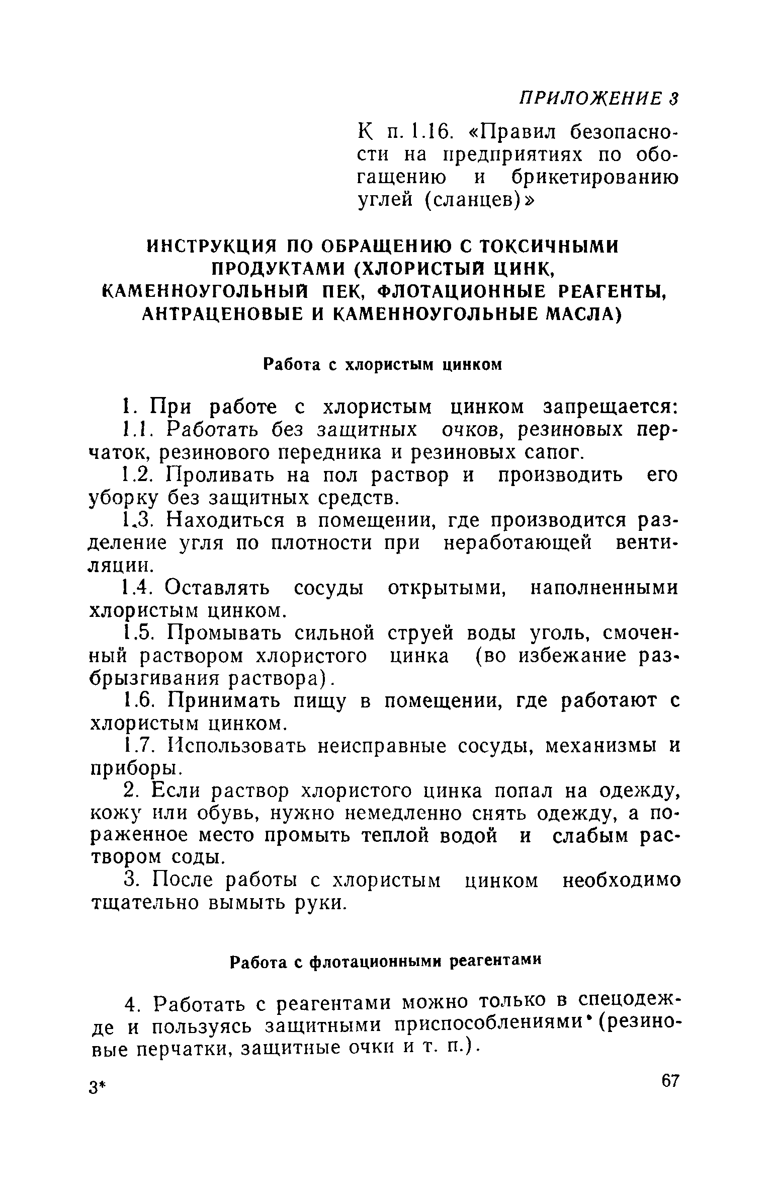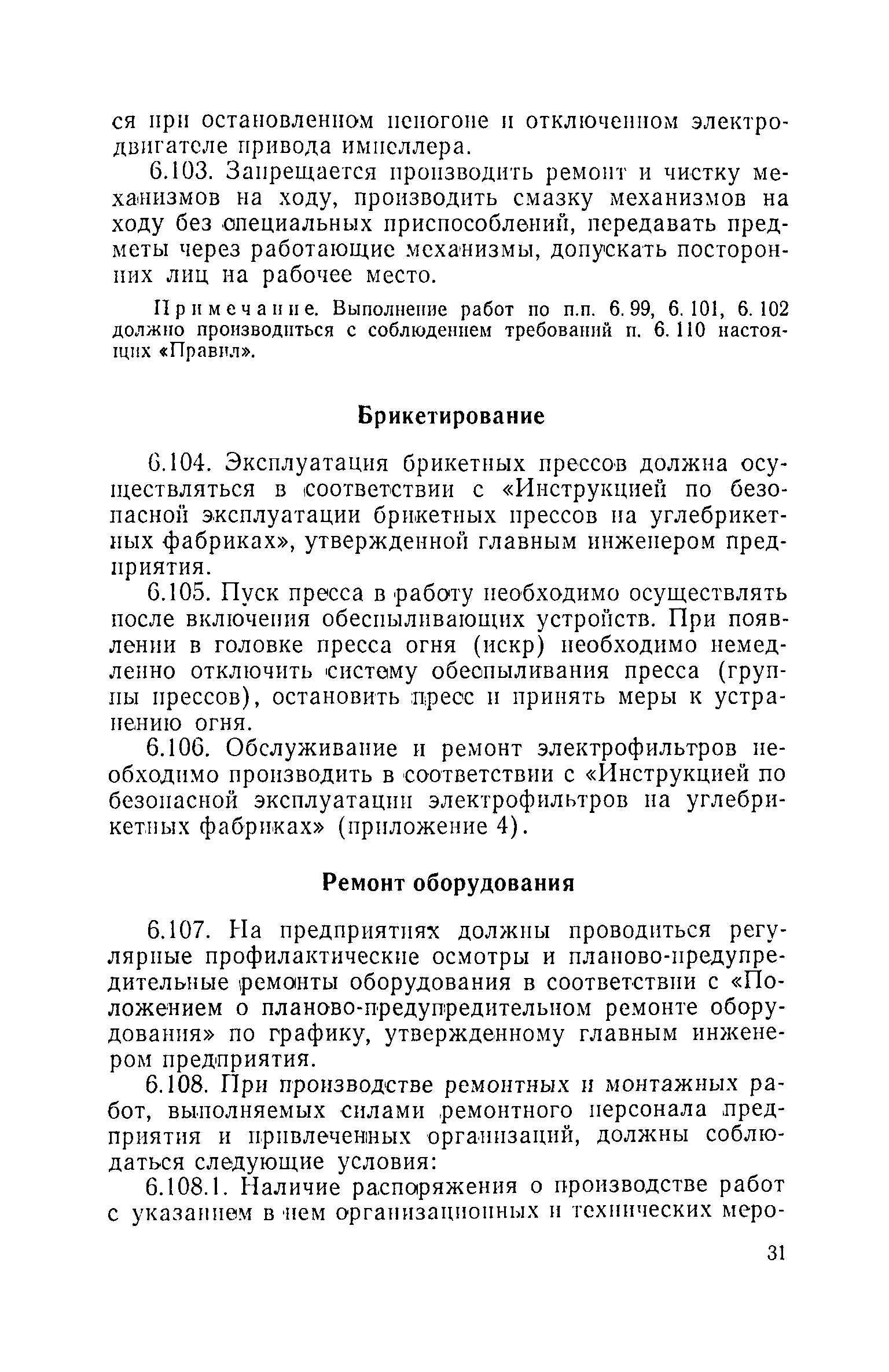 | Оглавление: | 1. Общие требования 2. Классификация помещений и требования к промплощадке предприятий 3. Приемка, погрузка и складирование угля Приемка рядового угля Погрузка и складирование угля 4. Породное хозяйство 5. Фабричный транспорт Внутрифабричный транспорт Грузоподъемные средства 6. Обогащение, рассортировка н брикетирование угля Обогащение н рассортировка Брикетирование Ремонт оборудования 7. Обезвоживание, водно-шламовое хозяйство 8. Сушка угля на обогатительных в брикетных фабриках 9. Электротехническое хозяйство Общие требования Электросиловое оборудование и подстанции. Заземление Освещение 10. Отопление 11. Пылегазовый режим и противопожарная защита Общие требования по борьбе с газом в пылью Вентиляция Контроль за состоянием внутрифабричной атмосферы Меры противопожарной защиты 12. Общие санитарные правила Общие требования Санитарно-бытовые помещения Питьевое и техническое водоснабжение Медицинская помощь 13. Ответственность за нарушение правил безопасности . Приложение 1. Журнал учета трудящихся, прошедших предварительное обучение по технике безопасности. Приложение 2. Инструкция по составлению планов ликвидации аварий Приложение 3. Инструкция по обращению с токсичными продуктами Приложение 4. Инструкция по безопасной эксплуатации электрофильтров на углебрикетных фабриках. Приложение 5. Инструкция по производству огневых работ Приложение 6. Инструкция по безопасной эксплуатации сушильных установок на углеобогатительных фабриках Приложение 7. Инструкция по безопасной эксплуатации паровых трубчатых сушилок на буроугольных брикетных фабриках |