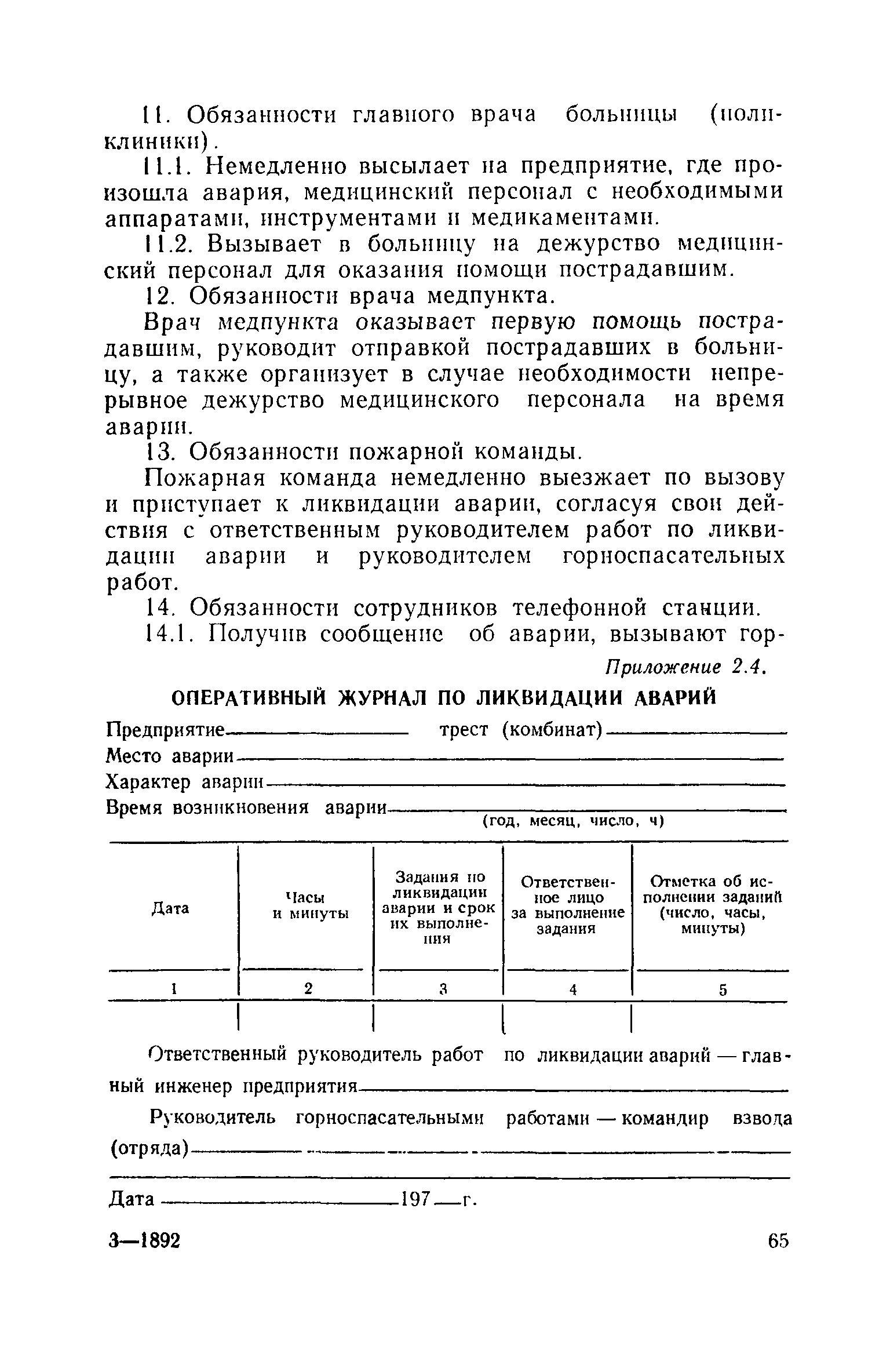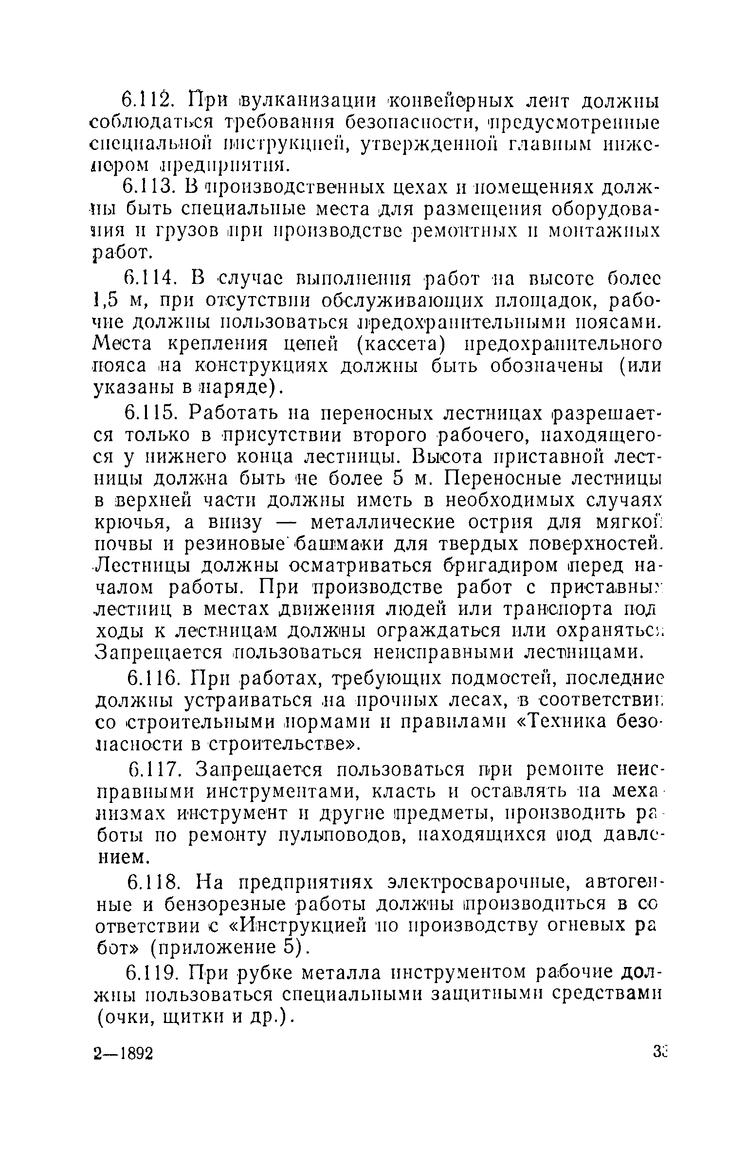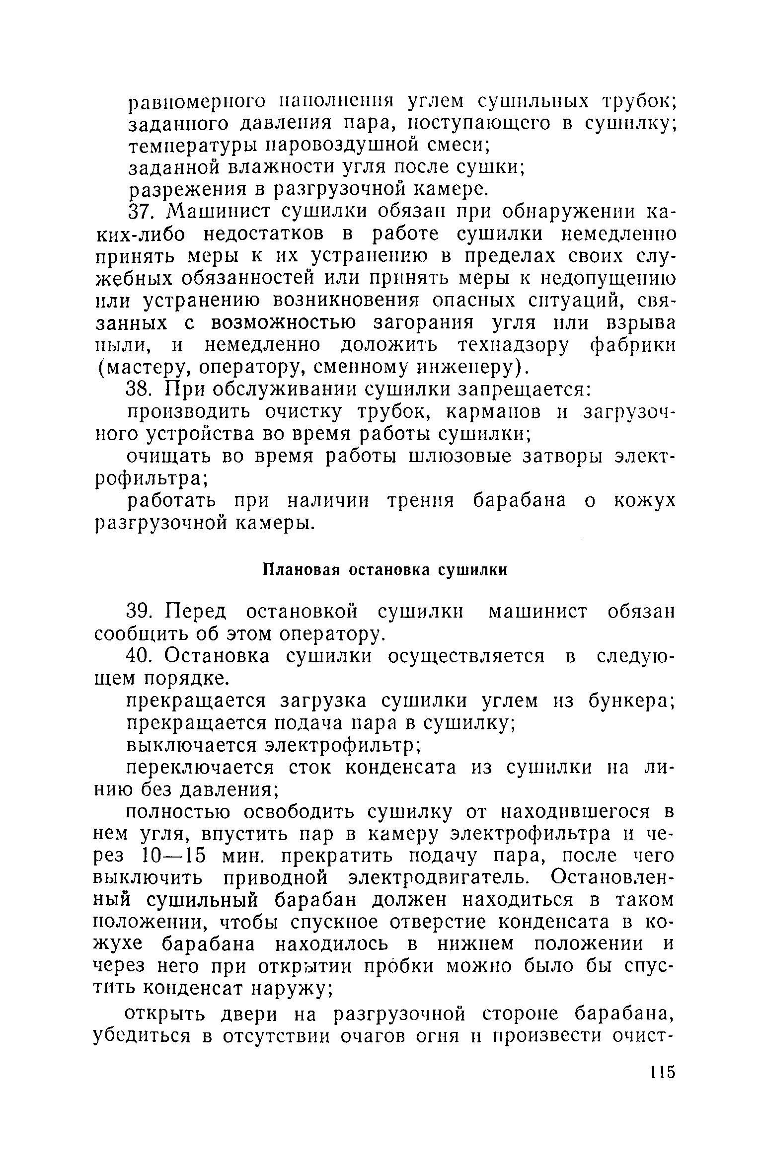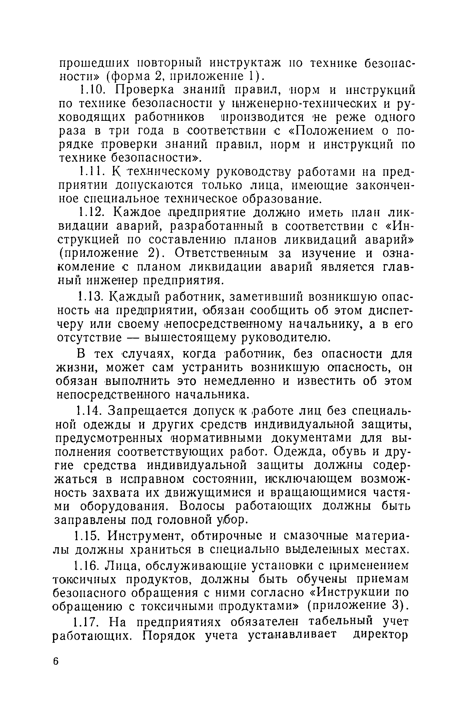 | Оглавление: | 1. Общие требования 2. Классификация помещений и требования к промплощадке предприятий 3. Приемка, погрузка и складирование угля Приемка рядового угля Погрузка и складирование угля 4. Породное хозяйство 5. Фабричный транспорт Внутрифабричный транспорт Грузоподъемные средства 6. Обогащение, рассортировка н брикетирование угля Обогащение н рассортировка Брикетирование Ремонт оборудования 7. Обезвоживание, водно-шламовое хозяйство 8. Сушка угля на обогатительных в брикетных фабриках 9. Электротехническое хозяйство Общие требования Электросиловое оборудование и подстанции. Заземление Освещение 10. Отопление 11. Пылегазовый режим и противопожарная защита Общие требования по борьбе с газом в пылью Вентиляция Контроль за состоянием внутрифабричной атмосферы Меры противопожарной защиты 12. Общие санитарные правила Общие требования Санитарно-бытовые помещения Питьевое и техническое водоснабжение Медицинская помощь 13. Ответственность за нарушение правил безопасности . Приложение 1. Журнал учета трудящихся, прошедших предварительное обучение по технике безопасности. Приложение 2. Инструкция по составлению планов ликвидации аварий Приложение 3. Инструкция по обращению с токсичными продуктами Приложение 4. Инструкция по безопасной эксплуатации электрофильтров на углебрикетных фабриках. Приложение 5. Инструкция по производству огневых работ Приложение 6. Инструкция по безопасной эксплуатации сушильных установок на углеобогатительных фабриках Приложение 7. Инструкция по безопасной эксплуатации паровых трубчатых сушилок на буроугольных брикетных фабриках |