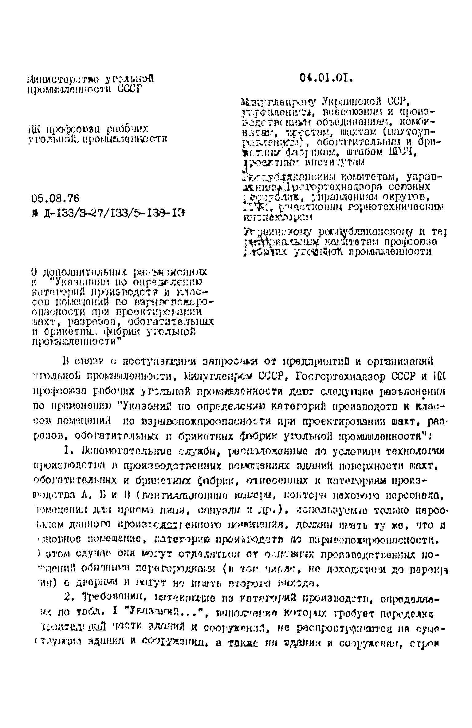 | Утверждён: | 13.03.1973 Госгортехнадзор СССР (USSR Gosgortekhnadzor ) 29.03.1973 Министерство угольной промышленности СССР (USSR Ministry of the Coal Industry )