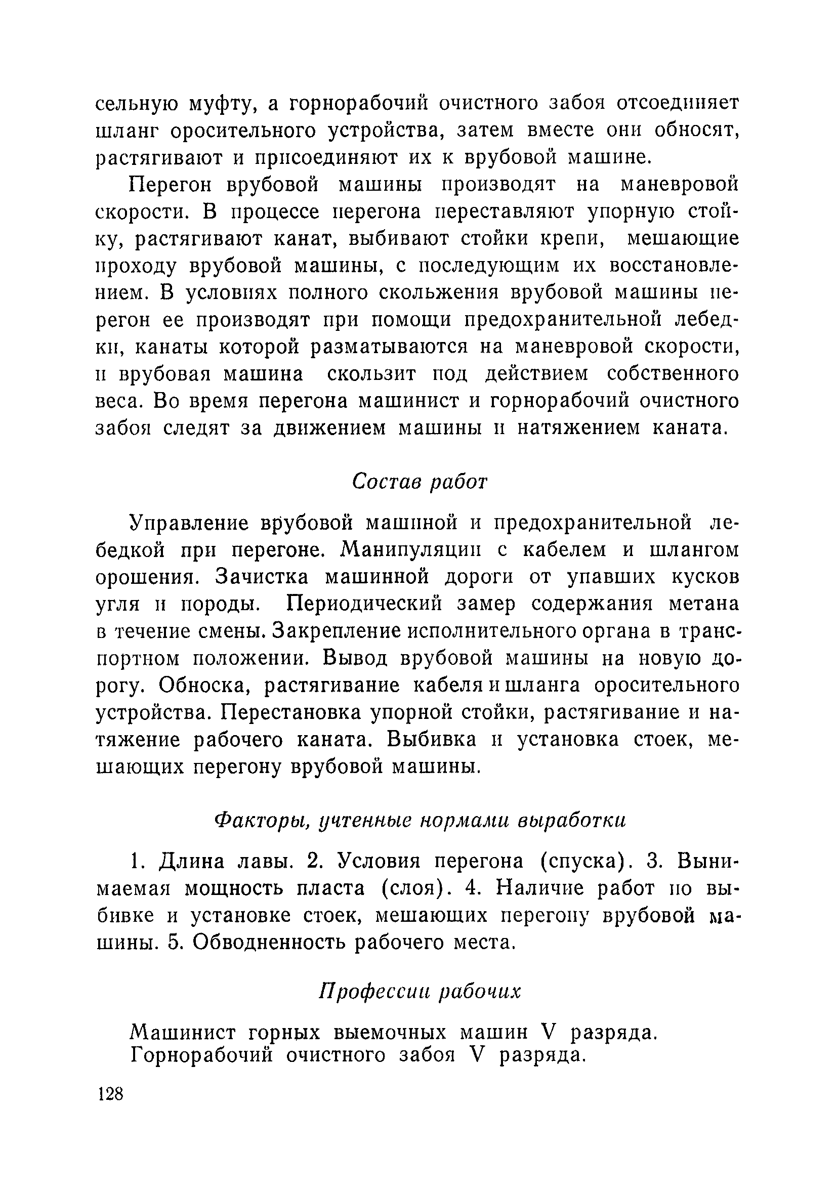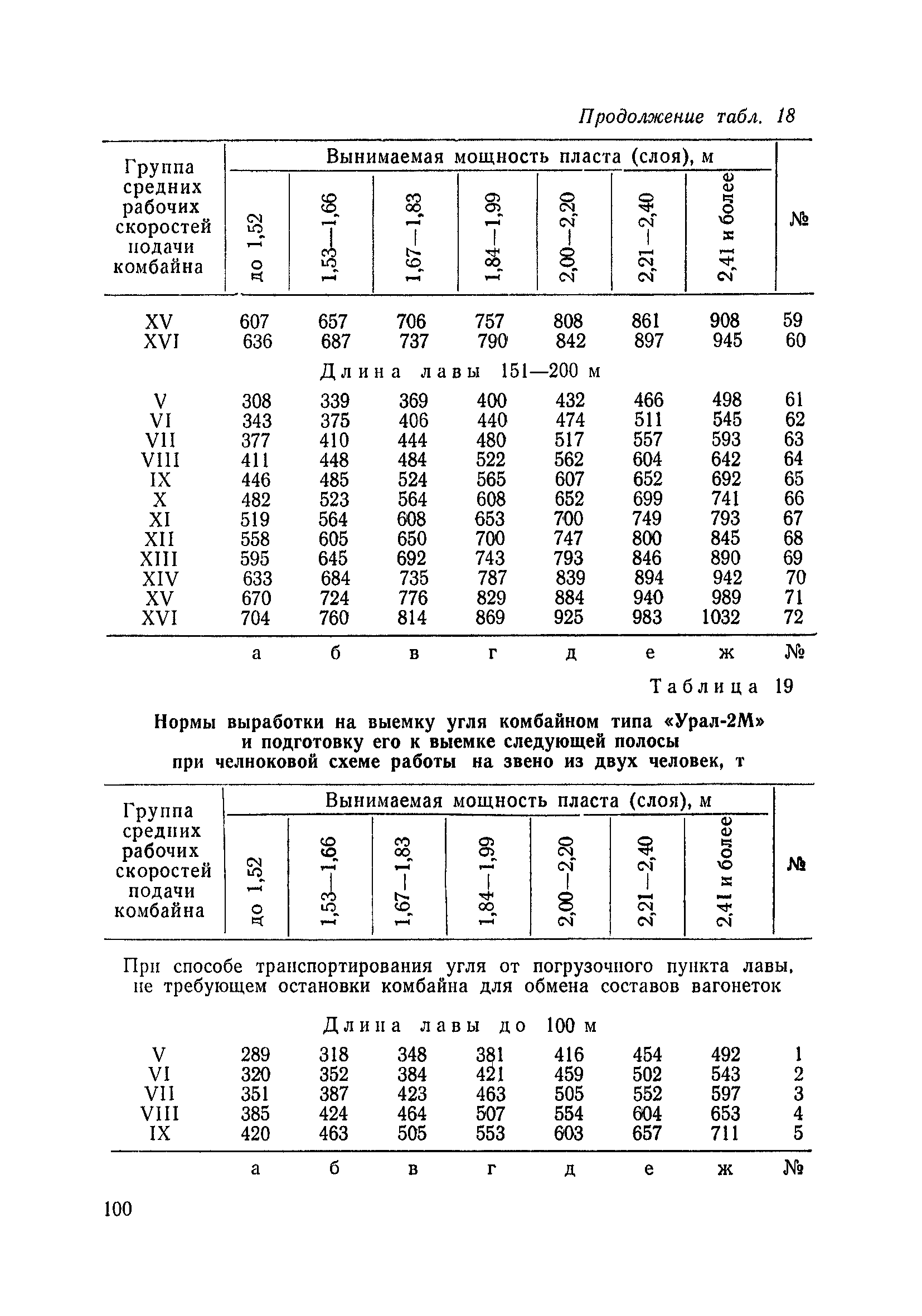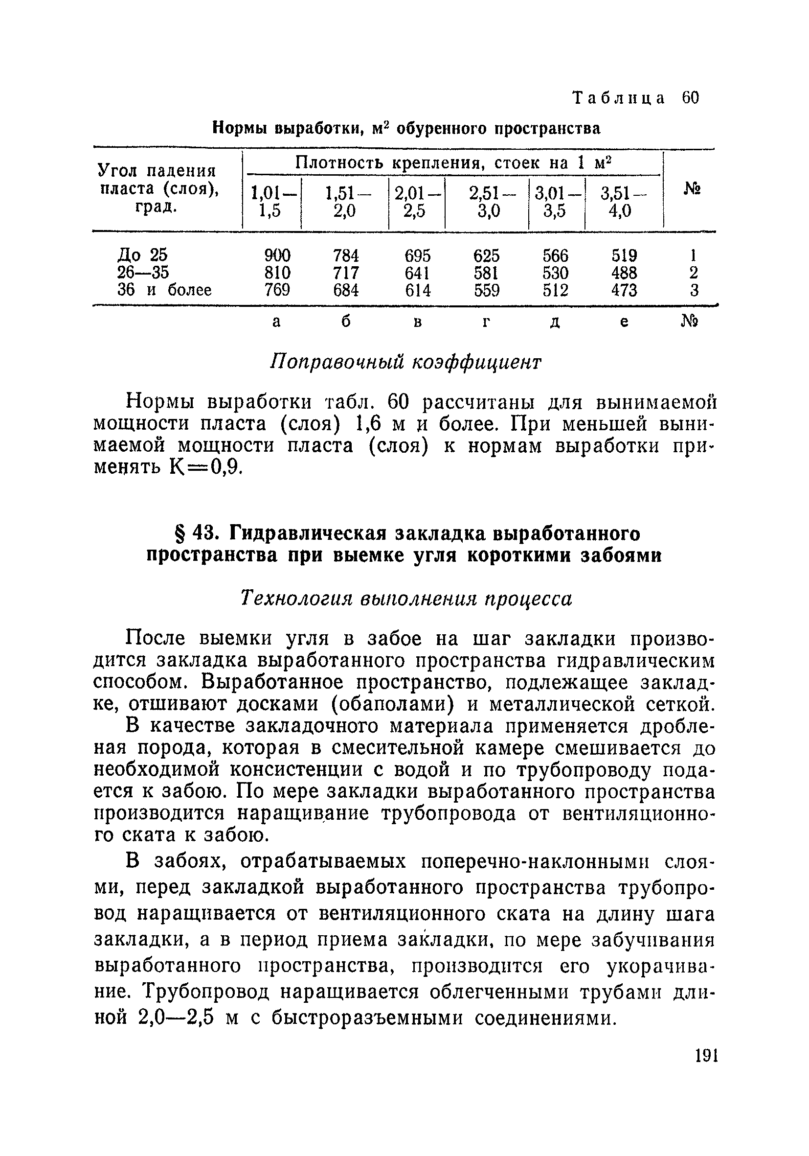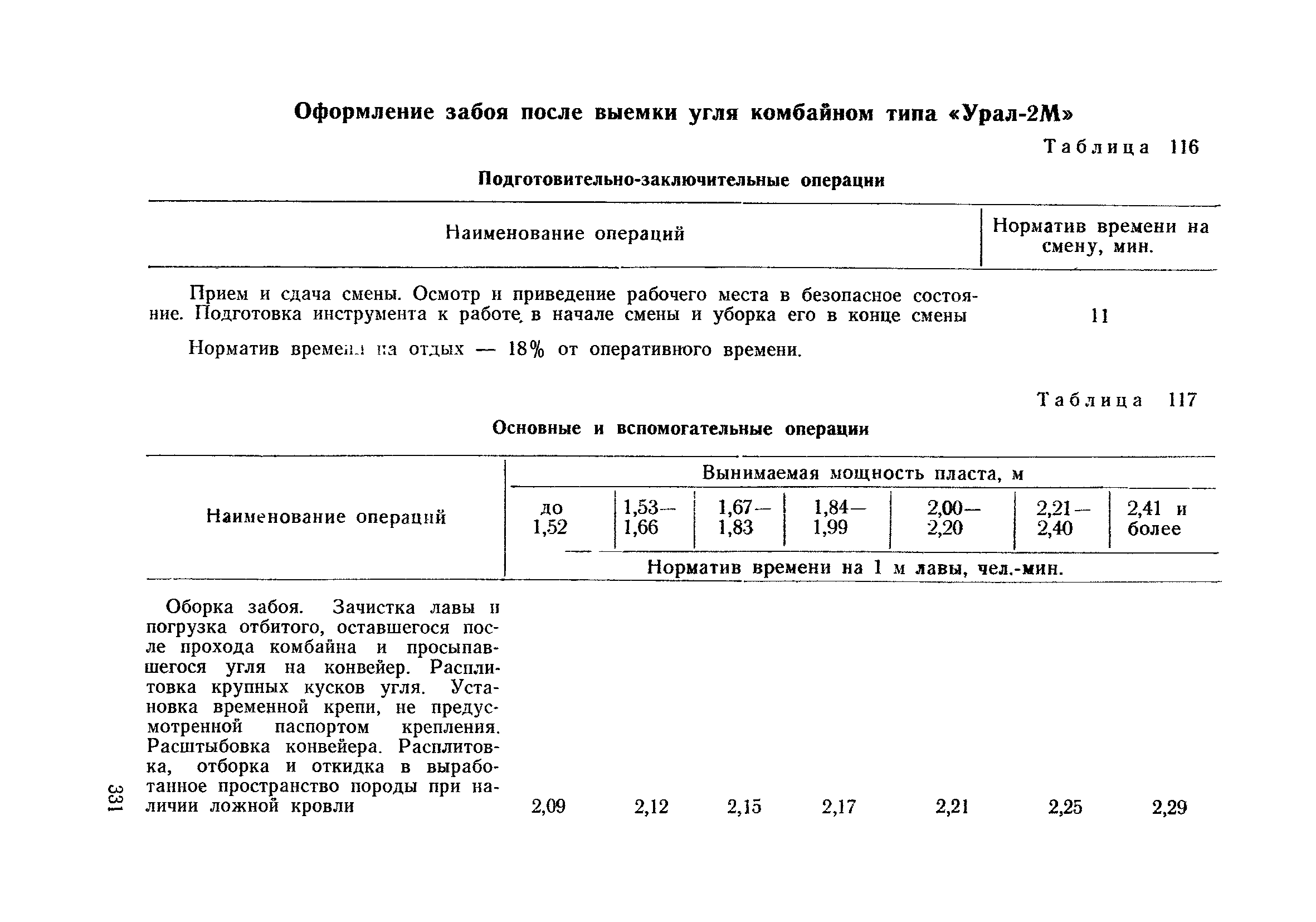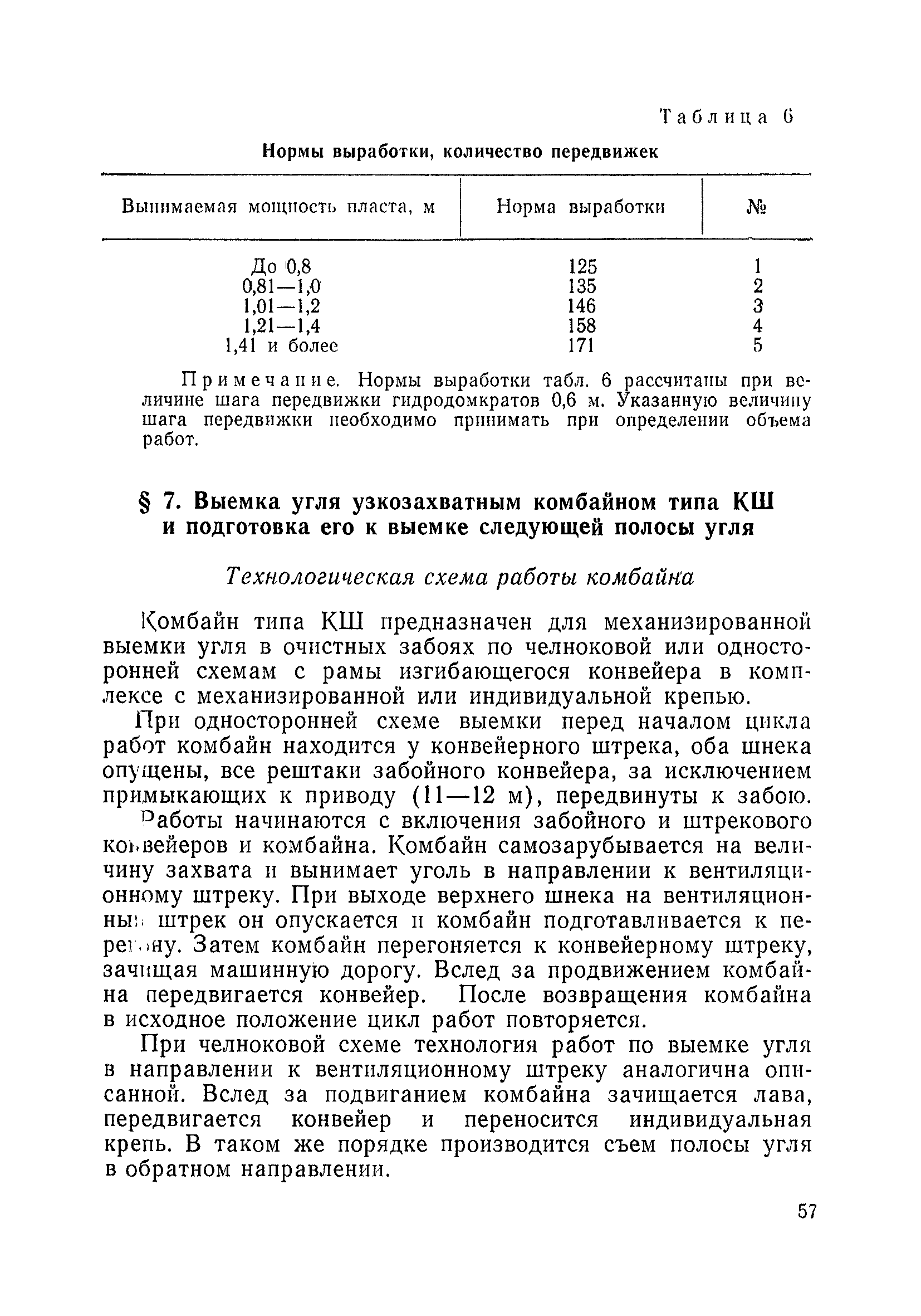 Типовые нормы выработки на очистные работы (кроме агрегатных) для угольных шахт| Статус: | справочные материалы, мп, тпр | | Название рус.: | Типовые нормы выработки на очистные работы (кроме агрегатных) для угольных шахт | | Дата добавления в базу: | 01.01.2019 | | Дата актуализации: | 01.01.2021 | | Область применения: | Типовые нормы выработки на очистные работы для угольных шахт рекомендуются для использования в качестве основы при разработке единых отраслевых и бассейновых норм выработки, а также для применения на предприятиях как местных технически обоснованных норм после утверждения их руководством по согласованию с соответствующим комитетом профсоюза и нормативно-исследовательской станцией производственного объединения (комбината) | | Оглавление: | Общая часть Техническая часть Нормативная часть Глава I. Типовые нормы выработки § 1. Выемка угля агрегатами типа АЩ (АНЩ) в лавах на пластах крутого падения § 2. Выемка угля очистными механизированными комплексами типа КГД в лавах на пластах крутого падения § 3. Передвижка гидрофицированной посадочной крепи «Спутник» § 4. Выемка угля в лавах, оборудованных струговыми установками § 5. Оформление забоя после выемки угля струговыми установками § 6. Передвижка гидродомкратов конвейерного става при выемке угля струговыми установками § 7. Выемка угля узкозахватным комбайном типа КШ и подготовка его к выемке следующей полосы угля § 8. Оформление забоя после выемки угля узкозахватным комбайном типа КШ § 9. Выемка угля узкозахватными комбайнами типов 1К-101, 2К-52, МК-67, БК-52 и подготовка комбайна к выемке следующей полосы угля в лавах на пластах пологого и наклонного падения § 10. Оформление забоя после выемки угля узкозахватными комбайнами типов 1К-101, 2К-52, МК-67 и ВК-52 § 11. Выемка угля комбайнами типов УКР, «Темп», КТ в лавах на пластах наклонного и крутого падения § 12. Спуск (перегон) комбайнов типов УКР, «Темп», КТ в лавах на пластах наклонного и крутого падения с передвижной кран-балки § 13. Передвижка предохранительной лебедки 1ЛГКН § 14. Оформление забоя после выемки угля комбайнами типов УКР, «Темп», КТ в лавах на пластах наклонного падения § 15. Выемка угля в лавах комбайном типа «Урал-2М» и подготовка его к выемке следующей полосы угля § 16. Оформление забоя после выемки угля комбайном типа «Урал-2М» § 17. Выемка угля широкозахватными комбайнами в лавах на пологих и наклонных пластах § 18. Демонтаж, монтаж, перегон и разворот широкозахватных комбайнов в лавах на пологих и наклонных пластах § 19. Оформление забоев после выемки угля широкозахватными комбайнами § 20. Зарубка угля в лавах врубовыми машинами § 21. Перегон (спуск) врубовых машин § 22. Навалоотбойка, навалка угля § 23. Бурение шпуров по углю ручными электросверлами (пневмосверлами) в лавах и камерах § 24. Бурение длинных шпуров ручными электросверлами с принудительной подачей при безлюдной выемке угля на пластах крутого падения § 25. Уборка угля в очистных забоях с помощью скреперной установки § 26. Передвижка скреперной установки § 27. Выемка угля отбойными молотками § 28. Выемка угля с применением ВМ в очистных забоях на пластах крутого падения § 29. Выемка угля под жесткими и эластичными щитами § 30. Выемка угля под арочными щитами § 31. Крепление очистных забоев металлическими (клиновыми и гидравлическими) стойками на пластах пологого и наклонного падения § 32. К