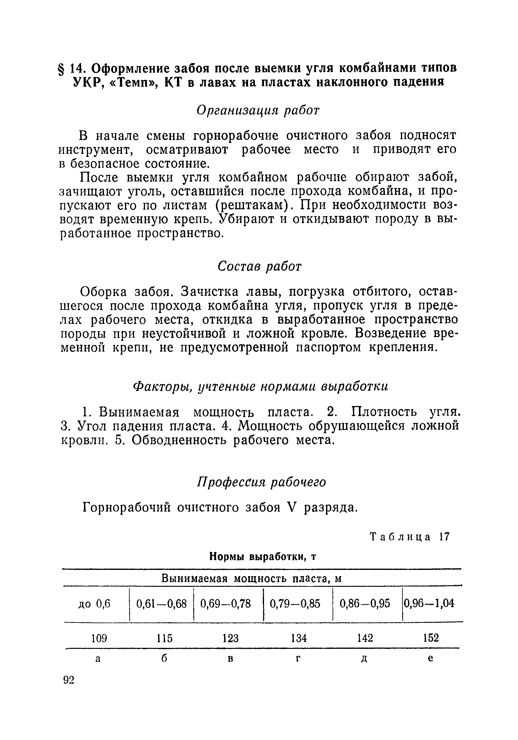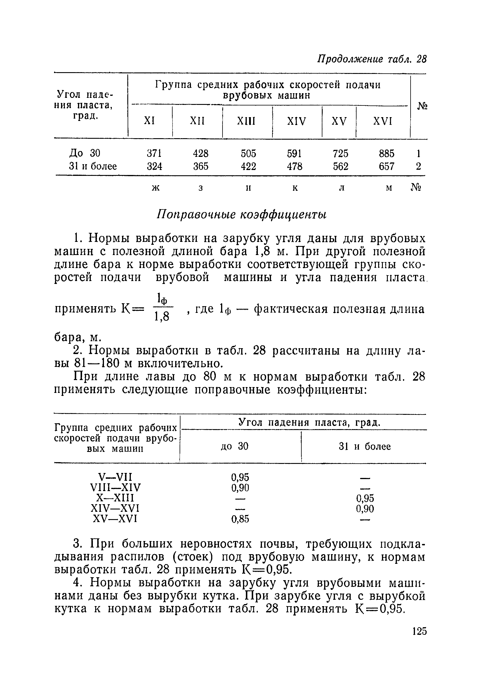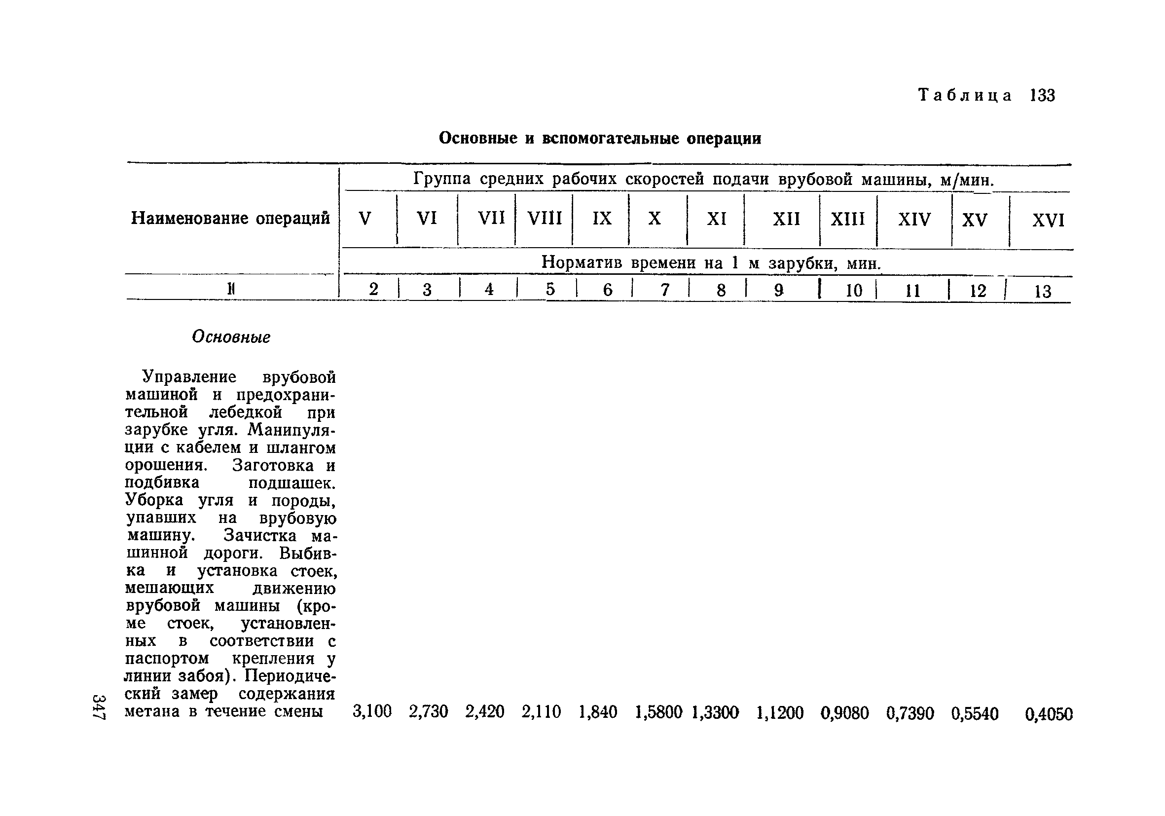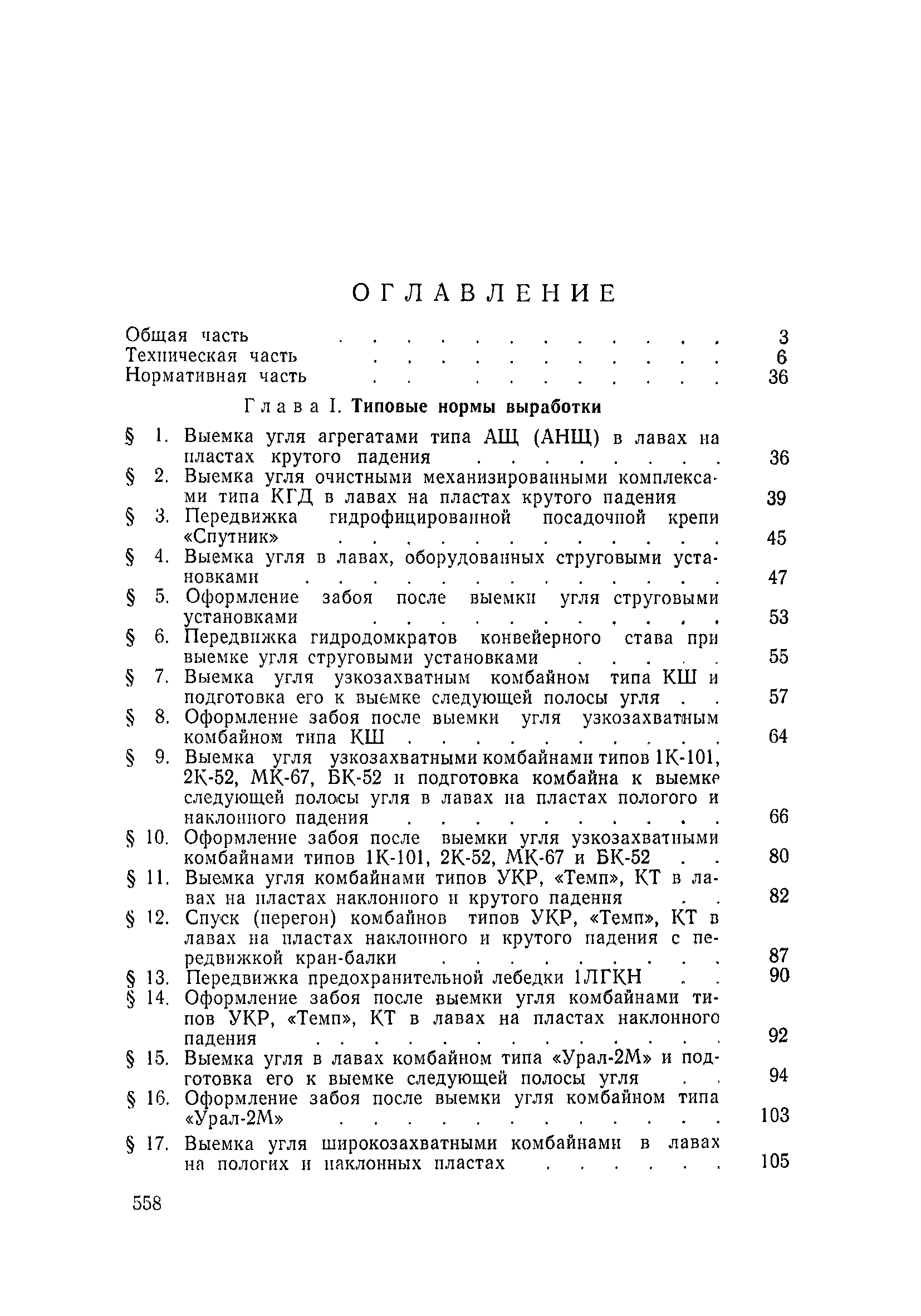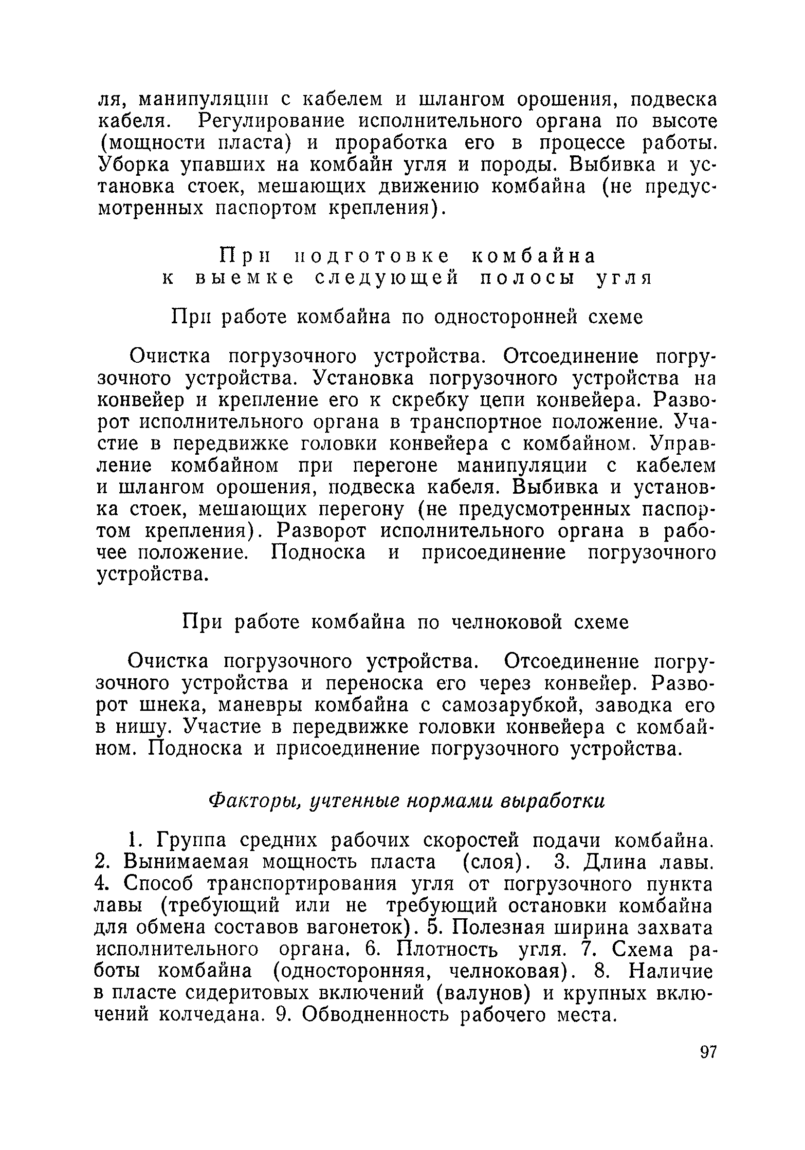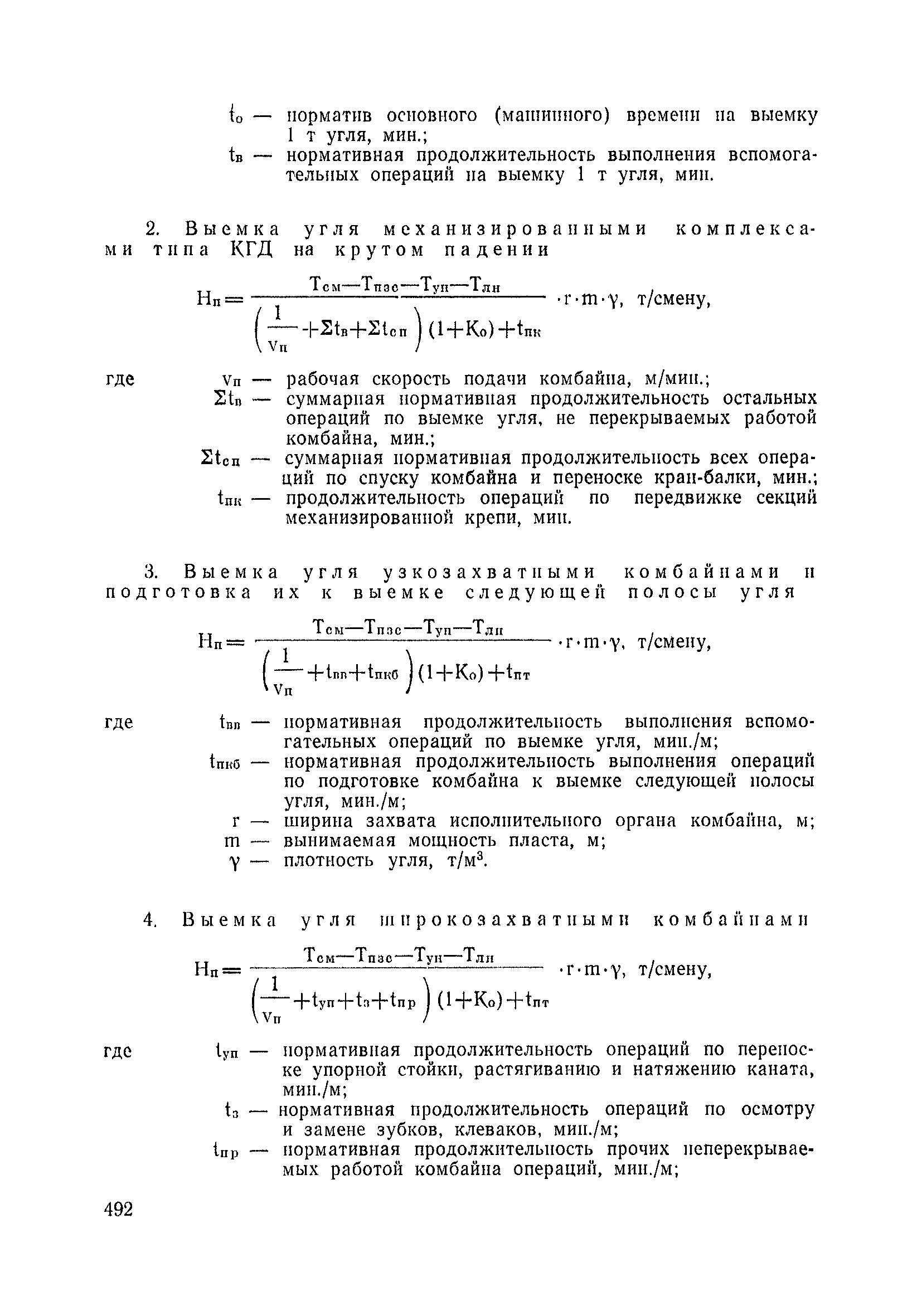 Типовые нормы выработки на очистные работы (кроме агрегатных) для угольных шахт| Статус: | справочные материалы, мп, тпр | | Название рус.: | Типовые нормы выработки на очистные работы (кроме агрегатных) для угольных шахт | | Дата добавления в базу: | 01.01.2019 | | Дата актуализации: | 01.01.2021 | | Область применения: | Типовые нормы выработки на очистные работы для угольных шахт рекомендуются для использования в качестве основы при разработке единых отраслевых и бассейновых норм выработки, а также для применения на предприятиях как местных технически обоснованных норм после утверждения их руководством по согласованию с соответствующим комитетом профсоюза и нормативно-исследовательской станцией производственного объединения (комбината) | | Оглавление: | Общая часть Техническая часть Нормативная часть Глава I. Типовые нормы выработки § 1. Выемка угля агрегатами типа АЩ (АНЩ) в лавах на пластах крутого падения § 2. Выемка угля очистными механизированными комплексами типа КГД в лавах на пластах крутого падения § 3. Передвижка гидрофицированной посадочной крепи «Спутник» § 4. Выемка угля в лавах, оборудованных струговыми установками § 5. Оформление забоя после выемки угля струговыми установками § 6. Передвижка гидродомкратов конвейерного става при выемке угля струговыми установками § 7. Выемка угля узкозахватным комбайном типа КШ и подготовка его к выемке следующей полосы угля § 8. Оформление забоя после выемки угля узкозахватным комбайном типа КШ § 9. Выемка угля узкозахватными комбайнами типов 1К-101, 2К-52, МК-67, БК-52 и подготовка комбайна к выемке следующей полосы угля в лавах на пластах пологого и наклонного падения § 10. Оформление забоя после выемки угля узкозахватными комбайнами типов 1К-101, 2К-52, МК-67 и ВК-52 § 11. Выемка угля комбайнами типов УКР, «Темп», КТ в лавах на пластах наклонного и крутого падения § 12. Спуск (перегон) комбайнов типов УКР, «Темп», КТ в лавах на пластах наклонного и крутого падения с передвижной кран-балки § 13. Передвижка предохранительной лебедки 1ЛГКН § 14. Оформление забоя после выемки угля комбайнами типов УКР, «Темп», КТ в лавах на пластах наклонного падения § 15. Выемка угля в лавах комбайном типа «Урал-2М» и подготовка его к выемке следующей полосы угля § 16. Оформление забоя после выемки угля комбайном типа «Урал-2М» § 17. Выемка угля широкозахватными комбайнами в лавах на пологих и наклонных пластах § 18. Демонтаж, монтаж, перегон и разворот широкозахватных комбайнов в лавах на пологих и наклонных пластах § 19. Оформление забоев после выемки угля широкозахватными комбайнами § 20. Зарубка угля в лавах врубовыми машинами § 21. Перегон (спуск) врубовых машин § 22. Навалоотбойка, навалка угля § 23. Бурение шпуров по углю ручными электросверлами (пневмосверлами) в лавах и камерах § 24. Бурение длинных шпуров ручными электросверлами с принудительной подачей при безлюдной выемке угля на пластах крутого падения § 25. Уборка угля в очистных забоях с помощью скреперной установки § 26. Передвижка скреперной установки § 27. Выемка угля отбойными молотками § 28. Выемка угля с применением ВМ в очистных забоях на пластах крутого падения § 29. Выемка угля под жесткими и эластичными щитами § 30. Выемка угля под арочными щитами § 31. Крепление очистных забоев металлическими (клиновыми и гидравлическими) стойками на пластах пологого и наклонного падения § 32. К