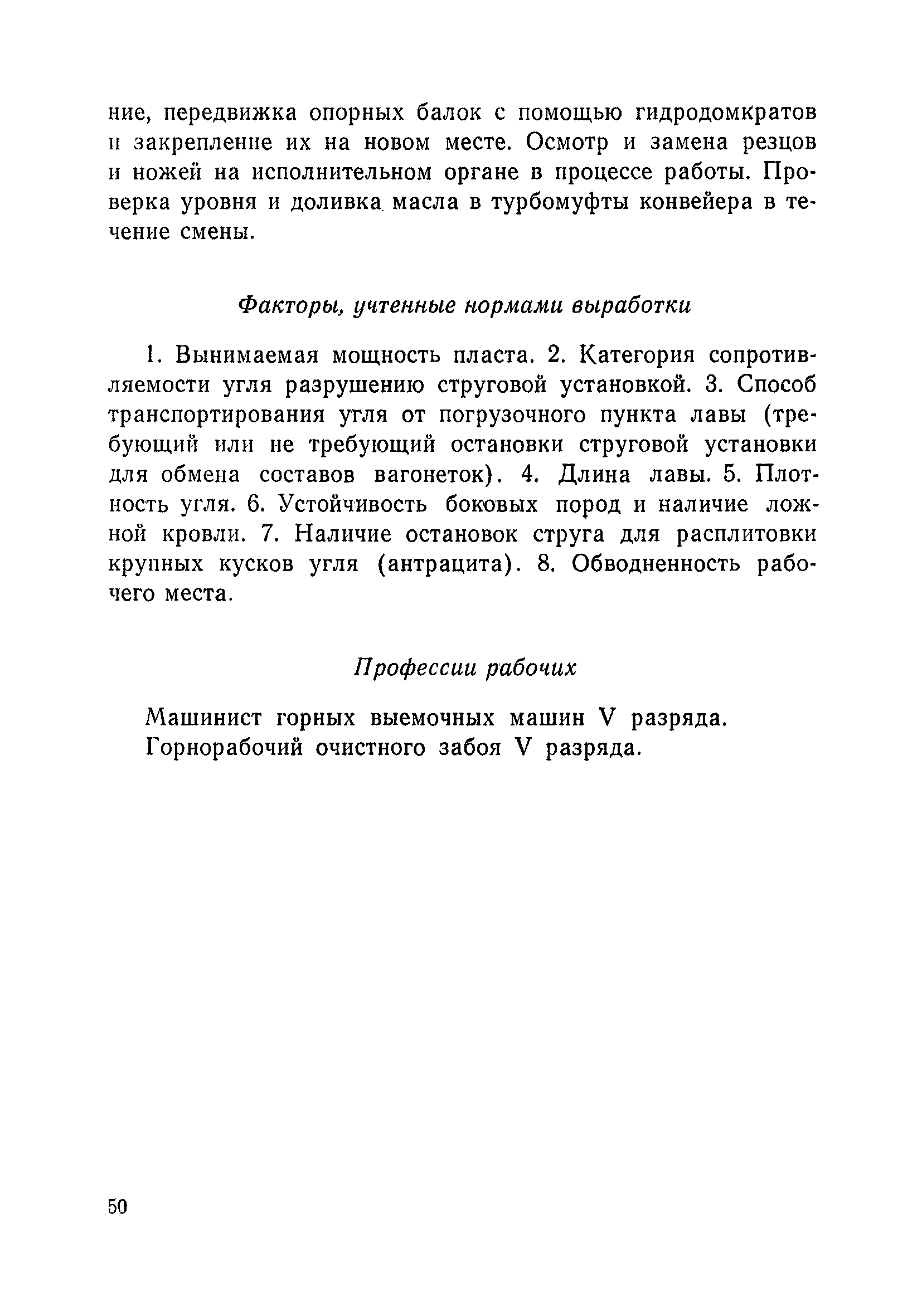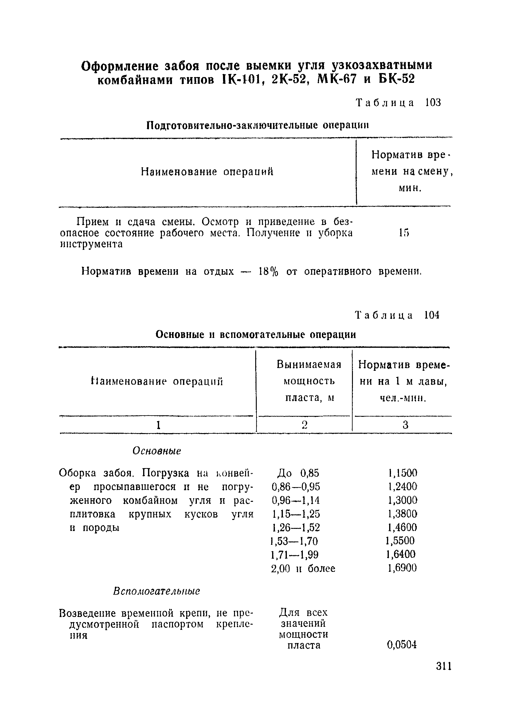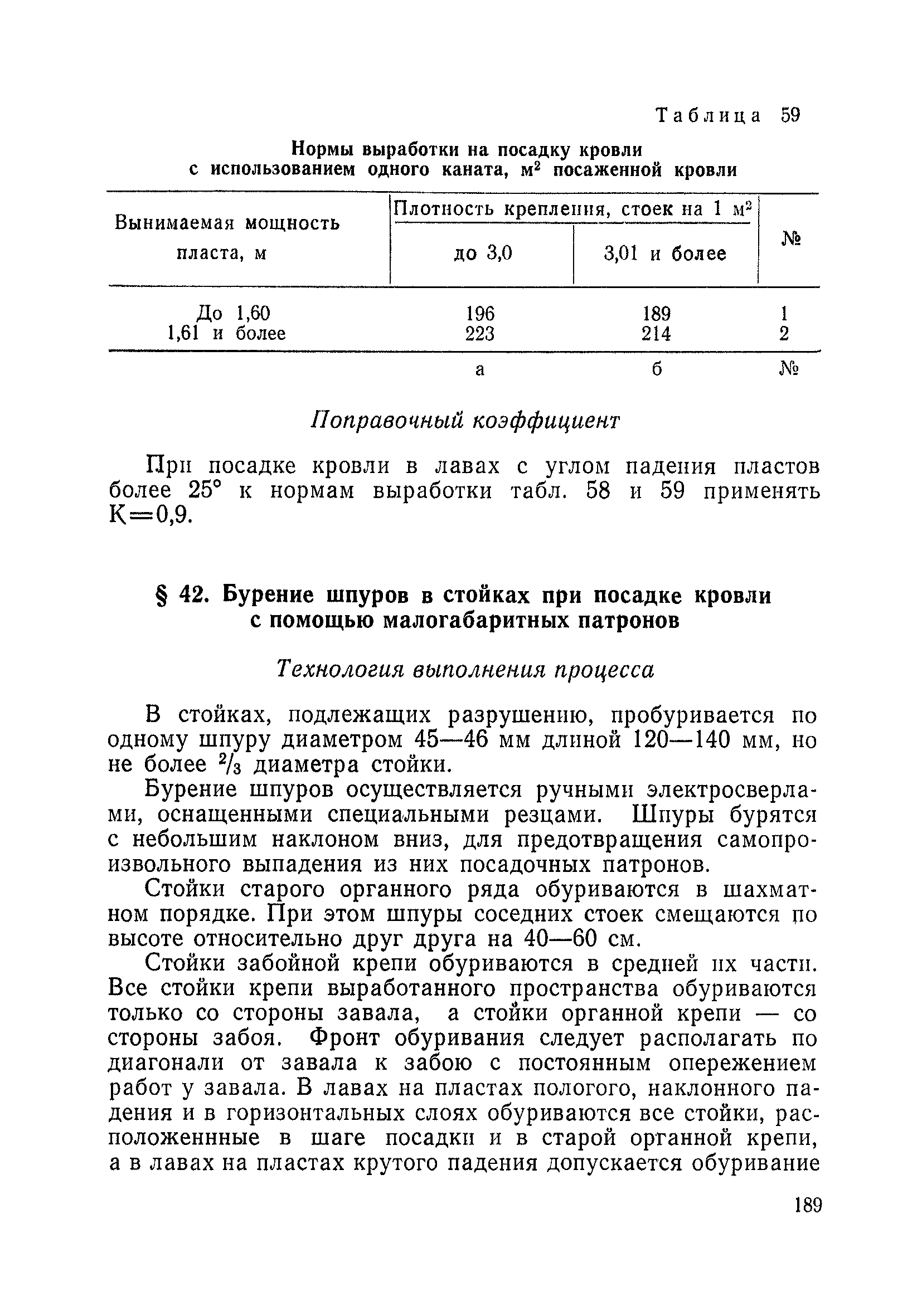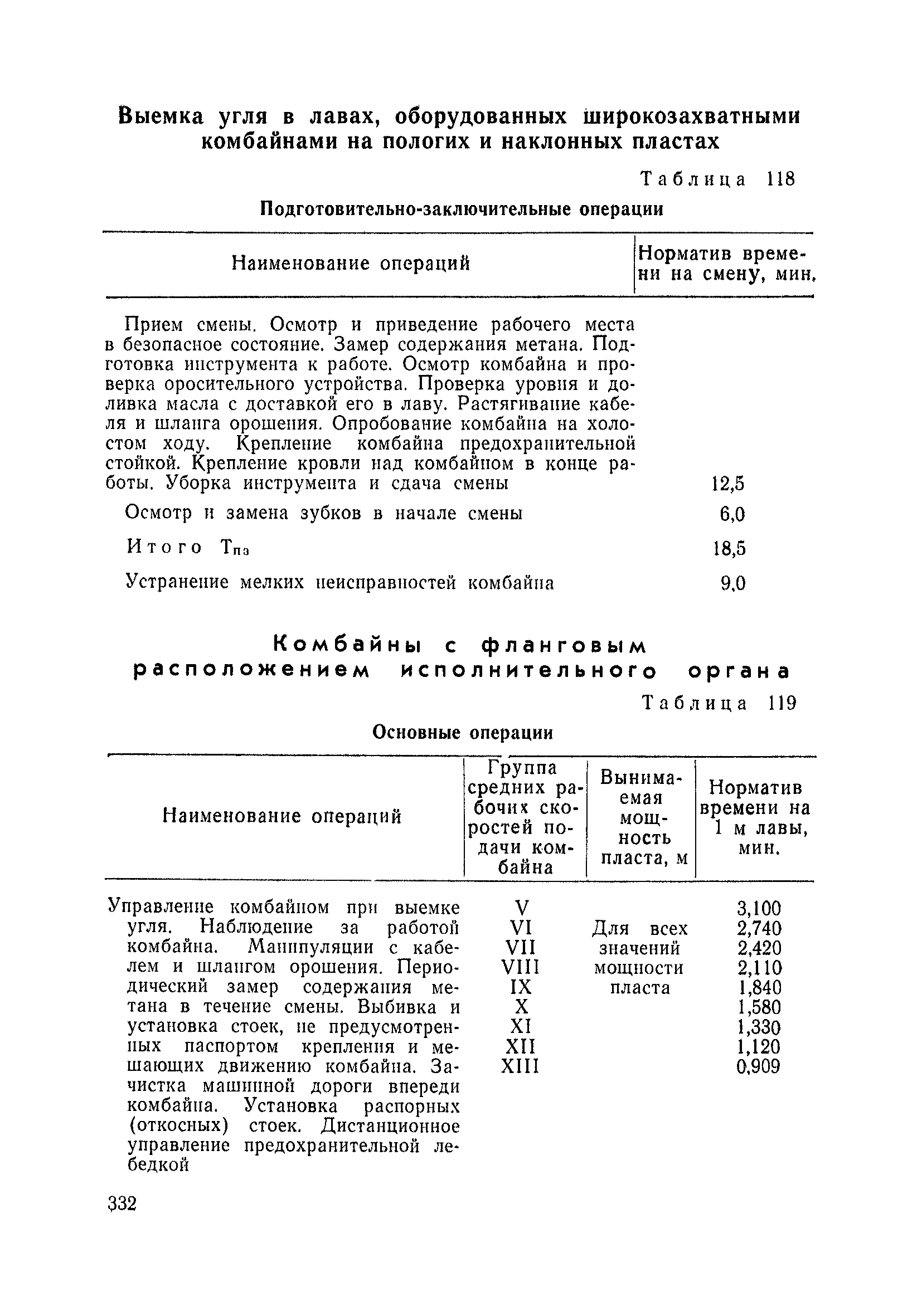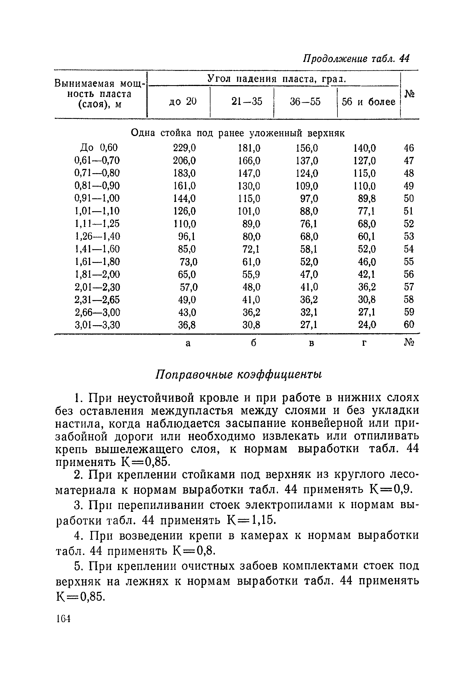 Типовые нормы выработки на очистные работы (кроме агрегатных) для угольных шахт| Статус: | справочные материалы, мп, тпр | | Название рус.: | Типовые нормы выработки на очистные работы (кроме агрегатных) для угольных шахт | | Дата добавления в базу: | 01.01.2019 | | Дата актуализации: | 01.01.2021 | | Область применения: | Типовые нормы выработки на очистные работы для угольных шахт рекомендуются для использования в качестве основы при разработке единых отраслевых и бассейновых норм выработки, а также для применения на предприятиях как местных технически обоснованных норм после утверждения их руководством по согласованию с соответствующим комитетом профсоюза и нормативно-исследовательской станцией производственного объединения (комбината) | | Оглавление: | Общая часть Техническая часть Нормативная часть Глава I. Типовые нормы выработки § 1. Выемка угля агрегатами типа АЩ (АНЩ) в лавах на пластах крутого падения § 2. Выемка угля очистными механизированными комплексами типа КГД в лавах на пластах крутого падения § 3. Передвижка гидрофицированной посадочной крепи «Спутник» § 4. Выемка угля в лавах, оборудованных струговыми установками § 5. Оформление забоя после выемки угля струговыми установками § 6. Передвижка гидродомкратов конвейерного става при выемке угля струговыми установками § 7. Выемка угля узкозахватным комбайном типа КШ и подготовка его к выемке следующей полосы угля § 8. Оформление забоя после выемки угля узкозахватным комбайном типа КШ § 9. Выемка угля узкозахватными комбайнами типов 1К-101, 2К-52, МК-67, БК-52 и подготовка комбайна к выемке следующей полосы угля в лавах на пластах пологого и наклонного падения § 10. Оформление забоя после выемки угля узкозахватными комбайнами типов 1К-101, 2К-52, МК-67 и ВК-52 § 11. Выемка угля комбайнами типов УКР, «Темп», КТ в лавах на пластах наклонного и крутого падения § 12. Спуск (перегон) комбайнов типов УКР, «Темп», КТ в лавах на пластах наклонного и крутого падения с передвижной кран-балки § 13. Передвижка предохранительной лебедки 1ЛГКН § 14. Оформление забоя после выемки угля комбайнами типов УКР, «Темп», КТ в лавах на пластах наклонного падения § 15. Выемка угля в лавах комбайном типа «Урал-2М» и подготовка его к выемке следующей полосы угля § 16. Оформление забоя после выемки угля комбайном типа «Урал-2М» § 17. Выемка угля широкозахватными комбайнами в лавах на пологих и наклонных пластах § 18. Демонтаж, монтаж, перегон и разворот широкозахватных комбайнов в лавах на пологих и наклонных пластах § 19. Оформление забоев после выемки угля широкозахватными комбайнами § 20. Зарубка угля в лавах врубовыми машинами § 21. Перегон (спуск) врубовых машин § 22. Навалоотбойка, навалка угля § 23. Бурение шпуров по углю ручными электросверлами (пневмосверлами) в лавах и камерах § 24. Бурение длинных шпуров ручными электросверлами с принудительной подачей при безлюдной выемке угля на пластах крутого падения § 25. Уборка угля в очистных забоях с помощью скреперной установки § 26. Передвижка скреперной установки § 27. Выемка угля отбойными молотками § 28. Выемка угля с применением ВМ в очистных забоях на пластах крутого падения § 29. Выемка угля под жесткими и эластичными щитами § 30. Выемка угля под арочными щитами § 31. Крепление очистных забоев металлическими (клиновыми и гидравлическими) стойками на пластах пологого и наклонного падения § 32. К