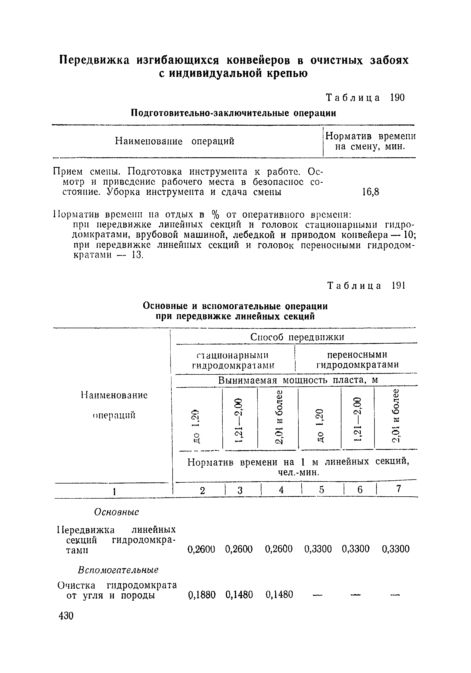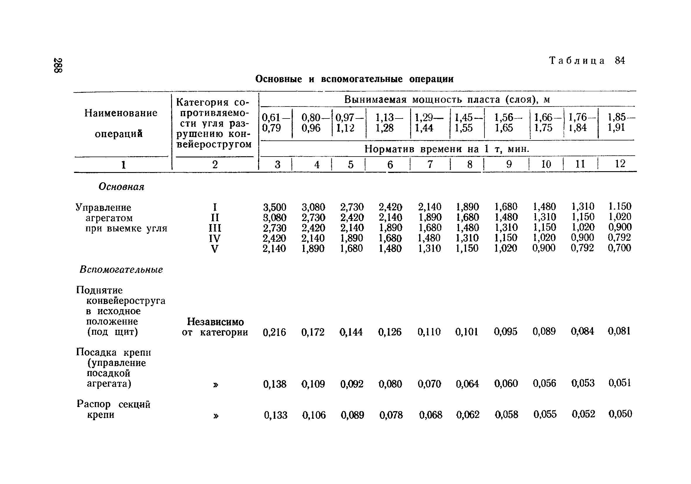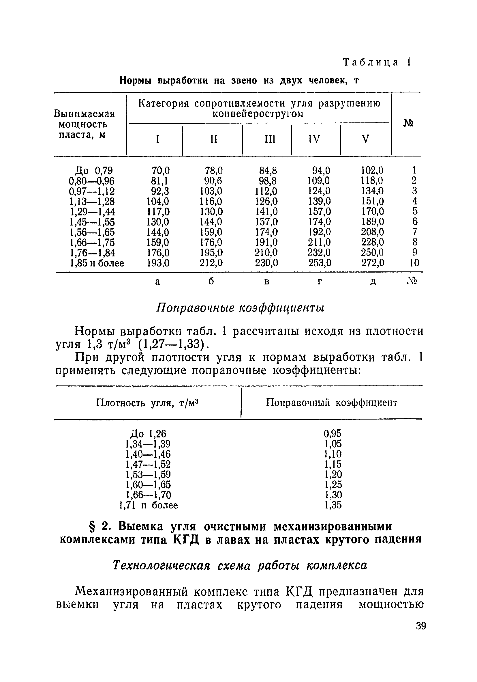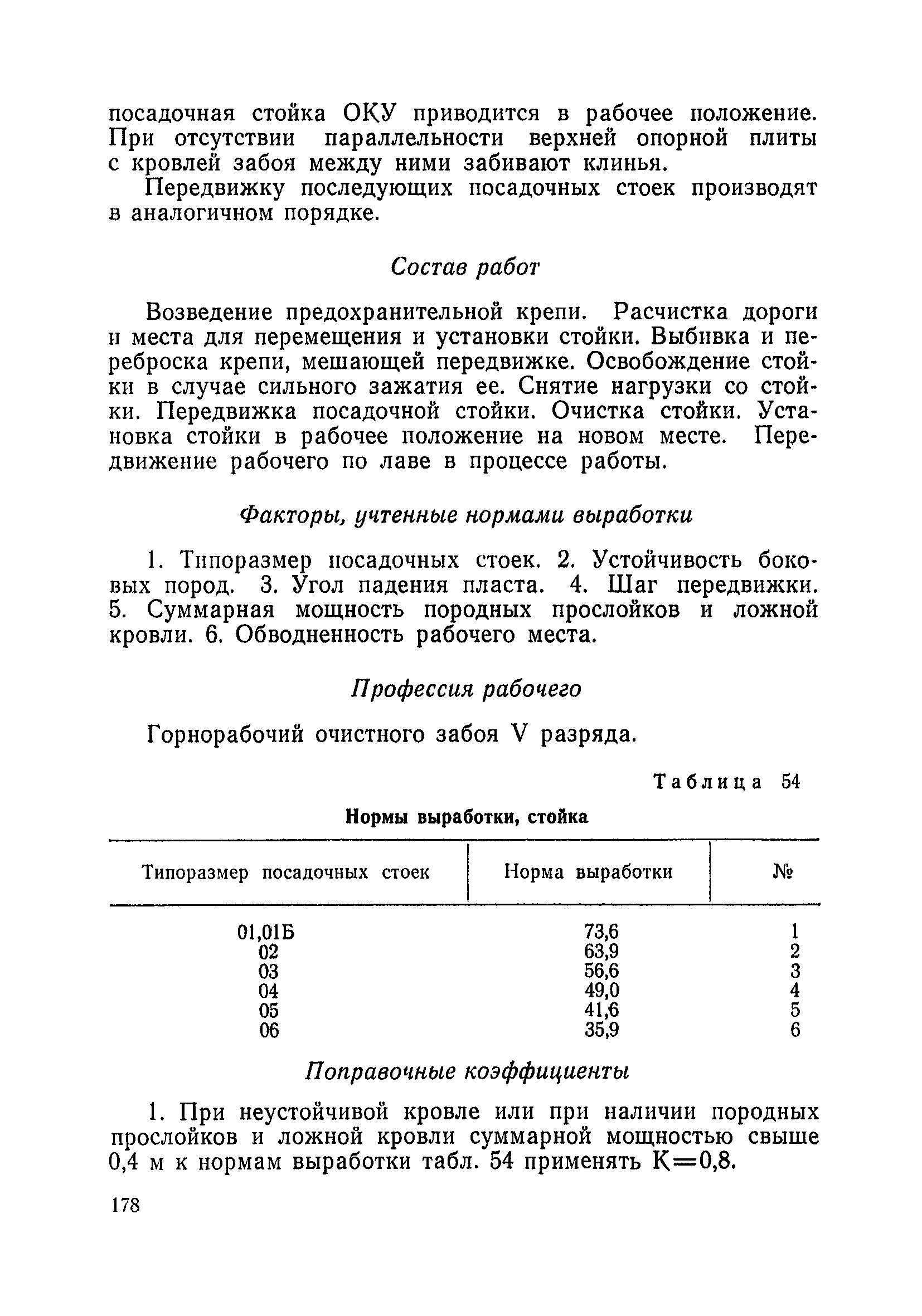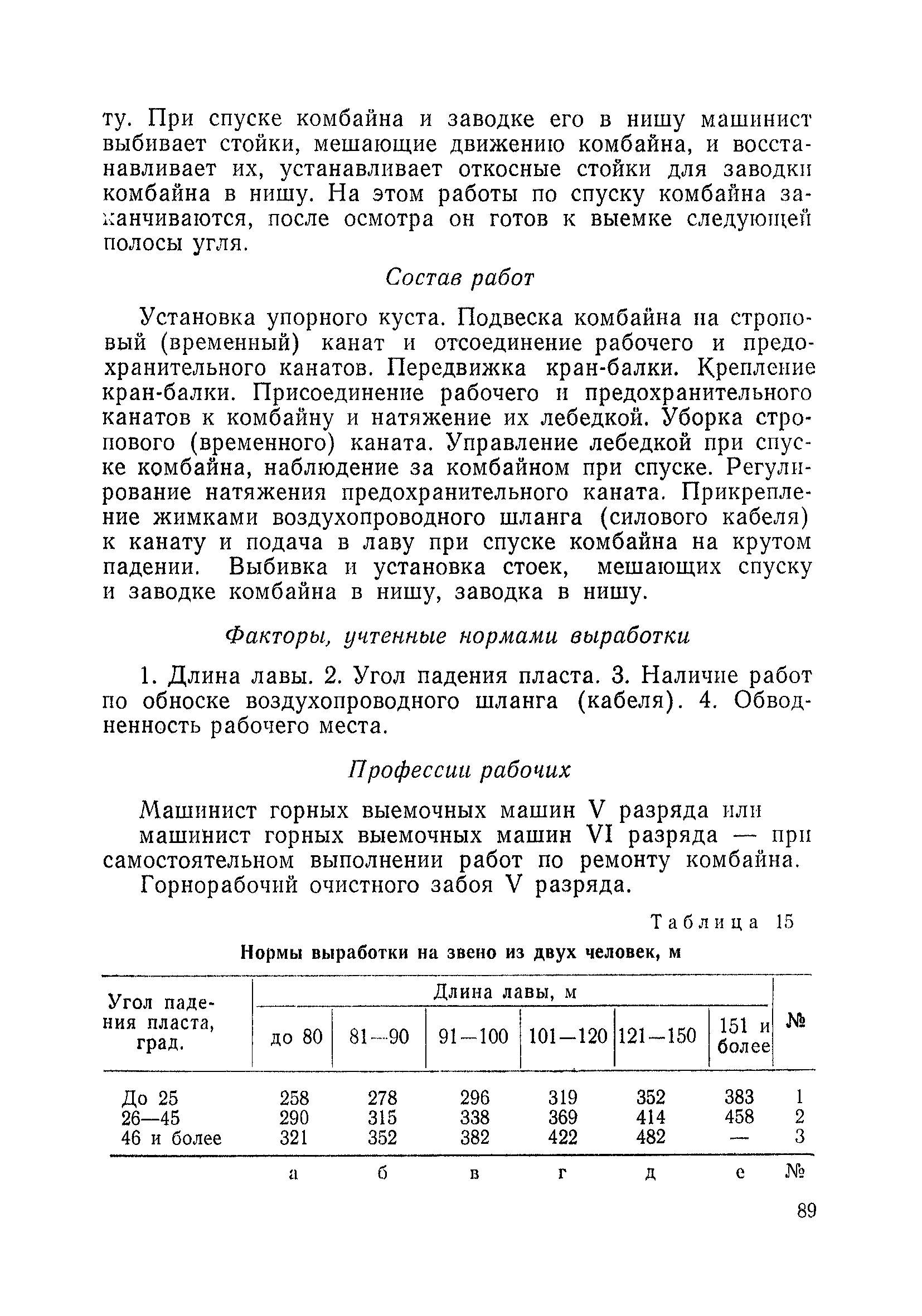 Типовые нормы выработки на очистные работы (кроме агрегатных) для угольных шахт| Статус: | справочные материалы, мп, тпр | | Название рус.: | Типовые нормы выработки на очистные работы (кроме агрегатных) для угольных шахт | | Дата добавления в базу: | 01.01.2019 | | Дата актуализации: | 01.01.2021 | | Область применения: | Типовые нормы выработки на очистные работы для угольных шахт рекомендуются для использования в качестве основы при разработке единых отраслевых и бассейновых норм выработки, а также для применения на предприятиях как местных технически обоснованных норм после утверждения их руководством по согласованию с соответствующим комитетом профсоюза и нормативно-исследовательской станцией производственного объединения (комбината) | | Оглавление: | Общая часть Техническая часть Нормативная часть Глава I. Типовые нормы выработки § 1. Выемка угля агрегатами типа АЩ (АНЩ) в лавах на пластах крутого падения § 2. Выемка угля очистными механизированными комплексами типа КГД в лавах на пластах крутого падения § 3. Передвижка гидрофицированной посадочной крепи «Спутник» § 4. Выемка угля в лавах, оборудованных струговыми установками § 5. Оформление забоя после выемки угля струговыми установками § 6. Передвижка гидродомкратов конвейерного става при выемке угля струговыми установками § 7. Выемка угля узкозахватным комбайном типа КШ и подготовка его к выемке следующей полосы угля § 8. Оформление забоя после выемки угля узкозахватным комбайном типа КШ § 9. Выемка угля узкозахватными комбайнами типов 1К-101, 2К-52, МК-67, БК-52 и подготовка комбайна к выемке следующей полосы угля в лавах на пластах пологого и наклонного падения § 10. Оформление забоя после выемки угля узкозахватными комбайнами типов 1К-101, 2К-52, МК-67 и ВК-52 § 11. Выемка угля комбайнами типов УКР, «Темп», КТ в лавах на пластах наклонного и крутого падения § 12. Спуск (перегон) комбайнов типов УКР, «Темп», КТ в лавах на пластах наклонного и крутого падения с передвижной кран-балки § 13. Передвижка предохранительной лебедки 1ЛГКН § 14. Оформление забоя после выемки угля комбайнами типов УКР, «Темп», КТ в лавах на пластах наклонного падения § 15. Выемка угля в лавах комбайном типа «Урал-2М» и подготовка его к выемке следующей полосы угля § 16. Оформление забоя после выемки угля комбайном типа «Урал-2М» § 17. Выемка угля широкозахватными комбайнами в лавах на пологих и наклонных пластах § 18. Демонтаж, монтаж, перегон и разворот широкозахватных комбайнов в лавах на пологих и наклонных пластах § 19. Оформление забоев после выемки угля широкозахватными комбайнами § 20. Зарубка угля в лавах врубовыми машинами § 21. Перегон (спуск) врубовых машин § 22. Навалоотбойка, навалка угля § 23. Бурение шпуров по углю ручными электросверлами (пневмосверлами) в лавах и камерах § 24. Бурение длинных шпуров ручными электросверлами с принудительной подачей при безлюдной выемке угля на пластах крутого падения § 25. Уборка угля в очистных забоях с помощью скреперной установки § 26. Передвижка скреперной установки § 27. Выемка угля отбойными молотками § 28. Выемка угля с применением ВМ в очистных забоях на пластах крутого падения § 29. Выемка угля под жесткими и эластичными щитами § 30. Выемка угля под арочными щитами § 31. Крепление очистных забоев металлическими (клиновыми и гидравлическими) стойками на пластах пологого и наклонного падения § 32. К