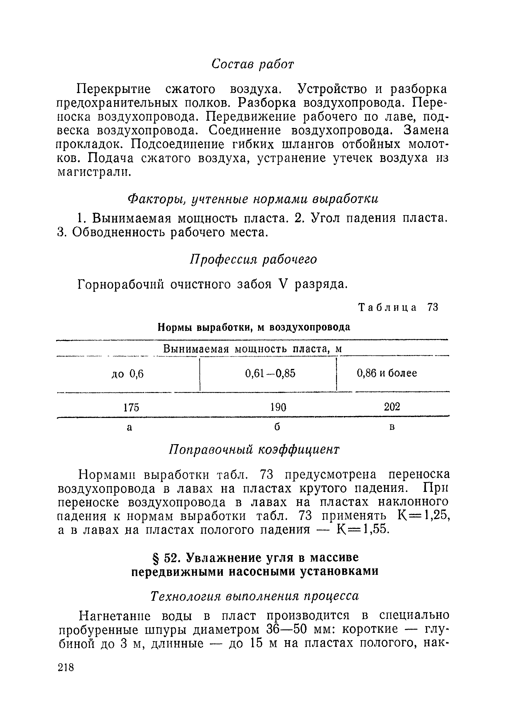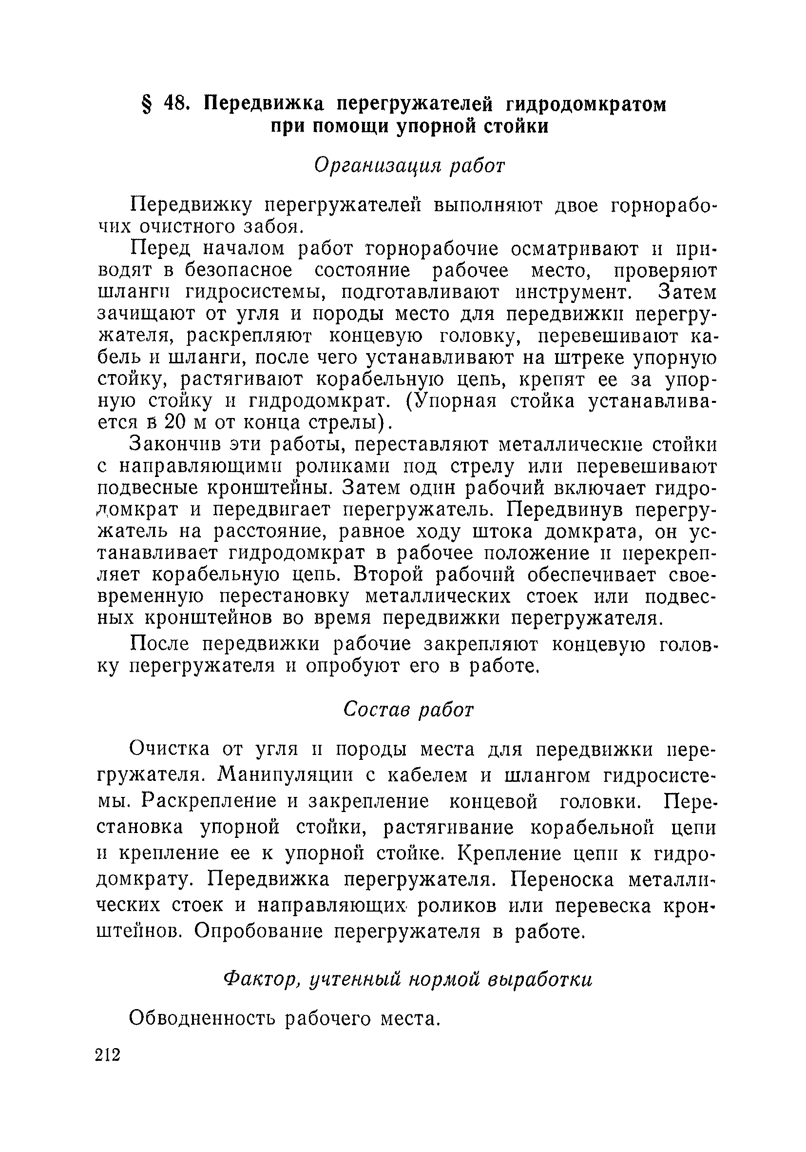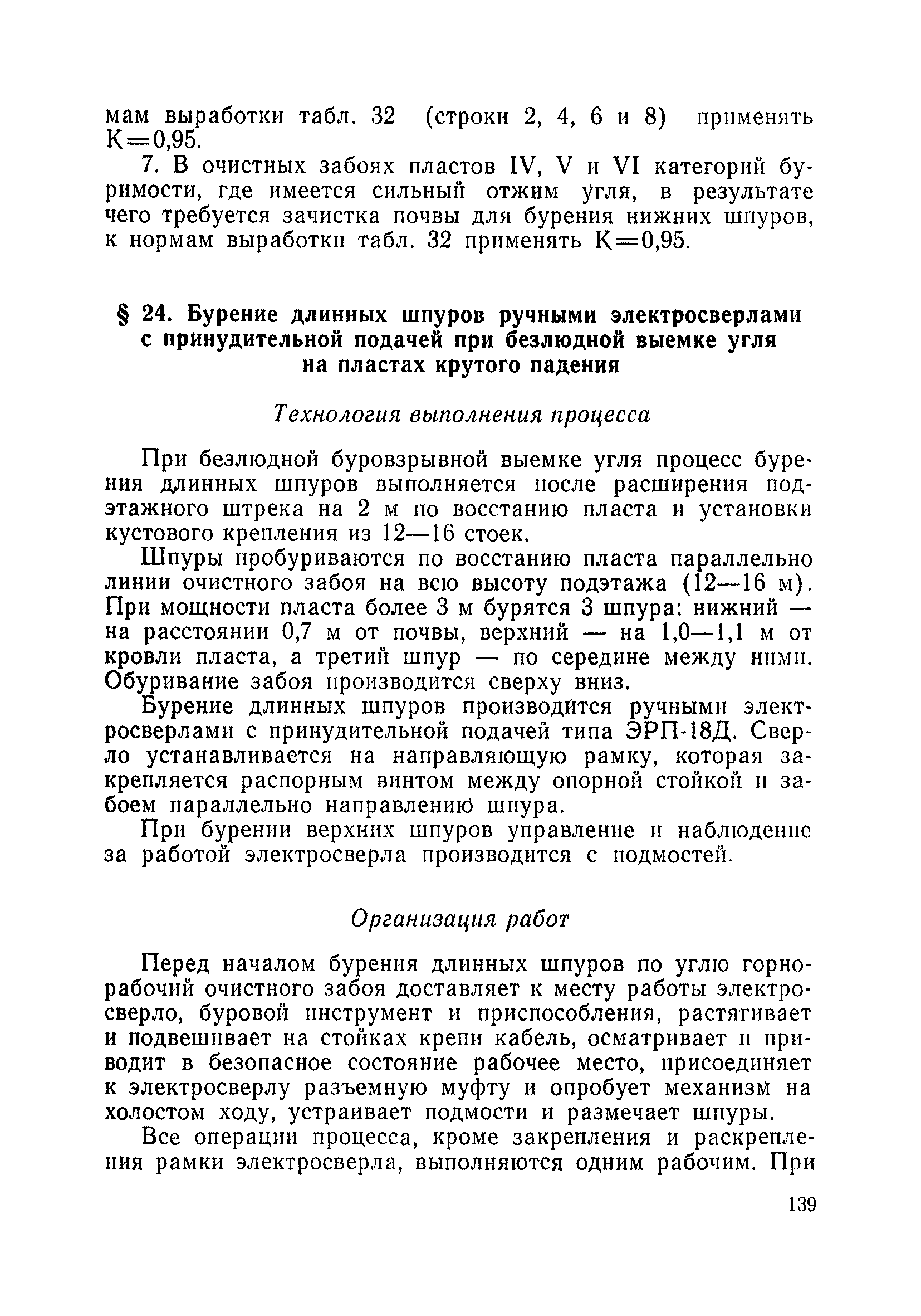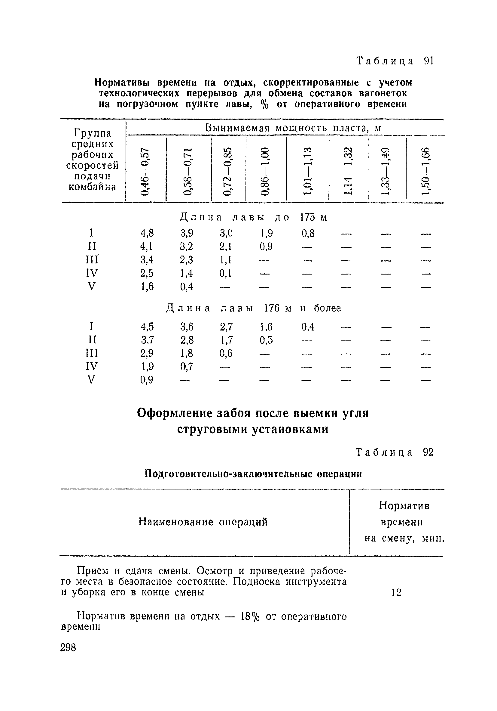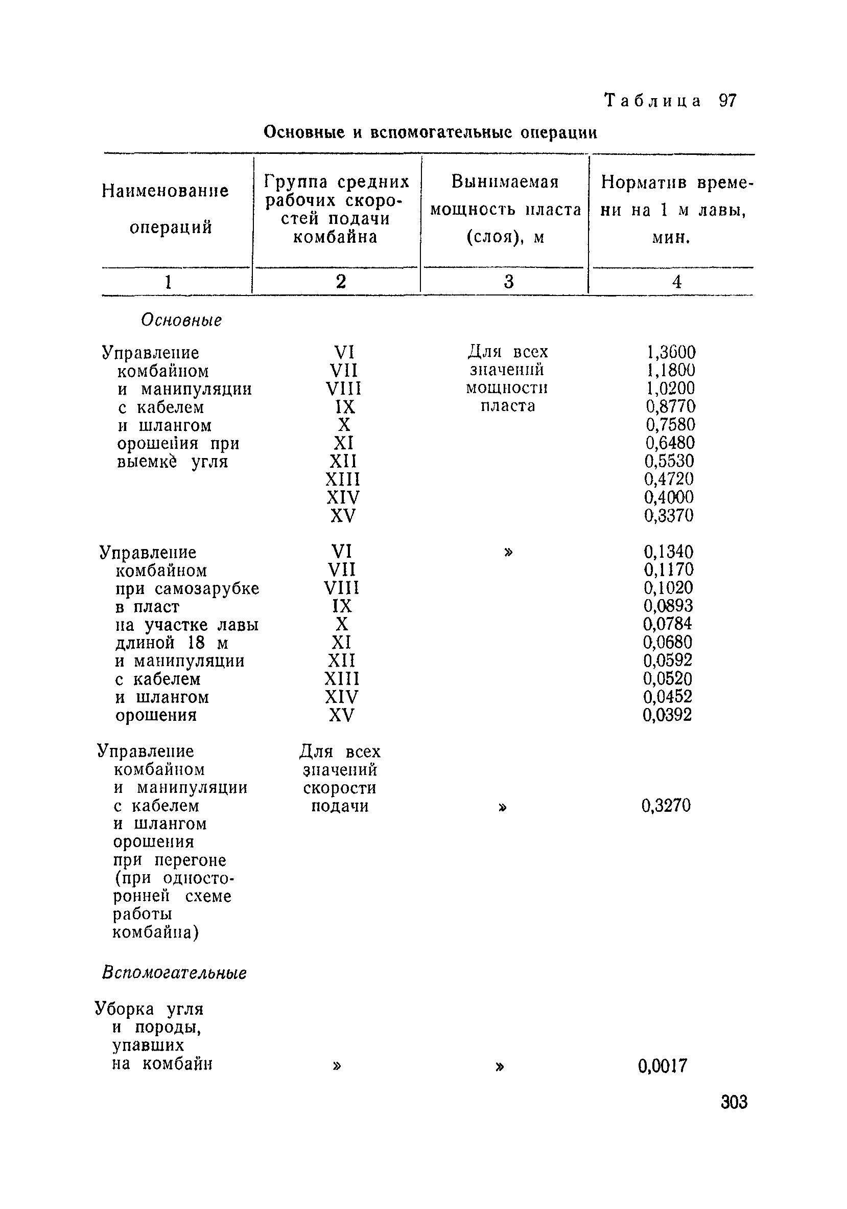 Типовые нормы выработки на очистные работы (кроме агрегатных) для угольных шахт| Статус: | справочные материалы, мп, тпр | | Название рус.: | Типовые нормы выработки на очистные работы (кроме агрегатных) для угольных шахт | | Дата добавления в базу: | 01.01.2019 | | Дата актуализации: | 01.01.2021 | | Область применения: | Типовые нормы выработки на очистные работы для угольных шахт рекомендуются для использования в качестве основы при разработке единых отраслевых и бассейновых норм выработки, а также для применения на предприятиях как местных технически обоснованных норм после утверждения их руководством по согласованию с соответствующим комитетом профсоюза и нормативно-исследовательской станцией производственного объединения (комбината) | | Оглавление: | Общая часть Техническая часть Нормативная часть Глава I. Типовые нормы выработки § 1. Выемка угля агрегатами типа АЩ (АНЩ) в лавах на пластах крутого падения § 2. Выемка угля очистными механизированными комплексами типа КГД в лавах на пластах крутого падения § 3. Передвижка гидрофицированной посадочной крепи «Спутник» § 4. Выемка угля в лавах, оборудованных струговыми установками § 5. Оформление забоя после выемки угля струговыми установками § 6. Передвижка гидродомкратов конвейерного става при выемке угля струговыми установками § 7. Выемка угля узкозахватным комбайном типа КШ и подготовка его к выемке следующей полосы угля § 8. Оформление забоя после выемки угля узкозахватным комбайном типа КШ § 9. Выемка угля узкозахватными комбайнами типов 1К-101, 2К-52, МК-67, БК-52 и подготовка комбайна к выемке следующей полосы угля в лавах на пластах пологого и наклонного падения § 10. Оформление забоя после выемки угля узкозахватными комбайнами типов 1К-101, 2К-52, МК-67 и ВК-52 § 11. Выемка угля комбайнами типов УКР, «Темп», КТ в лавах на пластах наклонного и крутого падения § 12. Спуск (перегон) комбайнов типов УКР, «Темп», КТ в лавах на пластах наклонного и крутого падения с передвижной кран-балки § 13. Передвижка предохранительной лебедки 1ЛГКН § 14. Оформление забоя после выемки угля комбайнами типов УКР, «Темп», КТ в лавах на пластах наклонного падения § 15. Выемка угля в лавах комбайном типа «Урал-2М» и подготовка его к выемке следующей полосы угля § 16. Оформление забоя после выемки угля комбайном типа «Урал-2М» § 17. Выемка угля широкозахватными комбайнами в лавах на пологих и наклонных пластах § 18. Демонтаж, монтаж, перегон и разворот широкозахватных комбайнов в лавах на пологих и наклонных пластах § 19. Оформление забоев после выемки угля широкозахватными комбайнами § 20. Зарубка угля в лавах врубовыми машинами § 21. Перегон (спуск) врубовых машин § 22. Навалоотбойка, навалка угля § 23. Бурение шпуров по углю ручными электросверлами (пневмосверлами) в лавах и камерах § 24. Бурение длинных шпуров ручными электросверлами с принудительной подачей при безлюдной выемке угля на пластах крутого падения § 25. Уборка угля в очистных забоях с помощью скреперной установки § 26. Передвижка скреперной установки § 27. Выемка угля отбойными молотками § 28. Выемка угля с применением ВМ в очистных забоях на пластах крутого падения § 29. Выемка угля под жесткими и эластичными щитами § 30. Выемка угля под арочными щитами § 31. Крепление очистных забоев металлическими (клиновыми и гидравлическими) стойками на пластах пологого и наклонного падения § 32. К