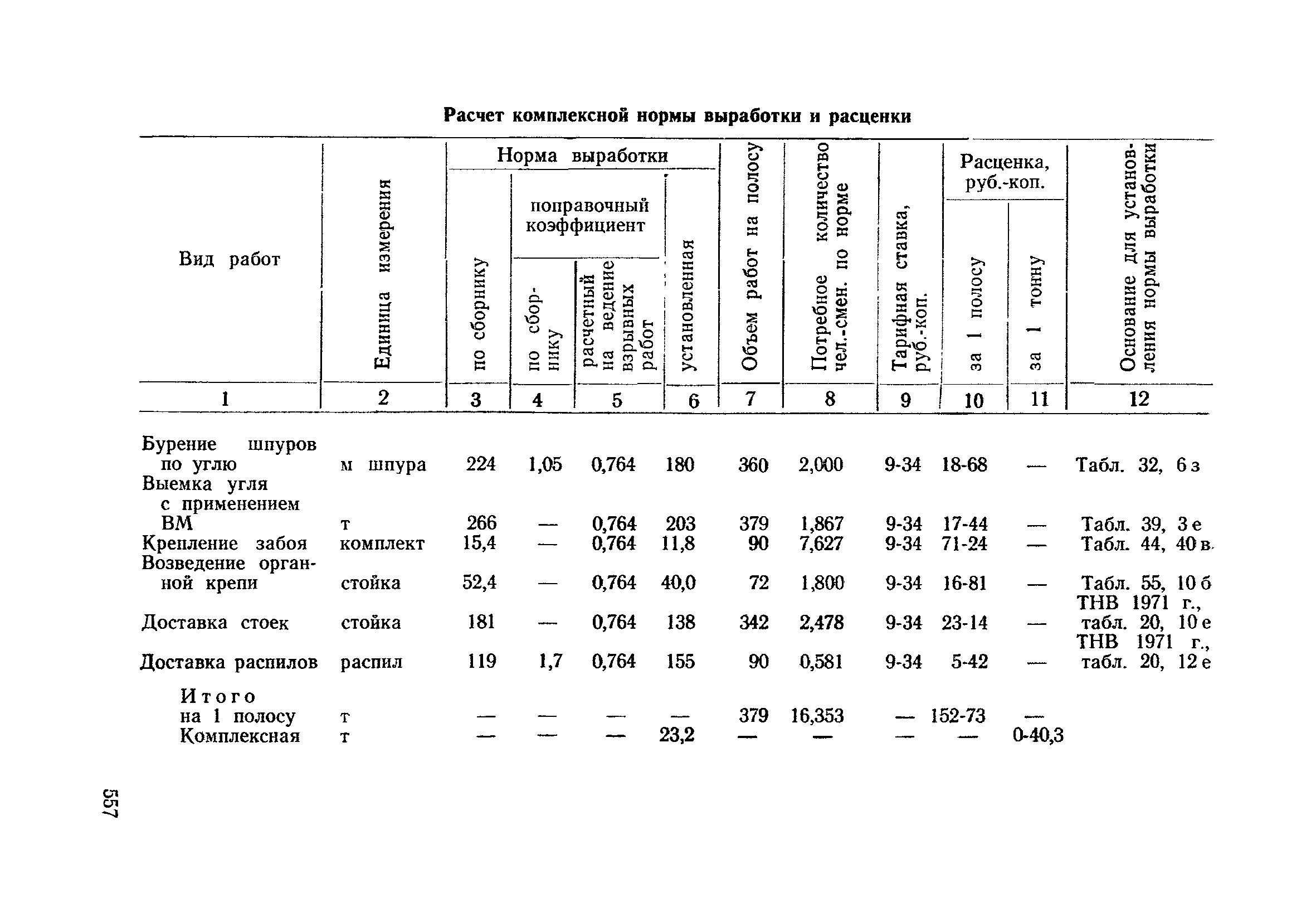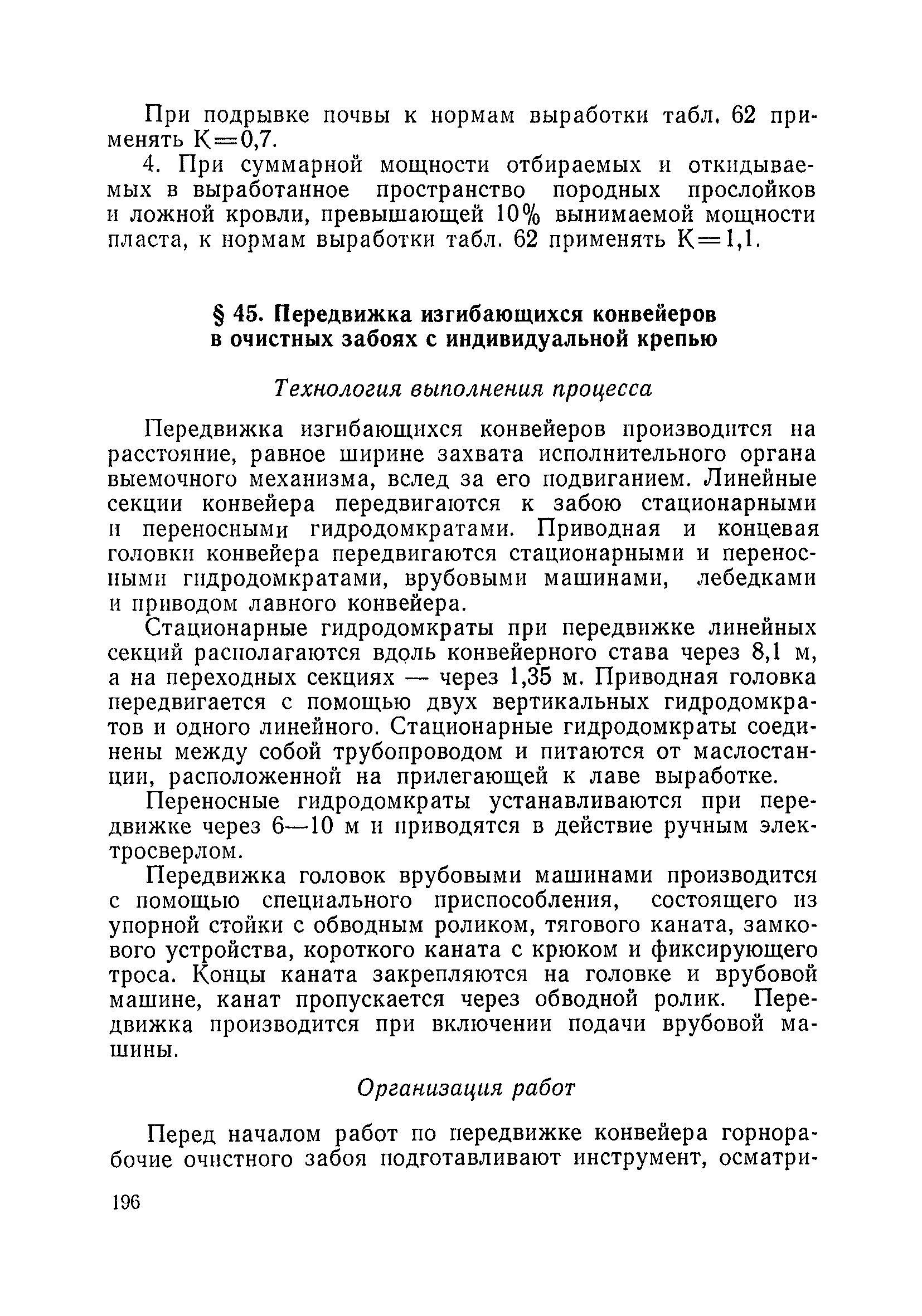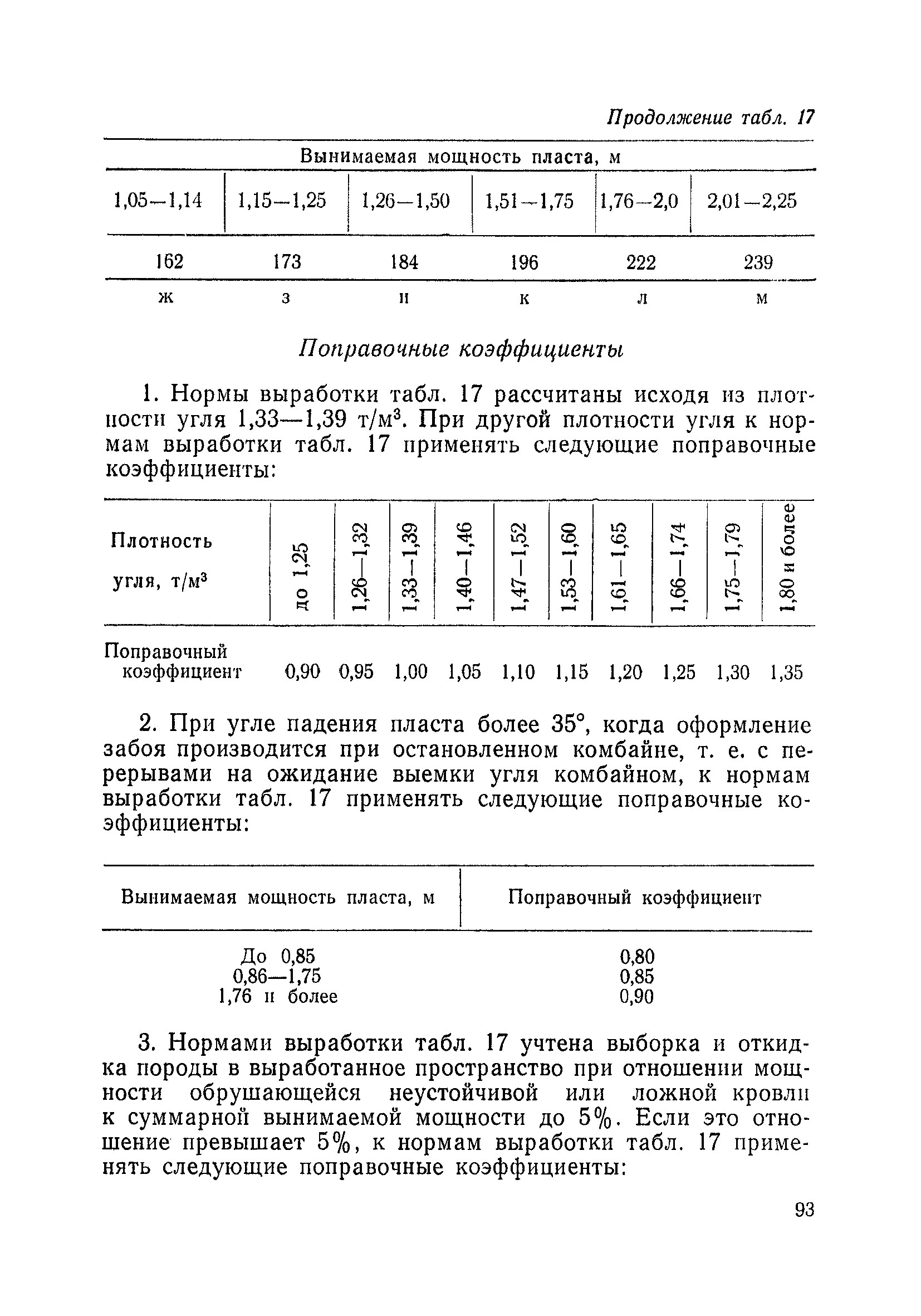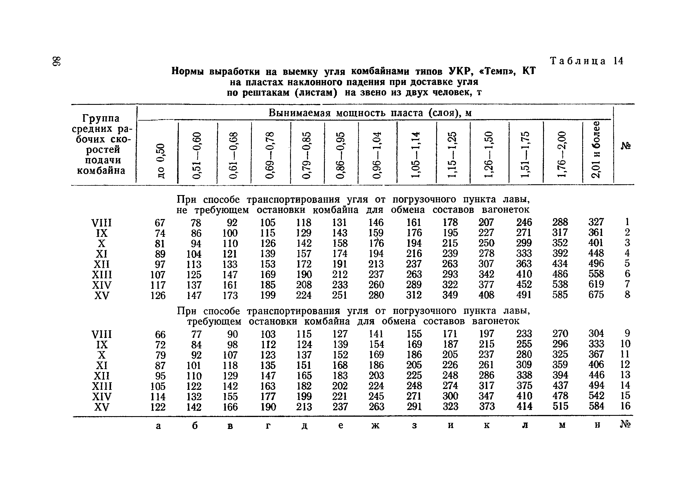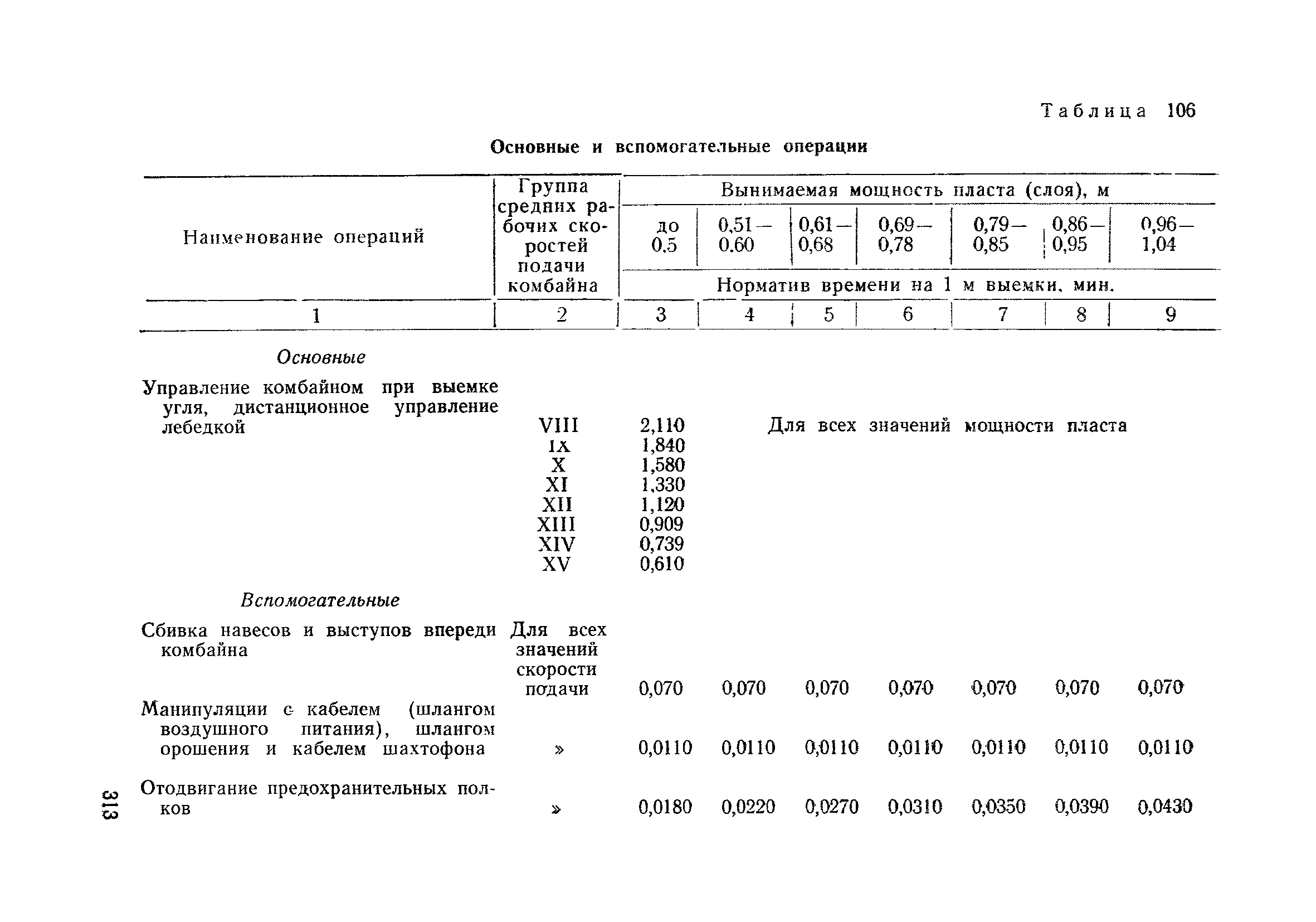 Типовые нормы выработки на очистные работы (кроме агрегатных) для угольных шахт| Статус: | справочные материалы, мп, тпр | | Название рус.: | Типовые нормы выработки на очистные работы (кроме агрегатных) для угольных шахт | | Дата добавления в базу: | 01.01.2019 | | Дата актуализации: | 01.01.2021 | | Область применения: | Типовые нормы выработки на очистные работы для угольных шахт рекомендуются для использования в качестве основы при разработке единых отраслевых и бассейновых норм выработки, а также для применения на предприятиях как местных технически обоснованных норм после утверждения их руководством по согласованию с соответствующим комитетом профсоюза и нормативно-исследовательской станцией производственного объединения (комбината) | | Оглавление: | Общая часть Техническая часть Нормативная часть Глава I. Типовые нормы выработки § 1. Выемка угля агрегатами типа АЩ (АНЩ) в лавах на пластах крутого падения § 2. Выемка угля очистными механизированными комплексами типа КГД в лавах на пластах крутого падения § 3. Передвижка гидрофицированной посадочной крепи «Спутник» § 4. Выемка угля в лавах, оборудованных струговыми установками § 5. Оформление забоя после выемки угля струговыми установками § 6. Передвижка гидродомкратов конвейерного става при выемке угля струговыми установками § 7. Выемка угля узкозахватным комбайном типа КШ и подготовка его к выемке следующей полосы угля § 8. Оформление забоя после выемки угля узкозахватным комбайном типа КШ § 9. Выемка угля узкозахватными комбайнами типов 1К-101, 2К-52, МК-67, БК-52 и подготовка комбайна к выемке следующей полосы угля в лавах на пластах пологого и наклонного падения § 10. Оформление забоя после выемки угля узкозахватными комбайнами типов 1К-101, 2К-52, МК-67 и ВК-52 § 11. Выемка угля комбайнами типов УКР, «Темп», КТ в лавах на пластах наклонного и крутого падения § 12. Спуск (перегон) комбайнов типов УКР, «Темп», КТ в лавах на пластах наклонного и крутого падения с передвижной кран-балки § 13. Передвижка предохранительной лебедки 1ЛГКН § 14. Оформление забоя после выемки угля комбайнами типов УКР, «Темп», КТ в лавах на пластах наклонного падения § 15. Выемка угля в лавах комбайном типа «Урал-2М» и подготовка его к выемке следующей полосы угля § 16. Оформление забоя после выемки угля комбайном типа «Урал-2М» § 17. Выемка угля широкозахватными комбайнами в лавах на пологих и наклонных пластах § 18. Демонтаж, монтаж, перегон и разворот широкозахватных комбайнов в лавах на пологих и наклонных пластах § 19. Оформление забоев после выемки угля широкозахватными комбайнами § 20. Зарубка угля в лавах врубовыми машинами § 21. Перегон (спуск) врубовых машин § 22. Навалоотбойка, навалка угля § 23. Бурение шпуров по углю ручными электросверлами (пневмосверлами) в лавах и камерах § 24. Бурение длинных шпуров ручными электросверлами с принудительной подачей при безлюдной выемке угля на пластах крутого падения § 25. Уборка угля в очистных забоях с помощью скреперной установки § 26. Передвижка скреперной установки § 27. Выемка угля отбойными молотками § 28. Выемка угля с применением ВМ в очистных забоях на пластах крутого падения § 29. Выемка угля под жесткими и эластичными щитами § 30. Выемка угля под арочными щитами § 31. Крепление очистных забоев металлическими (клиновыми и гидравлическими) стойками на пластах пологого и наклонного падения § 32. К