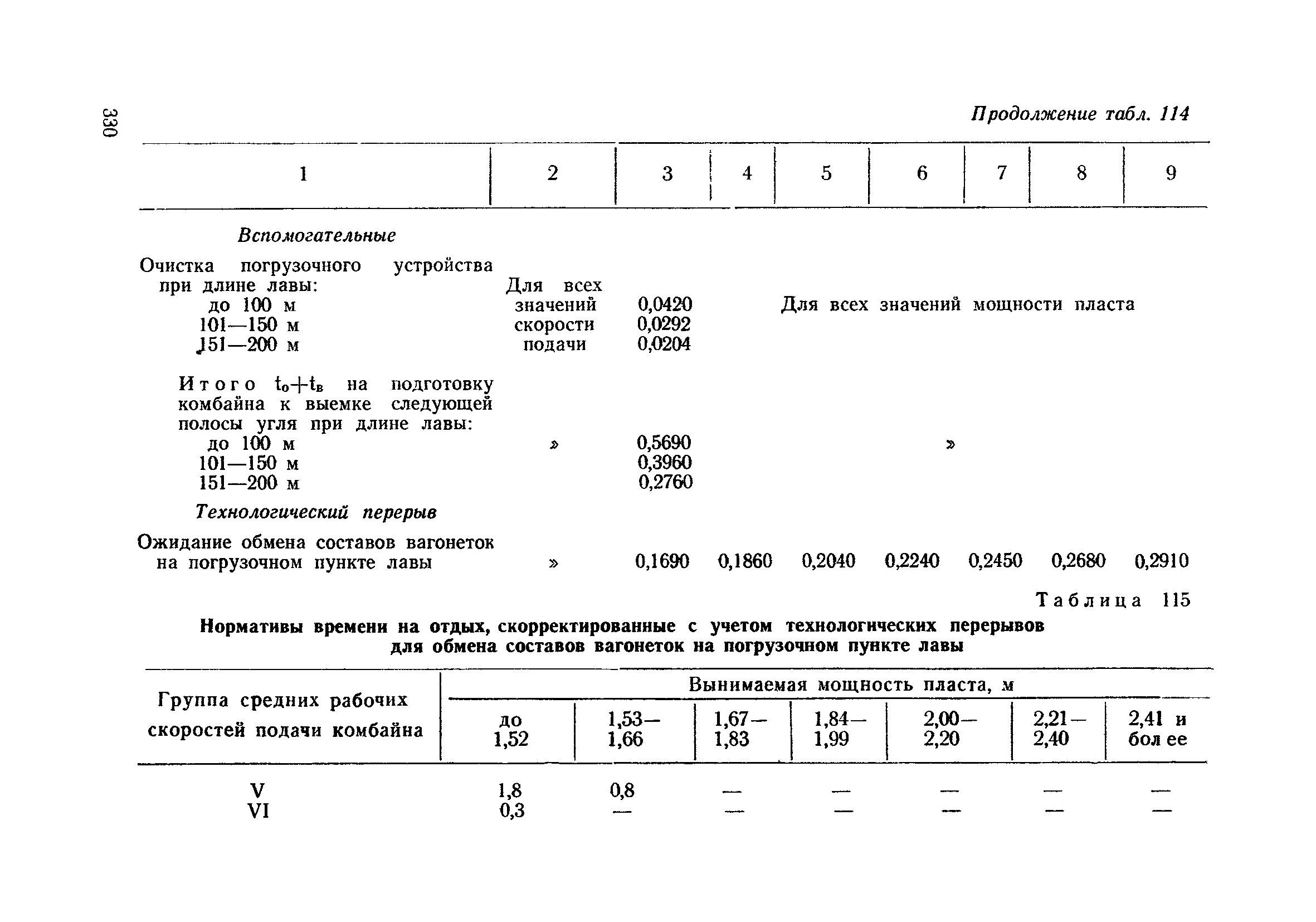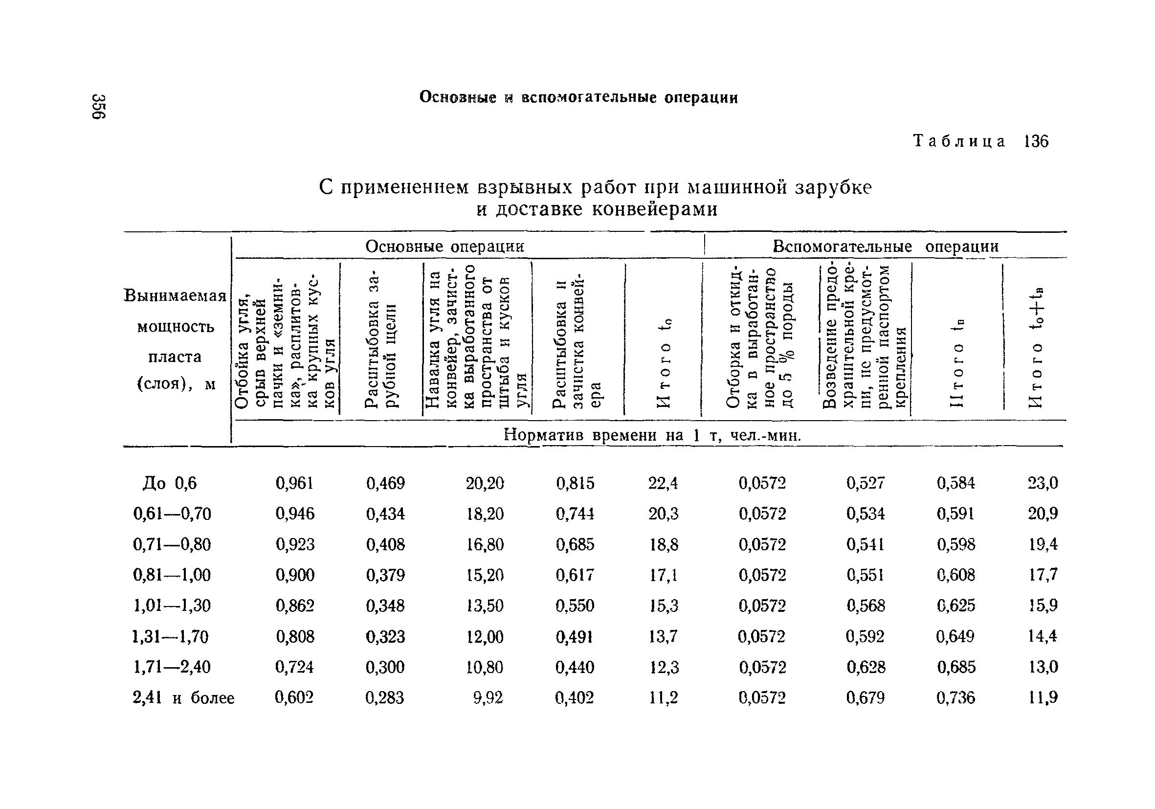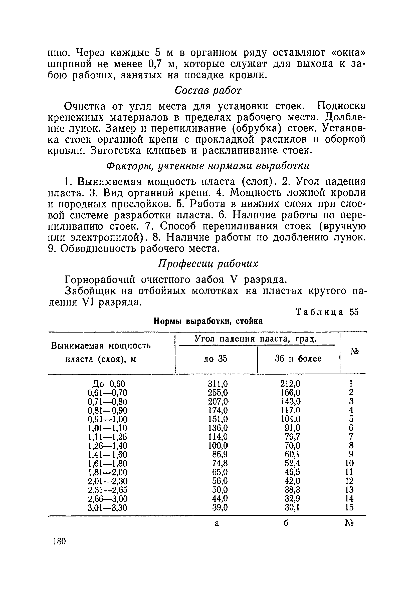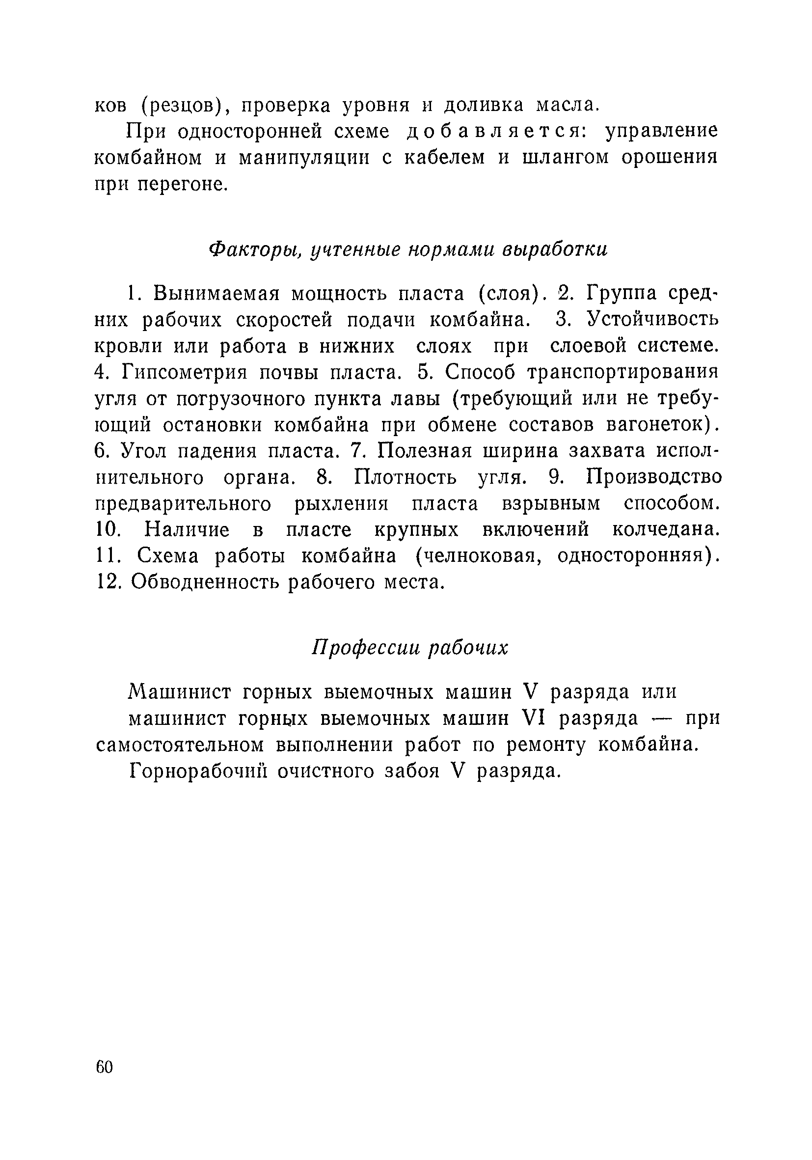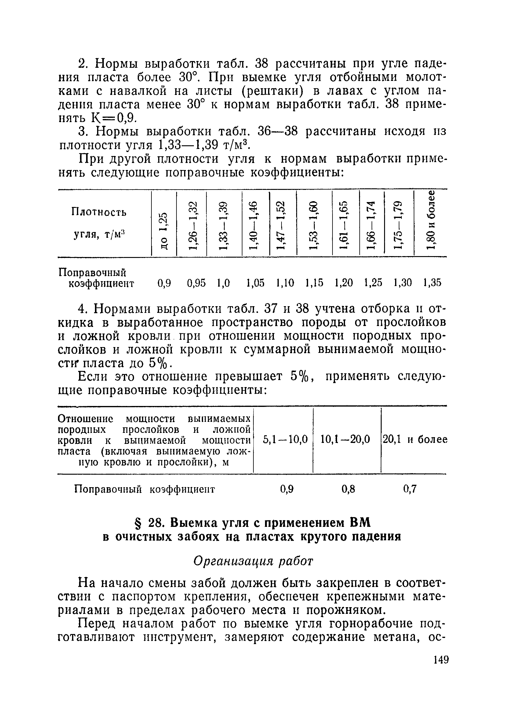 Типовые нормы выработки на очистные работы (кроме агрегатных) для угольных шахт| Статус: | справочные материалы, мп, тпр | | Название рус.: | Типовые нормы выработки на очистные работы (кроме агрегатных) для угольных шахт | | Дата добавления в базу: | 01.01.2019 | | Дата актуализации: | 01.01.2021 | | Область применения: | Типовые нормы выработки на очистные работы для угольных шахт рекомендуются для использования в качестве основы при разработке единых отраслевых и бассейновых норм выработки, а также для применения на предприятиях как местных технически обоснованных норм после утверждения их руководством по согласованию с соответствующим комитетом профсоюза и нормативно-исследовательской станцией производственного объединения (комбината) | | Оглавление: | Общая часть Техническая часть Нормативная часть Глава I. Типовые нормы выработки § 1. Выемка угля агрегатами типа АЩ (АНЩ) в лавах на пластах крутого падения § 2. Выемка угля очистными механизированными комплексами типа КГД в лавах на пластах крутого падения § 3. Передвижка гидрофицированной посадочной крепи «Спутник» § 4. Выемка угля в лавах, оборудованных струговыми установками § 5. Оформление забоя после выемки угля струговыми установками § 6. Передвижка гидродомкратов конвейерного става при выемке угля струговыми установками § 7. Выемка угля узкозахватным комбайном типа КШ и подготовка его к выемке следующей полосы угля § 8. Оформление забоя после выемки угля узкозахватным комбайном типа КШ § 9. Выемка угля узкозахватными комбайнами типов 1К-101, 2К-52, МК-67, БК-52 и подготовка комбайна к выемке следующей полосы угля в лавах на пластах пологого и наклонного падения § 10. Оформление забоя после выемки угля узкозахватными комбайнами типов 1К-101, 2К-52, МК-67 и ВК-52 § 11. Выемка угля комбайнами типов УКР, «Темп», КТ в лавах на пластах наклонного и крутого падения § 12. Спуск (перегон) комбайнов типов УКР, «Темп», КТ в лавах на пластах наклонного и крутого падения с передвижной кран-балки § 13. Передвижка предохранительной лебедки 1ЛГКН § 14. Оформление забоя после выемки угля комбайнами типов УКР, «Темп», КТ в лавах на пластах наклонного падения § 15. Выемка угля в лавах комбайном типа «Урал-2М» и подготовка его к выемке следующей полосы угля § 16. Оформление забоя после выемки угля комбайном типа «Урал-2М» § 17. Выемка угля широкозахватными комбайнами в лавах на пологих и наклонных пластах § 18. Демонтаж, монтаж, перегон и разворот широкозахватных комбайнов в лавах на пологих и наклонных пластах § 19. Оформление забоев после выемки угля широкозахватными комбайнами § 20. Зарубка угля в лавах врубовыми машинами § 21. Перегон (спуск) врубовых машин § 22. Навалоотбойка, навалка угля § 23. Бурение шпуров по углю ручными электросверлами (пневмосверлами) в лавах и камерах § 24. Бурение длинных шпуров ручными электросверлами с принудительной подачей при безлюдной выемке угля на пластах крутого падения § 25. Уборка угля в очистных забоях с помощью скреперной установки § 26. Передвижка скреперной установки § 27. Выемка угля отбойными молотками § 28. Выемка угля с применением ВМ в очистных забоях на пластах крутого падения § 29. Выемка угля под жесткими и эластичными щитами § 30. Выемка угля под арочными щитами § 31. Крепление очистных забоев металлическими (клиновыми и гидравлическими) стойками на пластах пологого и наклонного падения § 32. К