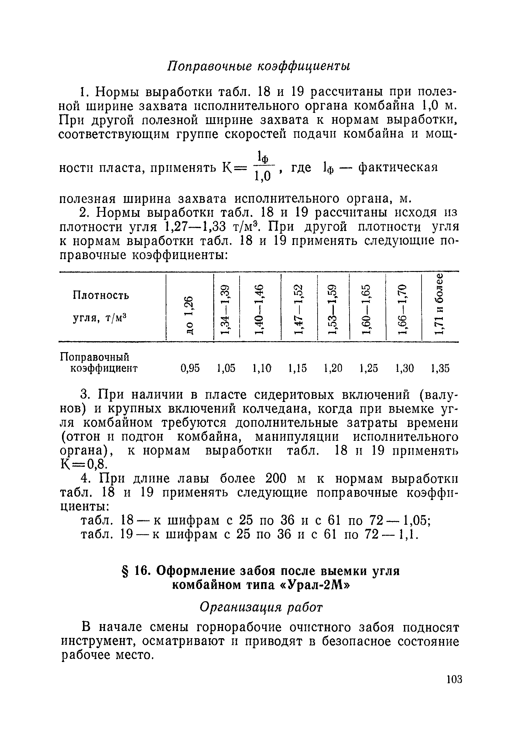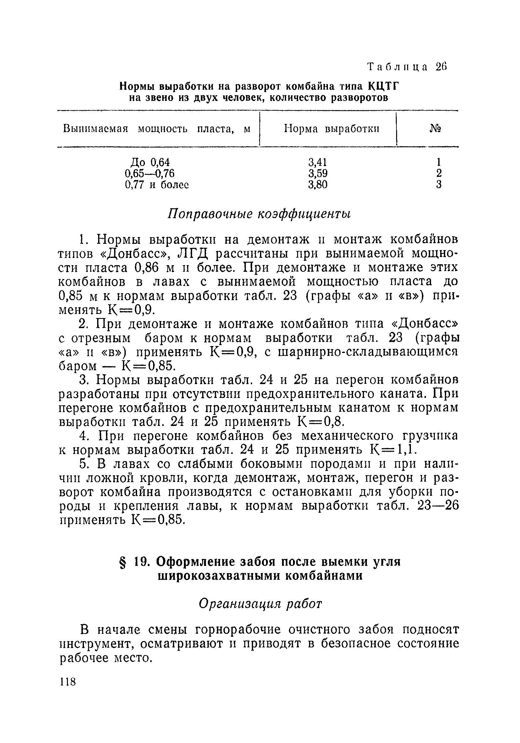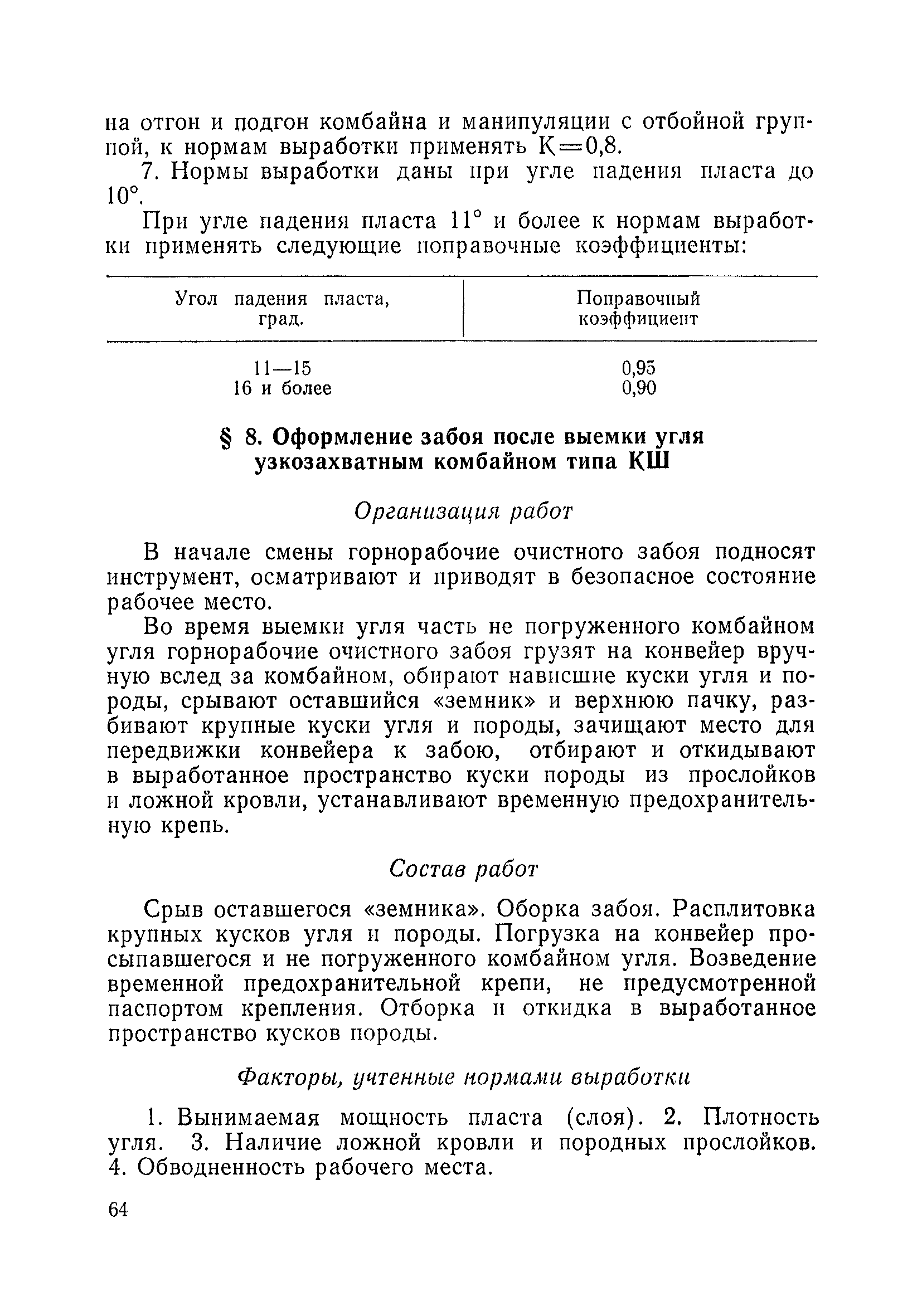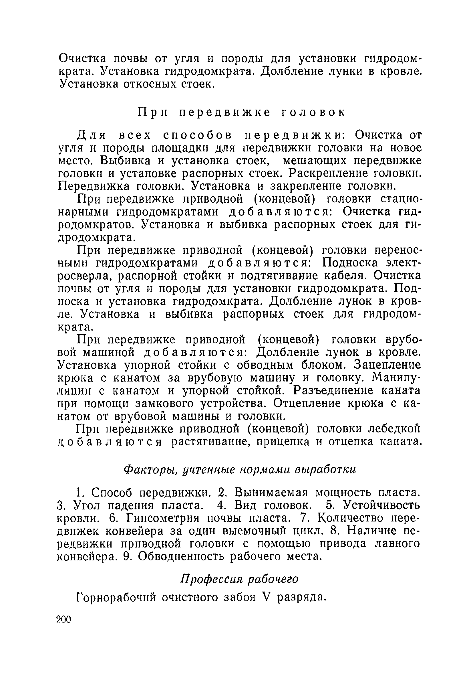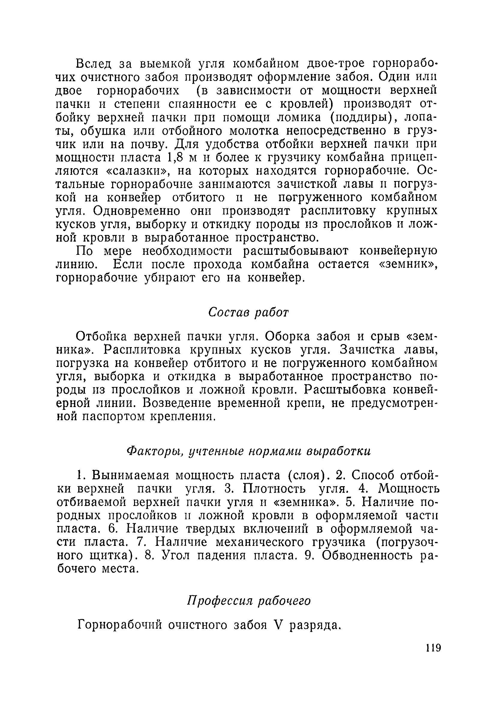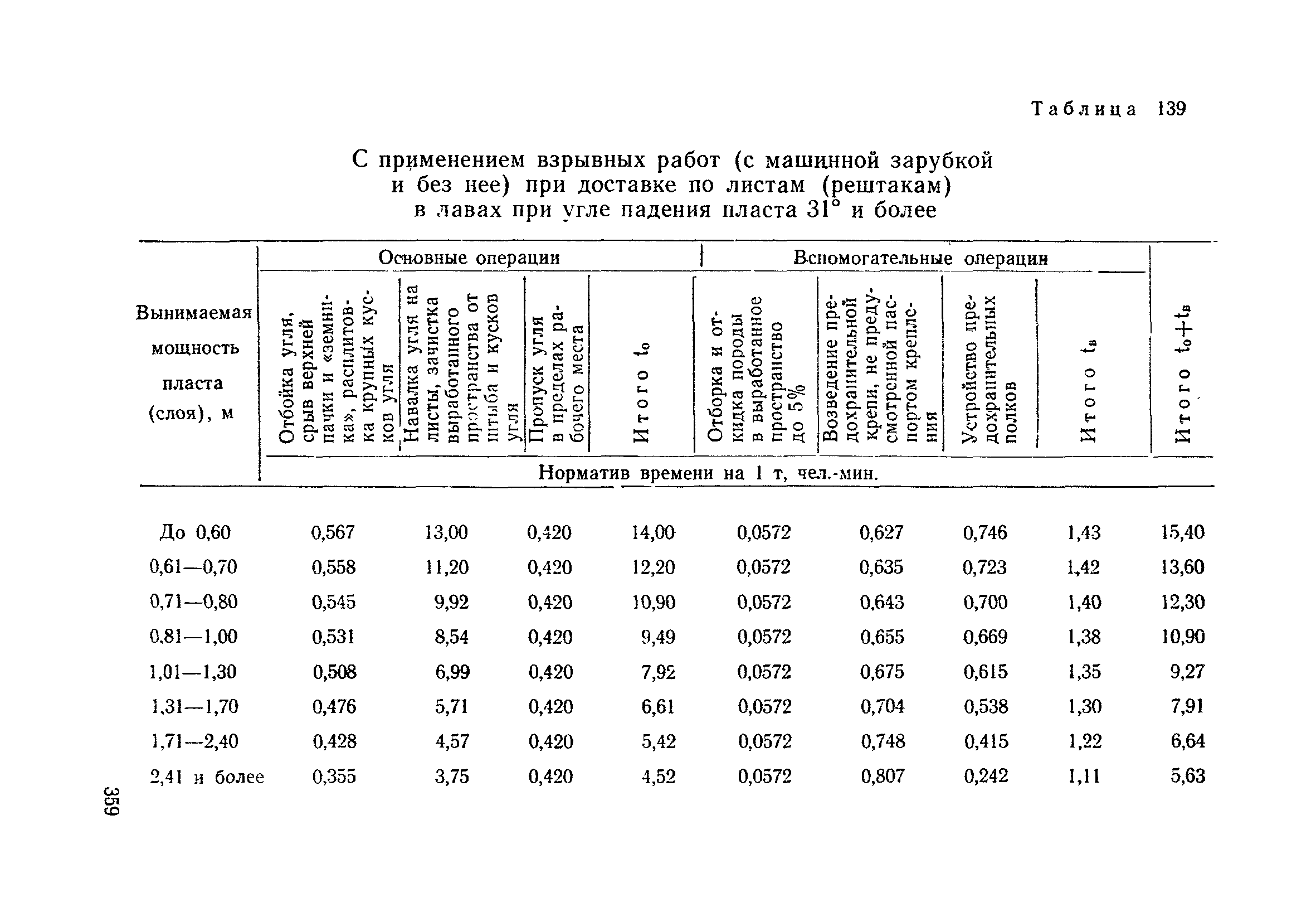 Типовые нормы выработки на очистные работы (кроме агрегатных) для угольных шахт| Статус: | справочные материалы, мп, тпр | | Название рус.: | Типовые нормы выработки на очистные работы (кроме агрегатных) для угольных шахт | | Дата добавления в базу: | 01.01.2019 | | Дата актуализации: | 01.01.2021 | | Область применения: | Типовые нормы выработки на очистные работы для угольных шахт рекомендуются для использования в качестве основы при разработке единых отраслевых и бассейновых норм выработки, а также для применения на предприятиях как местных технически обоснованных норм после утверждения их руководством по согласованию с соответствующим комитетом профсоюза и нормативно-исследовательской станцией производственного объединения (комбината) | | Оглавление: | Общая часть Техническая часть Нормативная часть Глава I. Типовые нормы выработки § 1. Выемка угля агрегатами типа АЩ (АНЩ) в лавах на пластах крутого падения § 2. Выемка угля очистными механизированными комплексами типа КГД в лавах на пластах крутого падения § 3. Передвижка гидрофицированной посадочной крепи «Спутник» § 4. Выемка угля в лавах, оборудованных струговыми установками § 5. Оформление забоя после выемки угля струговыми установками § 6. Передвижка гидродомкратов конвейерного става при выемке угля струговыми установками § 7. Выемка угля узкозахватным комбайном типа КШ и подготовка его к выемке следующей полосы угля § 8. Оформление забоя после выемки угля узкозахватным комбайном типа КШ § 9. Выемка угля узкозахватными комбайнами типов 1К-101, 2К-52, МК-67, БК-52 и подготовка комбайна к выемке следующей полосы угля в лавах на пластах пологого и наклонного падения § 10. Оформление забоя после выемки угля узкозахватными комбайнами типов 1К-101, 2К-52, МК-67 и ВК-52 § 11. Выемка угля комбайнами типов УКР, «Темп», КТ в лавах на пластах наклонного и крутого падения § 12. Спуск (перегон) комбайнов типов УКР, «Темп», КТ в лавах на пластах наклонного и крутого падения с передвижной кран-балки § 13. Передвижка предохранительной лебедки 1ЛГКН § 14. Оформление забоя после выемки угля комбайнами типов УКР, «Темп», КТ в лавах на пластах наклонного падения § 15. Выемка угля в лавах комбайном типа «Урал-2М» и подготовка его к выемке следующей полосы угля § 16. Оформление забоя после выемки угля комбайном типа «Урал-2М» § 17. Выемка угля широкозахватными комбайнами в лавах на пологих и наклонных пластах § 18. Демонтаж, монтаж, перегон и разворот широкозахватных комбайнов в лавах на пологих и наклонных пластах § 19. Оформление забоев после выемки угля широкозахватными комбайнами § 20. Зарубка угля в лавах врубовыми машинами § 21. Перегон (спуск) врубовых машин § 22. Навалоотбойка, навалка угля § 23. Бурение шпуров по углю ручными электросверлами (пневмосверлами) в лавах и камерах § 24. Бурение длинных шпуров ручными электросверлами с принудительной подачей при безлюдной выемке угля на пластах крутого падения § 25. Уборка угля в очистных забоях с помощью скреперной установки § 26. Передвижка скреперной установки § 27. Выемка угля отбойными молотками § 28. Выемка угля с применением ВМ в очистных забоях на пластах крутого падения § 29. Выемка угля под жесткими и эластичными щитами § 30. Выемка угля под арочными щитами § 31. Крепление очистных забоев металлическими (клиновыми и гидравлическими) стойками на пластах пологого и наклонного падения § 32. К