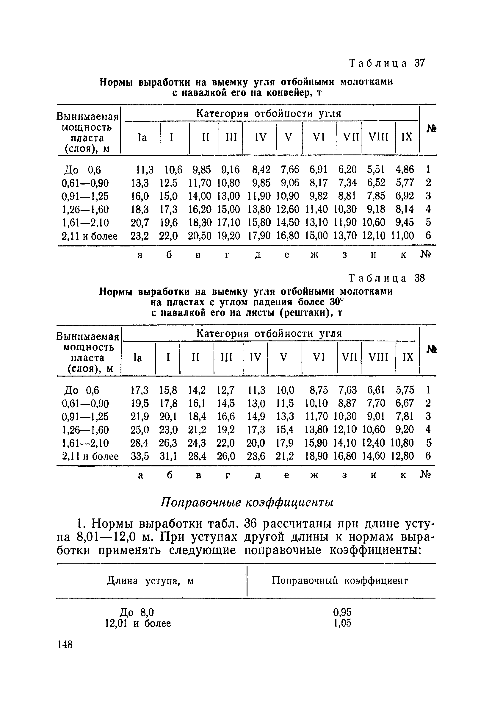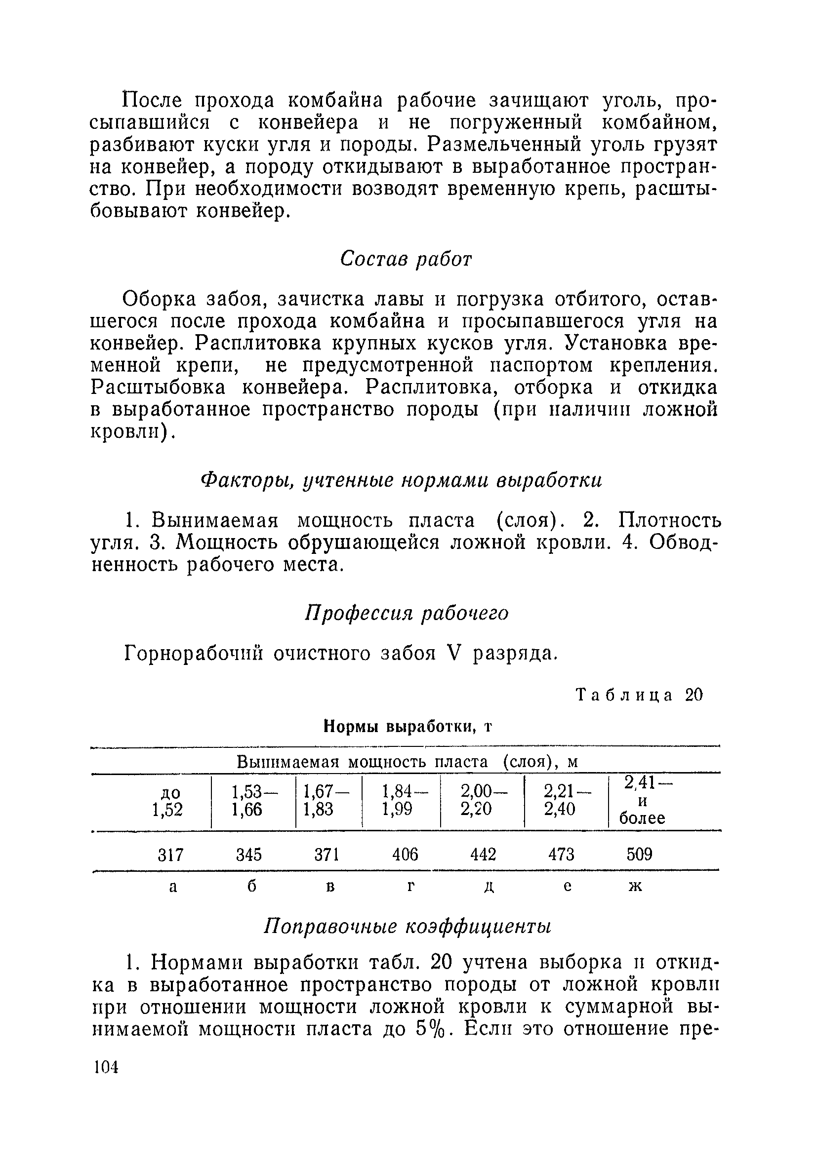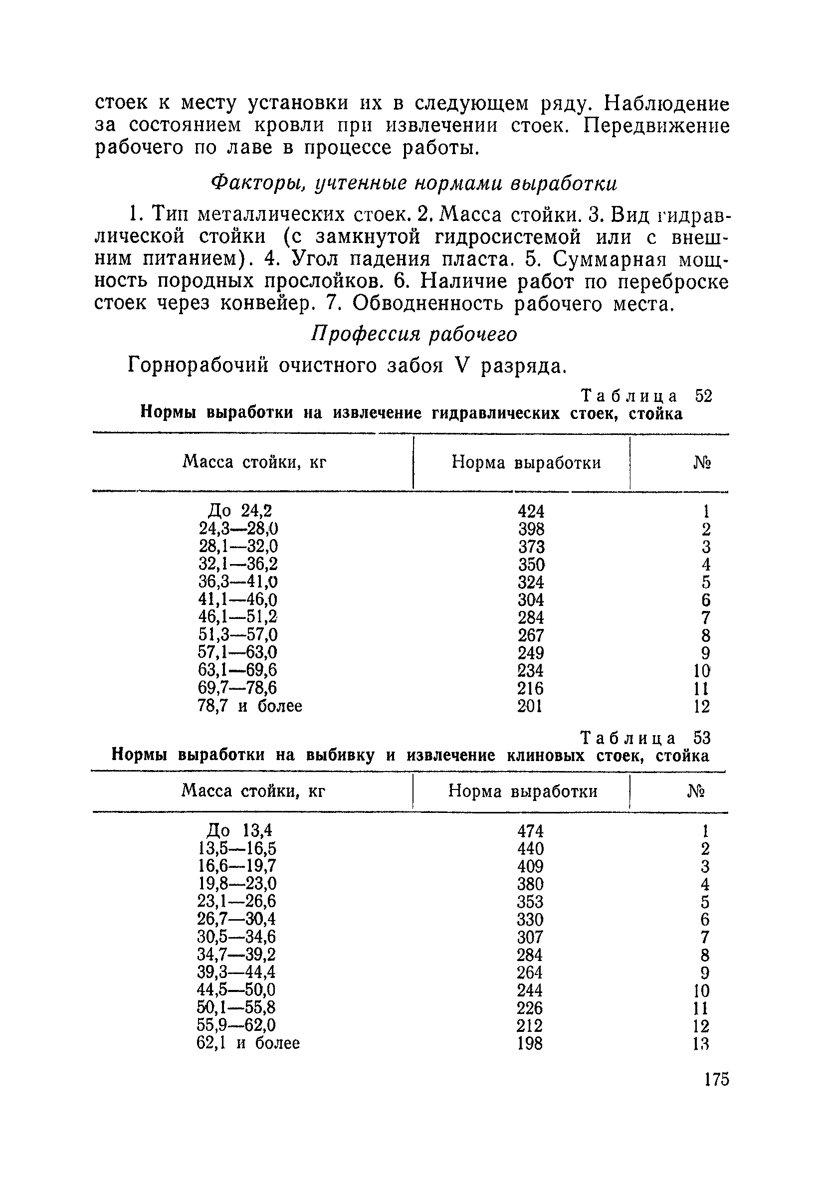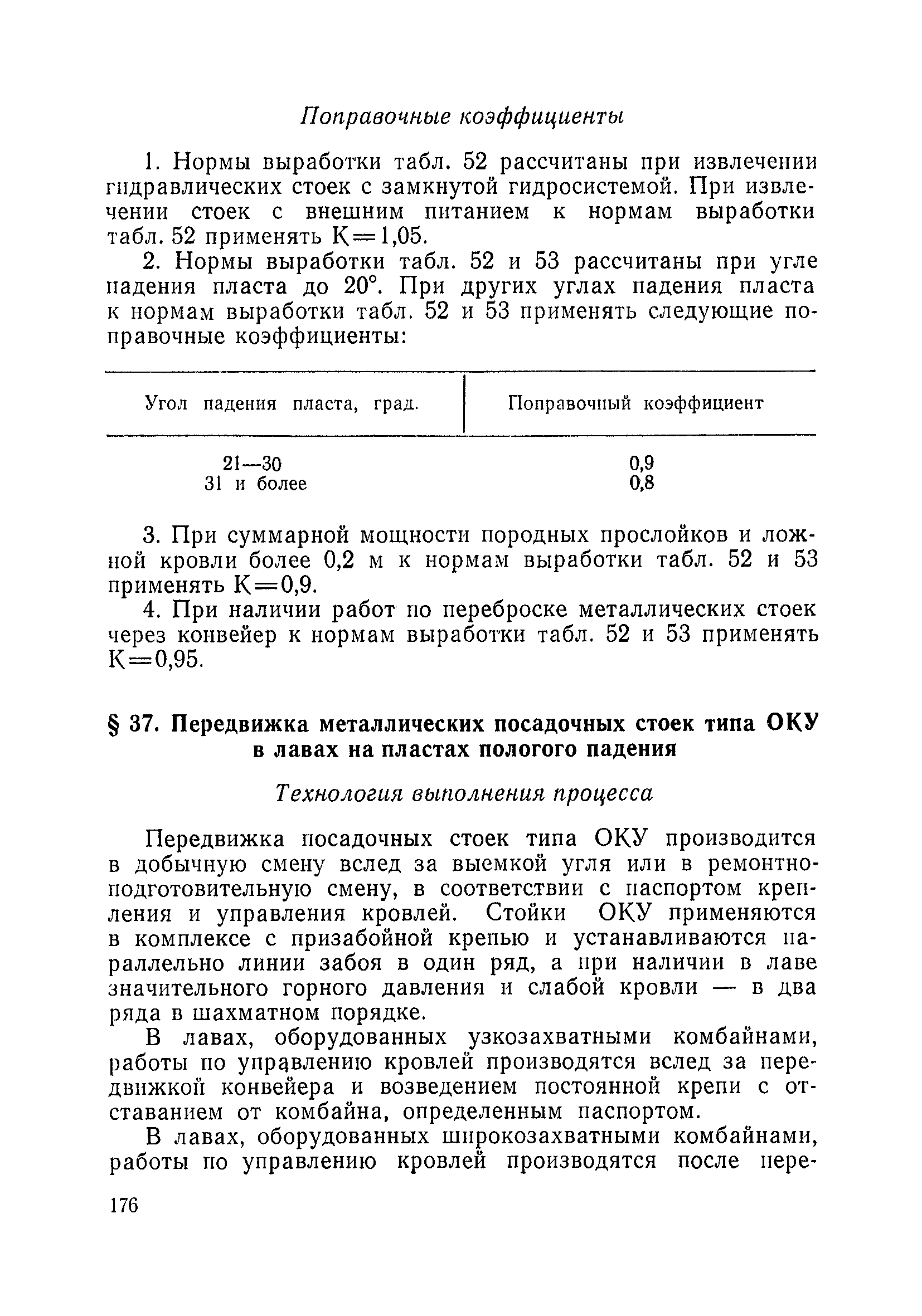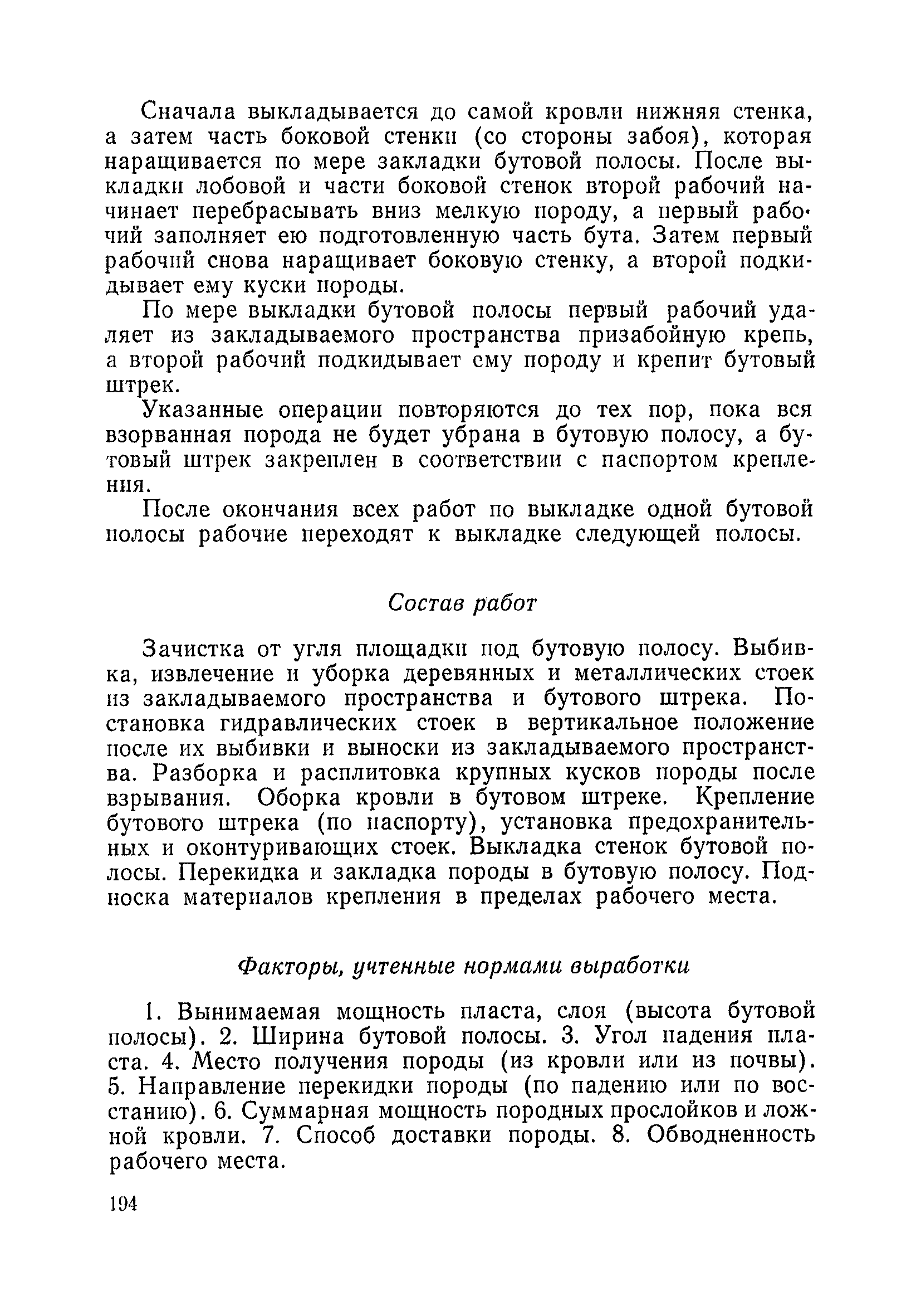 Типовые нормы выработки на очистные работы (кроме агрегатных) для угольных шахт| Статус: | справочные материалы, мп, тпр | | Название рус.: | Типовые нормы выработки на очистные работы (кроме агрегатных) для угольных шахт | | Дата добавления в базу: | 01.01.2019 | | Дата актуализации: | 01.01.2021 | | Область применения: | Типовые нормы выработки на очистные работы для угольных шахт рекомендуются для использования в качестве основы при разработке единых отраслевых и бассейновых норм выработки, а также для применения на предприятиях как местных технически обоснованных норм после утверждения их руководством по согласованию с соответствующим комитетом профсоюза и нормативно-исследовательской станцией производственного объединения (комбината) | | Оглавление: | Общая часть Техническая часть Нормативная часть Глава I. Типовые нормы выработки § 1. Выемка угля агрегатами типа АЩ (АНЩ) в лавах на пластах крутого падения § 2. Выемка угля очистными механизированными комплексами типа КГД в лавах на пластах крутого падения § 3. Передвижка гидрофицированной посадочной крепи «Спутник» § 4. Выемка угля в лавах, оборудованных струговыми установками § 5. Оформление забоя после выемки угля струговыми установками § 6. Передвижка гидродомкратов конвейерного става при выемке угля струговыми установками § 7. Выемка угля узкозахватным комбайном типа КШ и подготовка его к выемке следующей полосы угля § 8. Оформление забоя после выемки угля узкозахватным комбайном типа КШ § 9. Выемка угля узкозахватными комбайнами типов 1К-101, 2К-52, МК-67, БК-52 и подготовка комбайна к выемке следующей полосы угля в лавах на пластах пологого и наклонного падения § 10. Оформление забоя после выемки угля узкозахватными комбайнами типов 1К-101, 2К-52, МК-67 и ВК-52 § 11. Выемка угля комбайнами типов УКР, «Темп», КТ в лавах на пластах наклонного и крутого падения § 12. Спуск (перегон) комбайнов типов УКР, «Темп», КТ в лавах на пластах наклонного и крутого падения с передвижной кран-балки § 13. Передвижка предохранительной лебедки 1ЛГКН § 14. Оформление забоя после выемки угля комбайнами типов УКР, «Темп», КТ в лавах на пластах наклонного падения § 15. Выемка угля в лавах комбайном типа «Урал-2М» и подготовка его к выемке следующей полосы угля § 16. Оформление забоя после выемки угля комбайном типа «Урал-2М» § 17. Выемка угля широкозахватными комбайнами в лавах на пологих и наклонных пластах § 18. Демонтаж, монтаж, перегон и разворот широкозахватных комбайнов в лавах на пологих и наклонных пластах § 19. Оформление забоев после выемки угля широкозахватными комбайнами § 20. Зарубка угля в лавах врубовыми машинами § 21. Перегон (спуск) врубовых машин § 22. Навалоотбойка, навалка угля § 23. Бурение шпуров по углю ручными электросверлами (пневмосверлами) в лавах и камерах § 24. Бурение длинных шпуров ручными электросверлами с принудительной подачей при безлюдной выемке угля на пластах крутого падения § 25. Уборка угля в очистных забоях с помощью скреперной установки § 26. Передвижка скреперной установки § 27. Выемка угля отбойными молотками § 28. Выемка угля с применением ВМ в очистных забоях на пластах крутого падения § 29. Выемка угля под жесткими и эластичными щитами § 30. Выемка угля под арочными щитами § 31. Крепление очистных забоев металлическими (клиновыми и гидравлическими) стойками на пластах пологого и наклонного падения § 32. К