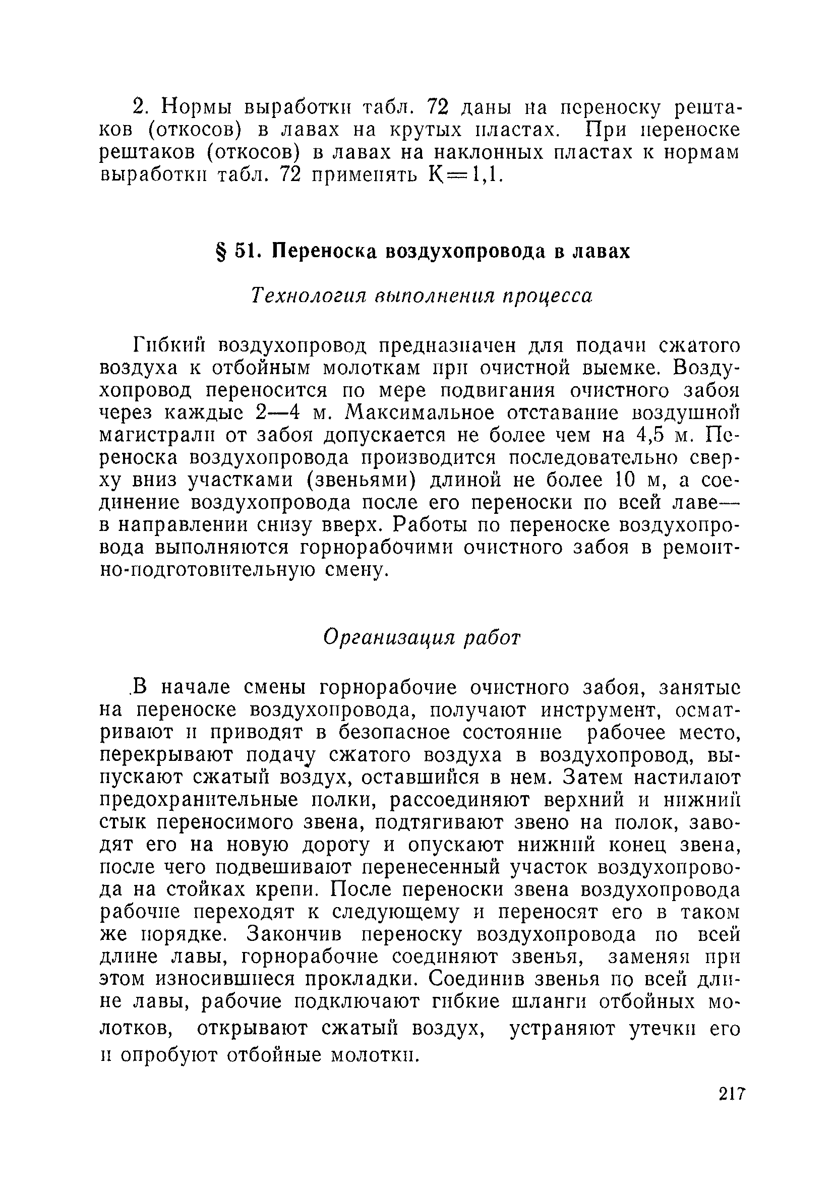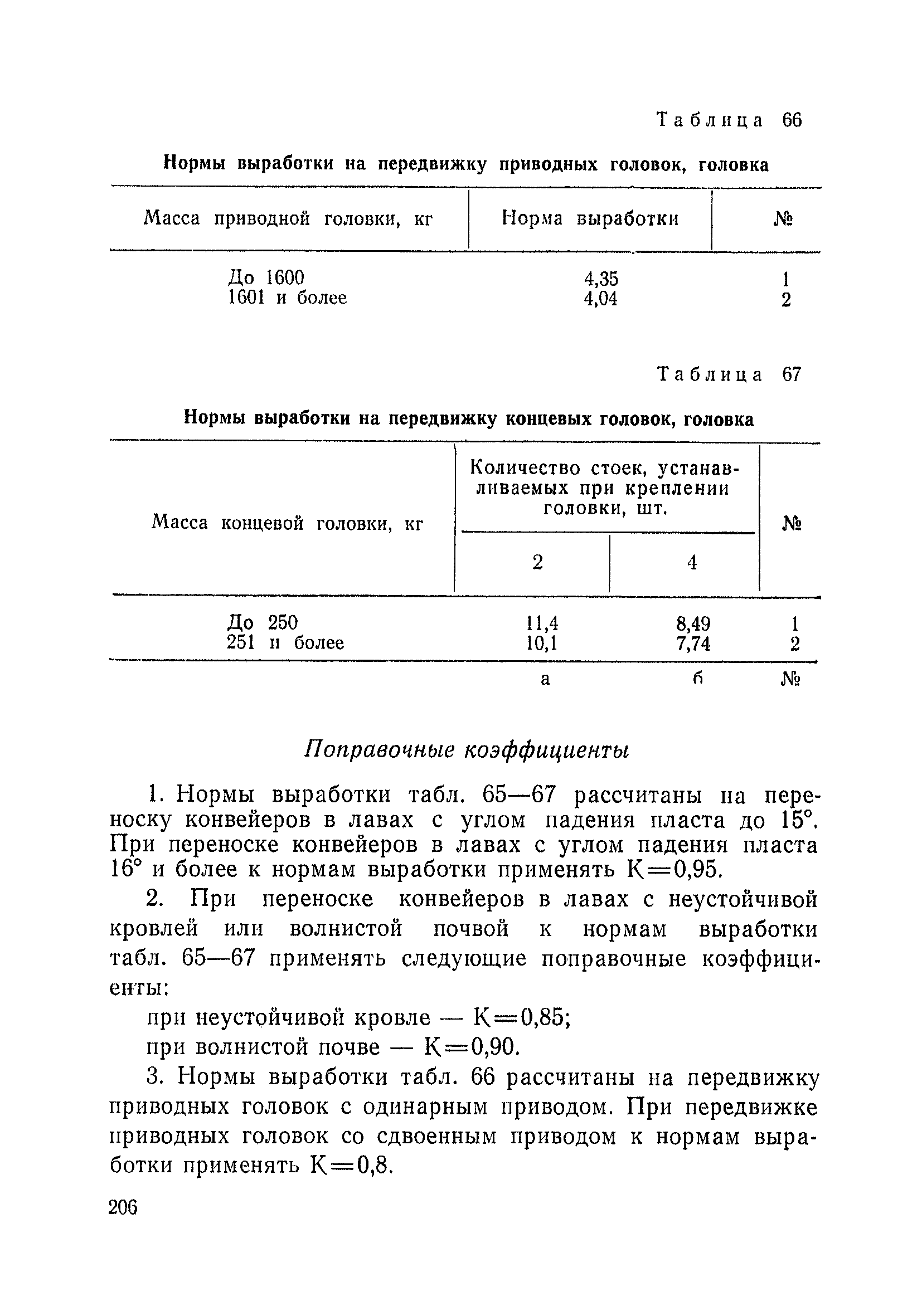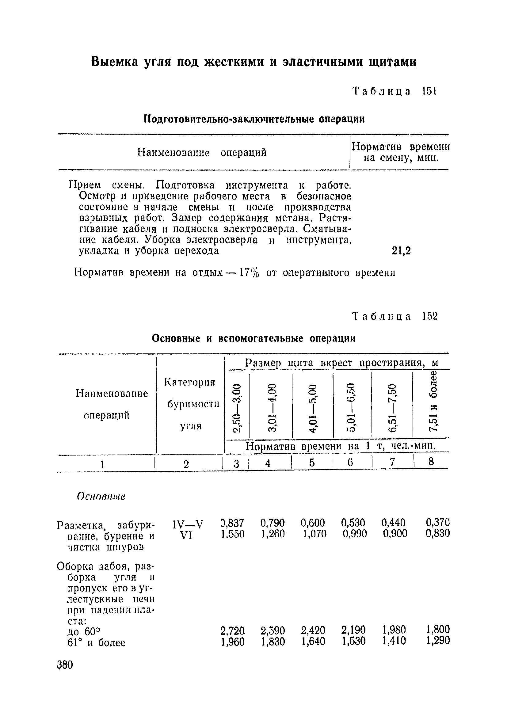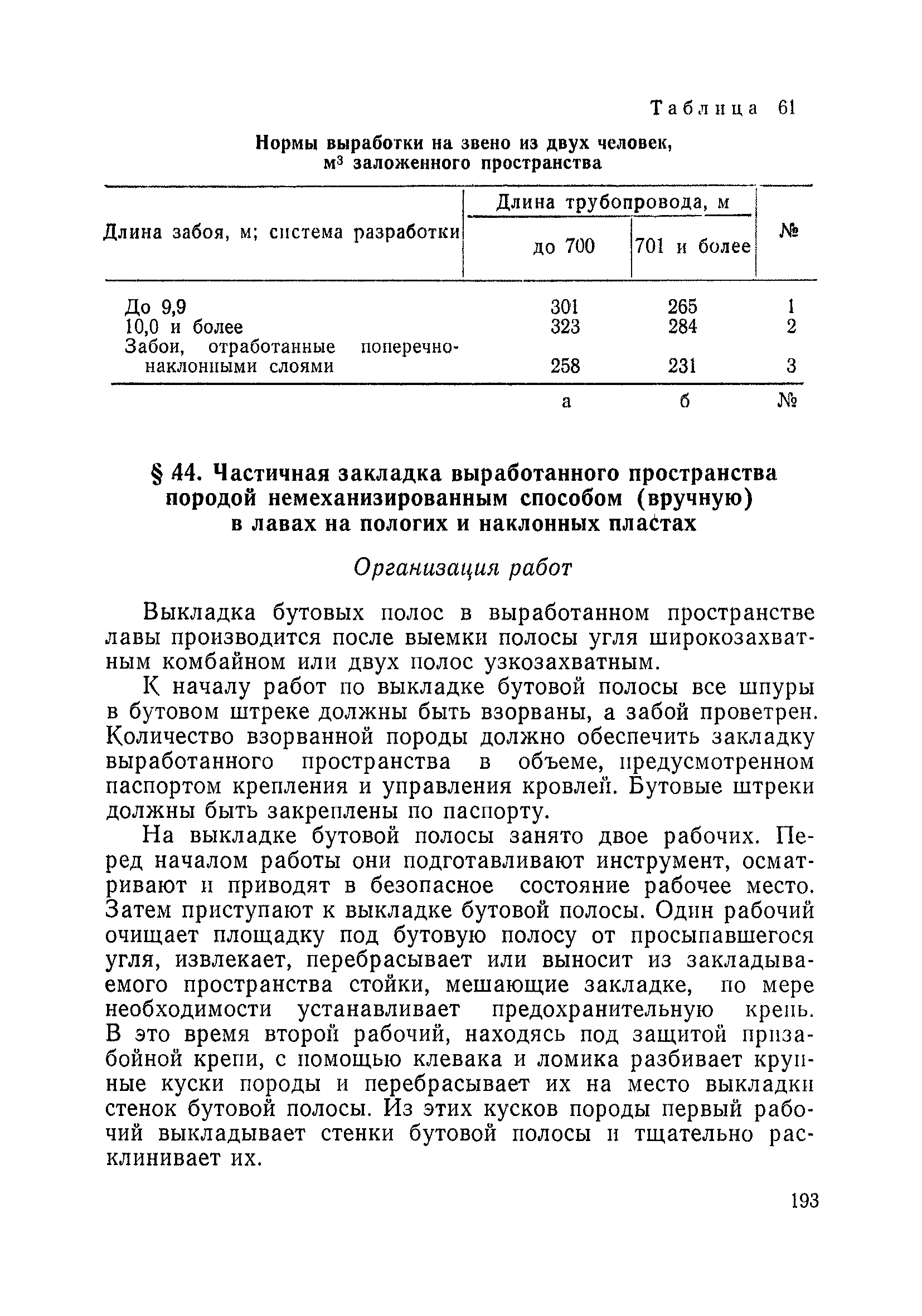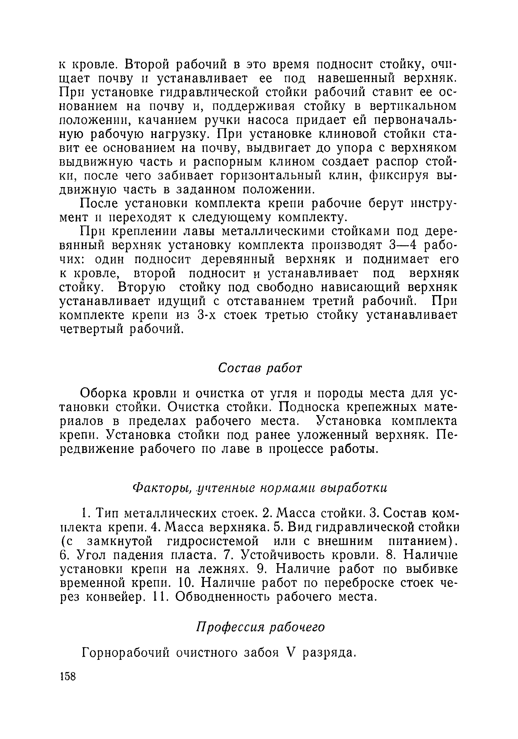 Типовые нормы выработки на очистные работы (кроме агрегатных) для угольных шахт| Статус: | справочные материалы, мп, тпр | | Название рус.: | Типовые нормы выработки на очистные работы (кроме агрегатных) для угольных шахт | | Дата добавления в базу: | 01.01.2019 | | Дата актуализации: | 01.01.2021 | | Область применения: | Типовые нормы выработки на очистные работы для угольных шахт рекомендуются для использования в качестве основы при разработке единых отраслевых и бассейновых норм выработки, а также для применения на предприятиях как местных технически обоснованных норм после утверждения их руководством по согласованию с соответствующим комитетом профсоюза и нормативно-исследовательской станцией производственного объединения (комбината) | | Оглавление: | Общая часть Техническая часть Нормативная часть Глава I. Типовые нормы выработки § 1. Выемка угля агрегатами типа АЩ (АНЩ) в лавах на пластах крутого падения § 2. Выемка угля очистными механизированными комплексами типа КГД в лавах на пластах крутого падения § 3. Передвижка гидрофицированной посадочной крепи «Спутник» § 4. Выемка угля в лавах, оборудованных струговыми установками § 5. Оформление забоя после выемки угля струговыми установками § 6. Передвижка гидродомкратов конвейерного става при выемке угля струговыми установками § 7. Выемка угля узкозахватным комбайном типа КШ и подготовка его к выемке следующей полосы угля § 8. Оформление забоя после выемки угля узкозахватным комбайном типа КШ § 9. Выемка угля узкозахватными комбайнами типов 1К-101, 2К-52, МК-67, БК-52 и подготовка комбайна к выемке следующей полосы угля в лавах на пластах пологого и наклонного падения § 10. Оформление забоя после выемки угля узкозахватными комбайнами типов 1К-101, 2К-52, МК-67 и ВК-52 § 11. Выемка угля комбайнами типов УКР, «Темп», КТ в лавах на пластах наклонного и крутого падения § 12. Спуск (перегон) комбайнов типов УКР, «Темп», КТ в лавах на пластах наклонного и крутого падения с передвижной кран-балки § 13. Передвижка предохранительной лебедки 1ЛГКН § 14. Оформление забоя после выемки угля комбайнами типов УКР, «Темп», КТ в лавах на пластах наклонного падения § 15. Выемка угля в лавах комбайном типа «Урал-2М» и подготовка его к выемке следующей полосы угля § 16. Оформление забоя после выемки угля комбайном типа «Урал-2М» § 17. Выемка угля широкозахватными комбайнами в лавах на пологих и наклонных пластах § 18. Демонтаж, монтаж, перегон и разворот широкозахватных комбайнов в лавах на пологих и наклонных пластах § 19. Оформление забоев после выемки угля широкозахватными комбайнами § 20. Зарубка угля в лавах врубовыми машинами § 21. Перегон (спуск) врубовых машин § 22. Навалоотбойка, навалка угля § 23. Бурение шпуров по углю ручными электросверлами (пневмосверлами) в лавах и камерах § 24. Бурение длинных шпуров ручными электросверлами с принудительной подачей при безлюдной выемке угля на пластах крутого падения § 25. Уборка угля в очистных забоях с помощью скреперной установки § 26. Передвижка скреперной установки § 27. Выемка угля отбойными молотками § 28. Выемка угля с применением ВМ в очистных забоях на пластах крутого падения § 29. Выемка угля под жесткими и эластичными щитами § 30. Выемка угля под арочными щитами § 31. Крепление очистных забоев металлическими (клиновыми и гидравлическими) стойками на пластах пологого и наклонного падения § 32. К