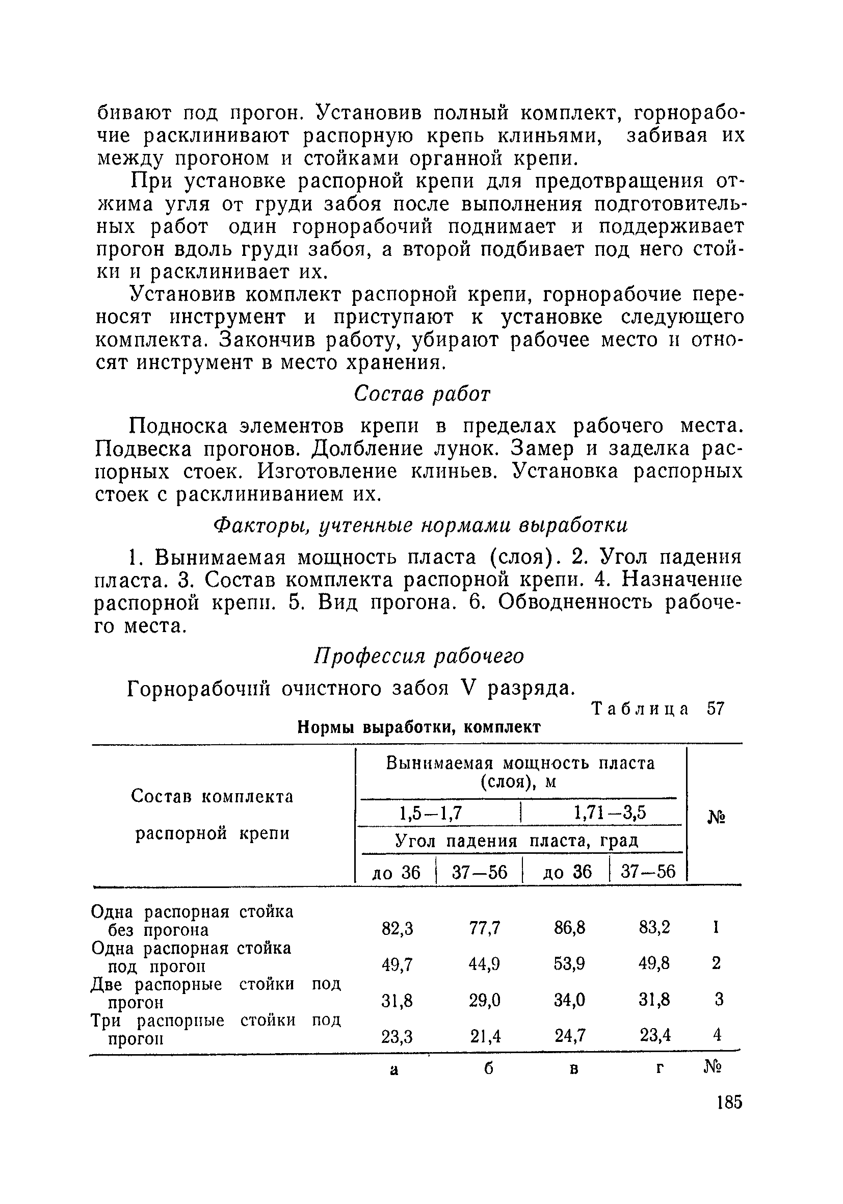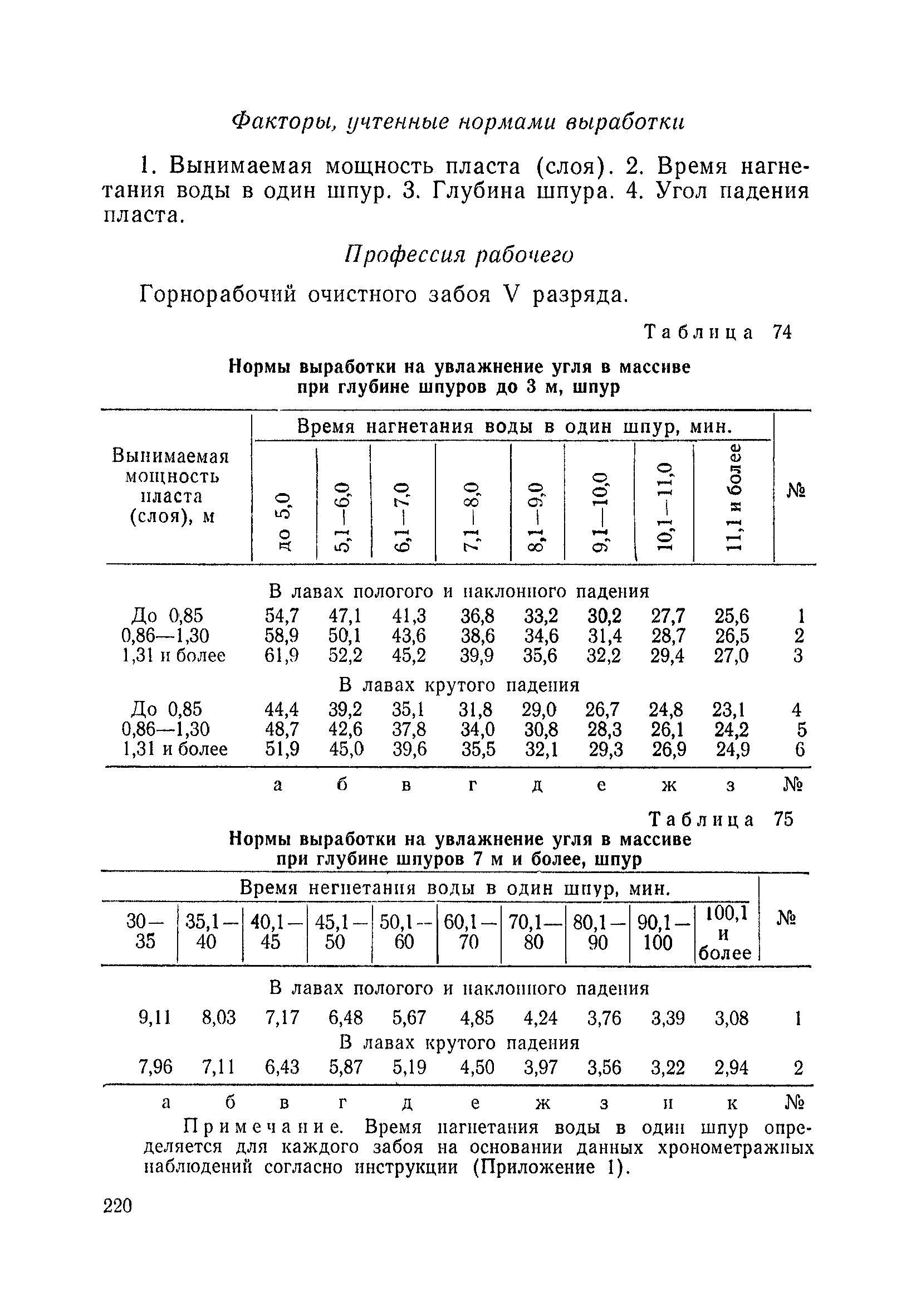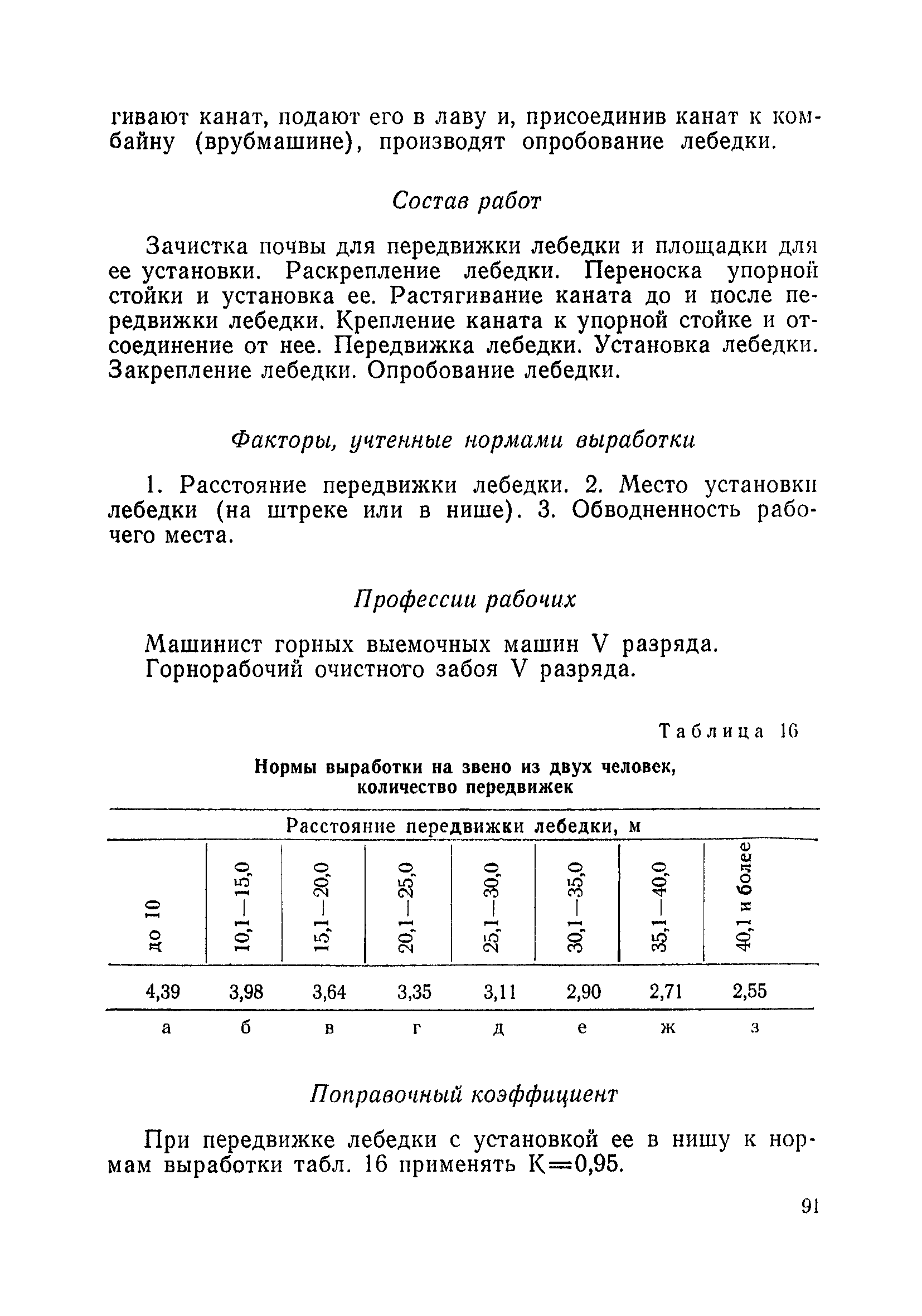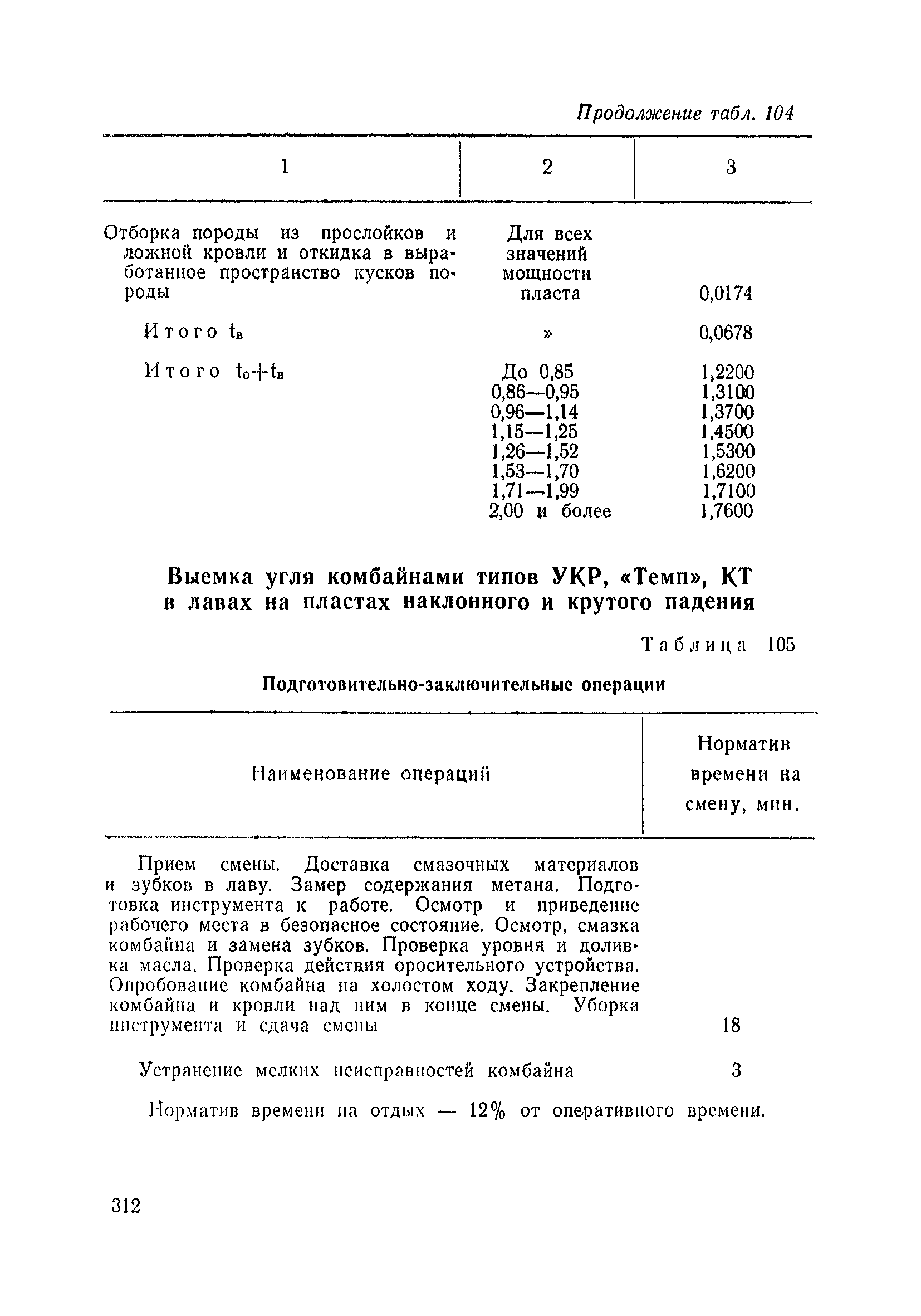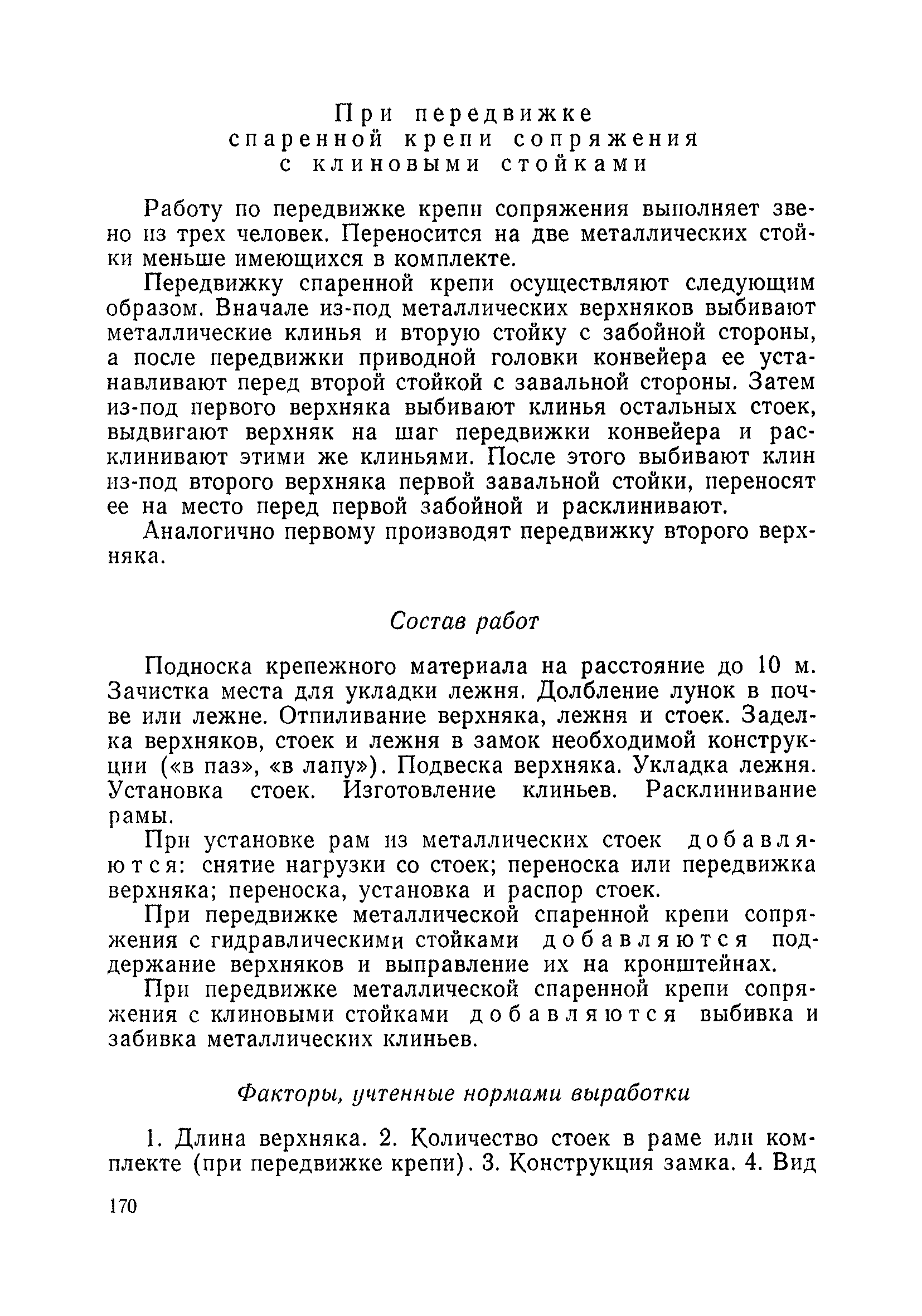 Типовые нормы выработки на очистные работы (кроме агрегатных) для угольных шахт| Статус: | справочные материалы, мп, тпр | | Название рус.: | Типовые нормы выработки на очистные работы (кроме агрегатных) для угольных шахт | | Дата добавления в базу: | 01.01.2019 | | Дата актуализации: | 01.01.2021 | | Область применения: | Типовые нормы выработки на очистные работы для угольных шахт рекомендуются для использования в качестве основы при разработке единых отраслевых и бассейновых норм выработки, а также для применения на предприятиях как местных технически обоснованных норм после утверждения их руководством по согласованию с соответствующим комитетом профсоюза и нормативно-исследовательской станцией производственного объединения (комбината) | | Оглавление: | Общая часть Техническая часть Нормативная часть Глава I. Типовые нормы выработки § 1. Выемка угля агрегатами типа АЩ (АНЩ) в лавах на пластах крутого падения § 2. Выемка угля очистными механизированными комплексами типа КГД в лавах на пластах крутого падения § 3. Передвижка гидрофицированной посадочной крепи «Спутник» § 4. Выемка угля в лавах, оборудованных струговыми установками § 5. Оформление забоя после выемки угля струговыми установками § 6. Передвижка гидродомкратов конвейерного става при выемке угля струговыми установками § 7. Выемка угля узкозахватным комбайном типа КШ и подготовка его к выемке следующей полосы угля § 8. Оформление забоя после выемки угля узкозахватным комбайном типа КШ § 9. Выемка угля узкозахватными комбайнами типов 1К-101, 2К-52, МК-67, БК-52 и подготовка комбайна к выемке следующей полосы угля в лавах на пластах пологого и наклонного падения § 10. Оформление забоя после выемки угля узкозахватными комбайнами типов 1К-101, 2К-52, МК-67 и ВК-52 § 11. Выемка угля комбайнами типов УКР, «Темп», КТ в лавах на пластах наклонного и крутого падения § 12. Спуск (перегон) комбайнов типов УКР, «Темп», КТ в лавах на пластах наклонного и крутого падения с передвижной кран-балки § 13. Передвижка предохранительной лебедки 1ЛГКН § 14. Оформление забоя после выемки угля комбайнами типов УКР, «Темп», КТ в лавах на пластах наклонного падения § 15. Выемка угля в лавах комбайном типа «Урал-2М» и подготовка его к выемке следующей полосы угля § 16. Оформление забоя после выемки угля комбайном типа «Урал-2М» § 17. Выемка угля широкозахватными комбайнами в лавах на пологих и наклонных пластах § 18. Демонтаж, монтаж, перегон и разворот широкозахватных комбайнов в лавах на пологих и наклонных пластах § 19. Оформление забоев после выемки угля широкозахватными комбайнами § 20. Зарубка угля в лавах врубовыми машинами § 21. Перегон (спуск) врубовых машин § 22. Навалоотбойка, навалка угля § 23. Бурение шпуров по углю ручными электросверлами (пневмосверлами) в лавах и камерах § 24. Бурение длинных шпуров ручными электросверлами с принудительной подачей при безлюдной выемке угля на пластах крутого падения § 25. Уборка угля в очистных забоях с помощью скреперной установки § 26. Передвижка скреперной установки § 27. Выемка угля отбойными молотками § 28. Выемка угля с применением ВМ в очистных забоях на пластах крутого падения § 29. Выемка угля под жесткими и эластичными щитами § 30. Выемка угля под арочными щитами § 31. Крепление очистных забоев металлическими (клиновыми и гидравлическими) стойками на пластах пологого и наклонного падения § 32. К