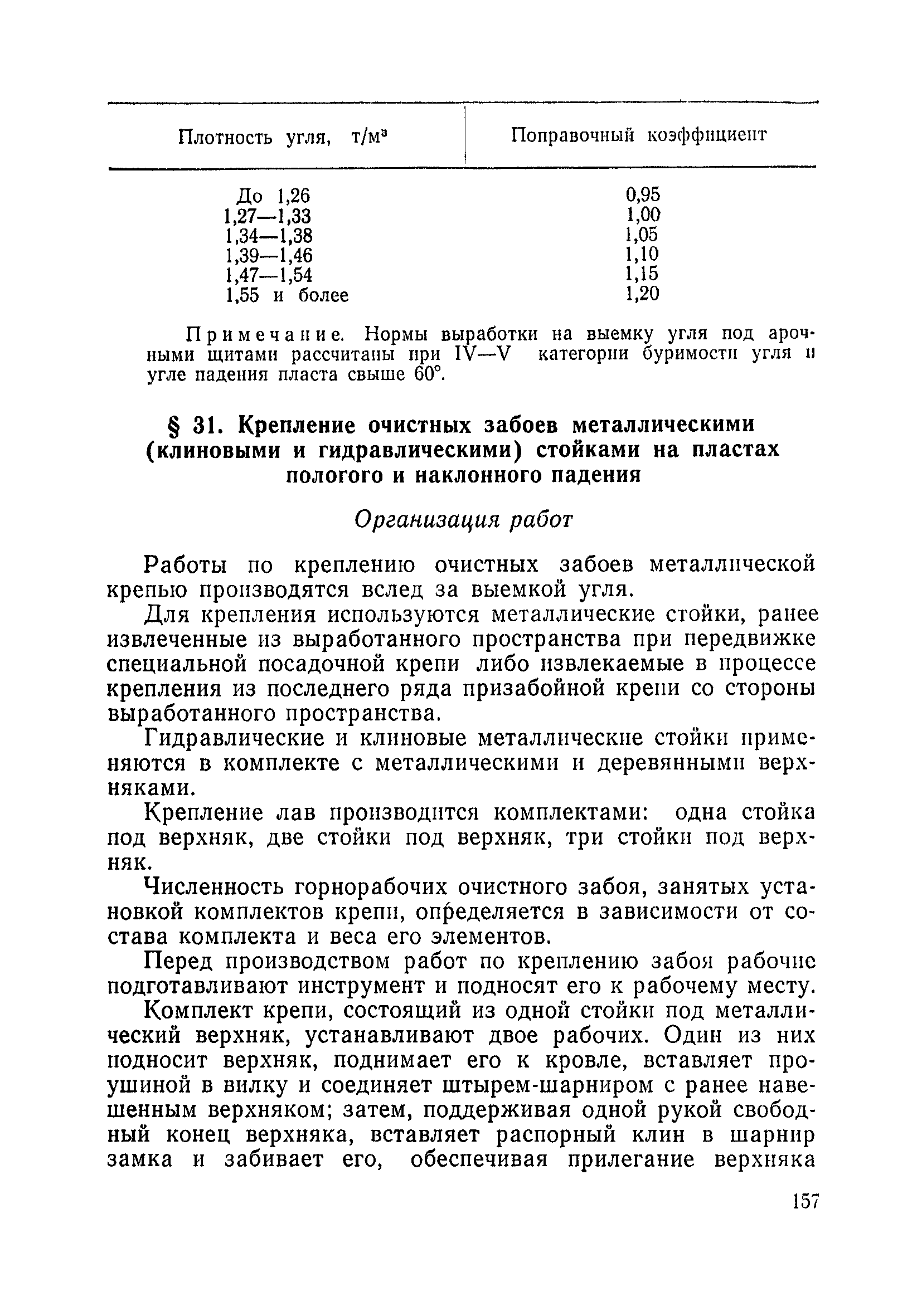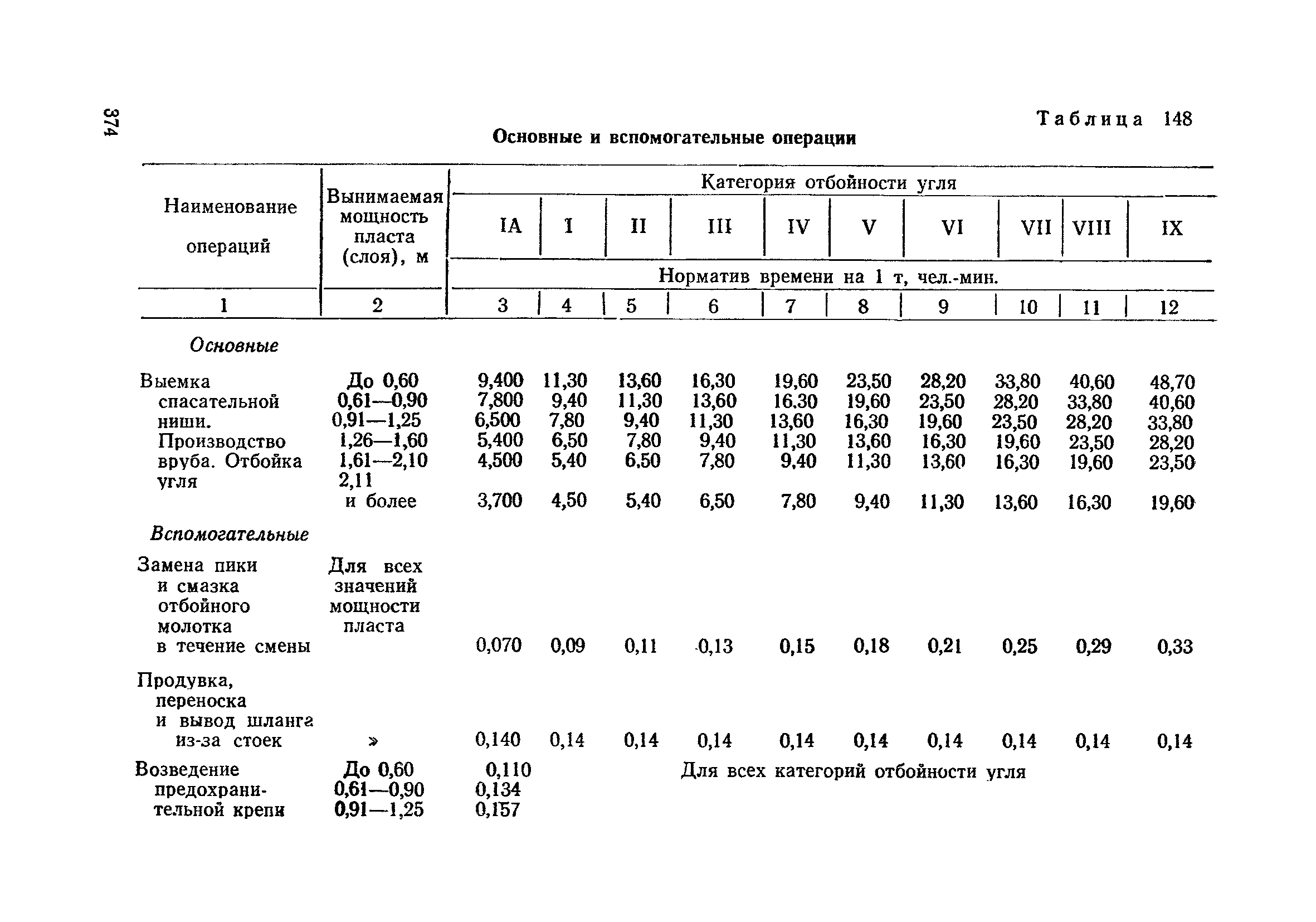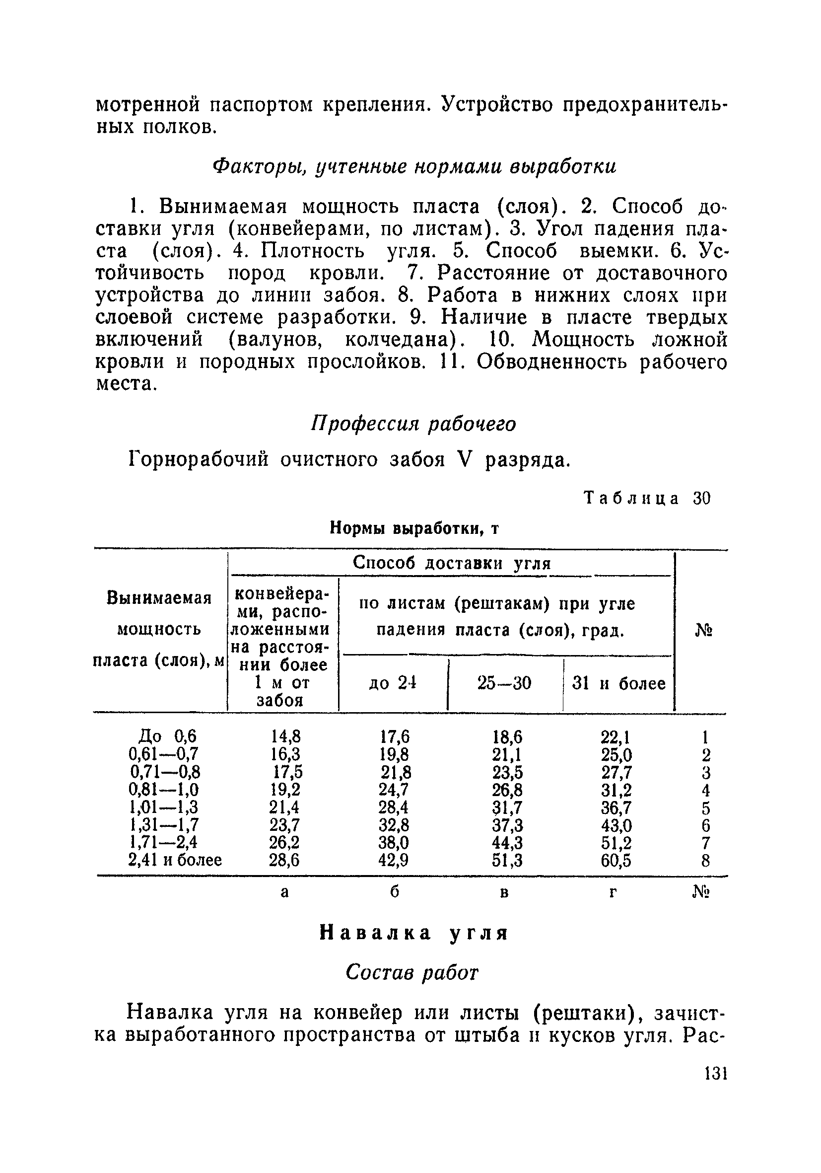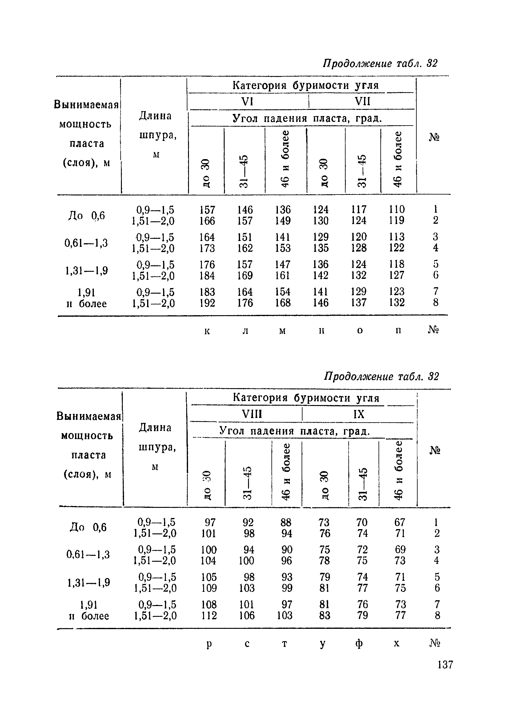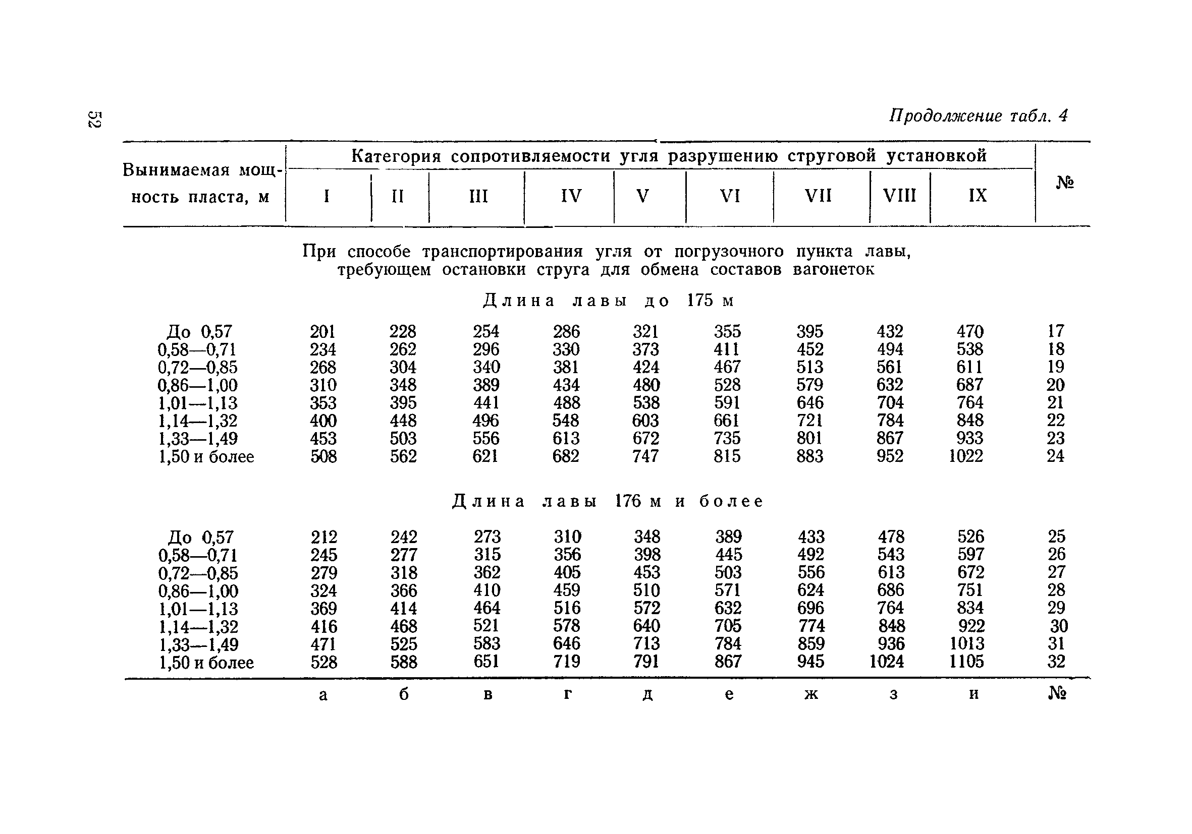 Типовые нормы выработки на очистные работы (кроме агрегатных) для угольных шахт| Статус: | справочные материалы, мп, тпр | | Название рус.: | Типовые нормы выработки на очистные работы (кроме агрегатных) для угольных шахт | | Дата добавления в базу: | 01.01.2019 | | Дата актуализации: | 01.01.2021 | | Область применения: | Типовые нормы выработки на очистные работы для угольных шахт рекомендуются для использования в качестве основы при разработке единых отраслевых и бассейновых норм выработки, а также для применения на предприятиях как местных технически обоснованных норм после утверждения их руководством по согласованию с соответствующим комитетом профсоюза и нормативно-исследовательской станцией производственного объединения (комбината) | | Оглавление: | Общая часть Техническая часть Нормативная часть Глава I. Типовые нормы выработки § 1. Выемка угля агрегатами типа АЩ (АНЩ) в лавах на пластах крутого падения § 2. Выемка угля очистными механизированными комплексами типа КГД в лавах на пластах крутого падения § 3. Передвижка гидрофицированной посадочной крепи «Спутник» § 4. Выемка угля в лавах, оборудованных струговыми установками § 5. Оформление забоя после выемки угля струговыми установками § 6. Передвижка гидродомкратов конвейерного става при выемке угля струговыми установками § 7. Выемка угля узкозахватным комбайном типа КШ и подготовка его к выемке следующей полосы угля § 8. Оформление забоя после выемки угля узкозахватным комбайном типа КШ § 9. Выемка угля узкозахватными комбайнами типов 1К-101, 2К-52, МК-67, БК-52 и подготовка комбайна к выемке следующей полосы угля в лавах на пластах пологого и наклонного падения § 10. Оформление забоя после выемки угля узкозахватными комбайнами типов 1К-101, 2К-52, МК-67 и ВК-52 § 11. Выемка угля комбайнами типов УКР, «Темп», КТ в лавах на пластах наклонного и крутого падения § 12. Спуск (перегон) комбайнов типов УКР, «Темп», КТ в лавах на пластах наклонного и крутого падения с передвижной кран-балки § 13. Передвижка предохранительной лебедки 1ЛГКН § 14. Оформление забоя после выемки угля комбайнами типов УКР, «Темп», КТ в лавах на пластах наклонного падения § 15. Выемка угля в лавах комбайном типа «Урал-2М» и подготовка его к выемке следующей полосы угля § 16. Оформление забоя после выемки угля комбайном типа «Урал-2М» § 17. Выемка угля широкозахватными комбайнами в лавах на пологих и наклонных пластах § 18. Демонтаж, монтаж, перегон и разворот широкозахватных комбайнов в лавах на пологих и наклонных пластах § 19. Оформление забоев после выемки угля широкозахватными комбайнами § 20. Зарубка угля в лавах врубовыми машинами § 21. Перегон (спуск) врубовых машин § 22. Навалоотбойка, навалка угля § 23. Бурение шпуров по углю ручными электросверлами (пневмосверлами) в лавах и камерах § 24. Бурение длинных шпуров ручными электросверлами с принудительной подачей при безлюдной выемке угля на пластах крутого падения § 25. Уборка угля в очистных забоях с помощью скреперной установки § 26. Передвижка скреперной установки § 27. Выемка угля отбойными молотками § 28. Выемка угля с применением ВМ в очистных забоях на пластах крутого падения § 29. Выемка угля под жесткими и эластичными щитами § 30. Выемка угля под арочными щитами § 31. Крепление очистных забоев металлическими (клиновыми и гидравлическими) стойками на пластах пологого и наклонного падения § 32. К