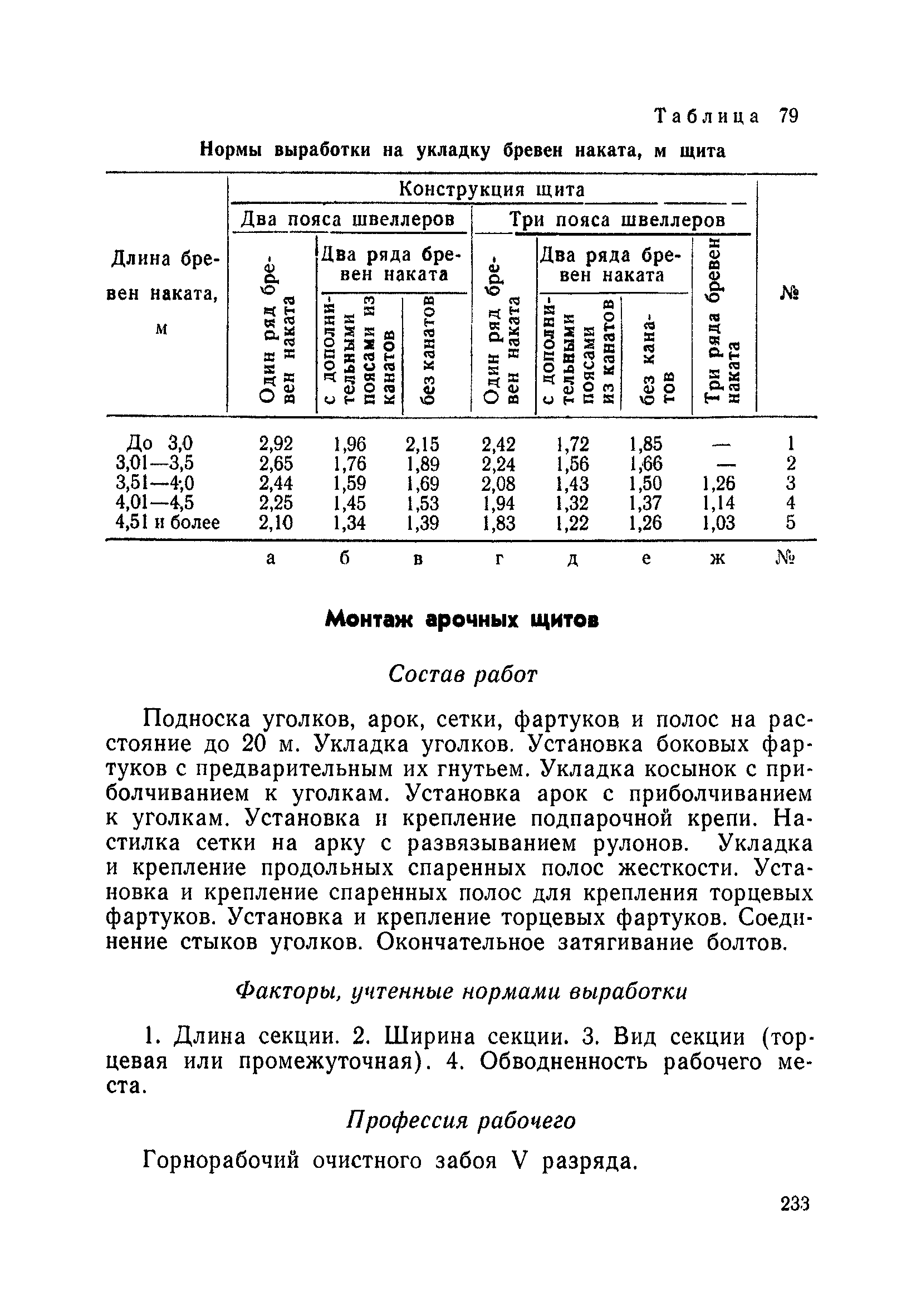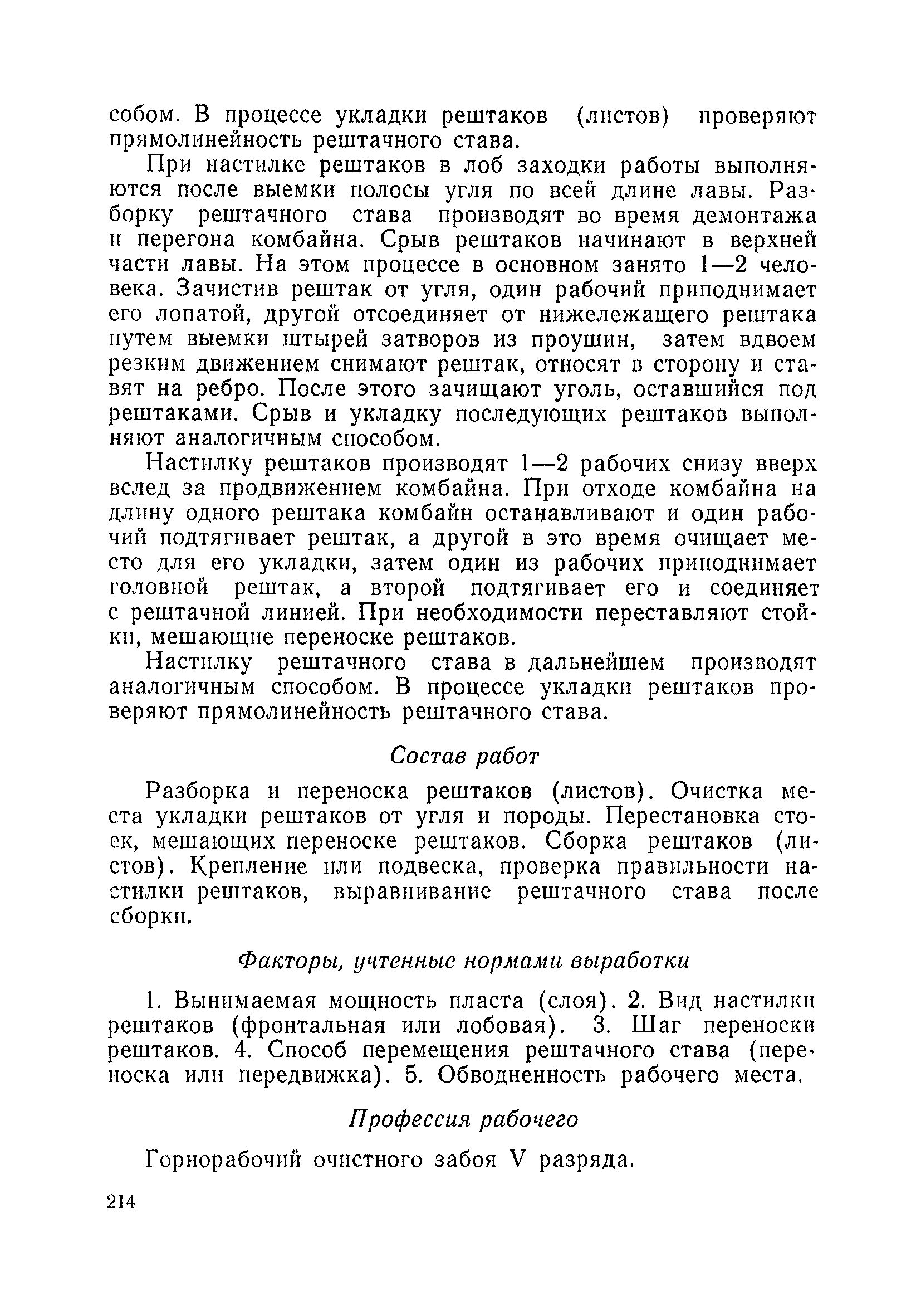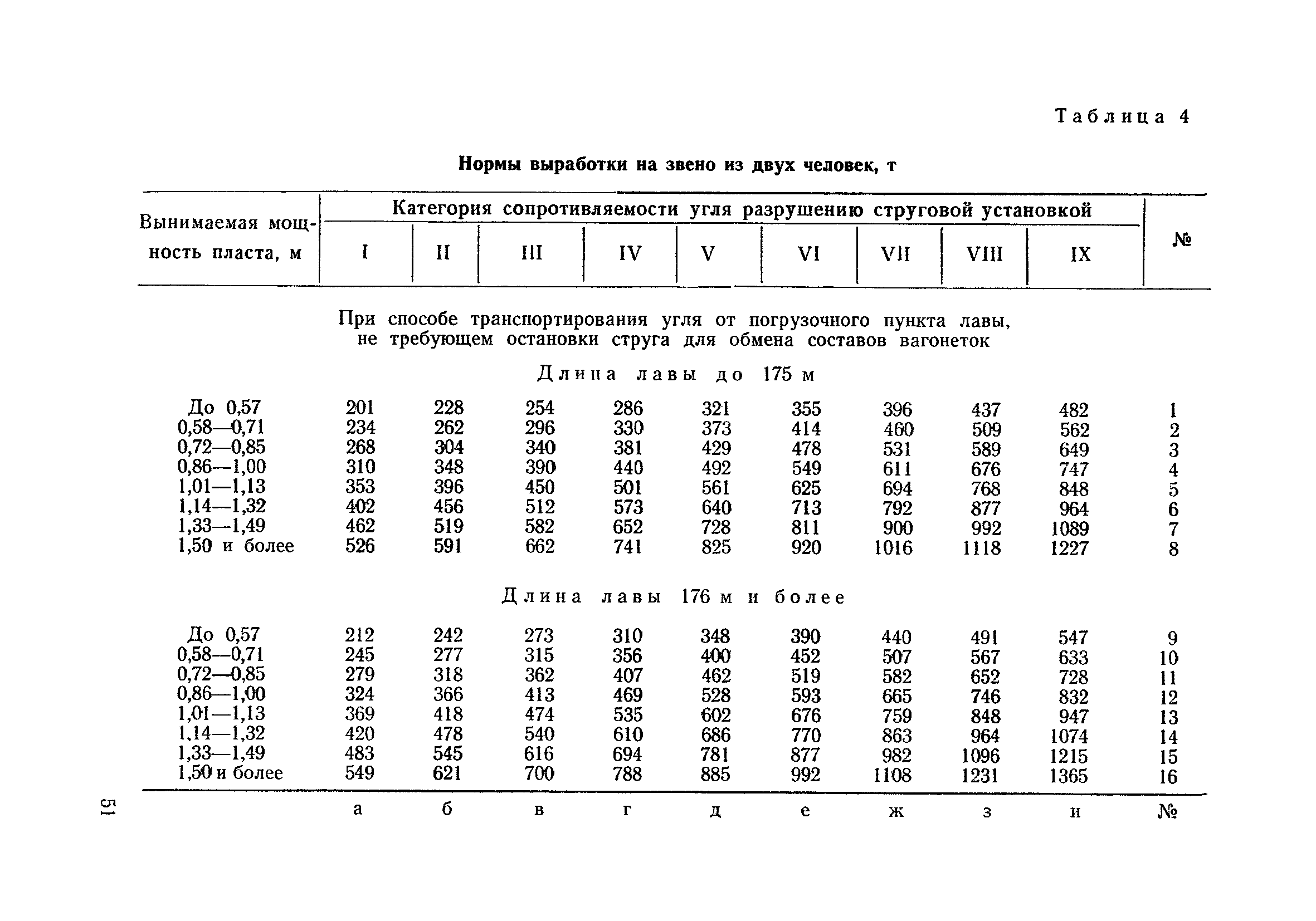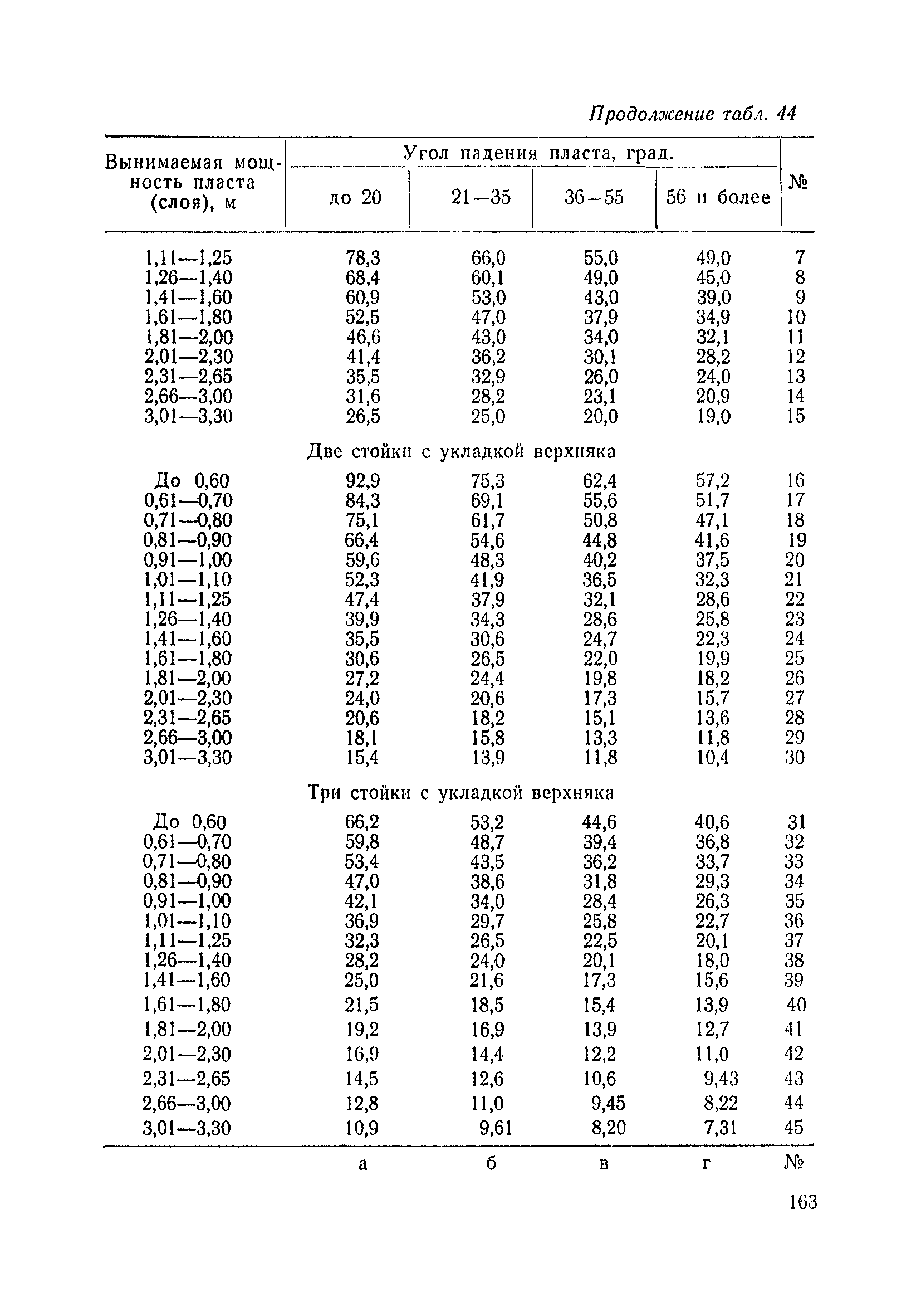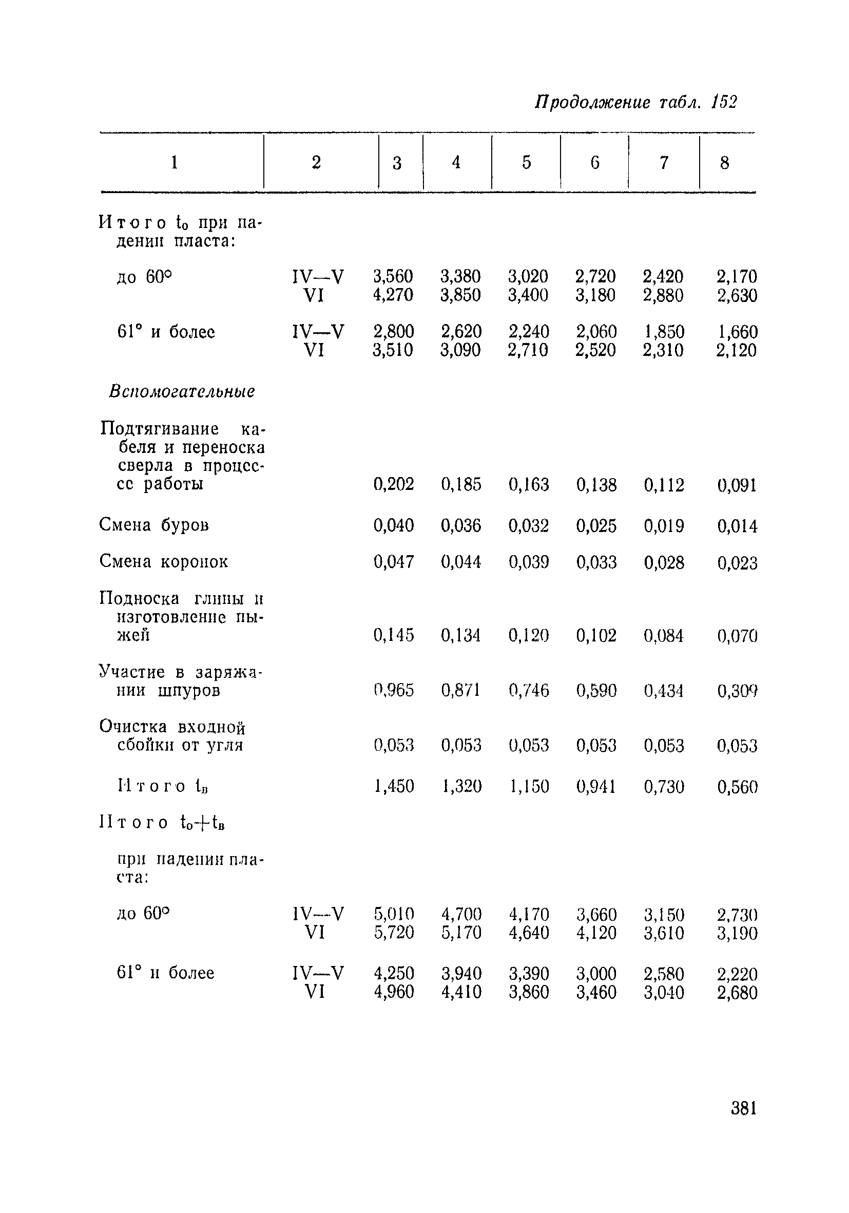 Типовые нормы выработки на очистные работы (кроме агрегатных) для угольных шахт| Статус: | справочные материалы, мп, тпр | | Название рус.: | Типовые нормы выработки на очистные работы (кроме агрегатных) для угольных шахт | | Дата добавления в базу: | 01.01.2019 | | Дата актуализации: | 01.01.2021 | | Область применения: | Типовые нормы выработки на очистные работы для угольных шахт рекомендуются для использования в качестве основы при разработке единых отраслевых и бассейновых норм выработки, а также для применения на предприятиях как местных технически обоснованных норм после утверждения их руководством по согласованию с соответствующим комитетом профсоюза и нормативно-исследовательской станцией производственного объединения (комбината) | | Оглавление: | Общая часть Техническая часть Нормативная часть Глава I. Типовые нормы выработки § 1. Выемка угля агрегатами типа АЩ (АНЩ) в лавах на пластах крутого падения § 2. Выемка угля очистными механизированными комплексами типа КГД в лавах на пластах крутого падения § 3. Передвижка гидрофицированной посадочной крепи «Спутник» § 4. Выемка угля в лавах, оборудованных струговыми установками § 5. Оформление забоя после выемки угля струговыми установками § 6. Передвижка гидродомкратов конвейерного става при выемке угля струговыми установками § 7. Выемка угля узкозахватным комбайном типа КШ и подготовка его к выемке следующей полосы угля § 8. Оформление забоя после выемки угля узкозахватным комбайном типа КШ § 9. Выемка угля узкозахватными комбайнами типов 1К-101, 2К-52, МК-67, БК-52 и подготовка комбайна к выемке следующей полосы угля в лавах на пластах пологого и наклонного падения § 10. Оформление забоя после выемки угля узкозахватными комбайнами типов 1К-101, 2К-52, МК-67 и ВК-52 § 11. Выемка угля комбайнами типов УКР, «Темп», КТ в лавах на пластах наклонного и крутого падения § 12. Спуск (перегон) комбайнов типов УКР, «Темп», КТ в лавах на пластах наклонного и крутого падения с передвижной кран-балки § 13. Передвижка предохранительной лебедки 1ЛГКН § 14. Оформление забоя после выемки угля комбайнами типов УКР, «Темп», КТ в лавах на пластах наклонного падения § 15. Выемка угля в лавах комбайном типа «Урал-2М» и подготовка его к выемке следующей полосы угля § 16. Оформление забоя после выемки угля комбайном типа «Урал-2М» § 17. Выемка угля широкозахватными комбайнами в лавах на пологих и наклонных пластах § 18. Демонтаж, монтаж, перегон и разворот широкозахватных комбайнов в лавах на пологих и наклонных пластах § 19. Оформление забоев после выемки угля широкозахватными комбайнами § 20. Зарубка угля в лавах врубовыми машинами § 21. Перегон (спуск) врубовых машин § 22. Навалоотбойка, навалка угля § 23. Бурение шпуров по углю ручными электросверлами (пневмосверлами) в лавах и камерах § 24. Бурение длинных шпуров ручными электросверлами с принудительной подачей при безлюдной выемке угля на пластах крутого падения § 25. Уборка угля в очистных забоях с помощью скреперной установки § 26. Передвижка скреперной установки § 27. Выемка угля отбойными молотками § 28. Выемка угля с применением ВМ в очистных забоях на пластах крутого падения § 29. Выемка угля под жесткими и эластичными щитами § 30. Выемка угля под арочными щитами § 31. Крепление очистных забоев металлическими (клиновыми и гидравлическими) стойками на пластах пологого и наклонного падения § 32. К